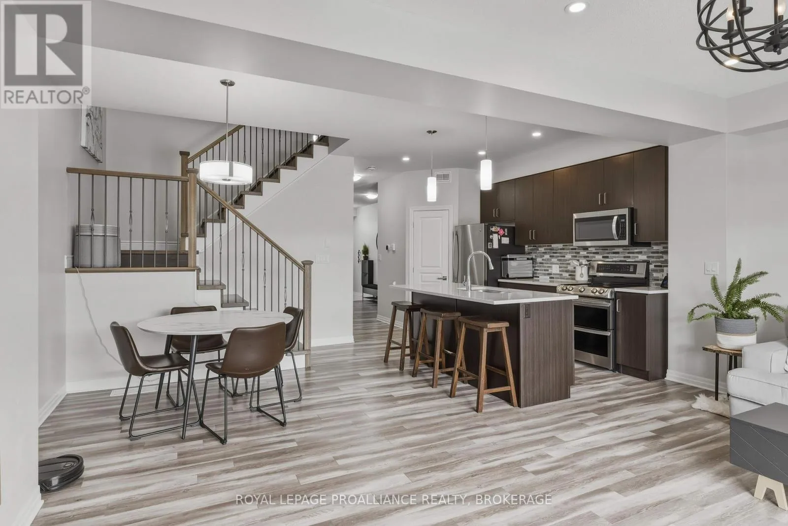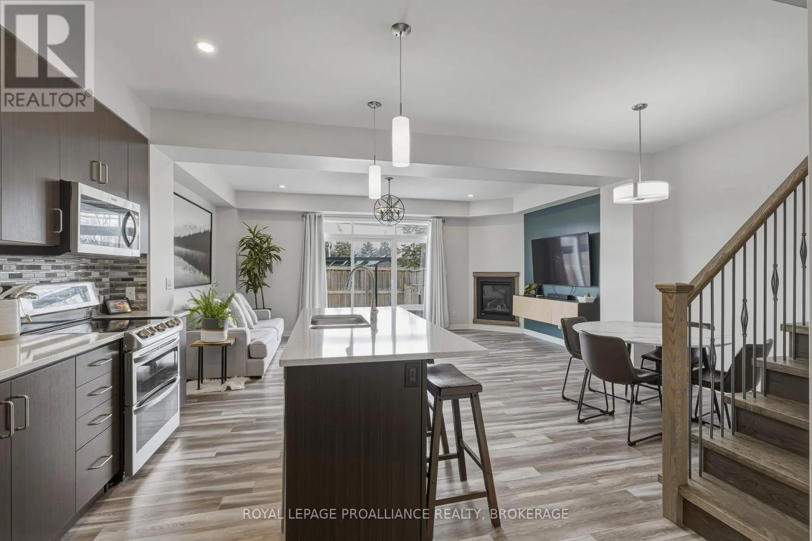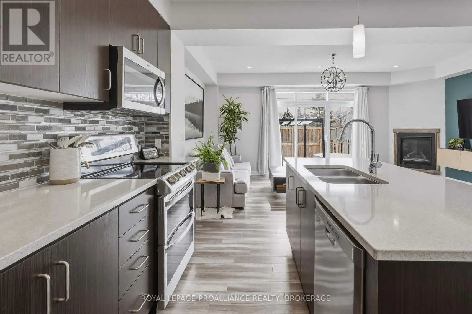 Cross Streets: STONEWALK AND WATERSIDE. ** Directions: HWY 15, NW ON WATERSIDE WAY, S ON STONEWALK DR, EAST ON RIVERVIEW TO #894. This lovely 8-year-old townhouse sits in Kingston's east end. The bright main floor offers an open concept plan with a beautiful kitchen with quartz counters, a glass backsplash and a corner pantry. This area opens to the dining area and living room, which features a corner gas fireplace and a huge patio door leading to the rear fenced yard with a large concrete patio and no rear neighbors. Lots of pot lights, 9 ft ceilings, a 2pc bathroom and laundry finishing off the main floor. Up the hardwood stairs, you'll find 3 good-sized bedrooms and the main bath, including the primary suite with a 4pc ensuite and a large walk-in closet. The lower level is a blank slate for you to finish however you'd like with a rough-in for a future bathroom. Attached garage with inside entry, carpet-free throughout, all appliances included, and situated on a quiet street close to CFB Kingston, schools and all East End amenities. (id:27476)