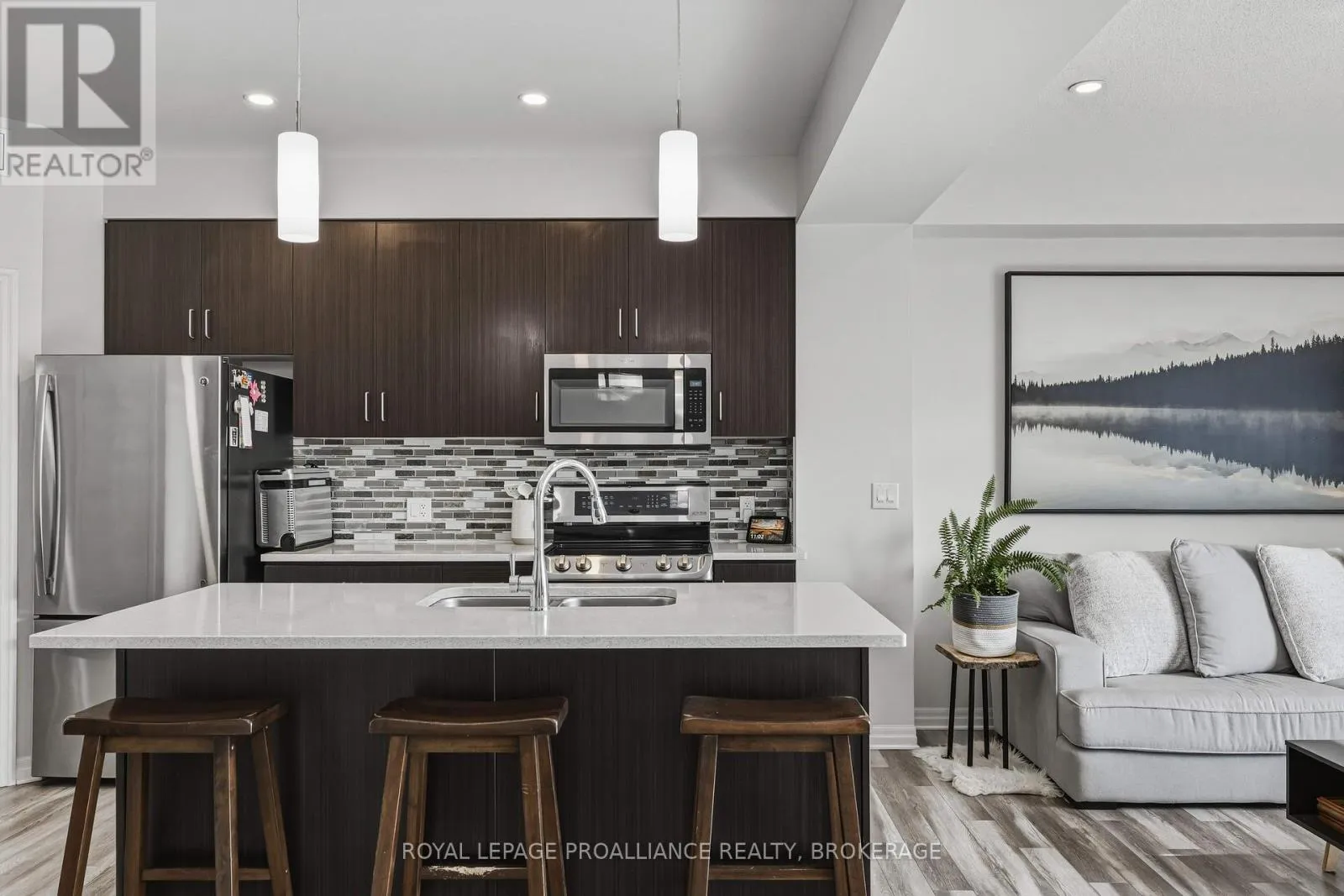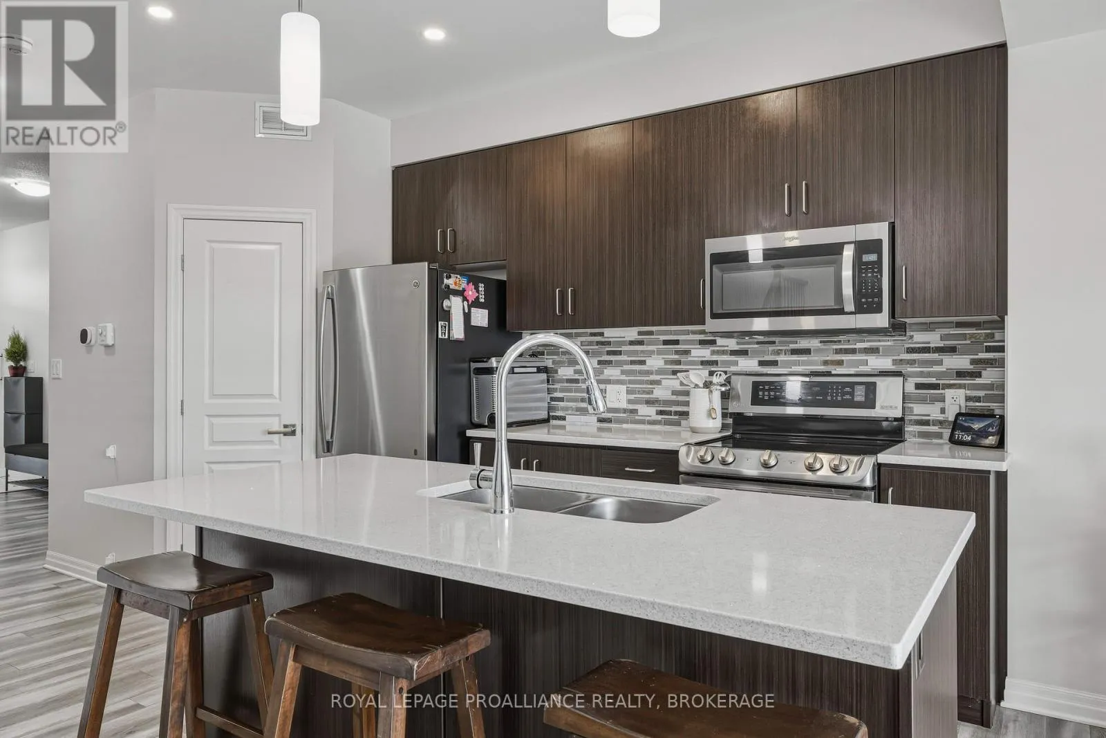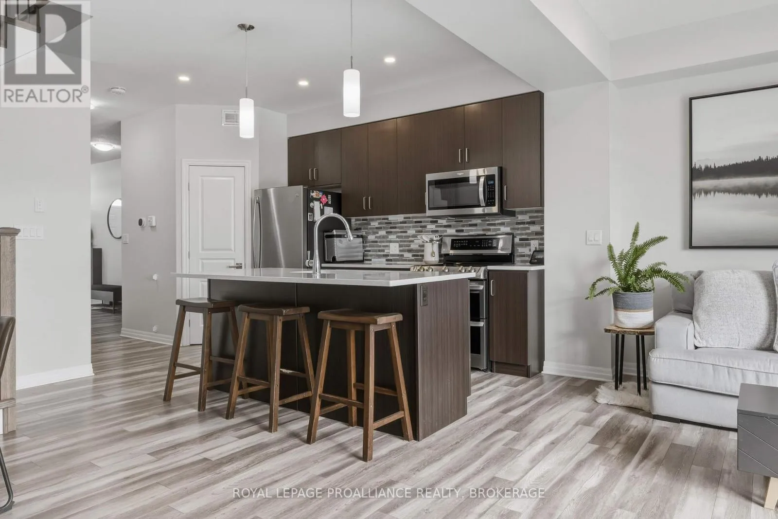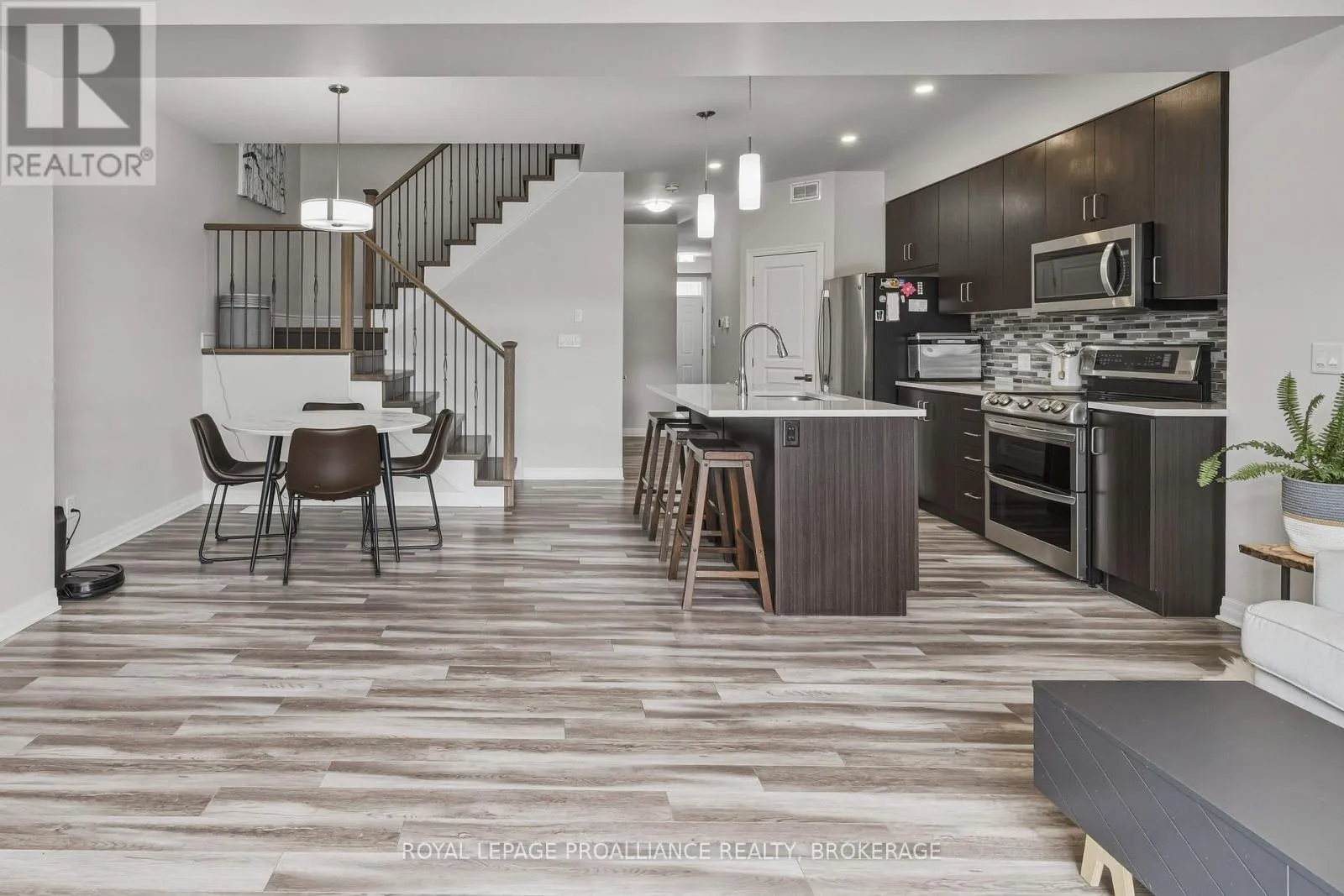 Cross Streets: STONEWALK AND WATERSIDE. ** Directions: HWY 15, NW ON WATERSIDE WAY, S ON STONEWALK DR, EAST ON RIVERVIEW TO #894. This lovely 8-year-old townhouse sits in Kingston's east end. The bright main floor offers an open concept plan with a beautiful kitchen with quartz counters, a glass backsplash and a corner pantry. This area opens to the dining area and living room, which features a corner gas fireplace and a huge patio door leading to the rear fenced yard with a large concrete patio and no rear neighbors. Lots of pot lights, 9 ft ceilings, a 2pc bathroom and laundry finishing off the main floor. Up the hardwood stairs, you'll find 3 good-sized bedrooms and the main bath, including the primary suite with a 4pc ensuite and a large walk-in closet. The lower level is a blank slate for you to finish however you'd like with a rough-in for a future bathroom. Attached garage with inside entry, carpet-free throughout, all appliances included, and situated on a quiet street close to CFB Kingston, schools and all East End amenities. (id:27476)