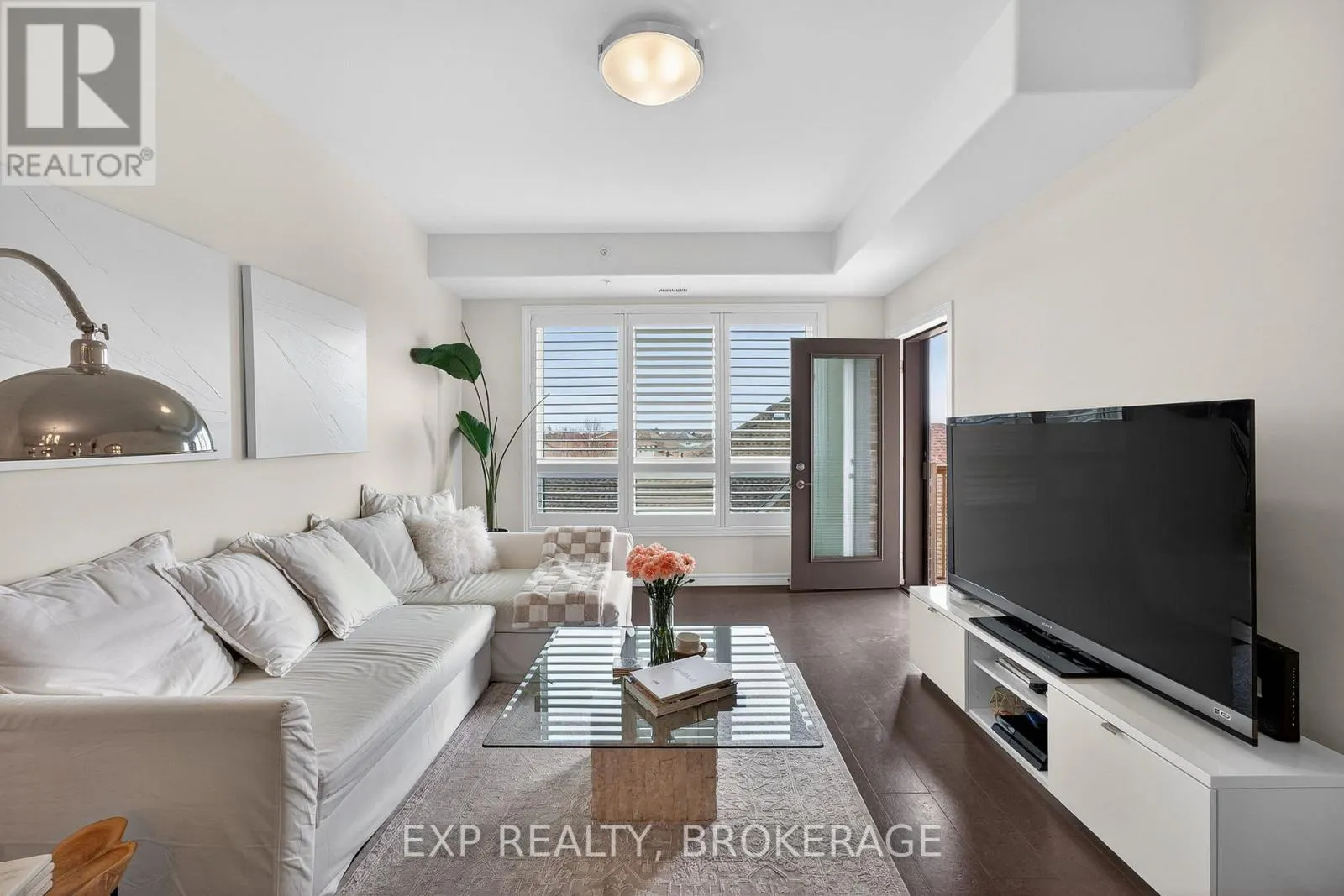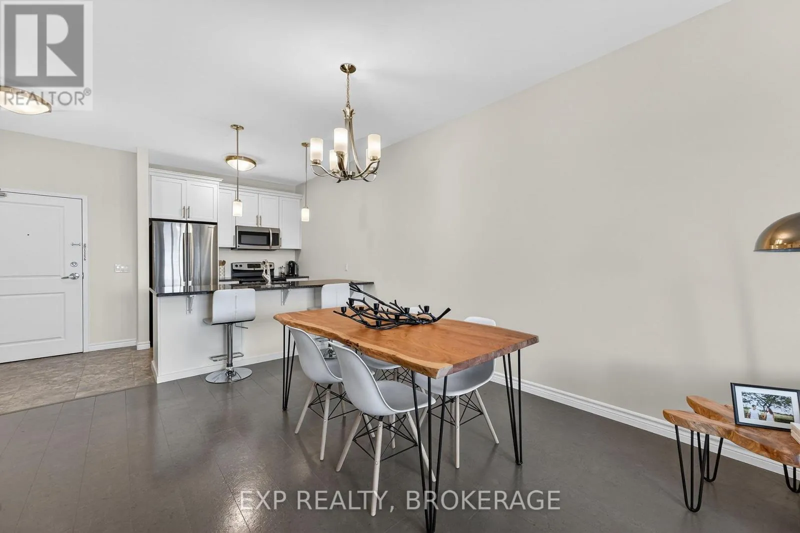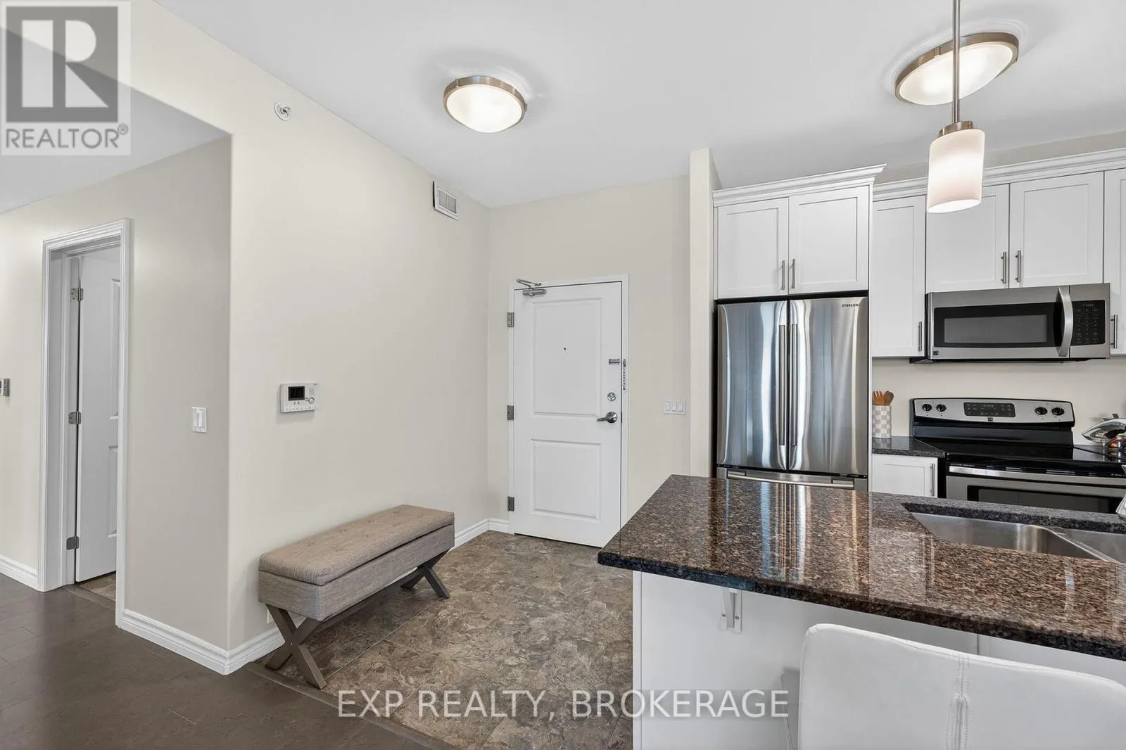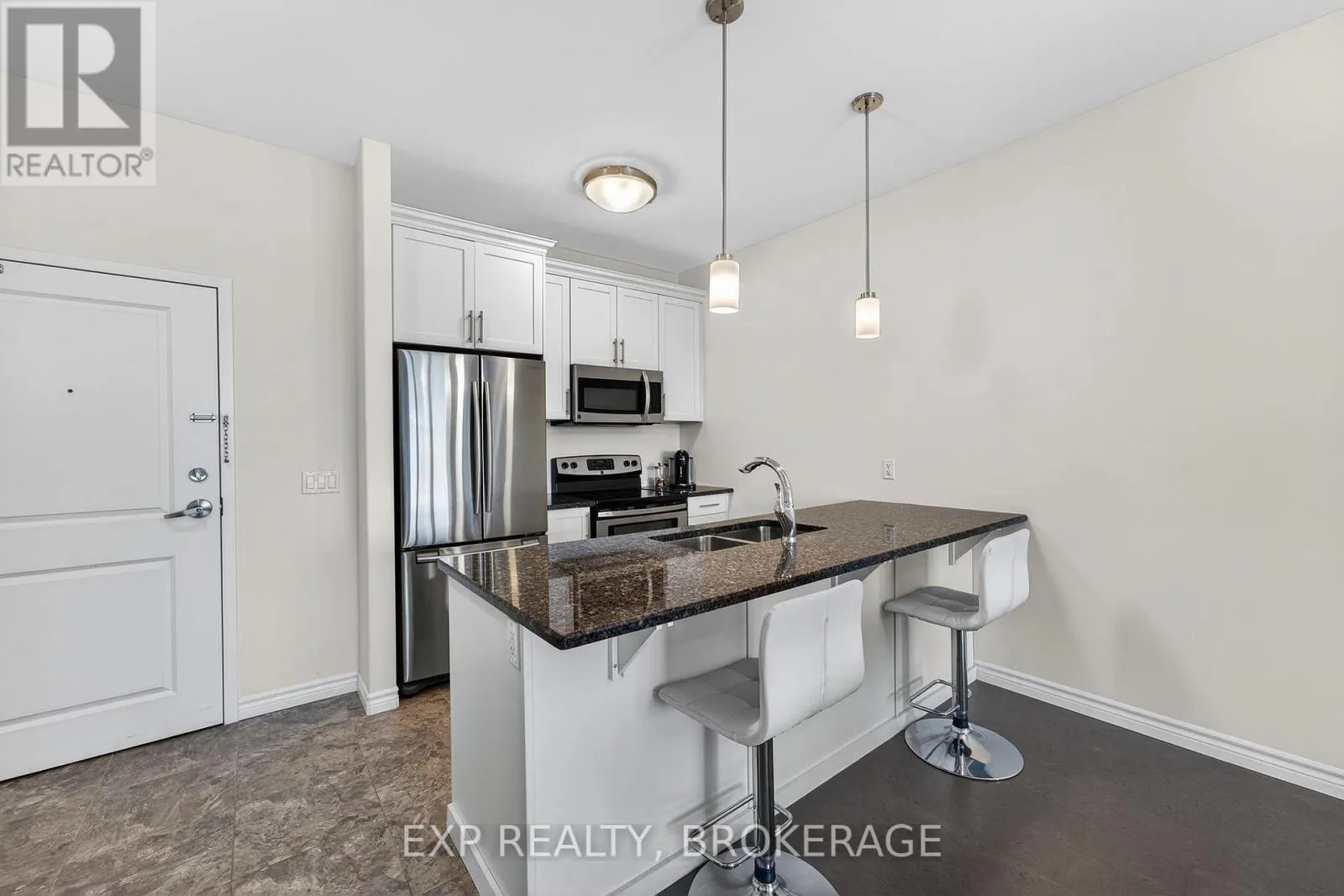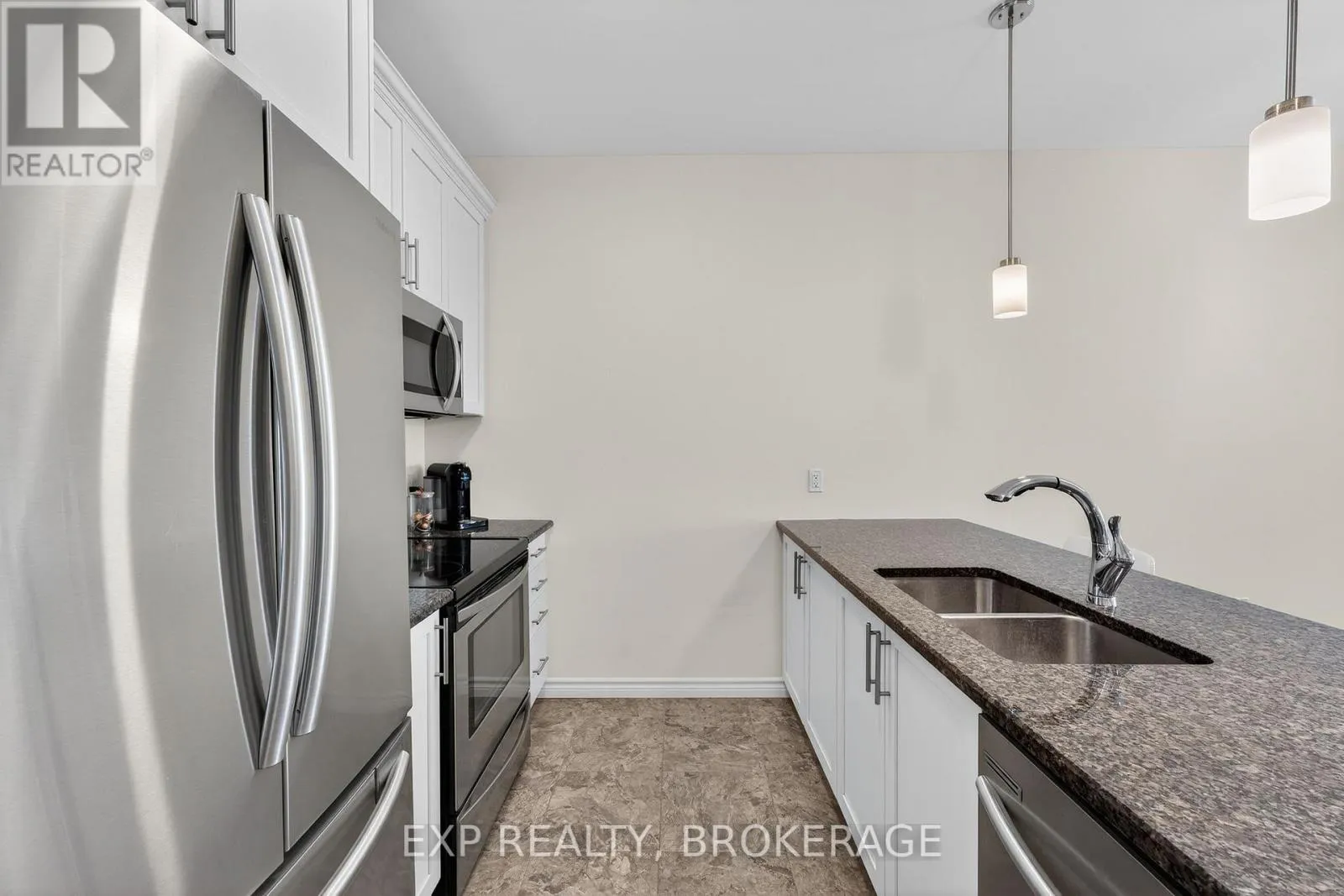 Cross Streets: Princess Street. ** Directions: Princess Street to Augusta Drive. Welcome to Unit 301 at 740 Augusta Drive, a highly desirable third-floor corner suite in Augusta Glen Condominiums. This bright, modern unit features an open-concept layout with a stylish kitchen complete with crisp white cabinetry, stainless steel appliances, granite countertops, pendant lighting, and soaring ceilings.The spacious living area is perfect for entertaining or relaxing beside large sun-filled windows. The primary bedroom offers custom blinds and a generous walk-in closet with direct access to the bathroom. A second bedroom spacious bedroom is ideal for guests or a home office. Enjoy the convenience of in-unit laundry, ample storage, and parking. Residents enjoy a secure building with amenities including a fitness centre and a party room. This home is ideal for those seeking low-maintenance living, and is perfectly located next to Bert Meunier Park, public transit, Highway 401, and just minutes from downtown Kingston. (id:27476)