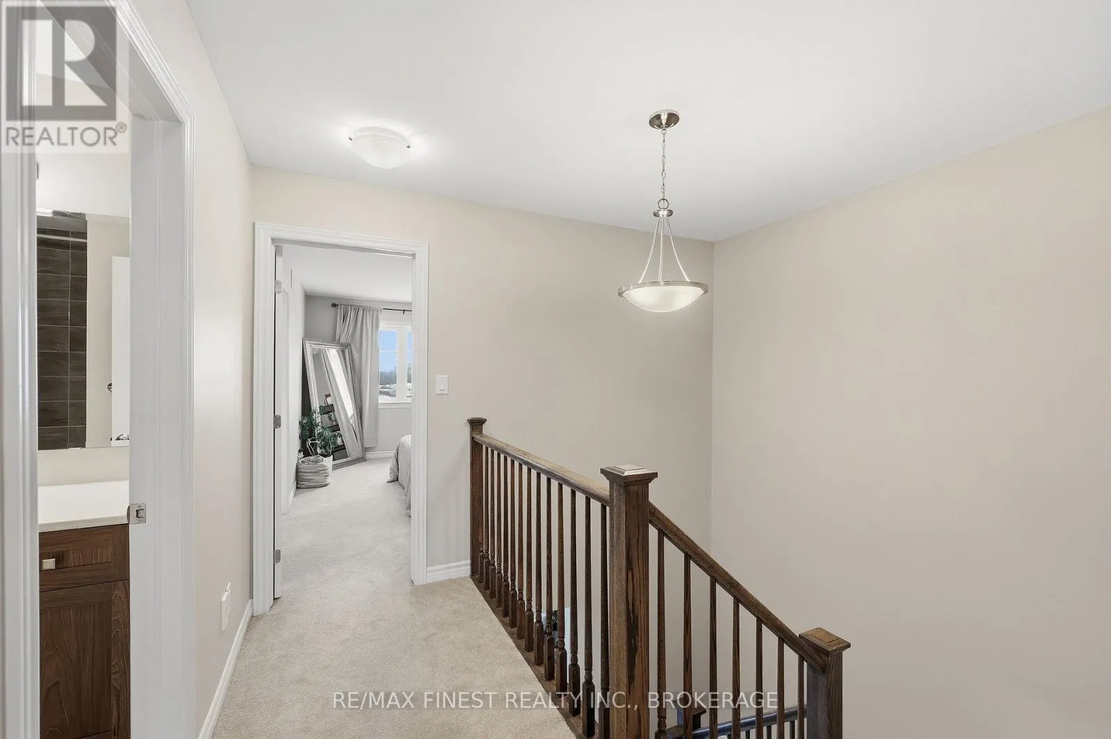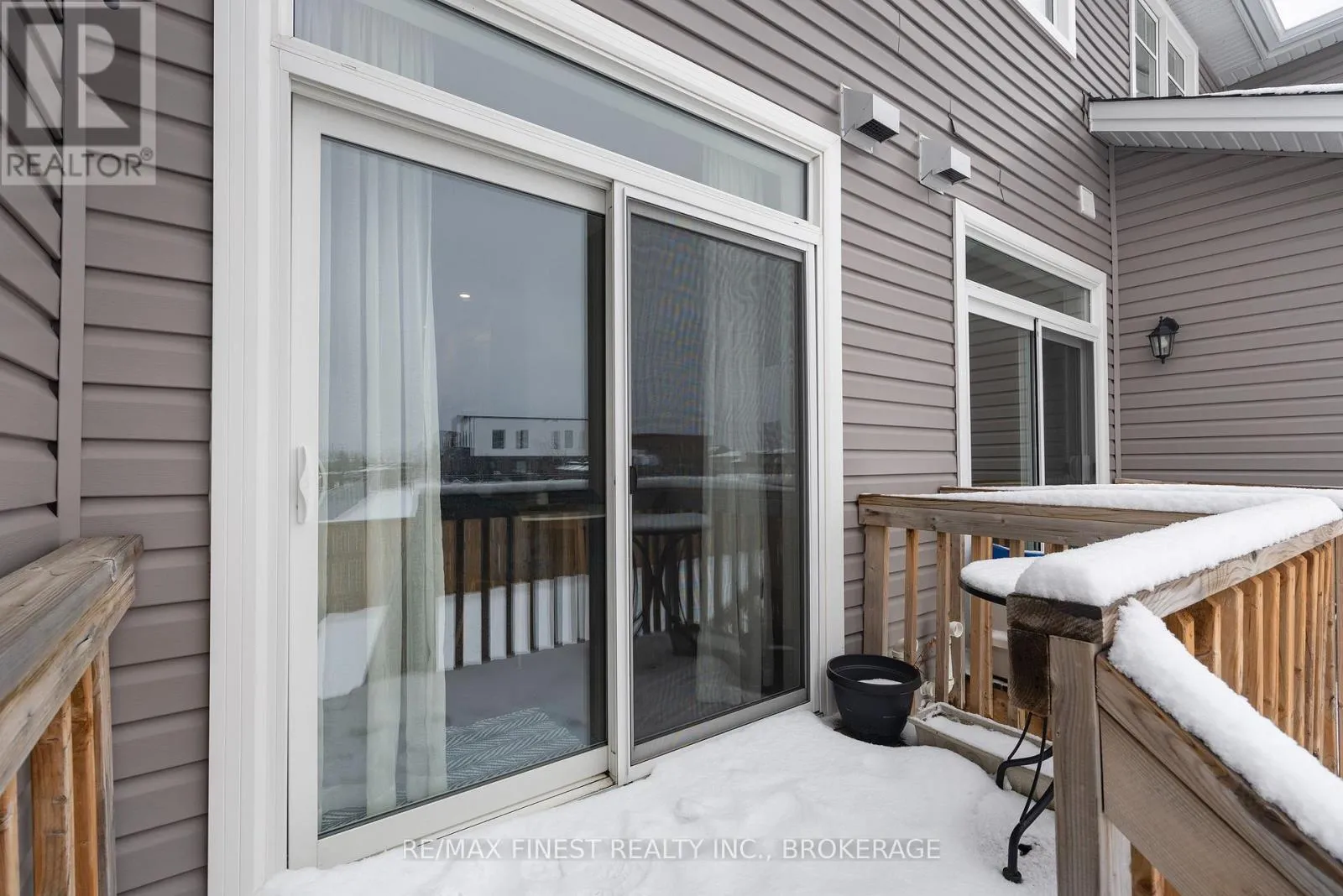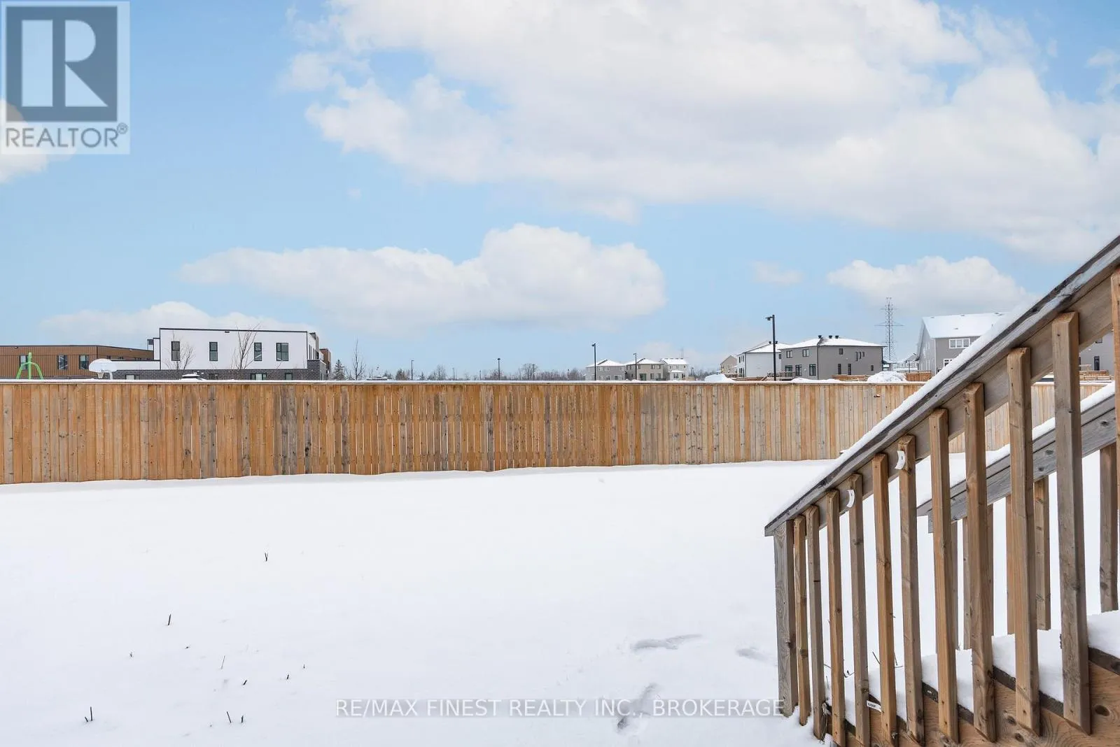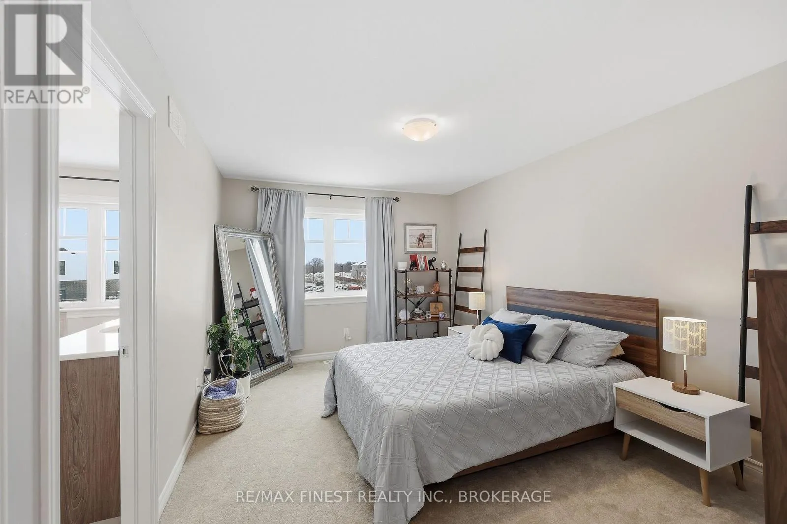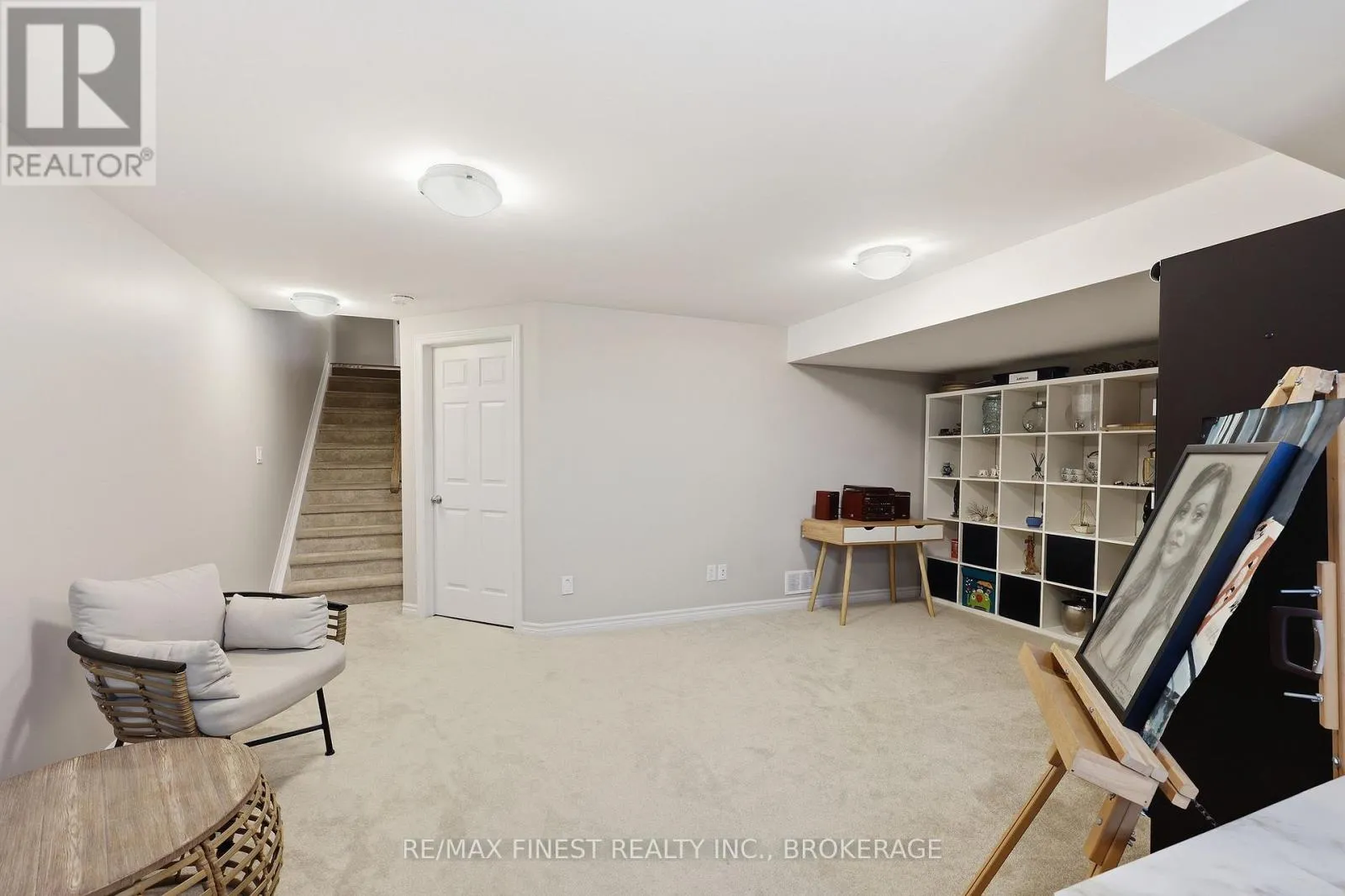 Cross Streets: Cataraqui Woods Drive. ** Directions: Cataraqui Woods Drive to Tenley Drive. Welcome to this beautifully appointed 3-bedroom, 3-bathroom townhouse located in Kingston's west end. Designed with modern living in mind, this home offers high ceilings and an open-concept layout that's both spacious and inviting. The kitchen features quartz countertops, stainless steel appliances, and a stylish tile backsplash - perfect for everyday cooking or entertaining guests. Hardwood flooring spans the main level, while ceramic tile in all wet areas adds durability and easy maintenance. Relax by the cozy fireplace in the living room, framed by large transom windows and a patio door that flood the space with natural light. Upstairs, you'll find three comfortable bedrooms, including the primary bedroom with 4-piece ensuite, plus you'll enjoy the convenience of upper-level laundry. The finished rec room in the lower level provides added living space ideal for a family room, home gym, or office. Located close to schools, walking paths, west-end shops, and everyday amenities, this home combines comfort, style, and an excellent location. (id:27476)
