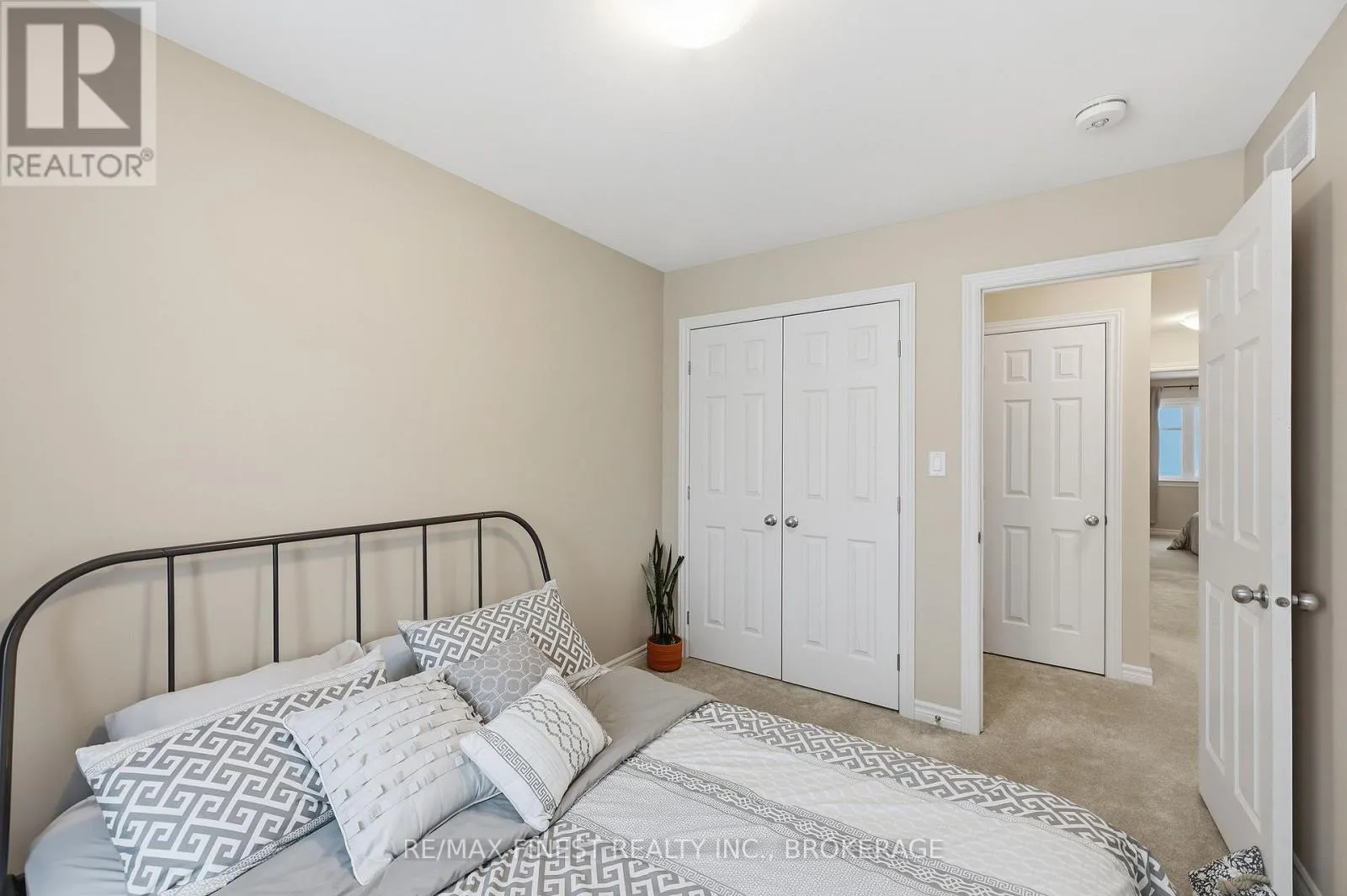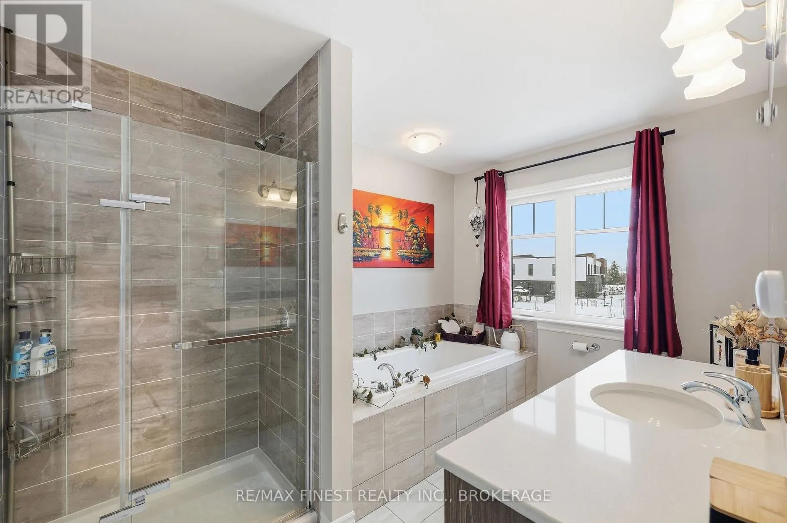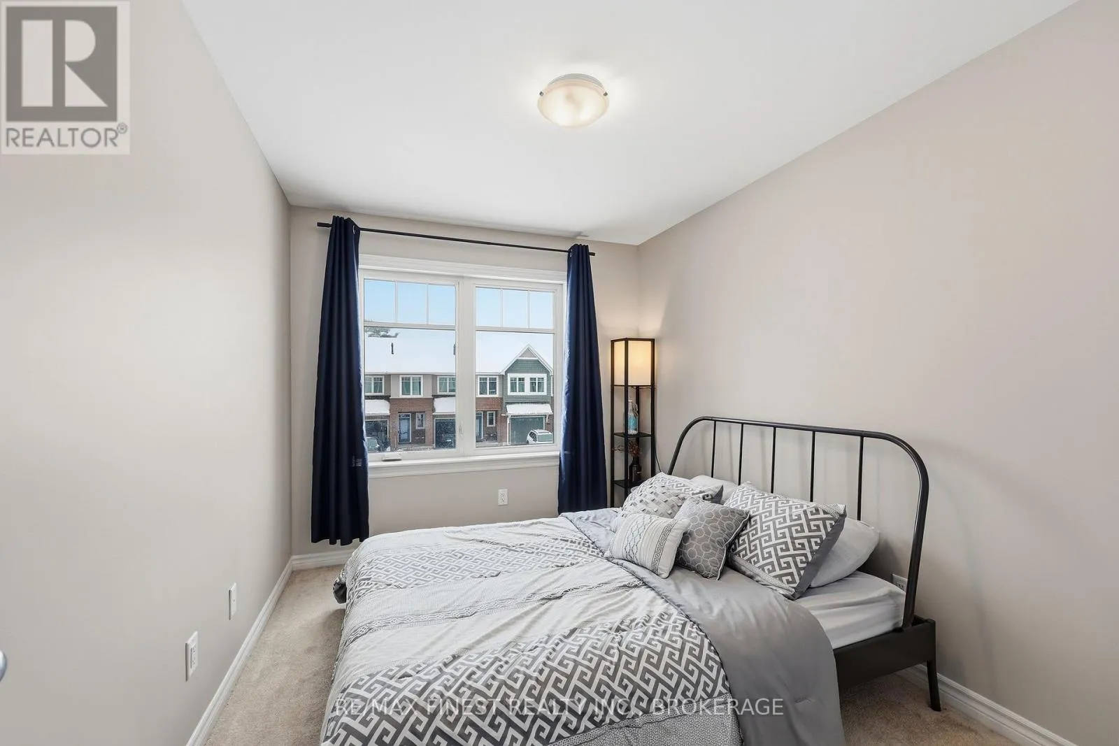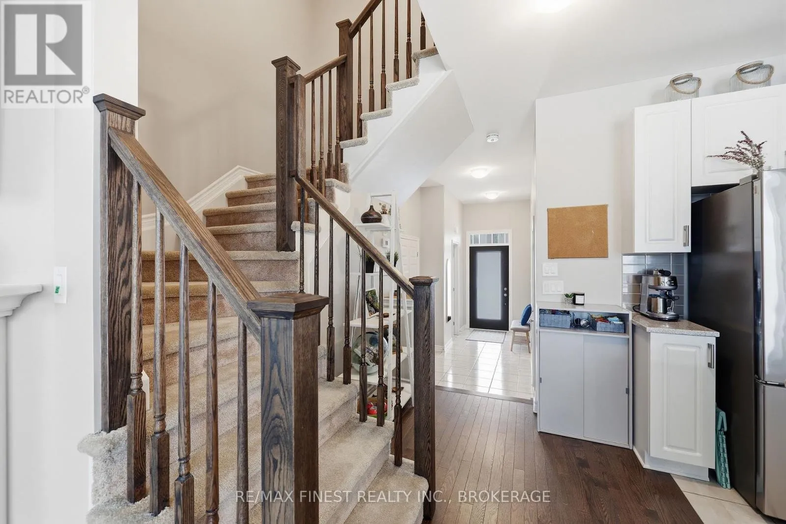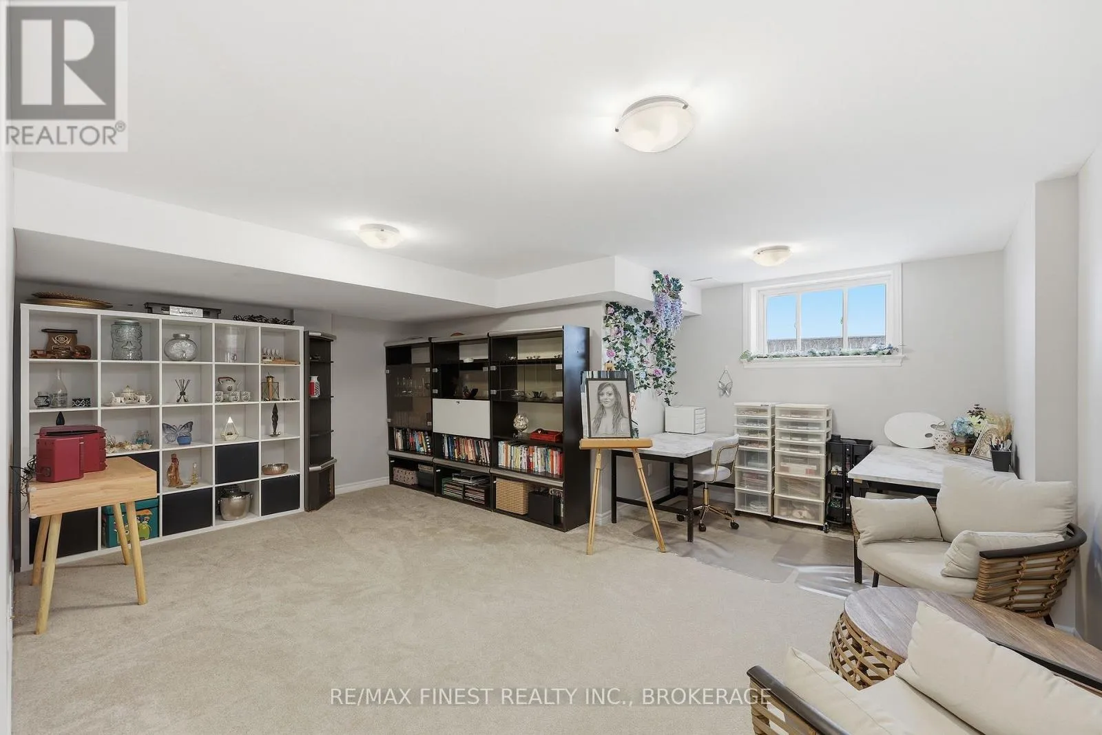 Cross Streets: Cataraqui Woods Drive. ** Directions: Cataraqui Woods Drive to Tenley Drive. Welcome to this beautifully appointed 3-bedroom, 3-bathroom townhouse located in Kingston's west end. Designed with modern living in mind, this home offers high ceilings and an open-concept layout that's both spacious and inviting. The kitchen features quartz countertops, stainless steel appliances, and a stylish tile backsplash - perfect for everyday cooking or entertaining guests. Hardwood flooring spans the main level, while ceramic tile in all wet areas adds durability and easy maintenance. Relax by the cozy fireplace in the living room, framed by large transom windows and a patio door that flood the space with natural light. Upstairs, you'll find three comfortable bedrooms, including the primary bedroom with 4-piece ensuite, plus you'll enjoy the convenience of upper-level laundry. The finished rec room in the lower level provides added living space ideal for a family room, home gym, or office. Located close to schools, walking paths, west-end shops, and everyday amenities, this home combines comfort, style, and an excellent location. (id:27476)