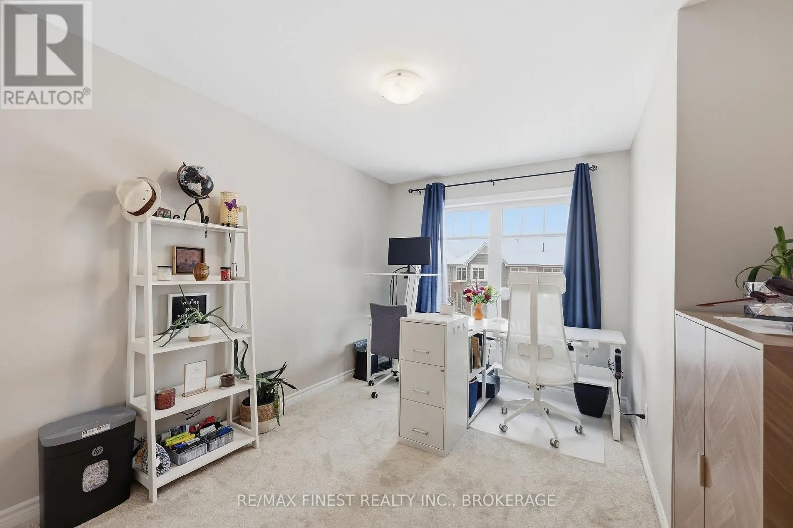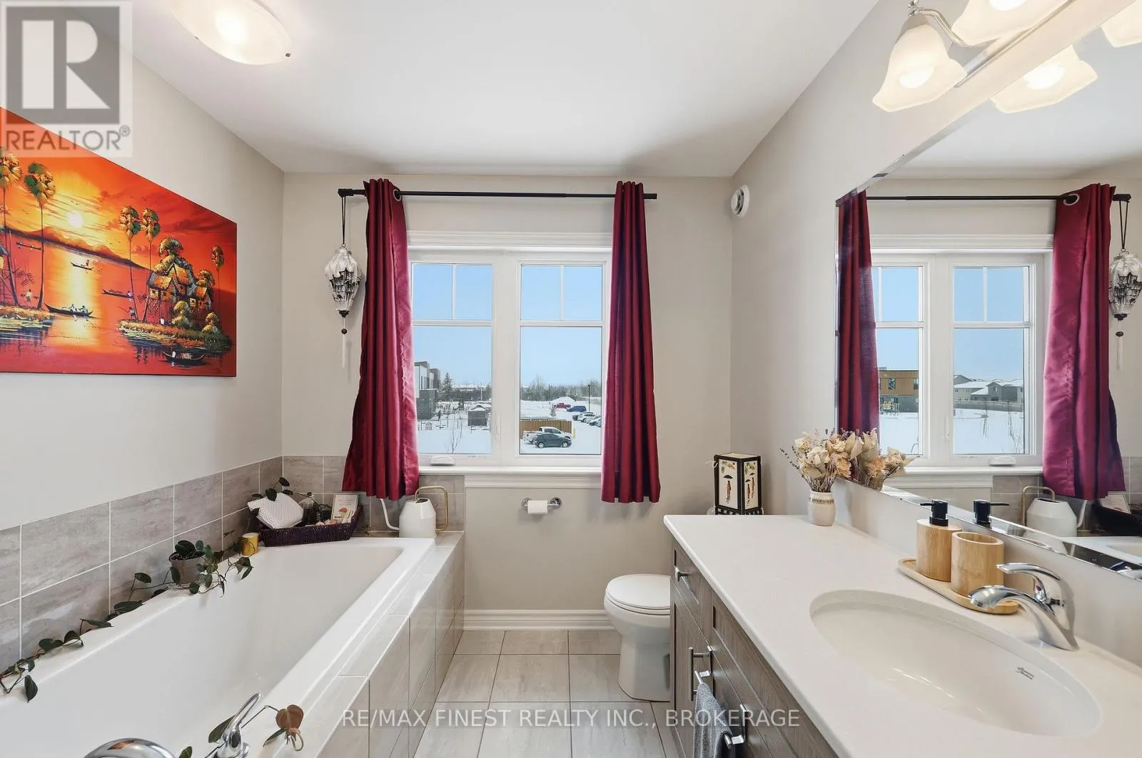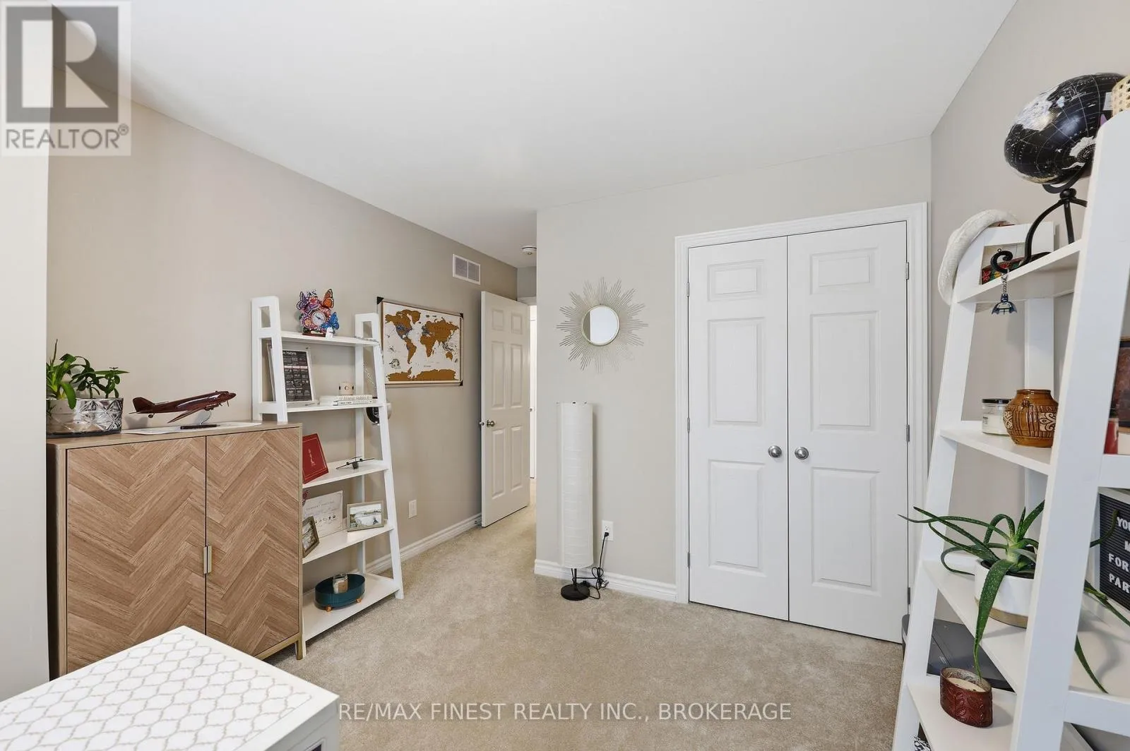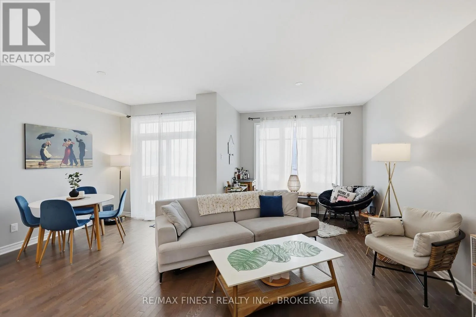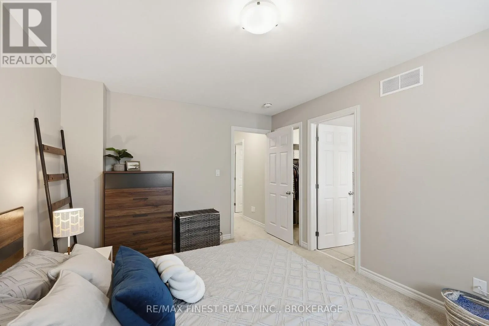 Cross Streets: Cataraqui Woods Drive. ** Directions: Cataraqui Woods Drive to Tenley Drive. Welcome to this beautifully appointed 3-bedroom, 3-bathroom townhouse located in Kingston's west end. Designed with modern living in mind, this home offers high ceilings and an open-concept layout that's both spacious and inviting. The kitchen features quartz countertops, stainless steel appliances, and a stylish tile backsplash - perfect for everyday cooking or entertaining guests. Hardwood flooring spans the main level, while ceramic tile in all wet areas adds durability and easy maintenance. Relax by the cozy fireplace in the living room, framed by large transom windows and a patio door that flood the space with natural light. Upstairs, you'll find three comfortable bedrooms, including the primary bedroom with 4-piece ensuite, plus you'll enjoy the convenience of upper-level laundry. The finished rec room in the lower level provides added living space ideal for a family room, home gym, or office. Located close to schools, walking paths, west-end shops, and everyday amenities, this home combines comfort, style, and an excellent location. (id:27476)
