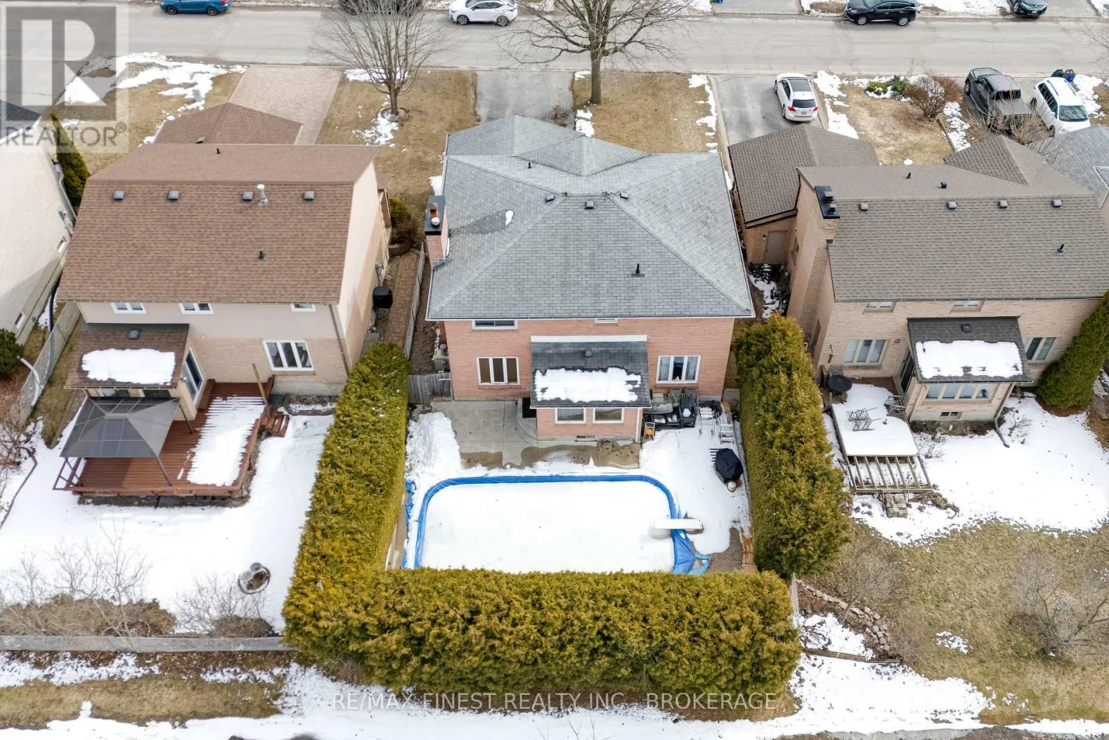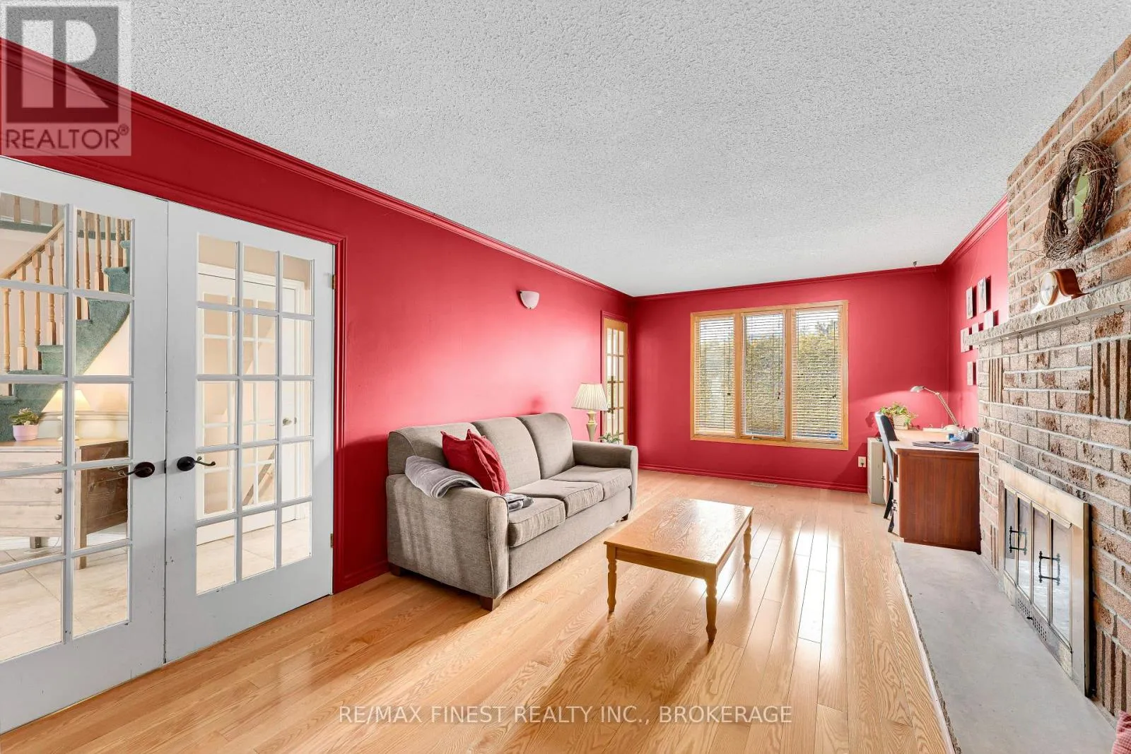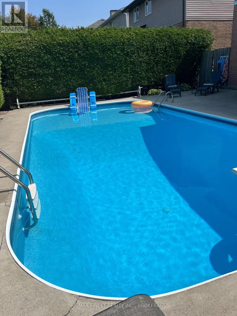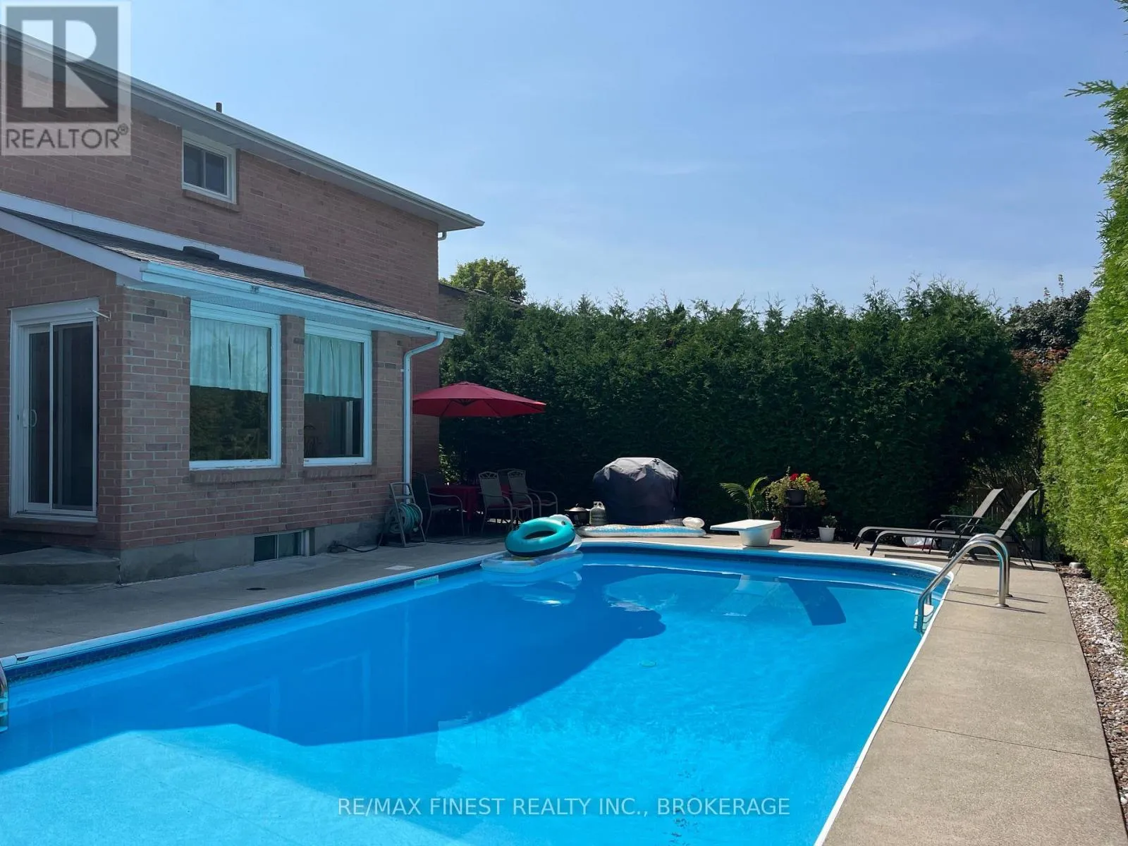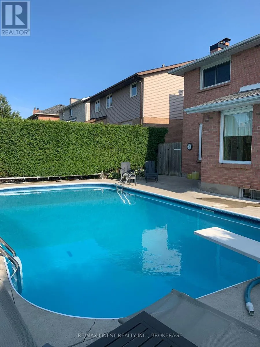 OFF MONA DRIVE IN WESTWOODS. Welcome to 838 Woodside Drive in Kingston's sought-after Westwoods neighbourhood. This all-brick two-storey home showcasing 3800 sq ft of finished living space backs directly onto green space, offering privacy, space, and a family-friendly location within walking distance to schools and parks. The main floor features a functional layout with a large living and dining area, a cozy family room with a wood-burning fireplace, and an oak eat-in kitchen with patio doors leading to the private backyard. Step outside to enjoy the heated 16 x 32 in-ground pool and direct access to the green space behind. Upstairs offers 4 sizeable bedrooms, including a spacious primary bedroom with walk-in closet and jacuzzi ensuite. The finished lower level expands your living space with a rec room, 2 den areas currently used as bedrooms, and a dedicated workshop/ utility space, ideal for hobbies or additional storage. Book your showing today to view this great spot offering space, a functional layout, and plenty of potential to make it your own. (id:27476)