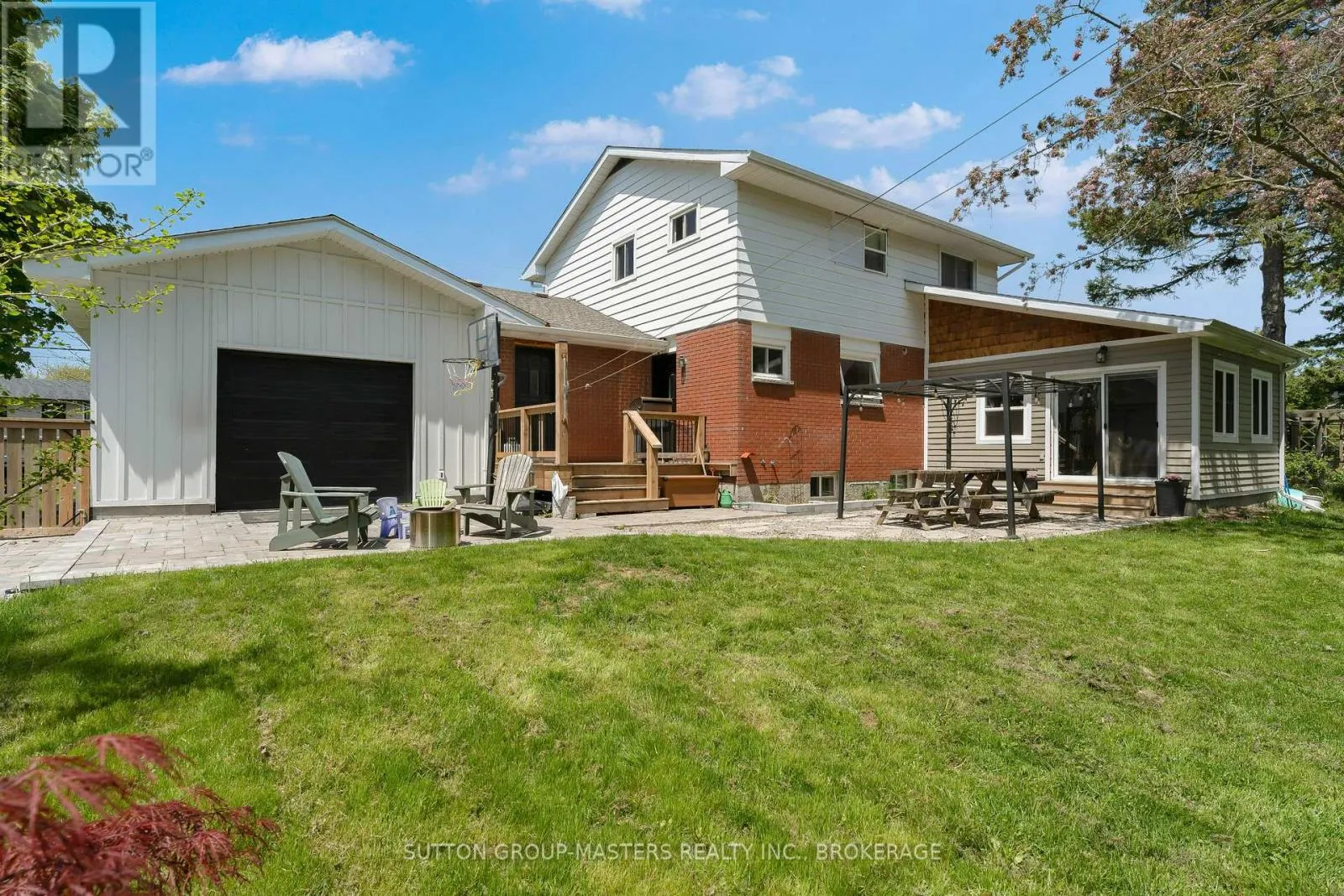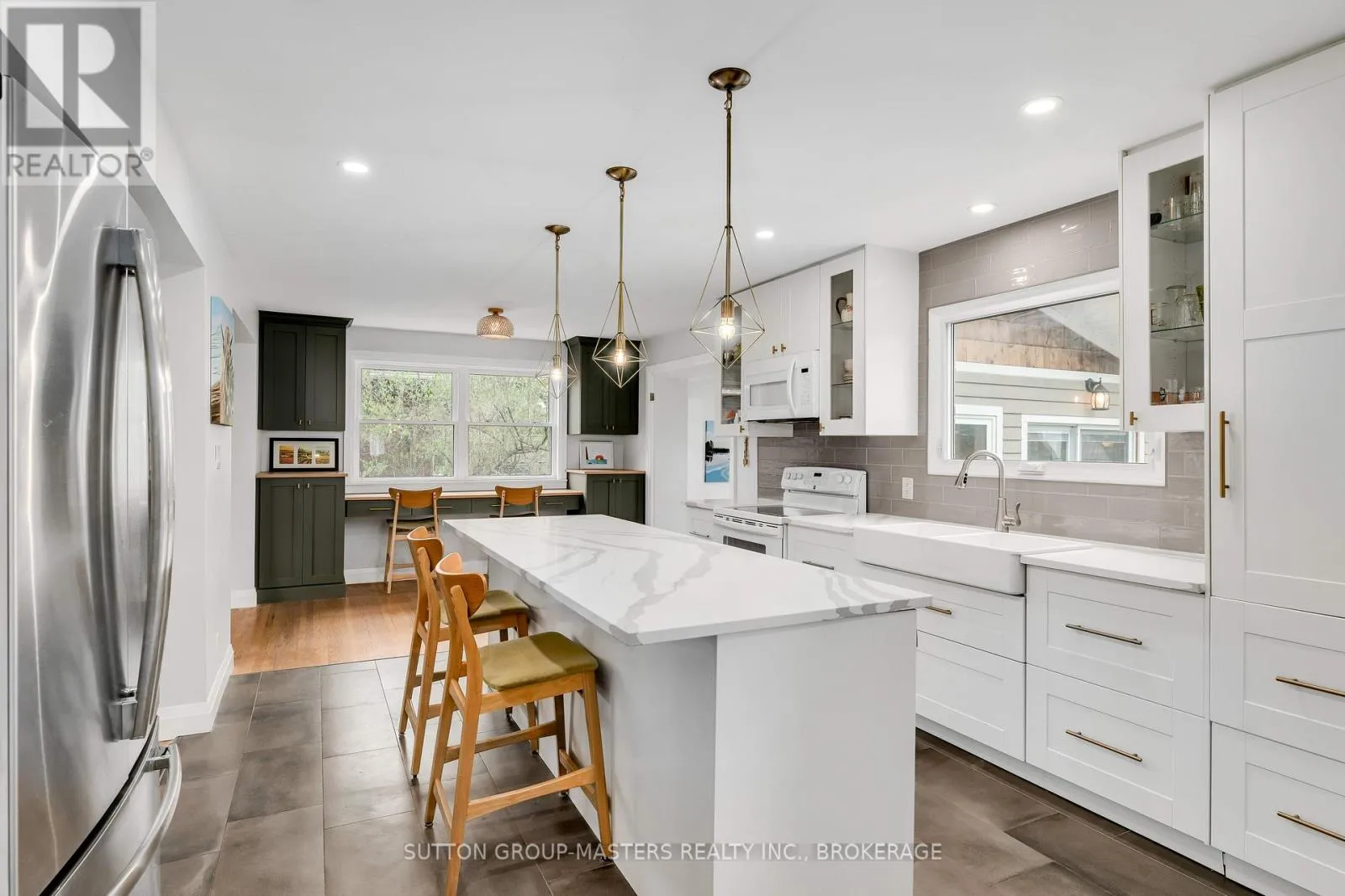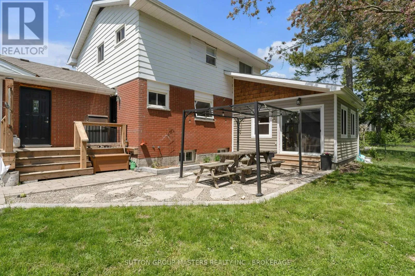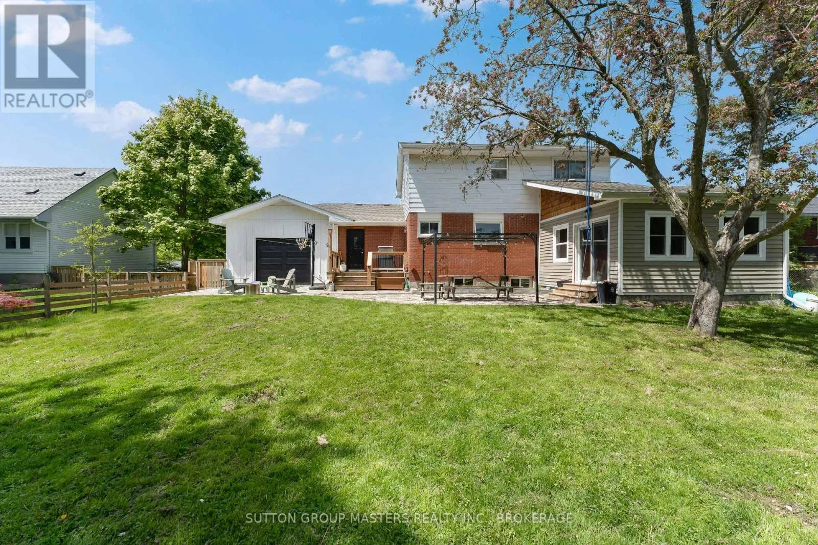Cross Streets: Front Rd and Montgomery Blvd. ** Directions: Front Rd to Montgomery Blvd. Come check out this beautifully updated home in sought-after Point Pleasant neighbourhood! Featuring a double-wide drive, 2.5-car garage, and a newer covered porch, this home offers great curb appeal upon first arriving. Inside, enjoy a spacious foyer with two closets, hardwood flooring, formal dining with wood fireplace, and a semi open-concept kitchen with Quartz counters, large island, modern tile backsplash, new cabinetry and pantry. The sunken family room addition boasts high ceilings, built-in shelving, and a gas fireplace. Upstairs features 4 bright bedrooms, including a large primary, 4pc bathroom and fully renovated 3pc bathroom with rain shower. As you head to the lower level, you will appreciate the fully finished space offering a bright family room and 5th bedroom. The fully fenced backyard is every family's dream with two patios, gazebo and loads of green space. This home is situated in a family-friendly neighbourhood, only a short walk to Lake Ontario, Jorene Park and R.G. Sinclair Public School. Recent updates include the paved drive (2025), shingles (2021), furnace (2022), A/C (2015), hot water tank (2024) and the majority of windows have been done in last 10 years. This home shows even better in person - come take a tour for yourself! (id:27476)