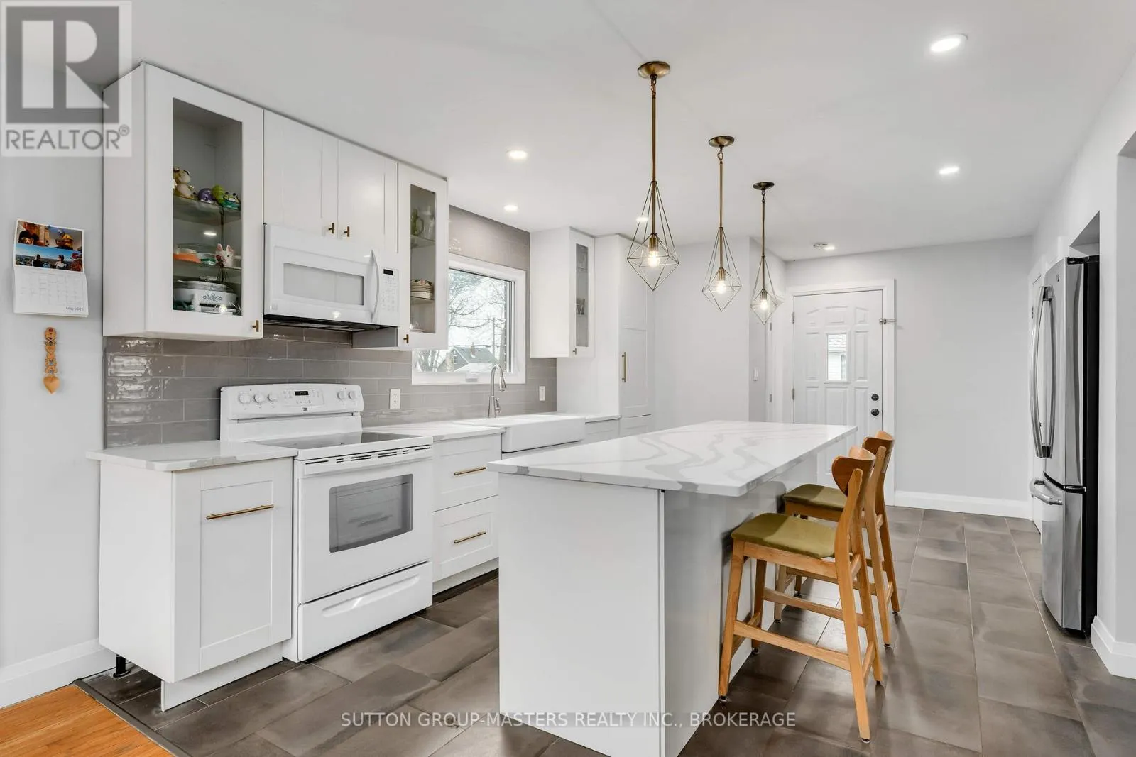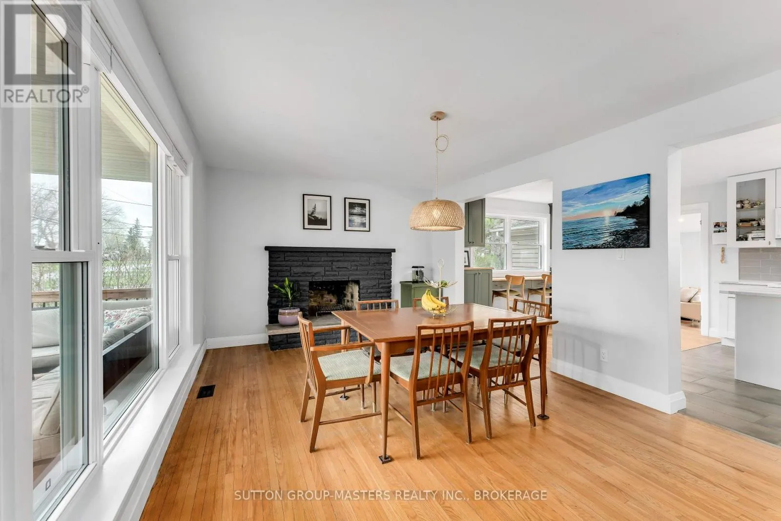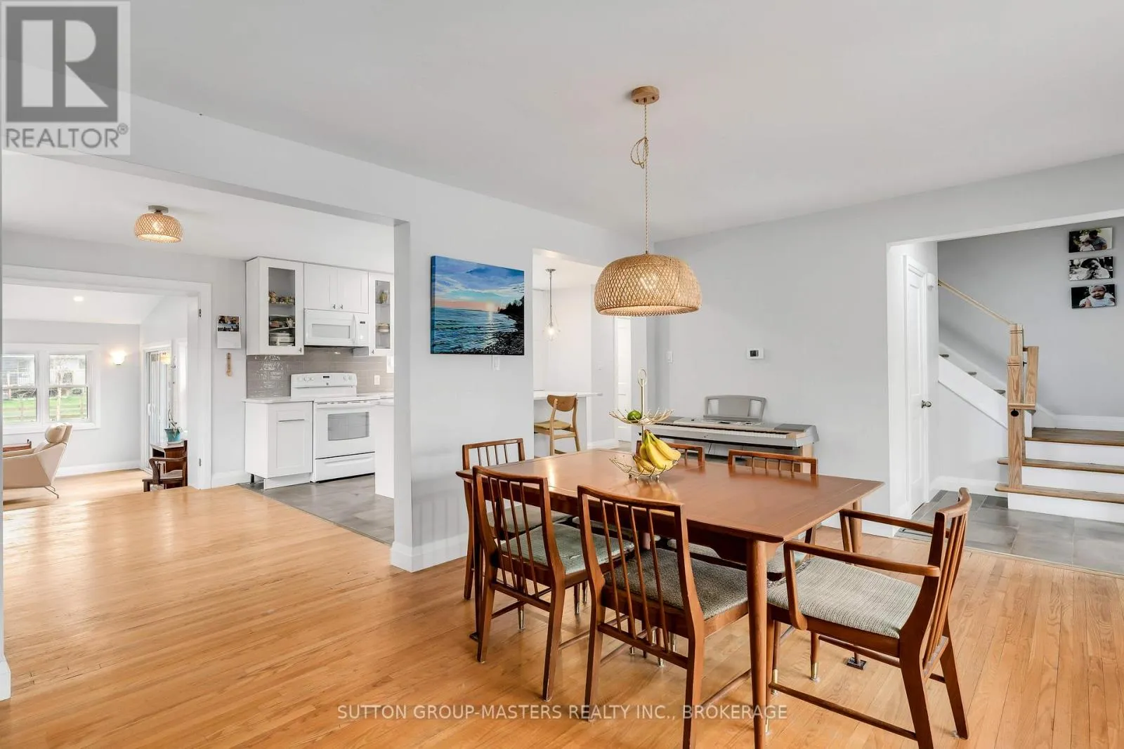 Cross Streets: Front Rd and Montgomery Blvd. ** Directions: Front Rd to Montgomery Blvd. Come check out this beautifully updated home in sought-after Point Pleasant neighbourhood! Featuring a double-wide drive, 2.5-car garage, and a newer covered porch, this home offers great curb appeal upon first arriving. Inside, enjoy a spacious foyer with two closets, hardwood flooring, formal dining with wood fireplace, and a semi open-concept kitchen with Quartz counters, large island, modern tile backsplash, new cabinetry and pantry. The sunken family room addition boasts high ceilings, built-in shelving, and a gas fireplace. Upstairs features 4 bright bedrooms, including a large primary, 4pc bathroom and fully renovated 3pc bathroom with rain shower. As you head to the lower level, you will appreciate the fully finished space offering a bright family room and 5th bedroom. The fully fenced backyard is every family's dream with two patios, gazebo and loads of green space. This home is situated in a family-friendly neighbourhood, only a short walk to Lake Ontario, Jorene Park and R.G. Sinclair Public School. Recent updates include the paved drive (2025), shingles (2021), furnace (2022), A/C (2015), hot water tank (2024) and the majority of windows have been done in last 10 years. This home shows even better in person - come take a tour for yourself! (id:27476)