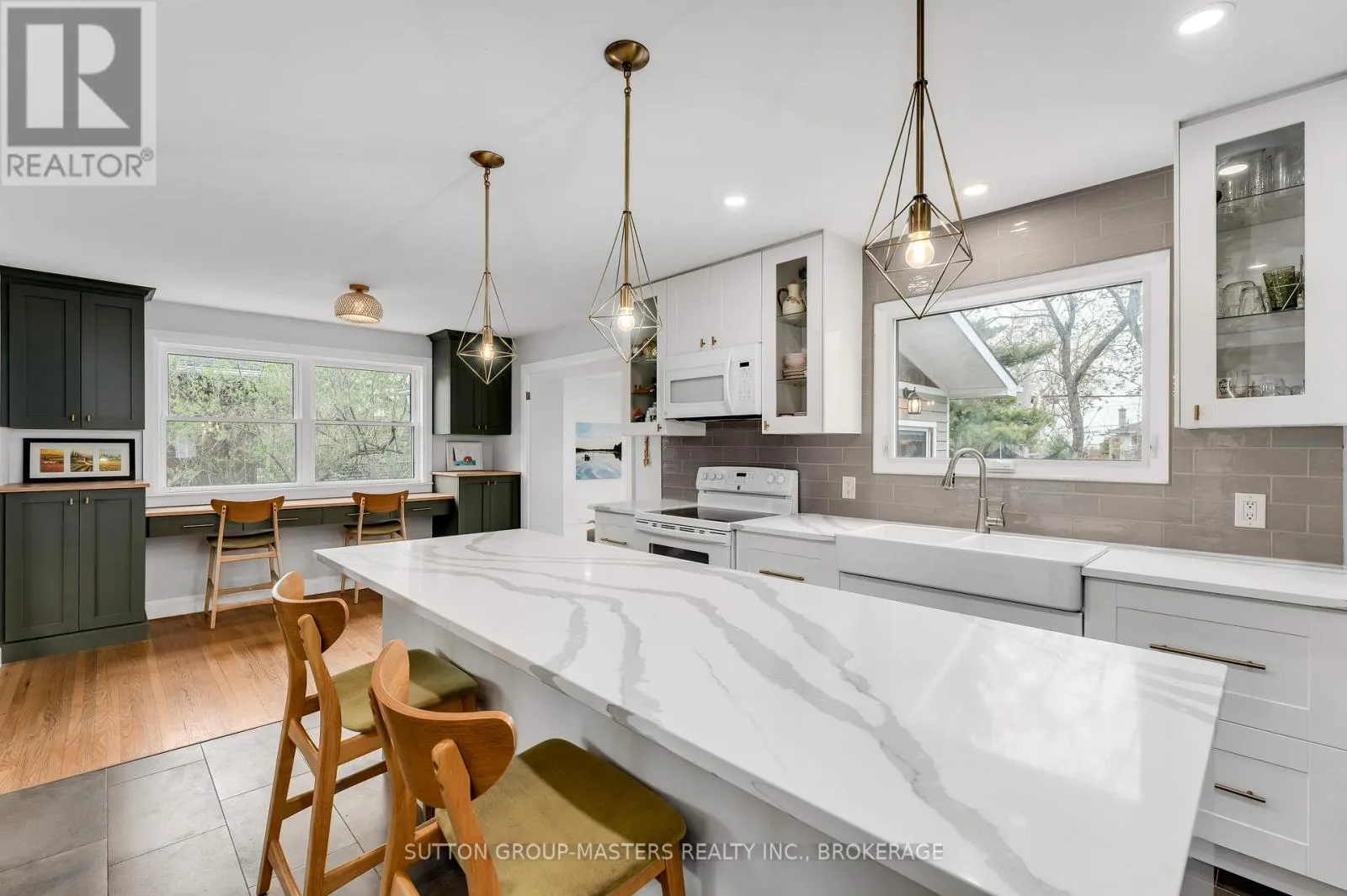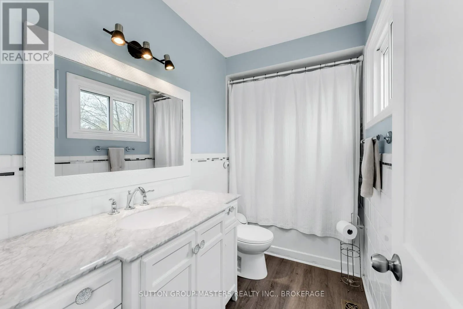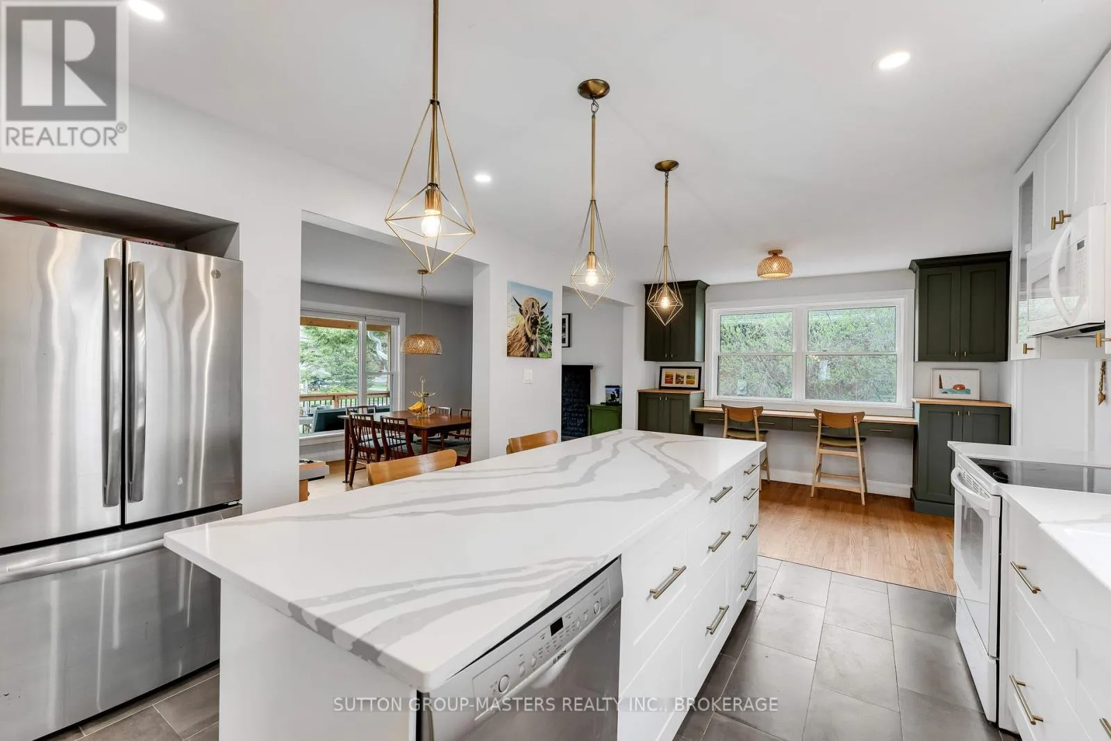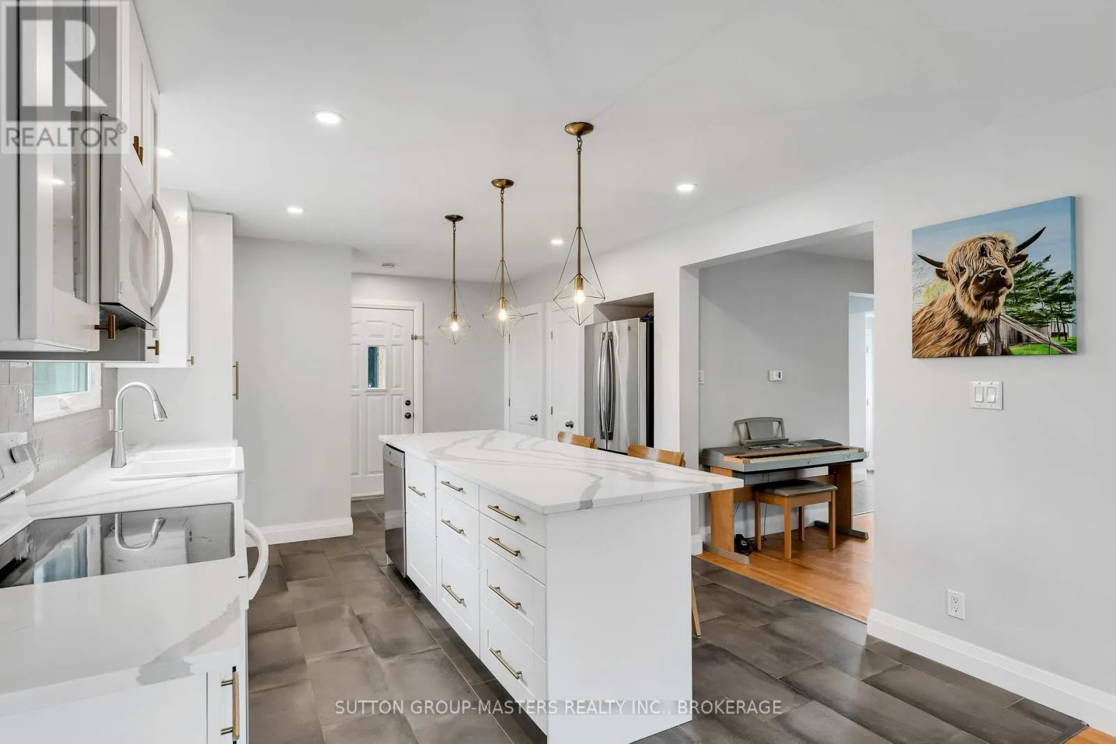 Cross Streets: Front Rd and Montgomery Blvd. ** Directions: Front Rd to Montgomery Blvd. Come check out this beautifully updated home in sought-after Point Pleasant neighbourhood! Featuring a double-wide drive, 2.5-car garage, and a newer covered porch, this home offers great curb appeal upon first arriving. Inside, enjoy a spacious foyer with two closets, hardwood flooring, formal dining with wood fireplace, and a semi open-concept kitchen with Quartz counters, large island, modern tile backsplash, new cabinetry and pantry. The sunken family room addition boasts high ceilings, built-in shelving, and a gas fireplace. Upstairs features 4 bright bedrooms, including a large primary, 4pc bathroom and fully renovated 3pc bathroom with rain shower. As you head to the lower level, you will appreciate the fully finished space offering a bright family room and 5th bedroom. The fully fenced backyard is every family's dream with two patios, gazebo and loads of green space. This home is situated in a family-friendly neighbourhood, only a short walk to Lake Ontario, Jorene Park and R.G. Sinclair Public School. Recent updates include the paved drive (2025), shingles (2021), furnace (2022), A/C (2015), hot water tank (2024) and the majority of windows have been done in last 10 years. This home shows even better in person - come take a tour for yourself! (id:27476)