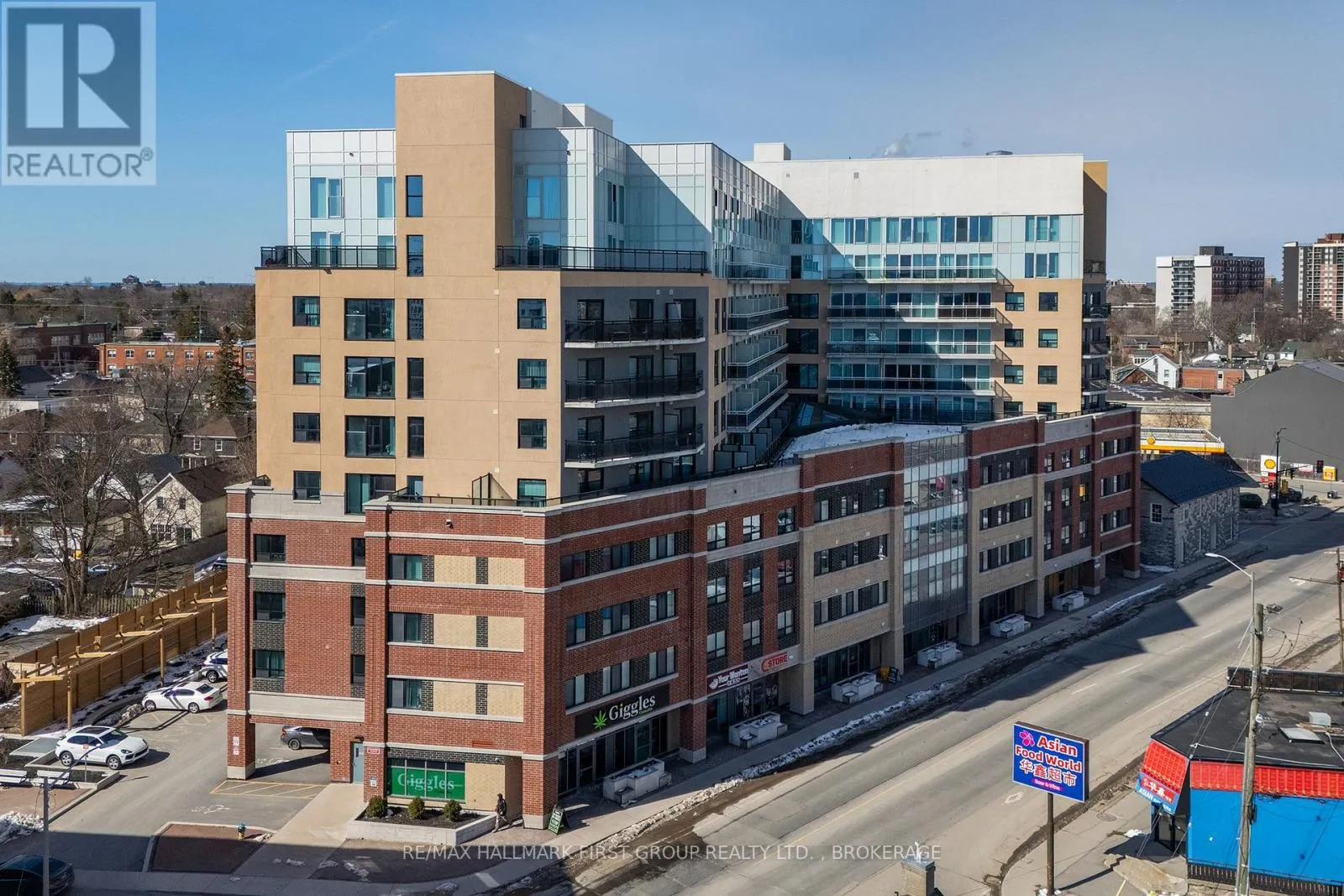Cross Streets: Princess St. & Victoria St. ** Directions: Princess St. between Victoria St. & Nelson St. Welcome to this stylish two-bedroom, two-bathroom condo in downtown Kingston just a short walk to Queens University and all amenities. This unit offers one of the best layouts in the building with two spacious bedrooms, including a primary suite with a private ensuite, and a second full bathroom. You will love the bright, open-concept living and dining area complete with large picturesque windows and a Juliette balcony with expansive views - you can even catch a glimpse of the Cataraqui River. Additional features include a sleek kitchen that is fully equipped as well as in-suite laundry for convenience. Furnishings can be included, making for an easy move-in or a turnkey investment opportunity. Additional building amenities include a large atrium with table games, gym/fitness center and a gorgeous rooftop patio garden for the warmer months. Conveniently located with easy access to Queen's education facilities, St. Lawrence College, nearby hospitals and much more. (id:27476)
