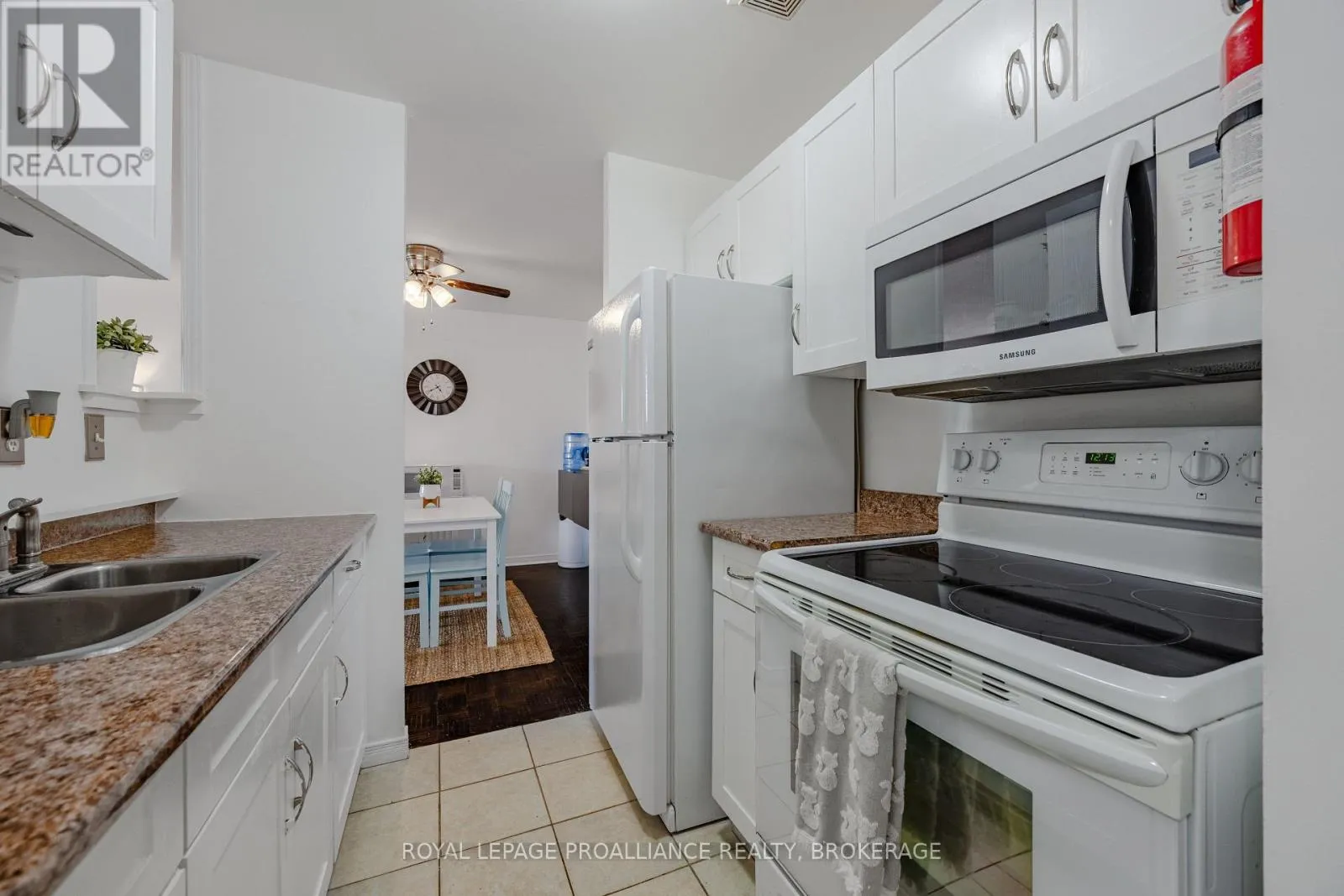 Cross Streets: Bath Road & Portsmouth Avenue. ** Directions: Bath Road to Portsmouth to Eldon Hall Place. Bright and carpet -free 2 bedroom condo just steps from St. Lawrence College! This move-in ready unit features a spacious open layout, updated flooring, and a private balcony. Ideal for students, first-time buyers, or investors, with on-site laundry, parking, and quick access to transit, shopping, anf Lake Ontario Park. Affordable, convenient, and low-maintenance living in a great location! (id:27476)