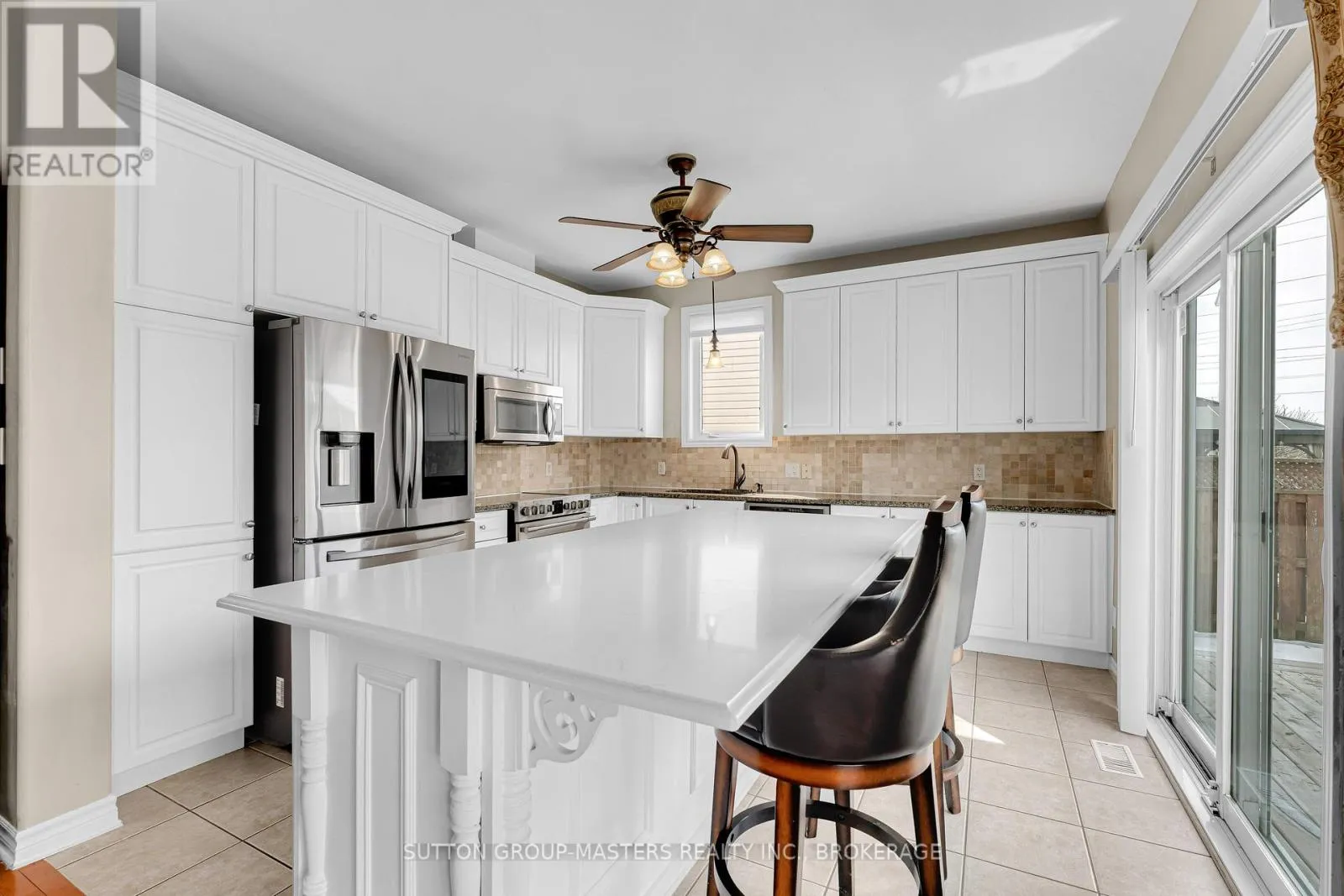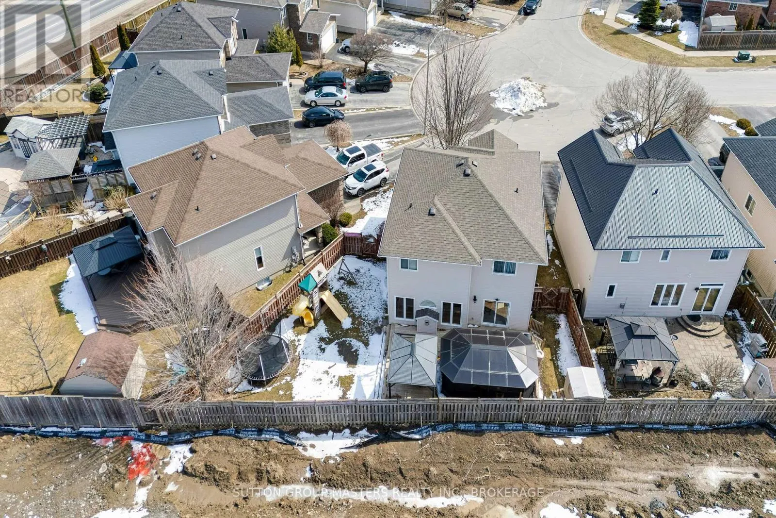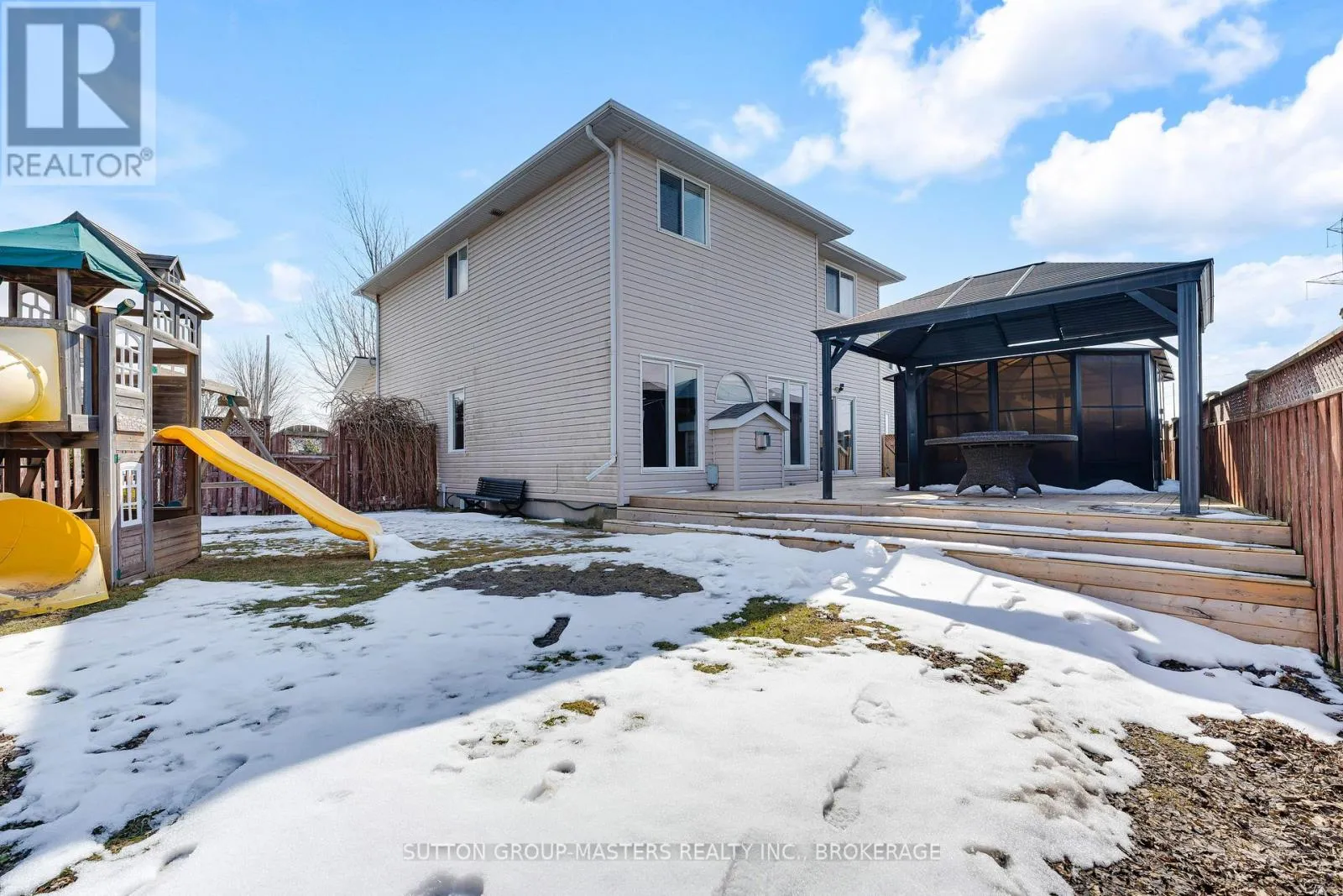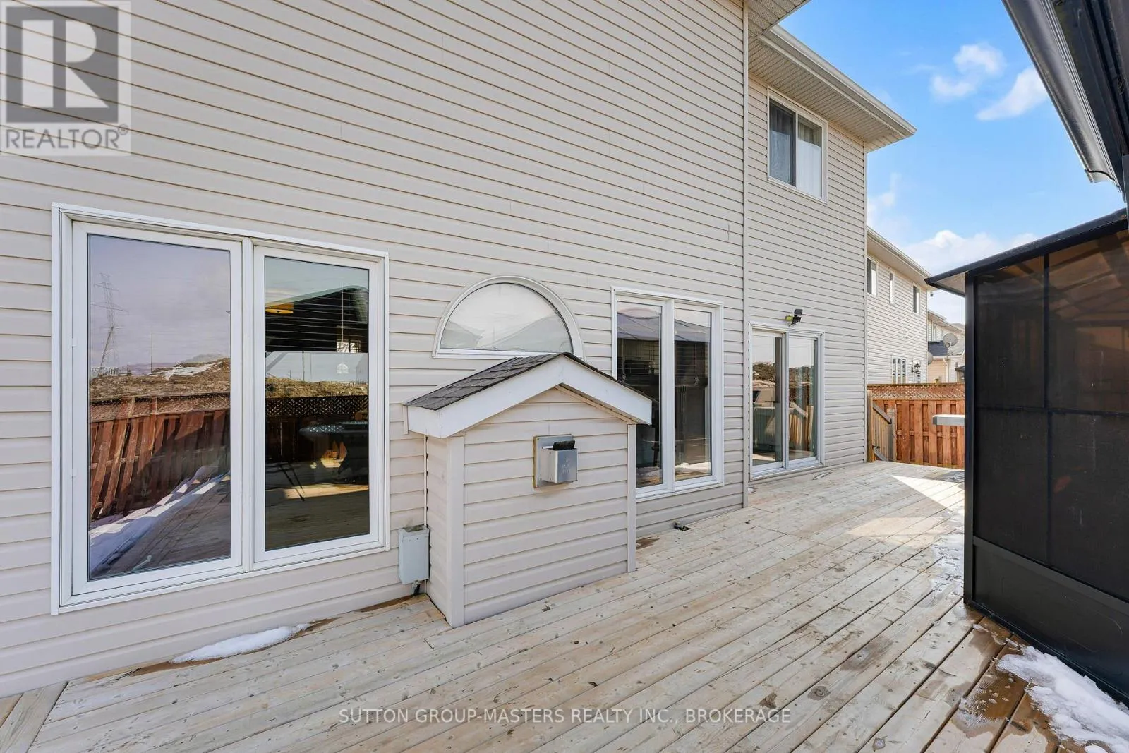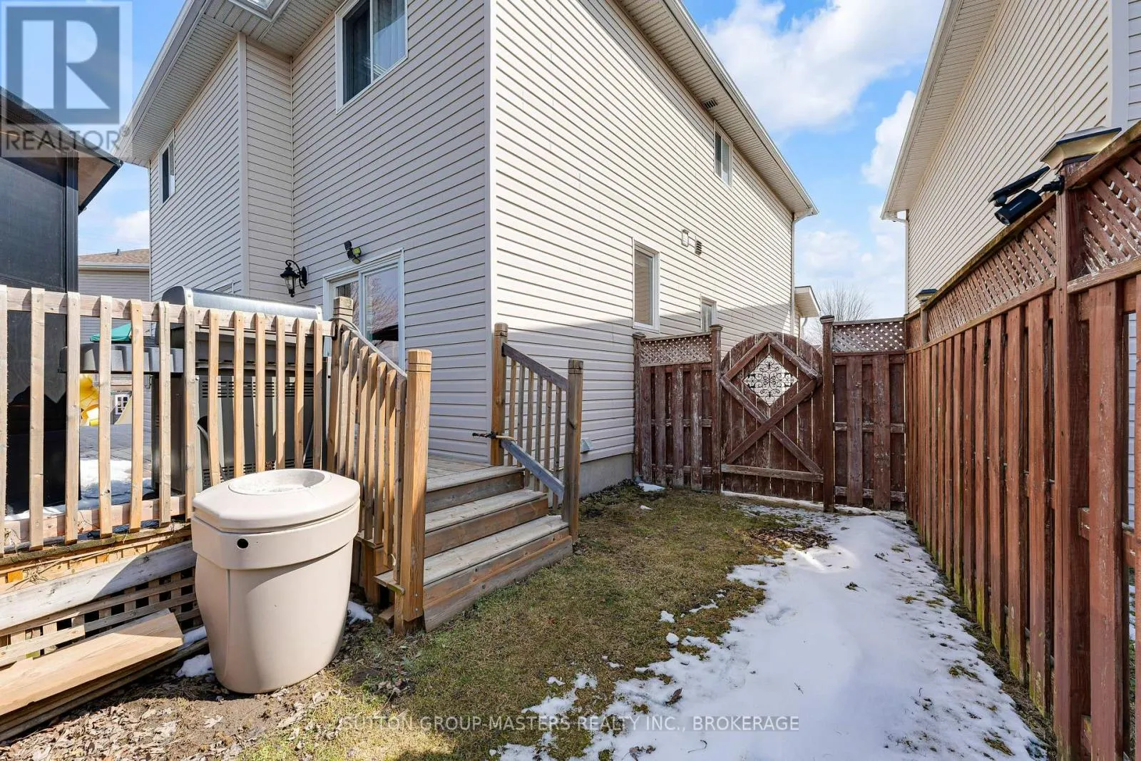 Cross Streets: Wheathill & Swanfield. ** Directions: Centennial to Wheathill to Swanfield. Welcome to 2109 Swanfield St. - An exceptional opportunity to own a property close to everything Kingston has to offer. Built in 2007, this 2-storey, 3-bedroom, 3.5-bathroom home is ready for a new family. Upon entry, you are greeted by a two-storey foyer featuring soaring ceilings and a curved staircase. The home transitions into an open-concept living area, where the dining room, living room, and kitchen provide a perfect setting for both daily life and entertaining. The living room is filled with natural light and anchored by a beautiful gas fireplace, while the kitchen offers ample cabinet space and a massive center island. The main floor also includes a 2-piece bathroom, storage area, and access to the attached two-car garage. Hardwood and tile flooring run throughout both the main and second levels. The second level includes a 4-piece bathroom and three spacious bedrooms, one of which features a Juliette balcony. The primary suite includes a walk-in closet and a 5-piece ensuite. The finished basement offers a large recreation room, a 3-piece bathroom, an office/den, a utility room, and a dedicated laundry room. The fully fenced backyard is accessible via sliding glass doors in the kitchen. Situated on a pie-shaped lot, this is one of the largest yards in the area, featuring a spacious deck and plenty of green space for outdoor activities. Recent updates include: Roof, furnace, second-floor hardwood, and basement carpet (all less than 10 years old) - Kitchen island (id:27476)