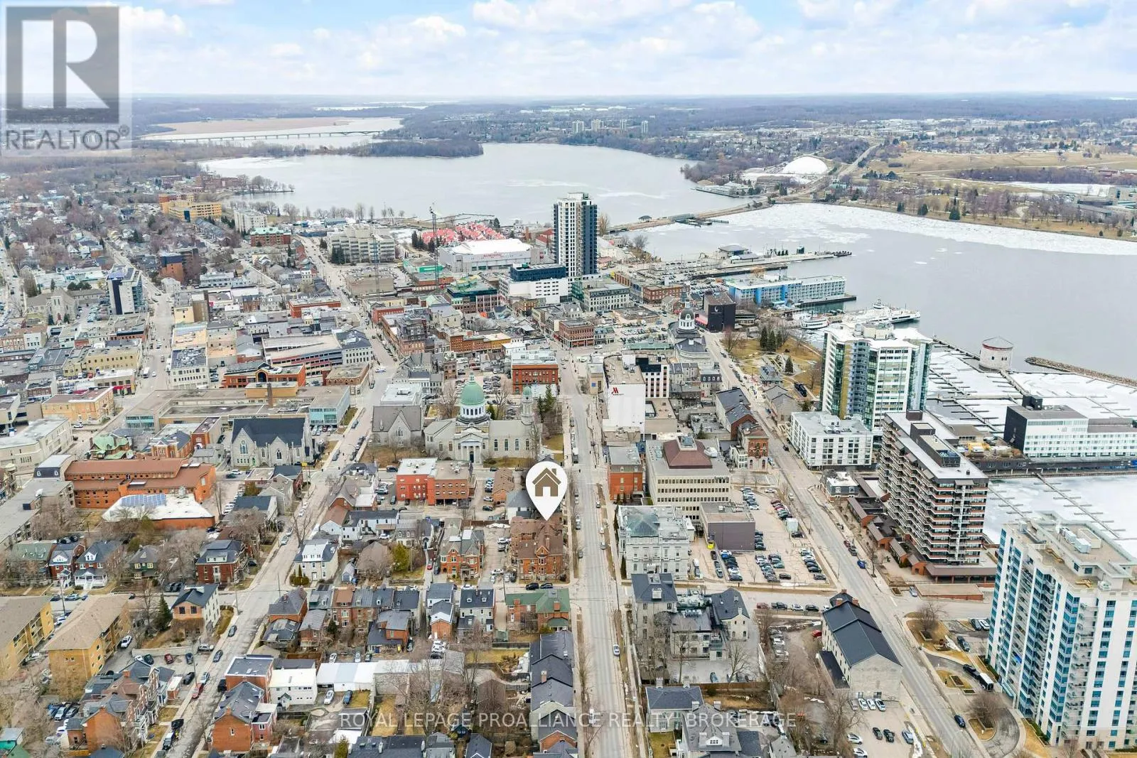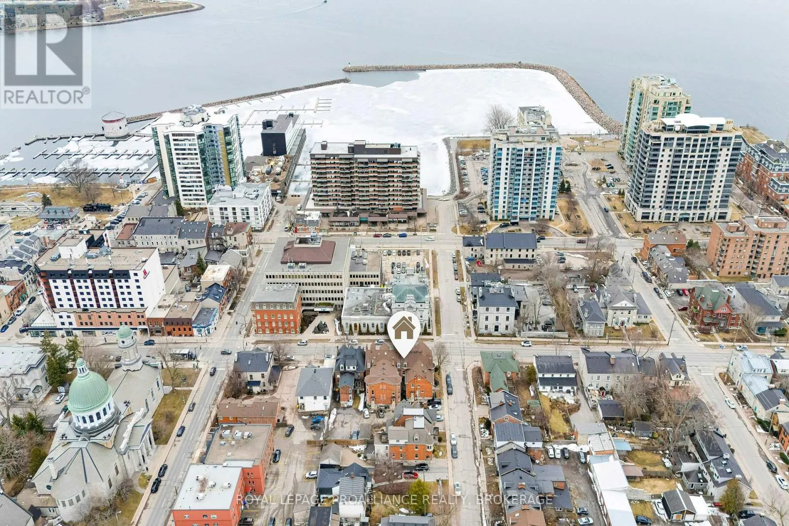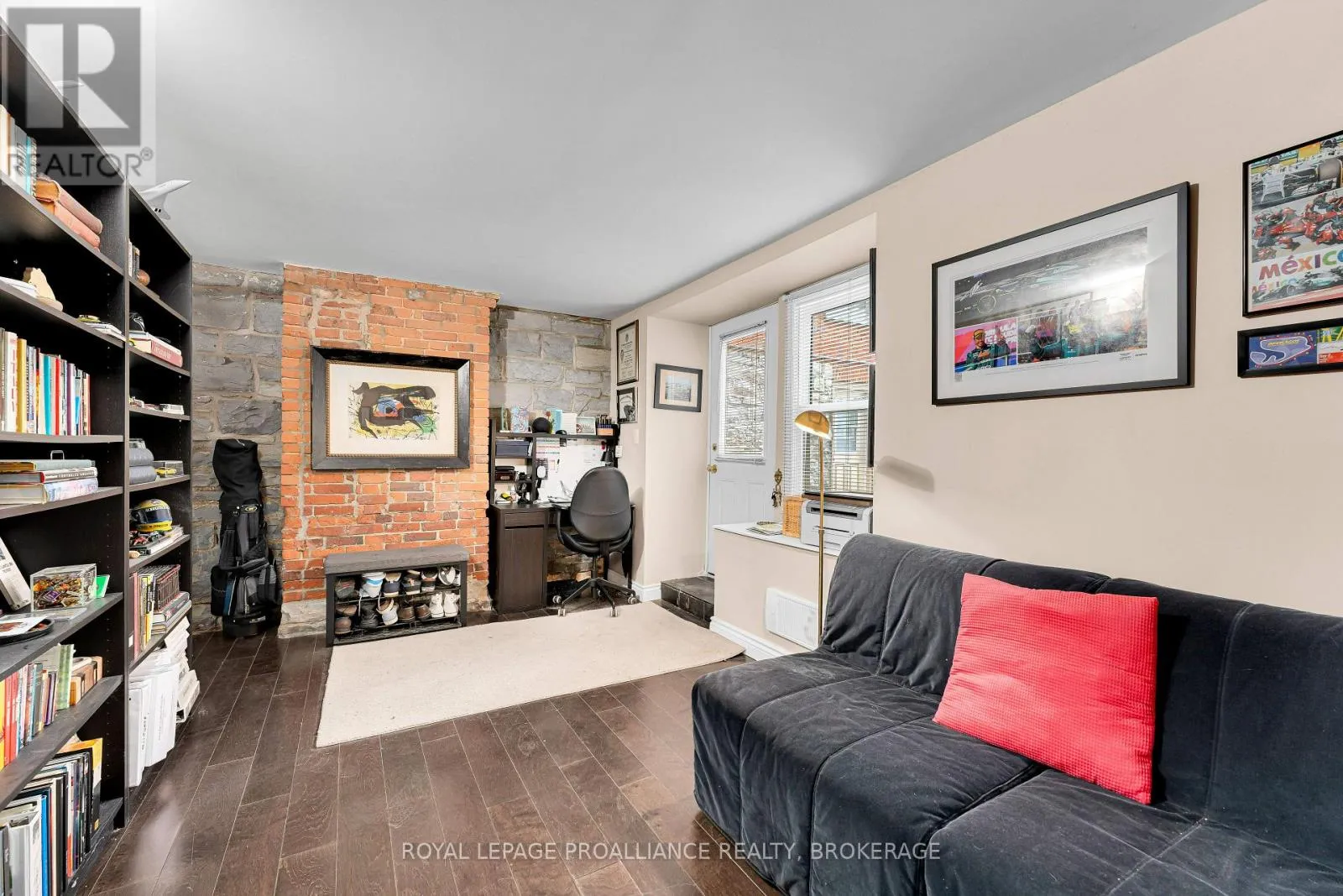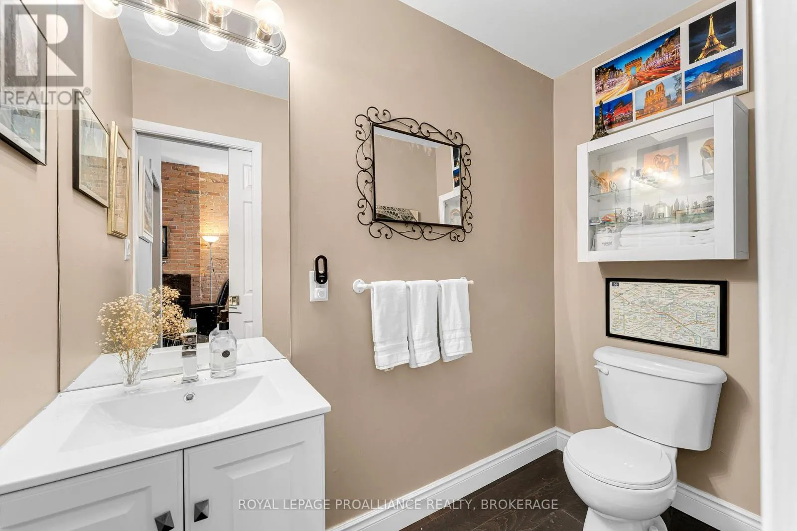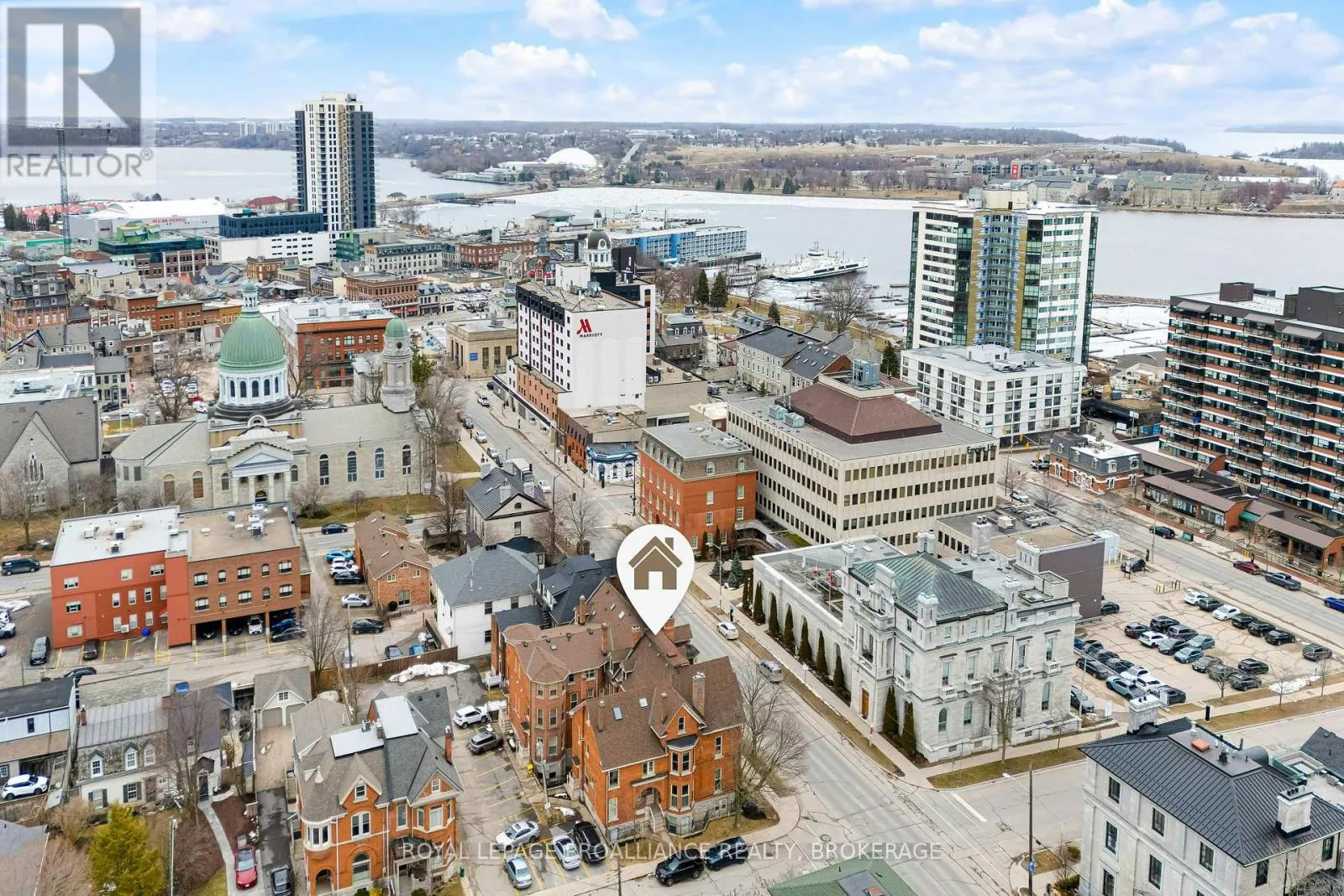 Cross Streets: Johnson Street. ** Directions: King Street between Johnson Street & William Street. Welcome to the Kilborn Building, ideally located in the heart of Kingston's historic Sydenham Ward. This charming two-bedroom condominium blends character and comfort with exposed brick and limestone accents that highlight the building's heritage. The thoughtfully updated kitchen is functional and just off of the bright living and dining area framed large windows, creating an inviting space for everyday living and entertaining. The layout offers in-suite laundry, two bedrooms, a full bathroom, and a convenient powder room, with the second bedroom providing access to a private patio area just outside the door. Complete with one dedicated parking space, this home is ideally situated within walking distance to Queen's University, Kingston General Hospital, and downtown shops and restaurants, offering a wonderful balance of historic charm and urban convenience. (id:27476)