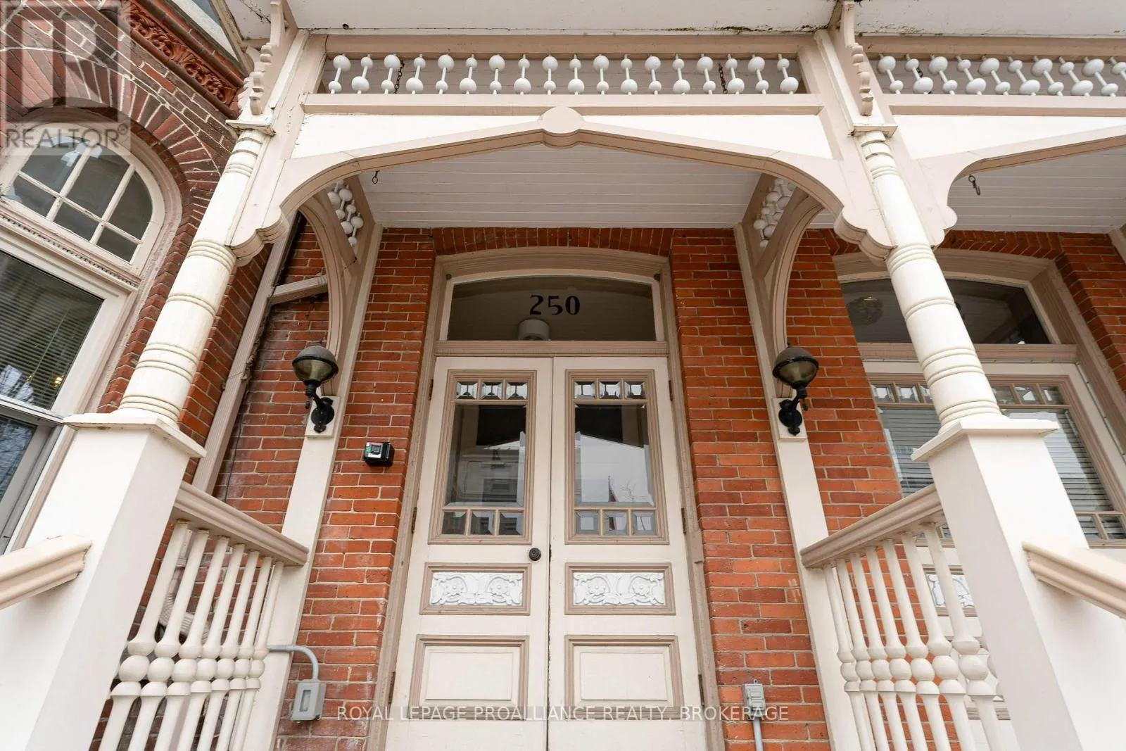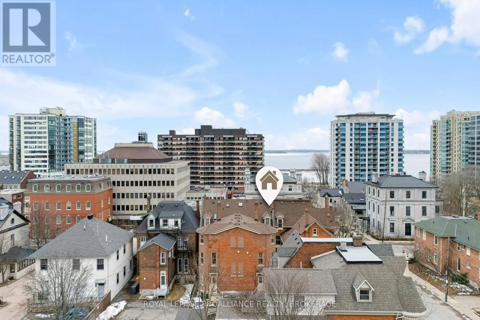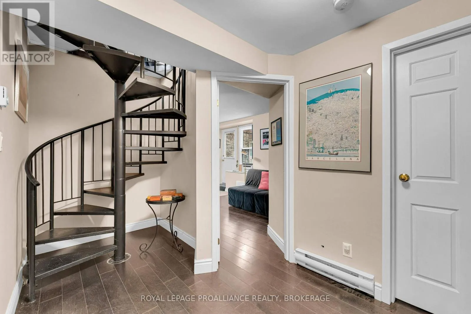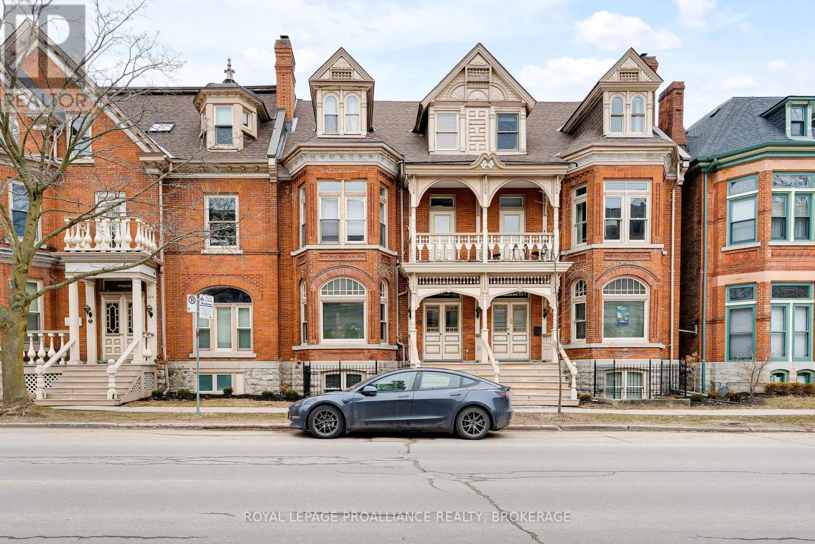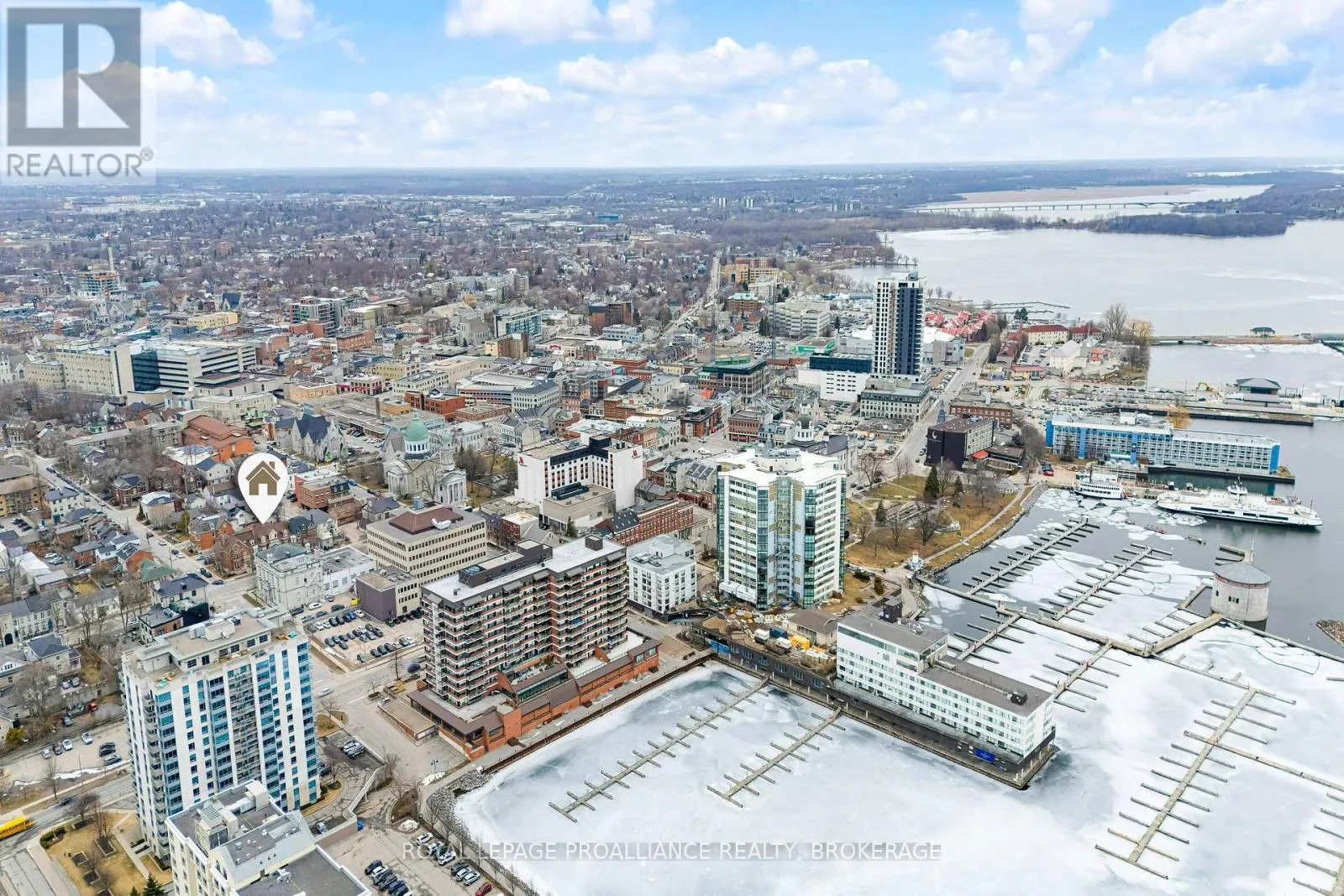 Cross Streets: Johnson Street. ** Directions: King Street between Johnson Street & William Street. Welcome to the Kilborn Building, ideally located in the heart of Kingston's historic Sydenham Ward. This charming two-bedroom condominium blends character and comfort with exposed brick and limestone accents that highlight the building's heritage. The thoughtfully updated kitchen is functional and just off of the bright living and dining area framed large windows, creating an inviting space for everyday living and entertaining. The layout offers in-suite laundry, two bedrooms, a full bathroom, and a convenient powder room, with the second bedroom providing access to a private patio area just outside the door. Complete with one dedicated parking space, this home is ideally situated within walking distance to Queen's University, Kingston General Hospital, and downtown shops and restaurants, offering a wonderful balance of historic charm and urban convenience. (id:27476)