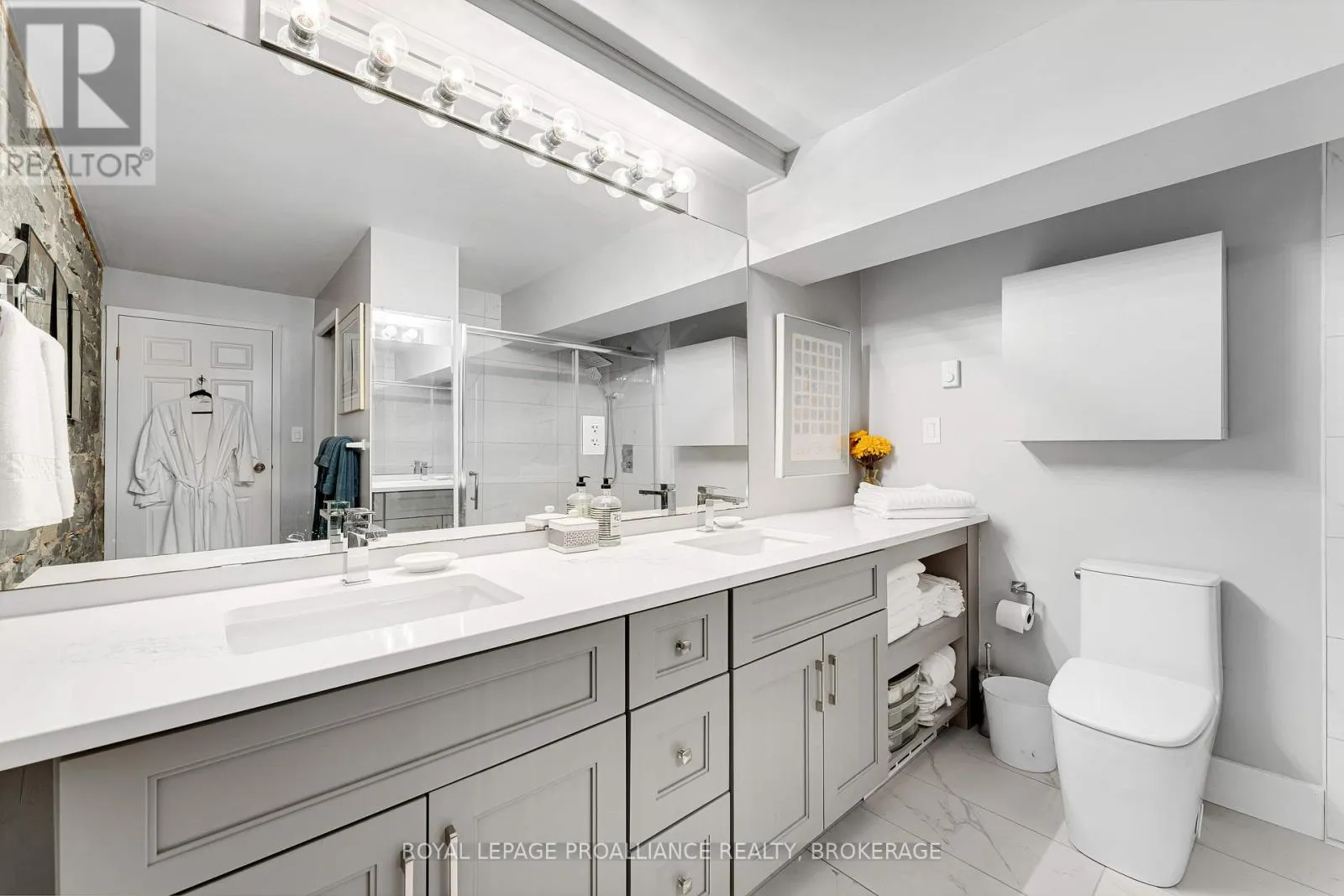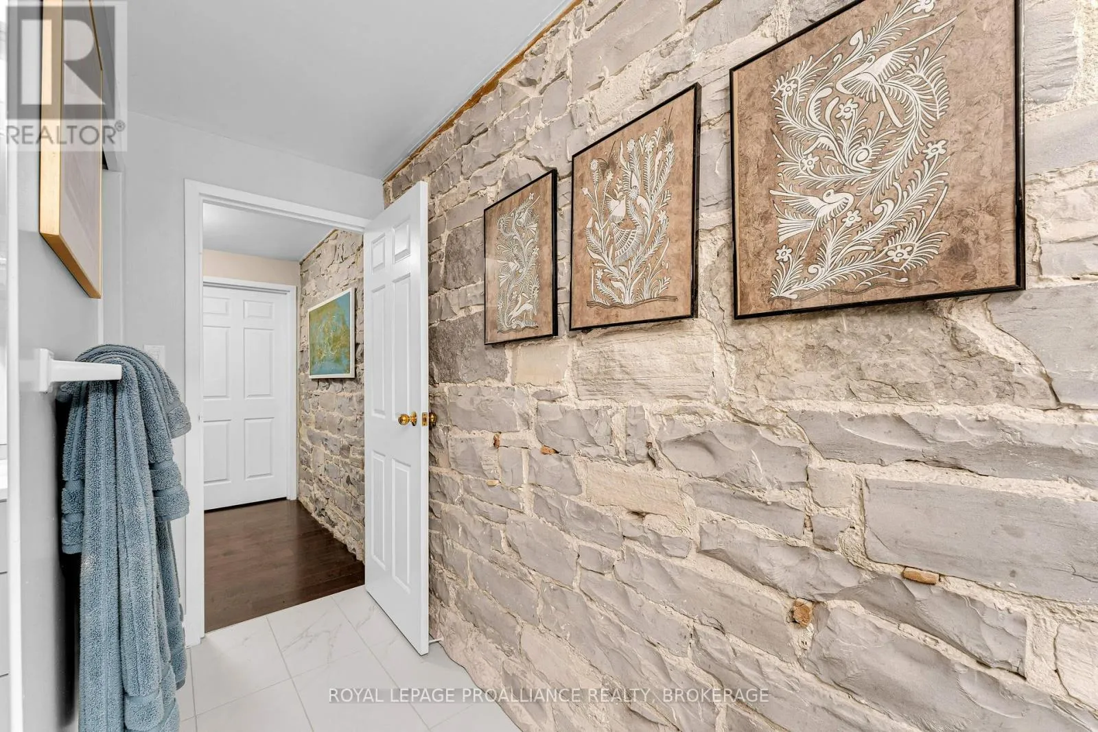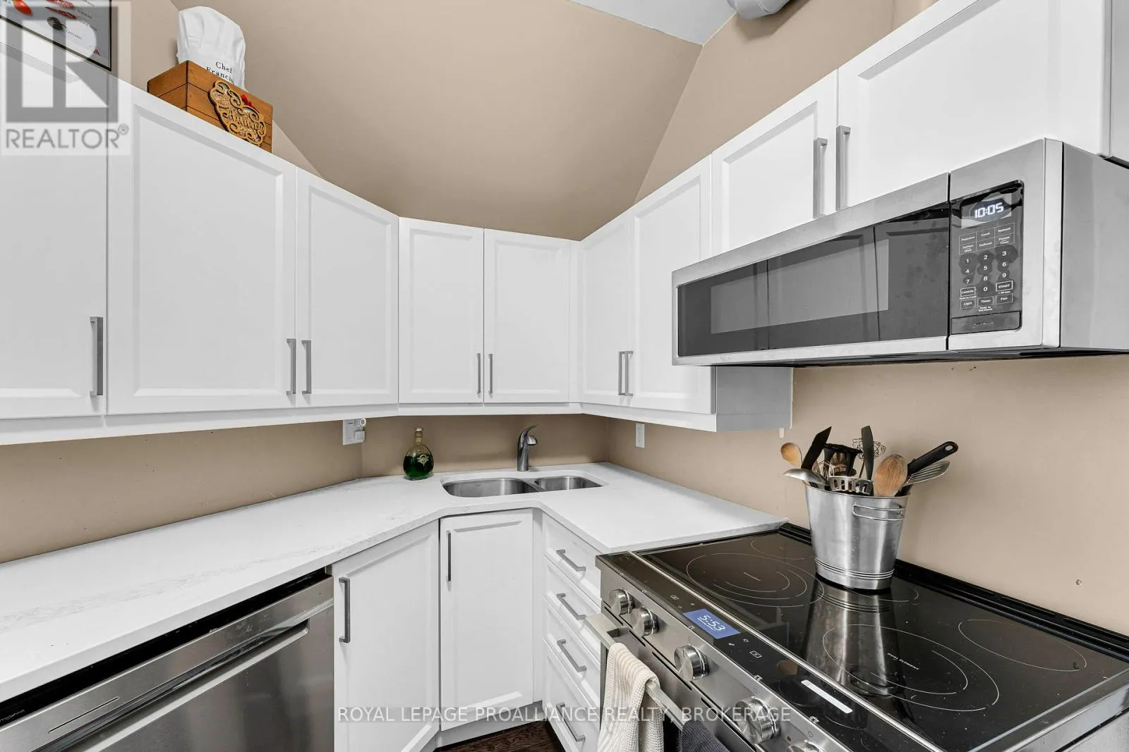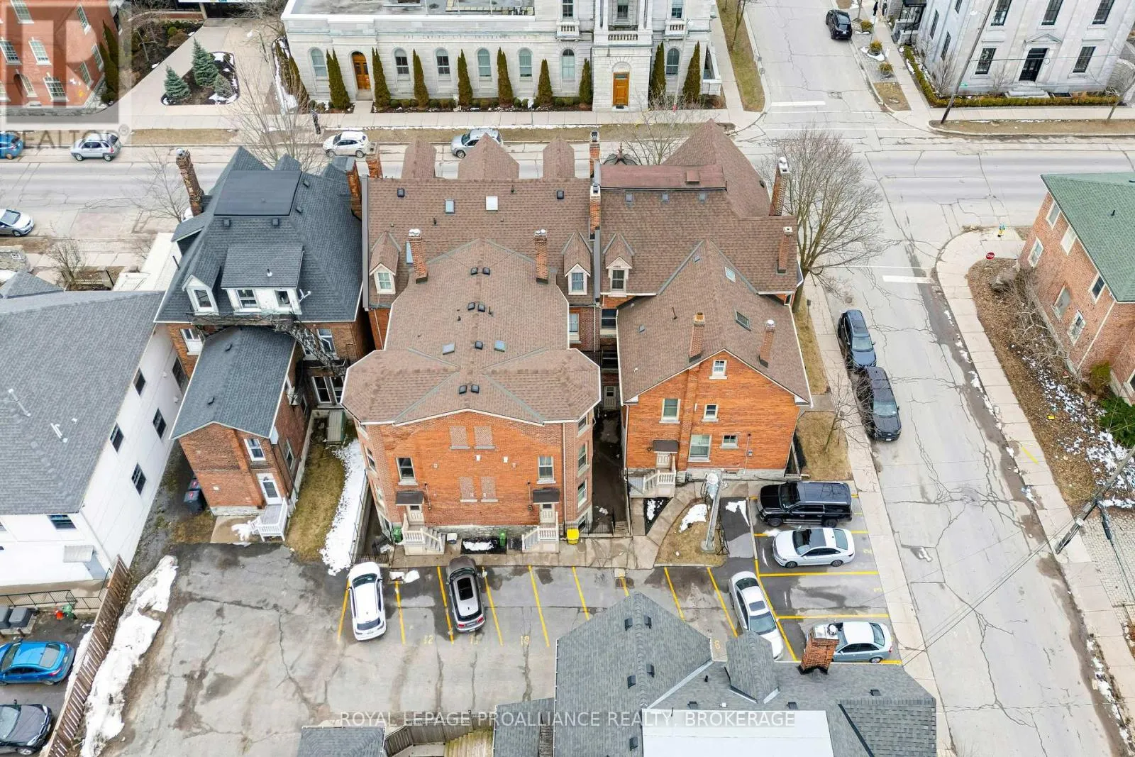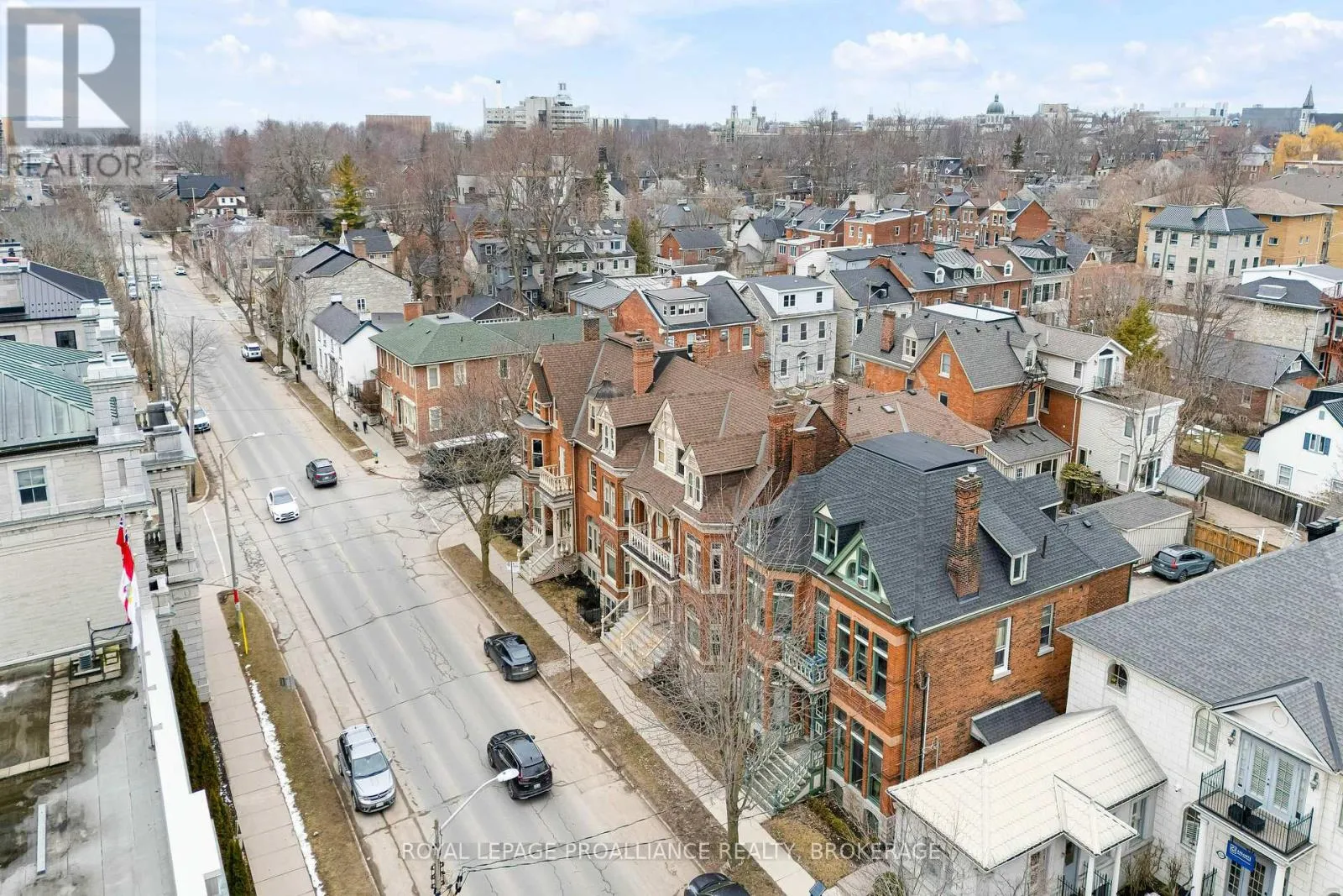 Cross Streets: Johnson Street. ** Directions: King Street between Johnson Street & William Street. Welcome to the Kilborn Building, ideally located in the heart of Kingston's historic Sydenham Ward. This charming two-bedroom condominium blends character and comfort with exposed brick and limestone accents that highlight the building's heritage. The thoughtfully updated kitchen is functional and just off of the bright living and dining area framed large windows, creating an inviting space for everyday living and entertaining. The layout offers in-suite laundry, two bedrooms, a full bathroom, and a convenient powder room, with the second bedroom providing access to a private patio area just outside the door. Complete with one dedicated parking space, this home is ideally situated within walking distance to Queen's University, Kingston General Hospital, and downtown shops and restaurants, offering a wonderful balance of historic charm and urban convenience. (id:27476)