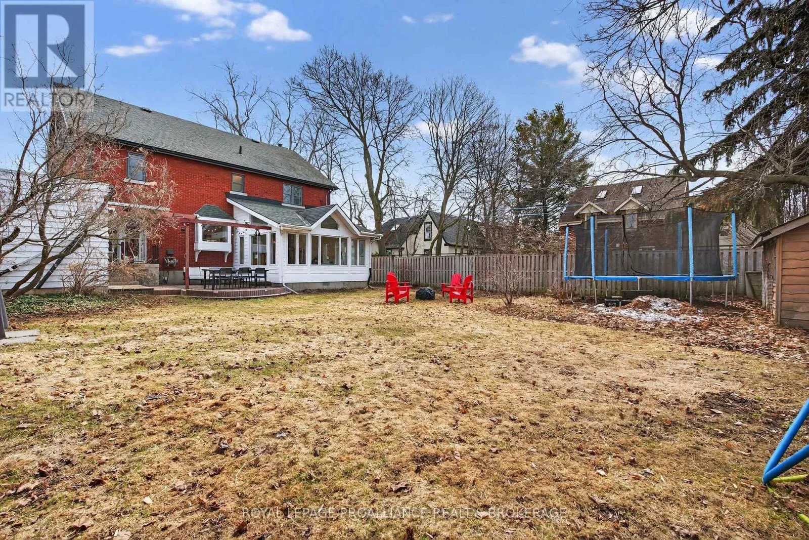 Cross Streets: Johnson Street and Willingdon Avenue. ** Directions: Johnson Street to Willingdon Avenue. Welcome to 304 Willingdon Avenue - an elegant and beautifully maintained family home, ideally situated in one of the area's most sought-after neighbourhoods, just a short walk to highly regarded Winston Churchill Public School. This bright two-storey residence offers a timeless layout designed for both everyday living and entertaining. The upper level features four generously sized bedrooms, including a spacious primary suite complete with a walk-in closet and private ensuite, along with a well-appointed four-piece family bathroom. Natural light fills every room, creating a warm and inviting ambiance. On the main floor, you'll find a gracious living room anchored by a gas fireplace, a dining area, and a thoughtfully designed kitchen with abundant counter space. A welcoming foyer, powder room, multiple storage closets, and a generous front office provide both convenience and versatility. At the rear, a sun-filled family room/sunroom with western exposure overlooks the expansive backyard, an ideal setting for relaxing or entertaining. The lower level offers excellent ceiling height and a great layout, including a large recreation room, a flexible space perfect for a home gym or additional bedroom, and the opportunity to add a future bathroom. Ample storage is found throughout. Additional highlights include a single-car attached garage with a paved driveway, a fully fenced yard with a shed, and outdoor features including a treehouse and sandbox. Extensive updates enhance comfort and peace of mind, including roof shingles (2019), forced air natural gas furnace (2017), central air conditioning, updated windows (2019), and a gas fireplace (2014). More recent improvements include the kitchen and office (2020/2021), basement finishing (2024), ensuite updates (2024) and concrete repairs (2025). This exceptional home combines space, style, and an unbeatable location - perfect for families seeking a refined yet functional place to call home. (id:27476)