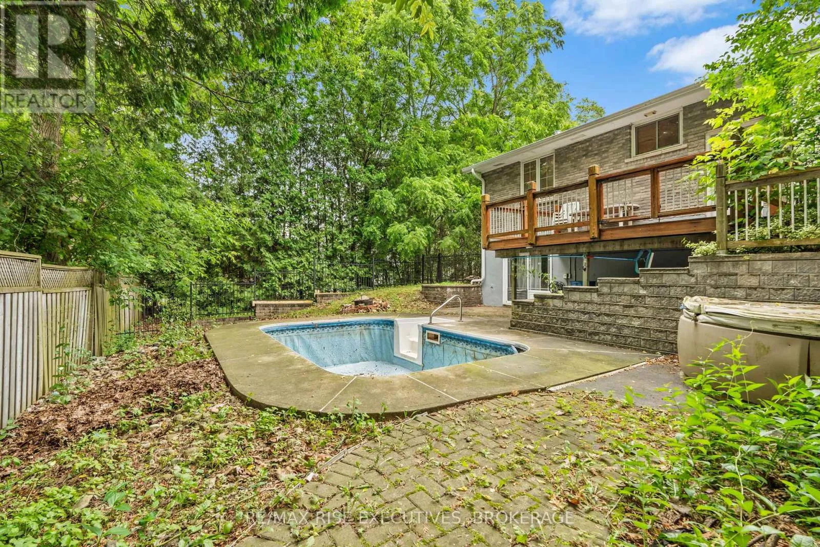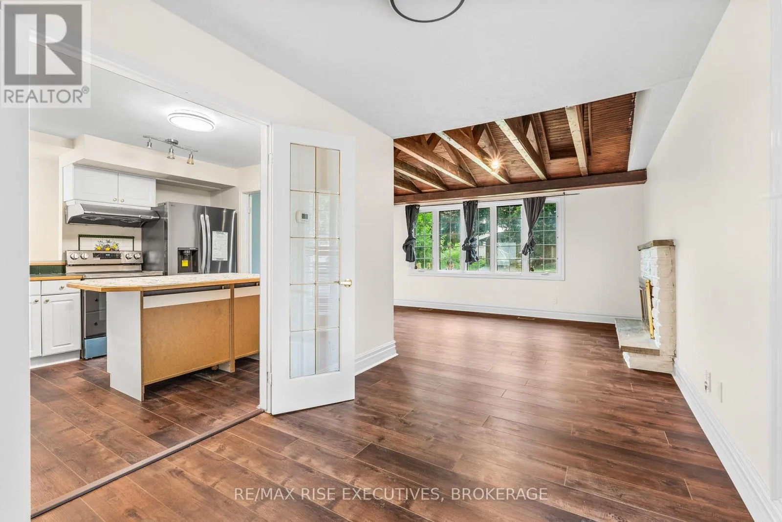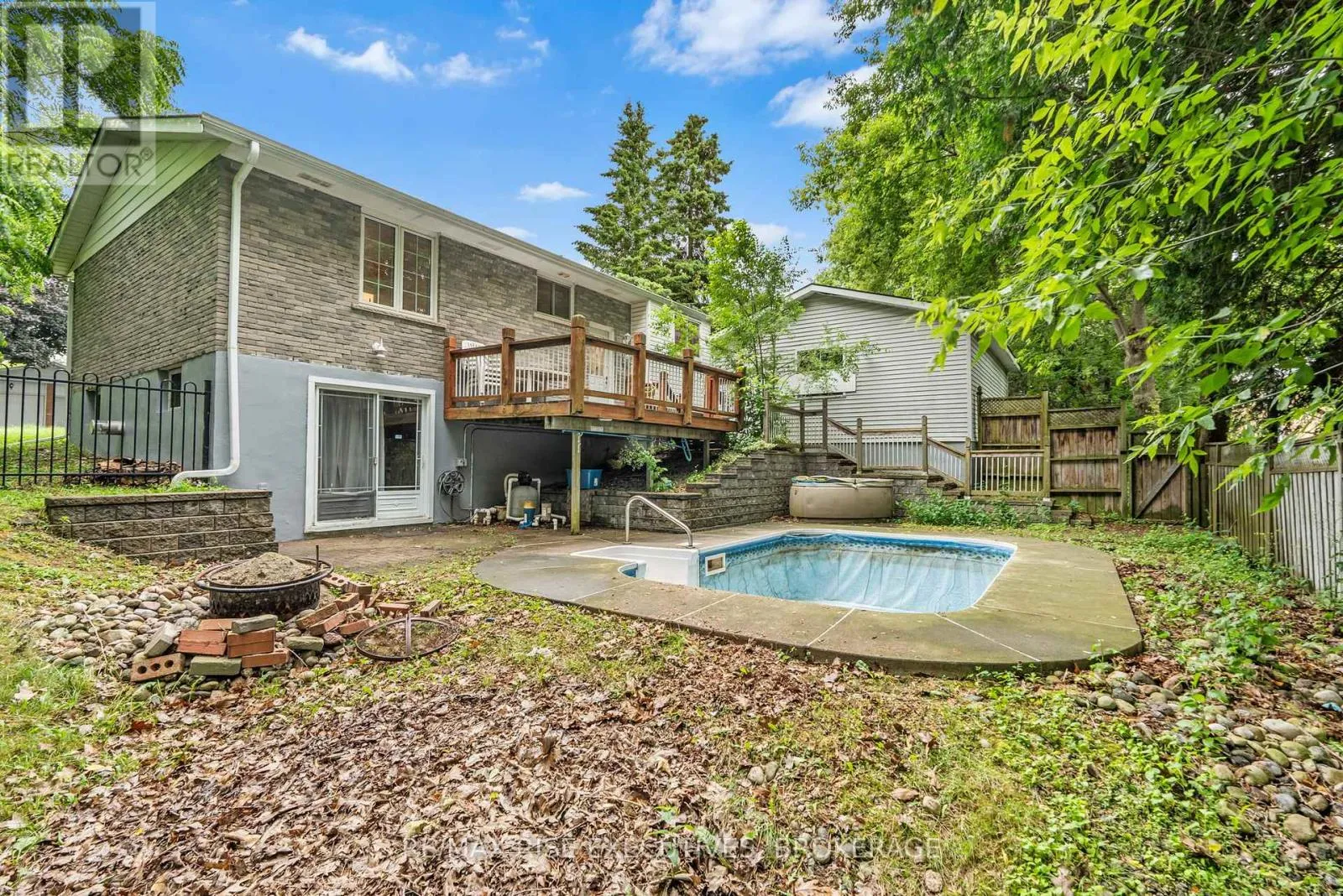 Cross Streets: High Gate Park/Mona. ** Directions: Taylor Kidd BLVD left on Mona Drive and right. Welcome to 687 High Gate Park Drive - a charming detached bungalow nestled in the heart of Kingston's family-friendly Bayridge neighbourhood. This beautifully updated home is situated on a huge corner lot, offering exceptional space and privacy. Step inside to a carpet-free main floor featuring exposed beams in the living room and a cozy wood-burning fireplace. The separate dining room can be closed off from the kitchen with French doors, creating the perfect setting for intimate meals with family and friends. The efficiently designed kitchen includes an island and bar, ideal for impromptu meals or buffet-style entertaining, with a second set of French doors opening into the living room to create a bright, inviting flow throughout the space. This home has been freshly painted and showcases new flooring throughout, giving it a modern, move-in ready feel. Enjoy peace of mind with brand new appliances, including fridge, stove, dishwasher, washer, and dryer, as well as a brand new furnace for added comfort and efficiency. From the rear kitchen door, step out onto the deck overlooking your private backyard oasis, complete with an in-ground pool and hot tub - perfect for entertaining all summer long. An oversized driveway offers parking for 6+ vehicles, making this home ideal for families and hosting guests. A fantastic opportunity to own a well-maintained, updated home on a spacious lot in a desirable location. (id:27476)