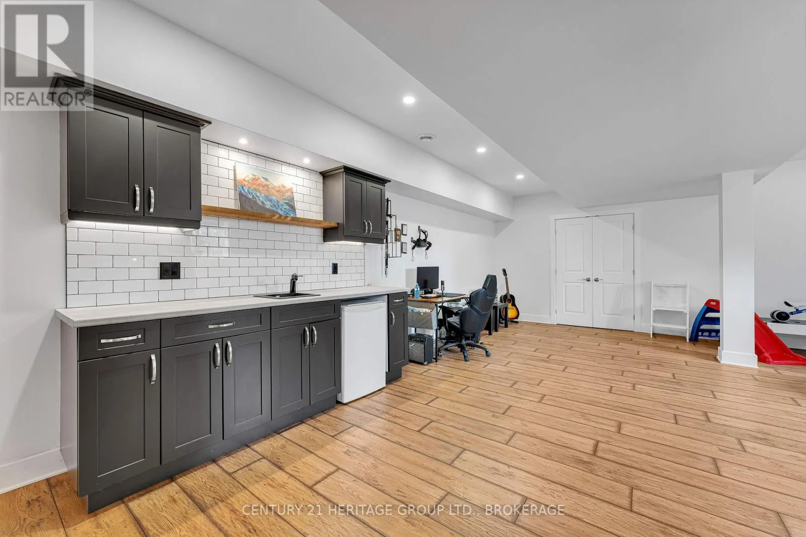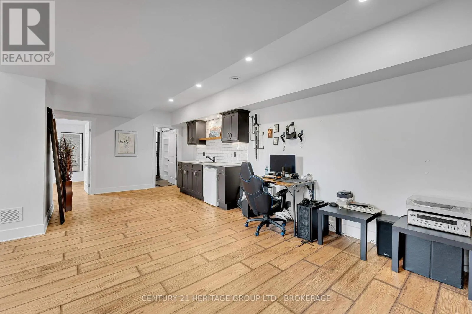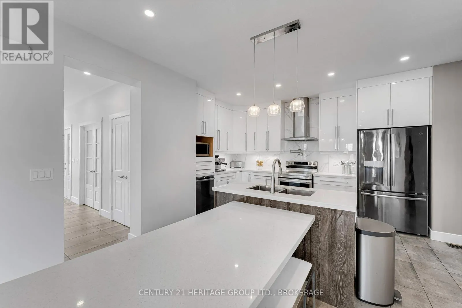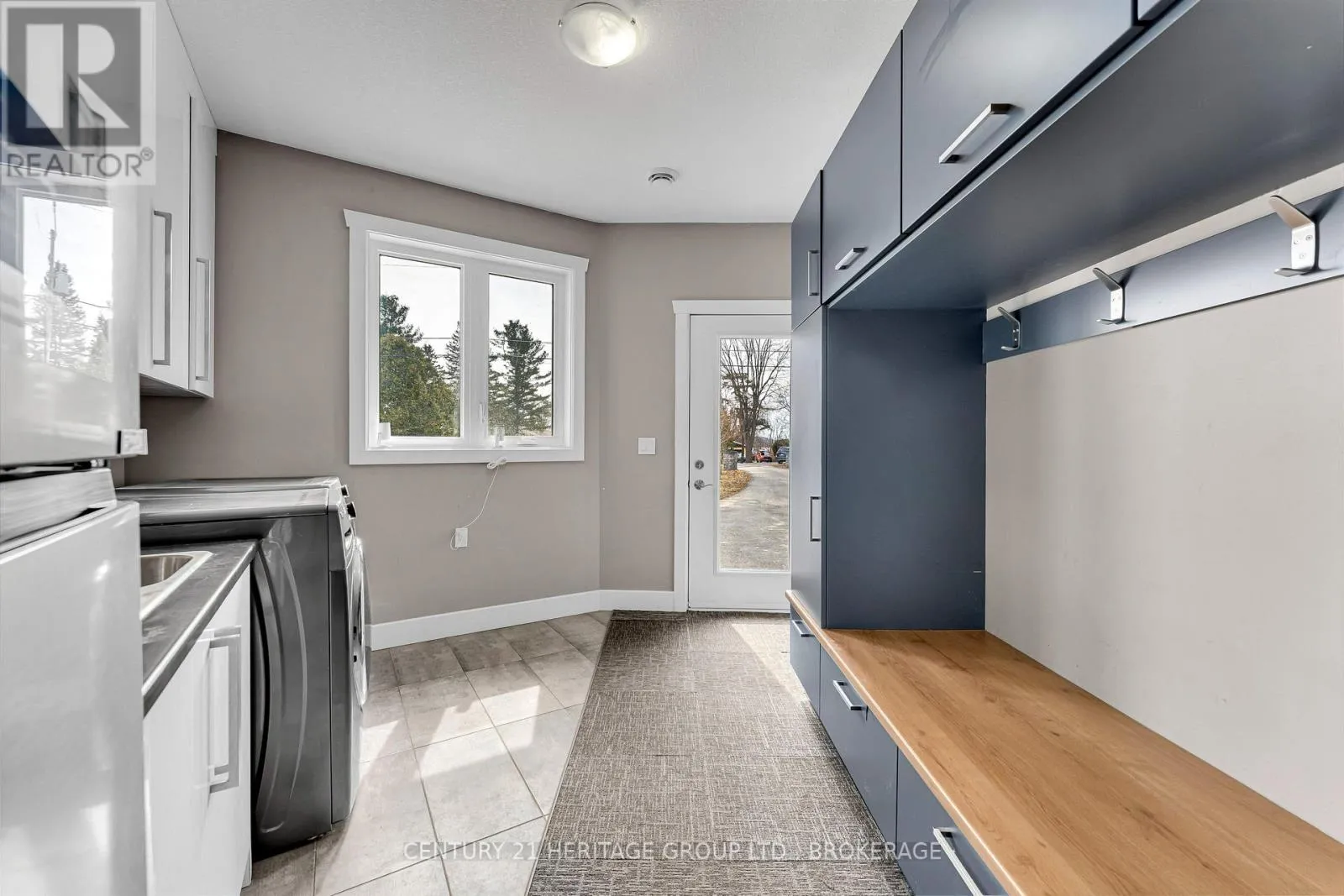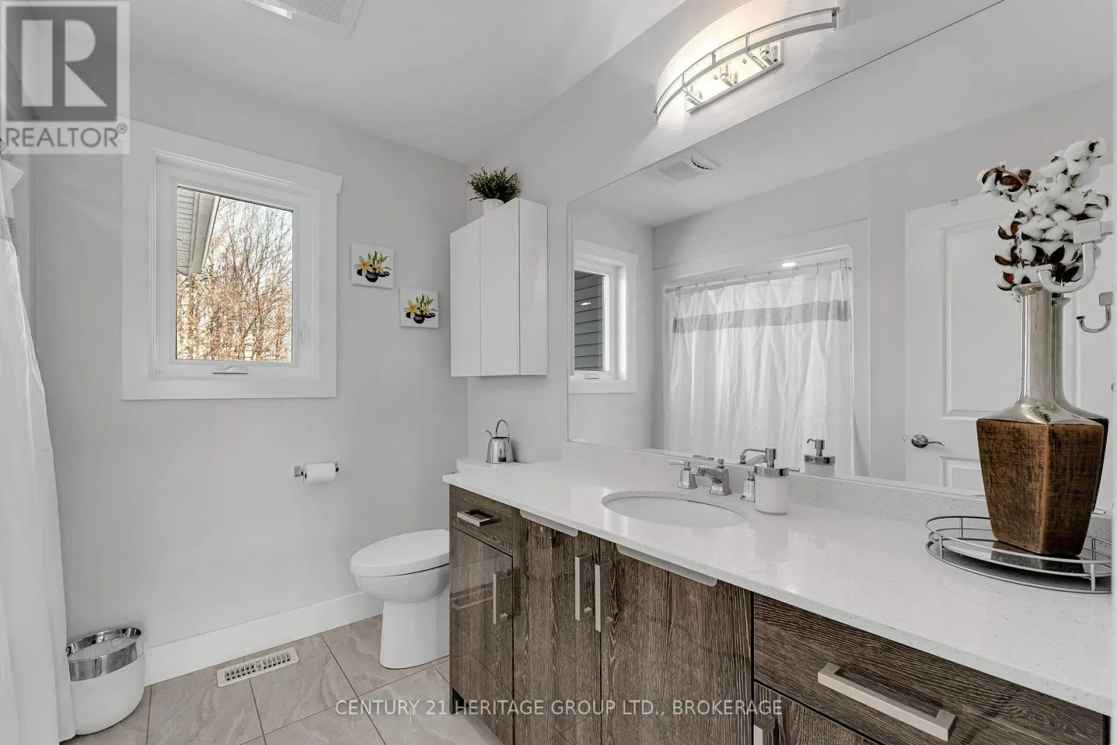 Montreal St to Aragon Rd Set on a picturesque three-acre property just minutes from downtown and the 401, this exceptional residence offers a rare blend of privacy, space, and refined living. Thoughtfully designed with four bedrooms and four bathrooms, the home showcases quality craftsmanship and a layout that balances everyday comfort with elevated style. A welcoming mudroom entry leads into a beautifully appointed main floor featuring a dedicated office, convenient laundry, and elegant living spaces. At the heart of the home is a stunning, light-filled kitchen with quartz countertops, flowing seamlessly into the dining area and an impressive family room with soaring vaulted ceilings and a wood-burning fireplace. Hardwood flooring throughout adds warmth and sophistication. The primary suite is a true retreat, complete with a well-appointed ensuite and generous closet space. The fully finished lower level offers exceptional flexibility with a spacious rec room, additional bedroom, bathroom, and ample storage-ideal for guests or multi-generational living. The expansive grounds provide endless opportunities for outdoor enjoyment, complemented by a three-car garage. Planned enhancements to nearby Cecil and Wilma Graham Park, including a boat ramp, picnic areas, and walking paths, are expected by 2027, adding even more lifestyle value to this already desirable location. A rare opportunity to enjoy the best of country living with city convenience. (id:27476)