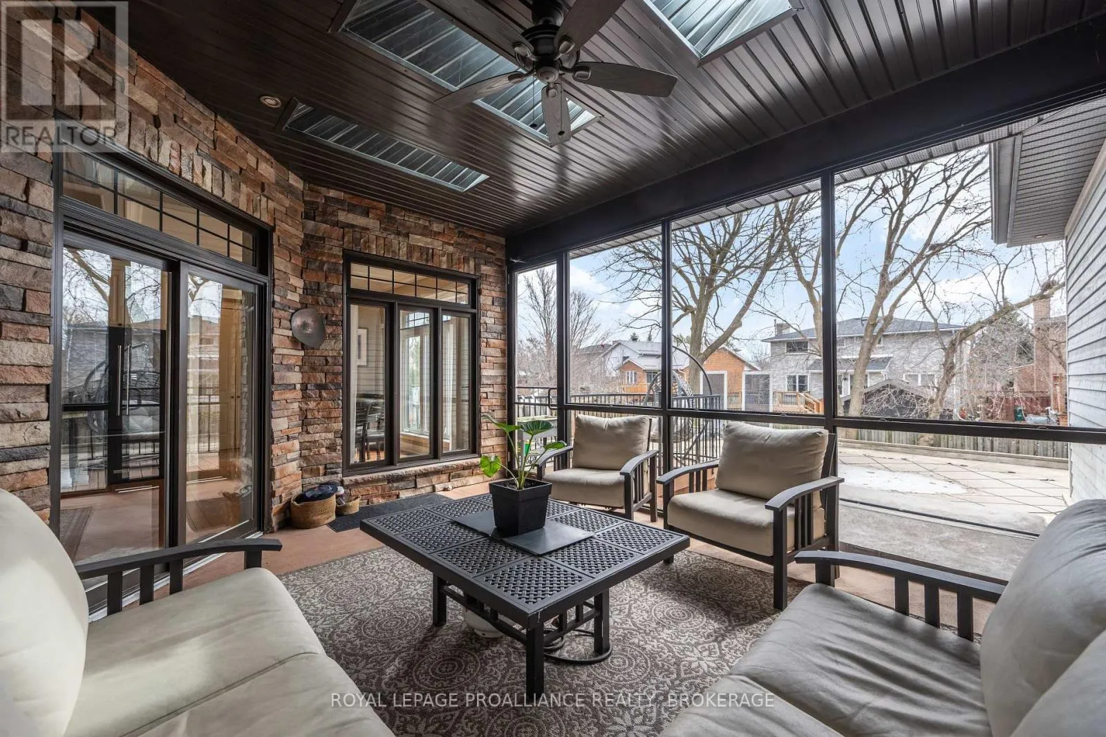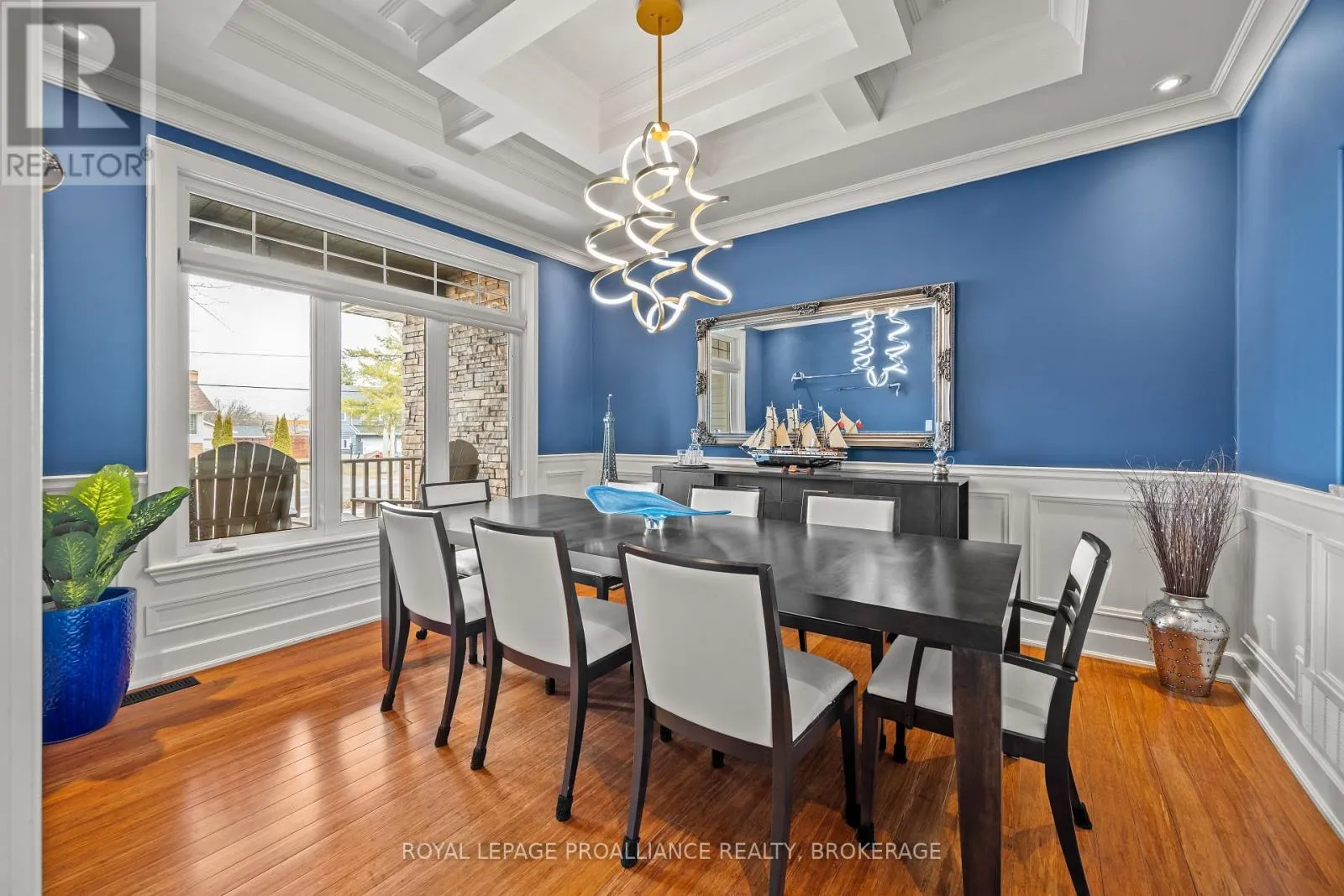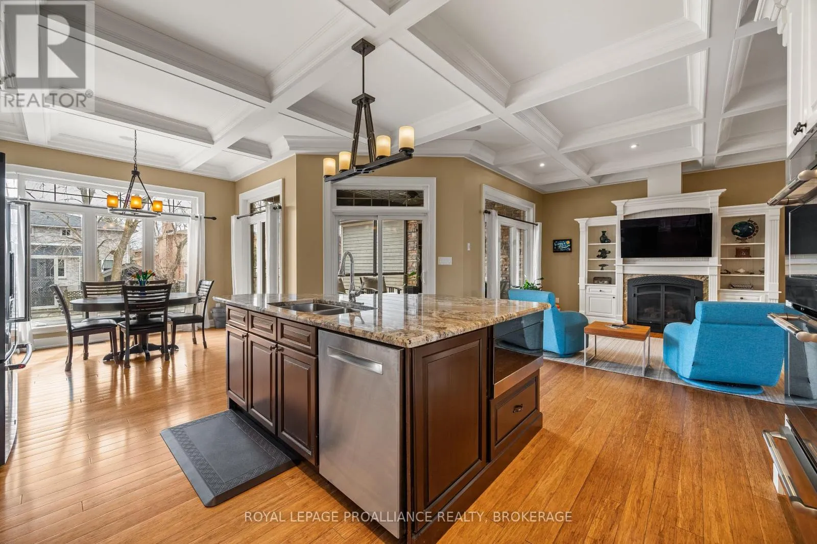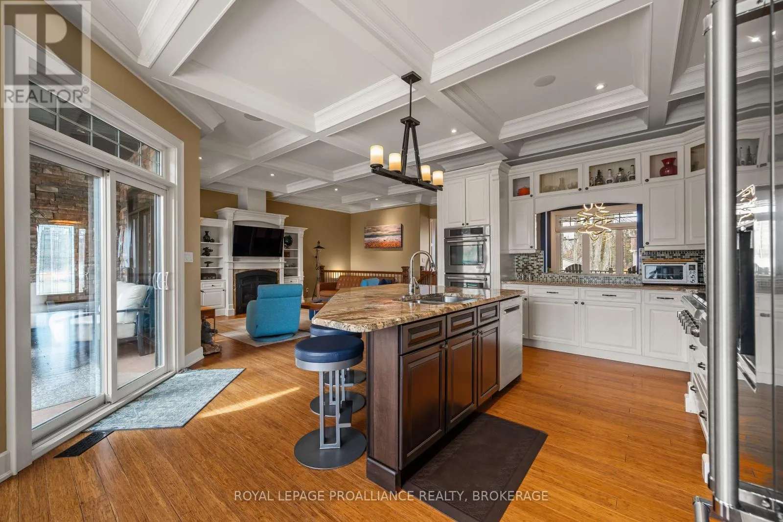 Cross Streets: Bayridge Drive and Woodbine Road. ** Directions: Bayridge Drive to Woodbine Road. Executive custom-built elevated bungalow in the highly sought-after Westwoods neighbourhood, known for its excellent school district & established surroundings. This meticulously maintained home showcases jaw-dropping finishes throughout, including coffered ceilings, wainscotting, crown moulding, soaring ceilings, custom built-in detailed trimwork, & upgraded light fixtures throughout. The heart of the home is a stunning chef's kitchen featuring a massive granite island with breakfast bar, premium appliances (Thermador gas stove, Jennair built-in oven) & eat-in area, seamlessly flowing into a spacious & elegant living area with a gas fireplace. A stunning Lanai with skylights & multiple access points offers the perfect place to unwind, while built-in ceiling speakers on both levels of the home elevate everyday living & entertaining. The primary suite is a retreat of its own host to a massive walk-in closet with built-ins, & spa-like ensuite. The main floor is finished off with 2 additional generously sized bedrooms, a full bathroom, a main floor laundry room & a 2pc powder room. The fully finished basement adds incredible versatility with 3 additional bedrooms, a full bathroom, a dry sauna, custom gym, & a wet bar within the spacious recreation area. The backyard is a private oasis, complete with an inground heated saltwater pool & hot tub (2021), while the front yard benefits from an inground irrigation system. Car enthusiasts & hobbyists will appreciate the monstrous custom attached garage that accommodates 3 cars (2 in tandem & 1 on the side), featuring a commercial-grade door, epoxy flooring, metal-clad walls & ceiling, storage loft, & a rear roll-up door providing direct backyard access, truly a rare & impressive space that must be seen to be appreciated. A standout offering combining craftsmanship, functionality, & lifestyle in one of Kingston's most desirable communities. (id:27476)