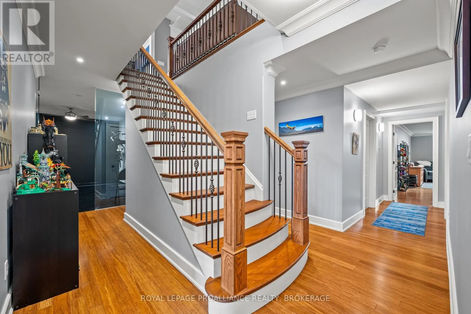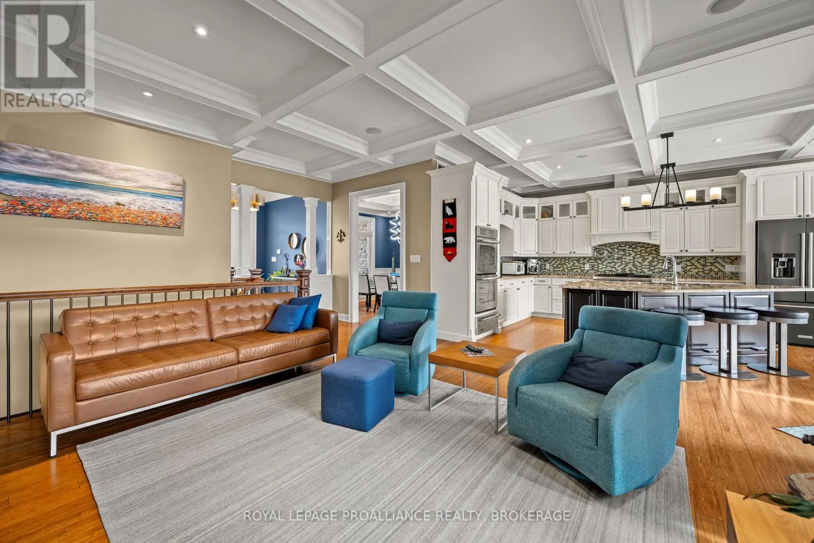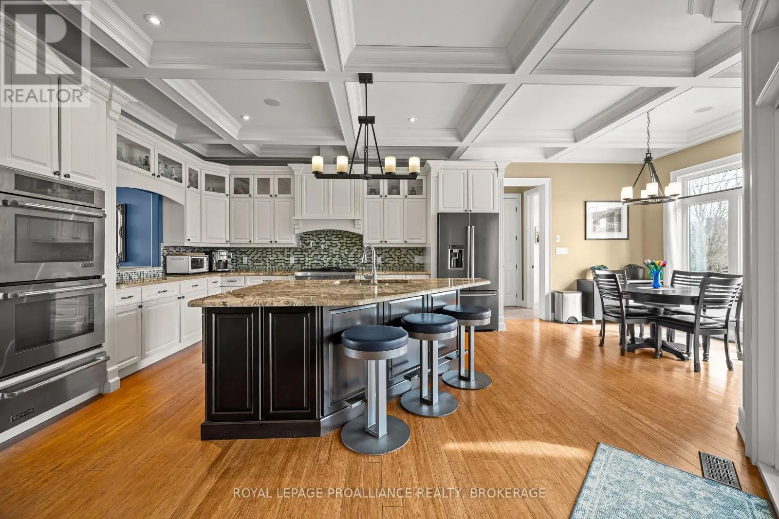 Cross Streets: Bayridge Drive and Woodbine Road. ** Directions: Bayridge Drive to Woodbine Road. Executive custom-built elevated bungalow in the highly sought-after Westwoods neighbourhood, known for its excellent school district & established surroundings. This meticulously maintained home showcases jaw-dropping finishes throughout, including coffered ceilings, wainscotting, crown moulding, soaring ceilings, custom built-in detailed trimwork, & upgraded light fixtures throughout. The heart of the home is a stunning chef's kitchen featuring a massive granite island with breakfast bar, premium appliances (Thermador gas stove, Jennair built-in oven) & eat-in area, seamlessly flowing into a spacious & elegant living area with a gas fireplace. A stunning Lanai with skylights & multiple access points offers the perfect place to unwind, while built-in ceiling speakers on both levels of the home elevate everyday living & entertaining. The primary suite is a retreat of its own host to a massive walk-in closet with built-ins, & spa-like ensuite. The main floor is finished off with 2 additional generously sized bedrooms, a full bathroom, a main floor laundry room & a 2pc powder room. The fully finished basement adds incredible versatility with 3 additional bedrooms, a full bathroom, a dry sauna, custom gym, & a wet bar within the spacious recreation area. The backyard is a private oasis, complete with an inground heated saltwater pool & hot tub (2021), while the front yard benefits from an inground irrigation system. Car enthusiasts & hobbyists will appreciate the monstrous custom attached garage that accommodates 3 cars (2 in tandem & 1 on the side), featuring a commercial-grade door, epoxy flooring, metal-clad walls & ceiling, storage loft, & a rear roll-up door providing direct backyard access, truly a rare & impressive space that must be seen to be appreciated. A standout offering combining craftsmanship, functionality, & lifestyle in one of Kingston's most desirable communities. (id:27476)