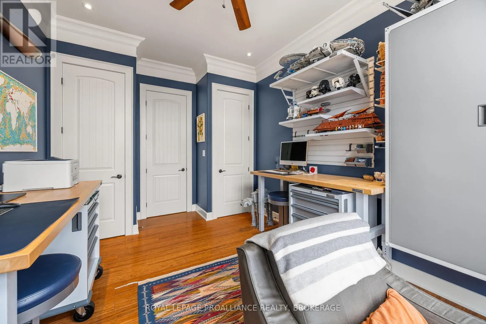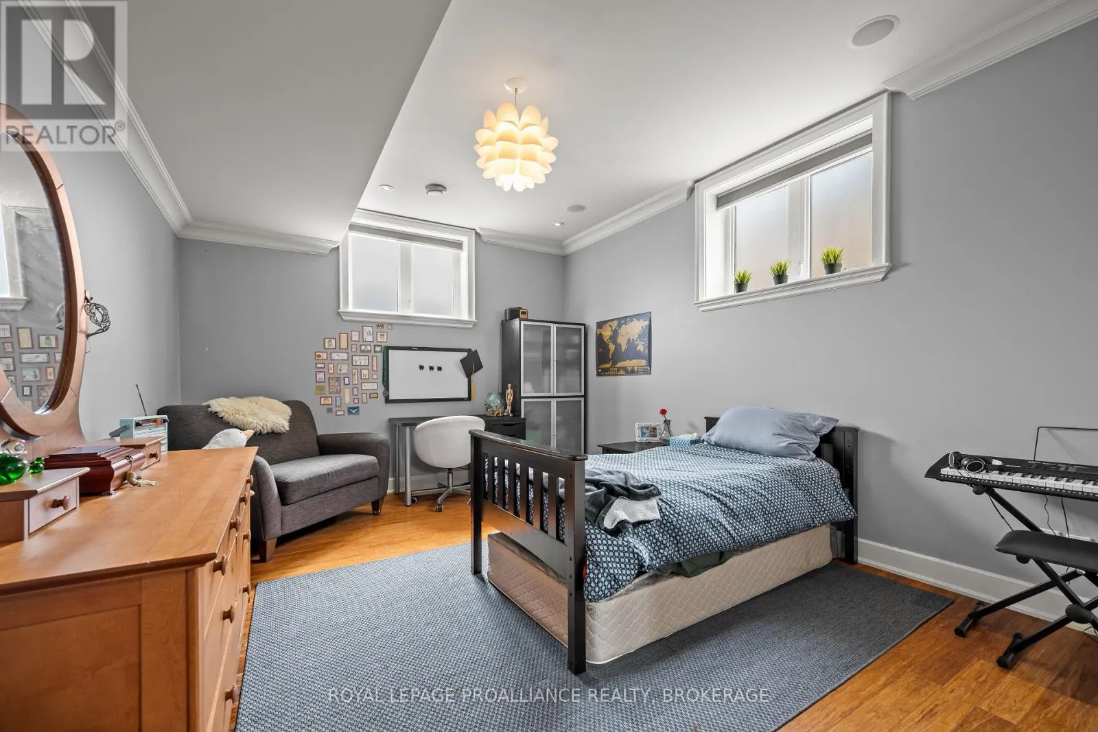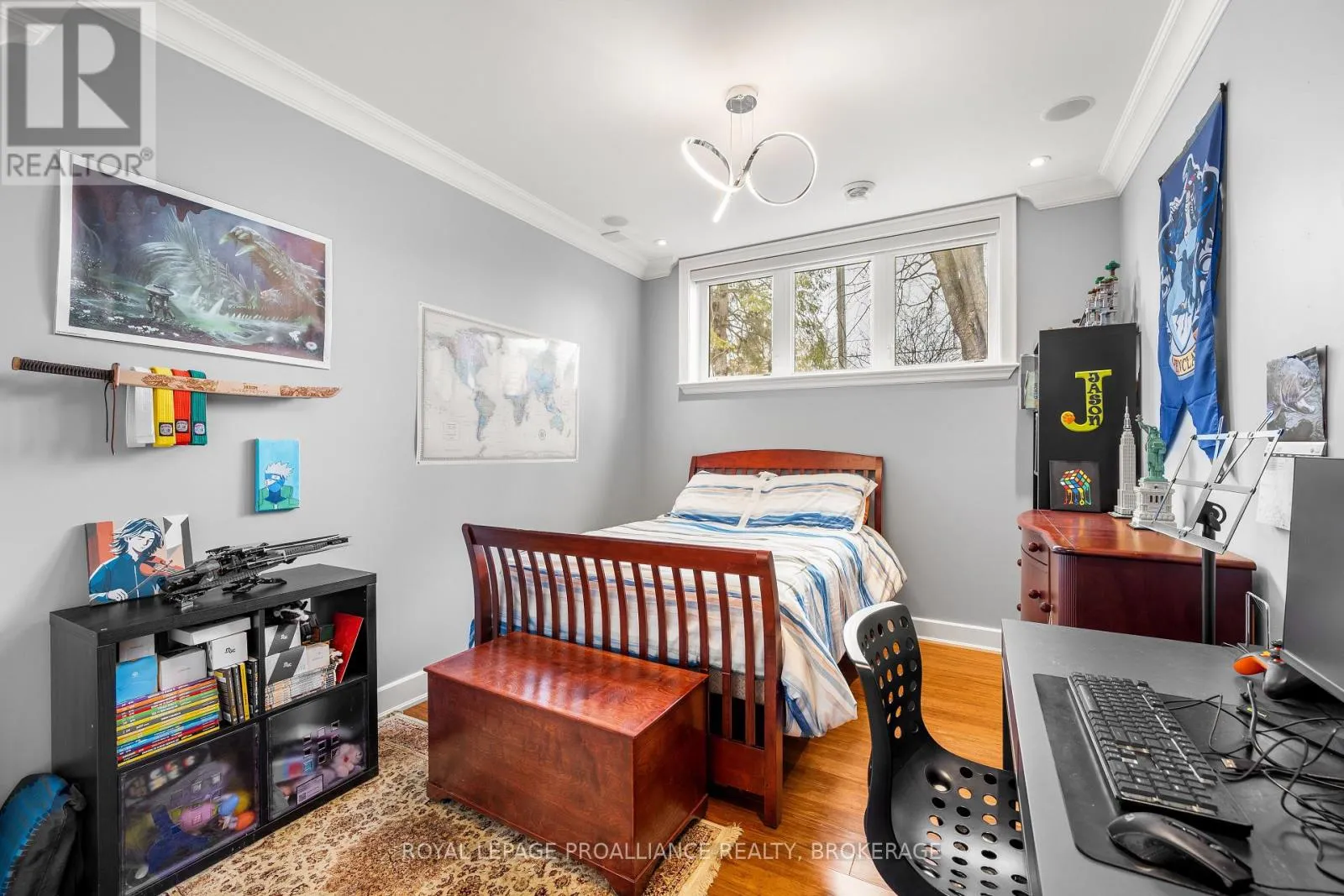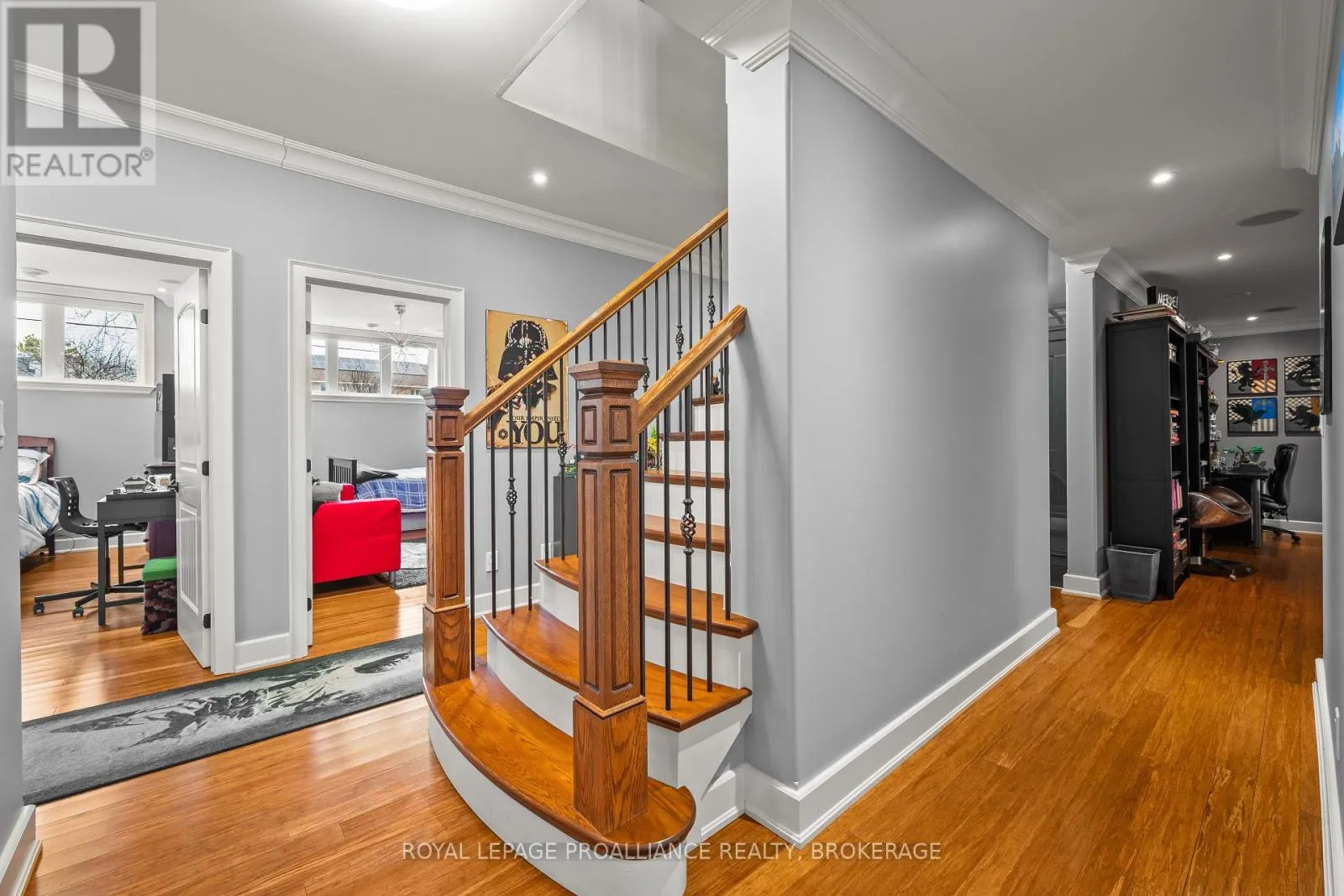 Cross Streets: Bayridge Drive and Woodbine Road. ** Directions: Bayridge Drive to Woodbine Road. Executive custom-built elevated bungalow in the highly sought-after Westwoods neighbourhood, known for its excellent school district & established surroundings. This meticulously maintained home showcases jaw-dropping finishes throughout, including coffered ceilings, wainscotting, crown moulding, soaring ceilings, custom built-in detailed trimwork, & upgraded light fixtures throughout. The heart of the home is a stunning chef's kitchen featuring a massive granite island with breakfast bar, premium appliances (Thermador gas stove, Jennair built-in oven) & eat-in area, seamlessly flowing into a spacious & elegant living area with a gas fireplace. A stunning Lanai with skylights & multiple access points offers the perfect place to unwind, while built-in ceiling speakers on both levels of the home elevate everyday living & entertaining. The primary suite is a retreat of its own host to a massive walk-in closet with built-ins, & spa-like ensuite. The main floor is finished off with 2 additional generously sized bedrooms, a full bathroom, a main floor laundry room & a 2pc powder room. The fully finished basement adds incredible versatility with 3 additional bedrooms, a full bathroom, a dry sauna, custom gym, & a wet bar within the spacious recreation area. The backyard is a private oasis, complete with an inground heated saltwater pool & hot tub (2021), while the front yard benefits from an inground irrigation system. Car enthusiasts & hobbyists will appreciate the monstrous custom attached garage that accommodates 3 cars (2 in tandem & 1 on the side), featuring a commercial-grade door, epoxy flooring, metal-clad walls & ceiling, storage loft, & a rear roll-up door providing direct backyard access, truly a rare & impressive space that must be seen to be appreciated. A standout offering combining craftsmanship, functionality, & lifestyle in one of Kingston's most desirable communities. (id:27476)