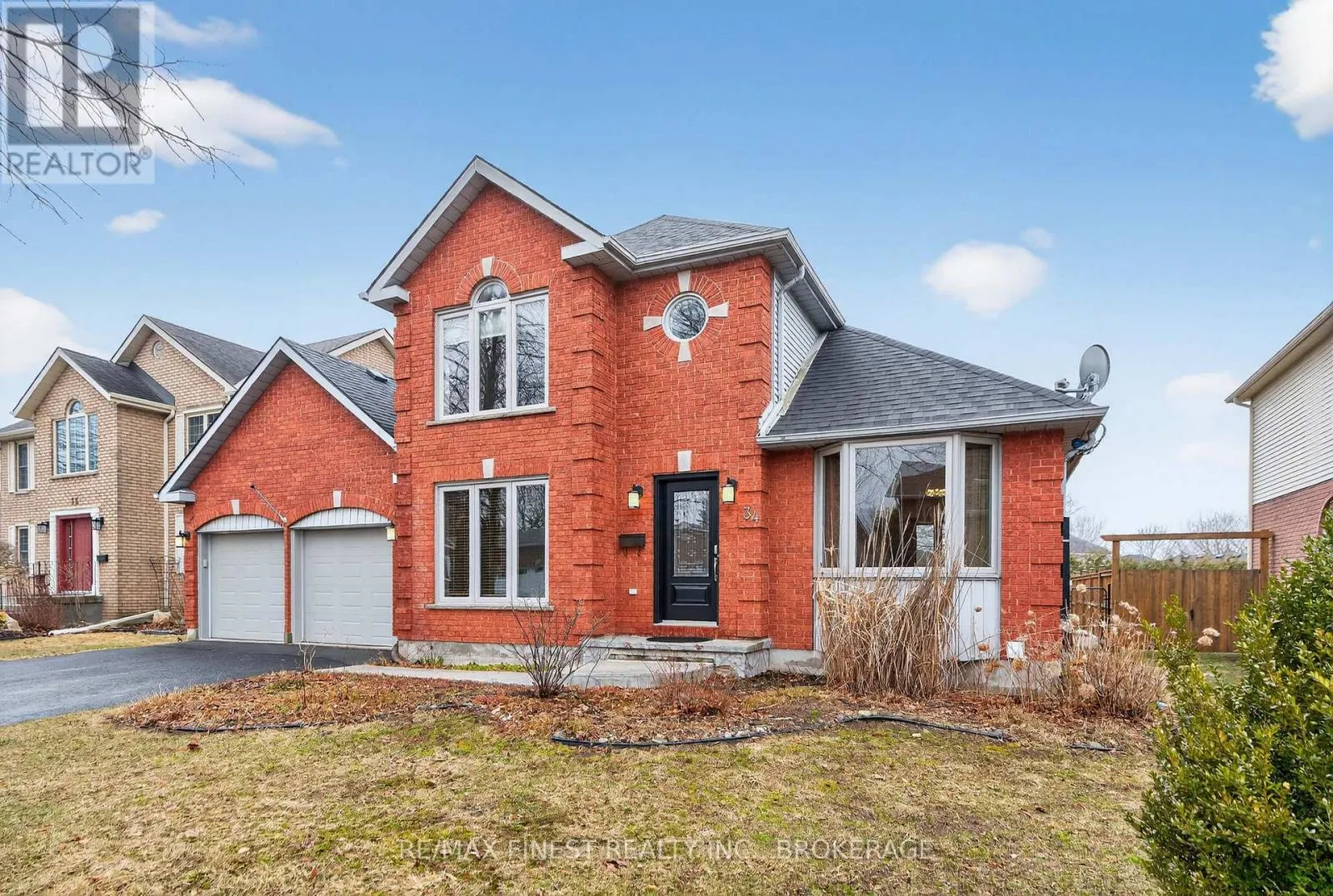 Cross Streets: POINT ST.MARK. ** Directions: Right off of Point St. Mark onto Loradean. Executive living in Kingston's premier East end neighborhood, Woods Landing. One of the larger lots in the subdivision with outstanding curb appeal. You are surrounded by quiet tree-lined residential streets, prime school, parks, walking trails, shopping and you are minutes from downtown Kingston, 401, and the military base. Featuring traditional red brick, a stamped concrete walkway, and a double car garage with an additional third door that opens into a spacious backyard. Walkup from lower level to fully fenced rear yard, cozy sheltered deck, storage/garden shed. Spacious entrance foyer, grand circular staircase leading to upper level, formal living and dining rooms, main floor den/office, kitchen with its peninsula, eating area with excellent elevated view of rear yard, main floor family room with gas fireplace. All kitchen appliances included. Three generously sized bedrooms with ample closet space, ensuite bath, separate 4 pc. Bath. Lower level has recreation room with walk up (note furniture in this area can be included in the sale or Vendor will remove before closing) 2pc bath, separate room for lower den/office. Large furnace room/storage area. Most windows have been updated, updated roof with 30-year shingles, insulation upgraded to R60 in attic. Bonus new cold climate heat pump installed in 2024 with owned heat pump water heater. Professionally painted interior in March 2026. Properties listed for sale in Woods Landing tend to sell quickly, making your investment in this area both safe and prudent. New updates to property include updated 200 amp service, New heat pump $25,213.00, New HP Hot Water Tank $4,464.00 Attic Insulation upgrade $2689.00 New Fencing $15,558.00. Total heating and electrical costs for 2025 $3,480 . (id:27476)