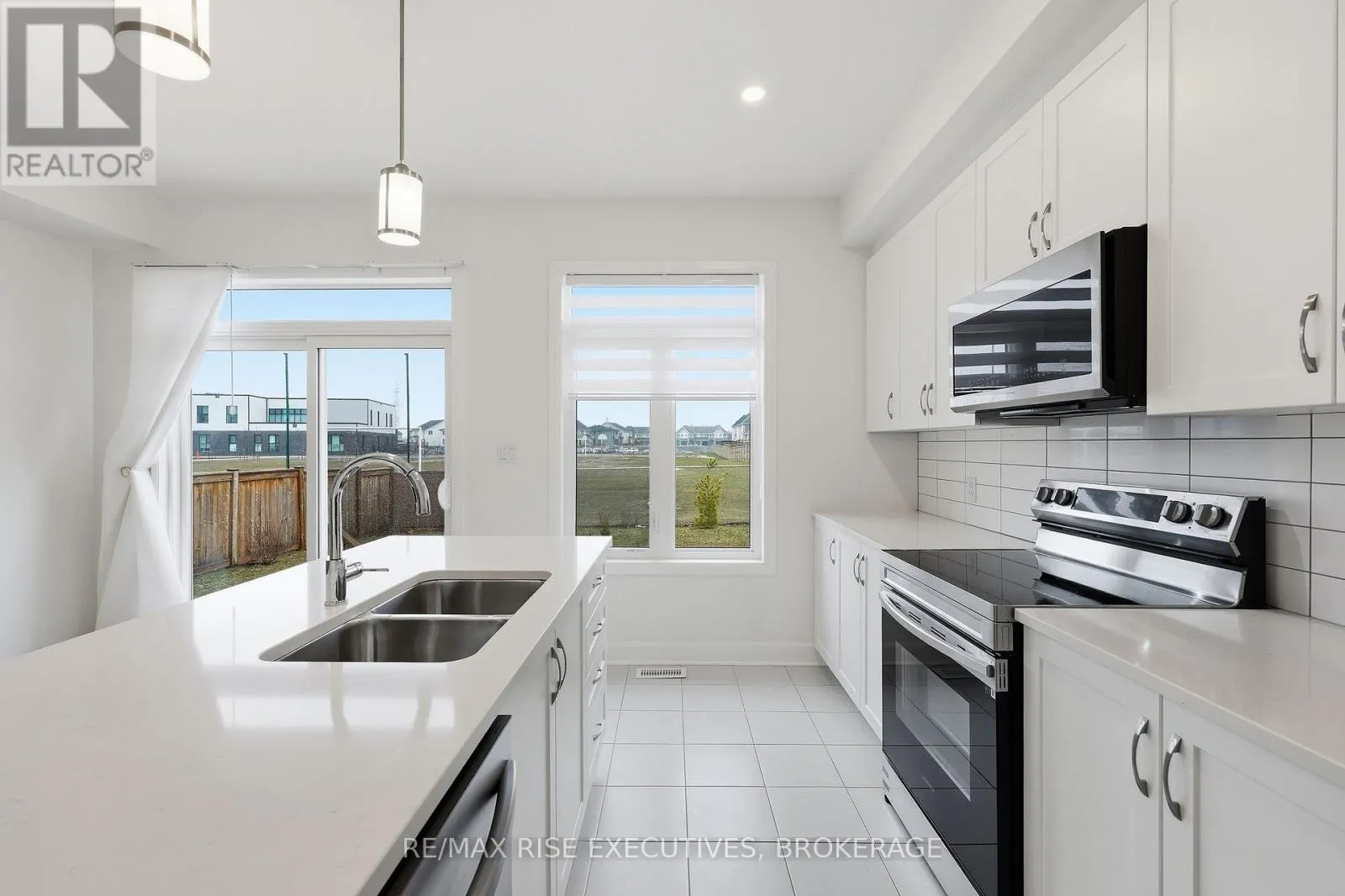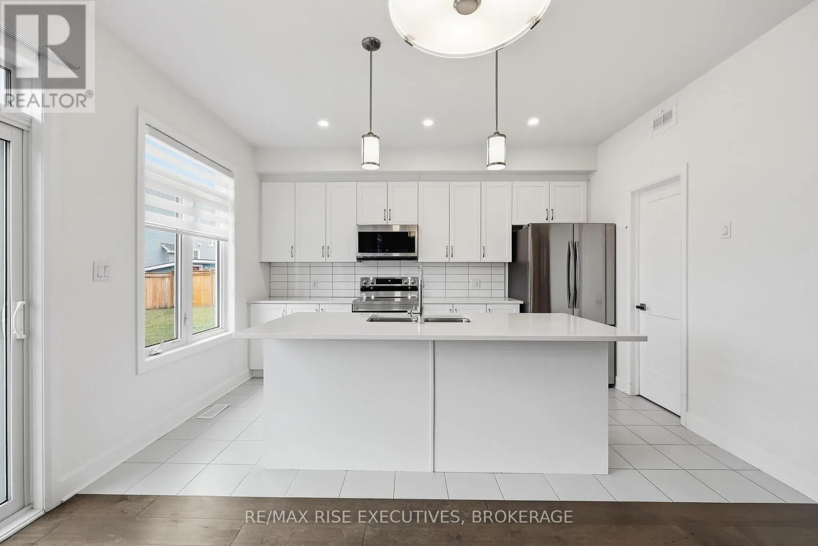 Cross Streets: Tulip Drive and Tenley Drive. ** Directions: Cataraqui Woods Drive to Tenley Drive to Tulip Drive. Welcome to 1406 Tulip Drive. A bright, open-concept home set on a premium lot in Woodhaven, backing directly onto the yard of St. Genevieve School - a rare find for families. This 3 bed,2.5 bath home offers 9' main floor ceilings, quartz countertops throughout, a large kitchen island, walk-in pantry, and stainless steel appliances. Upstairs, you'll appreciate the hardwood hallway, along with a spacious primary suite featuring a walk-in closet and ensuite with double sinks and a glass/tile shower. Two additional generously sized bedrooms and convenient second-floor laundry complete the upper level. Additional features include a double car garage, central air, HRV, and a basement bathroom rough-in for future potential. Move-in ready and ideally located in one of Kingston's most popular west-end communities - just minutes to shopping, restaurants, and everyday amenities. Book your showing today! (id:27476)