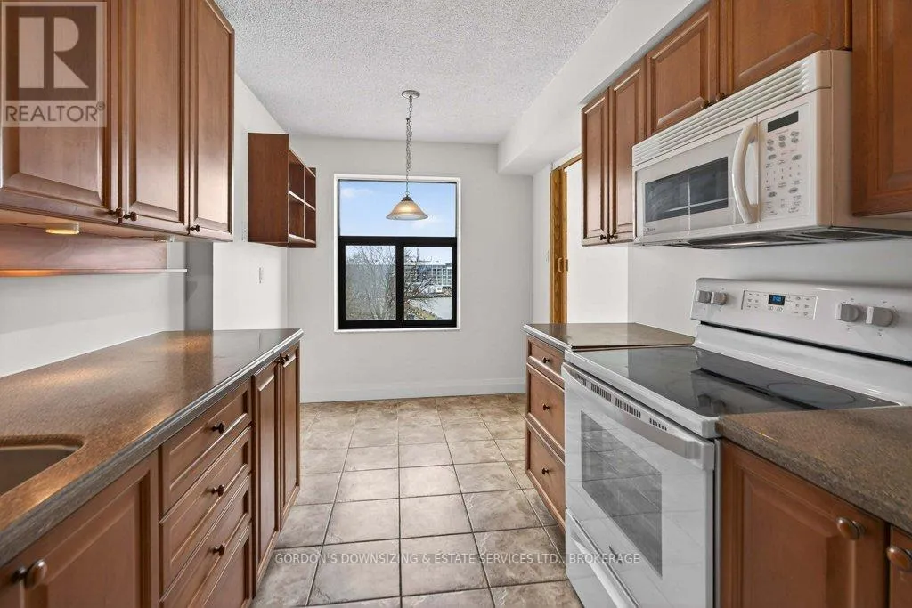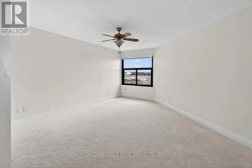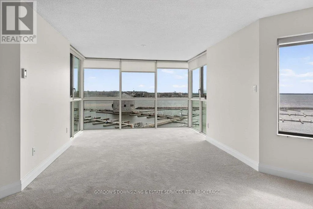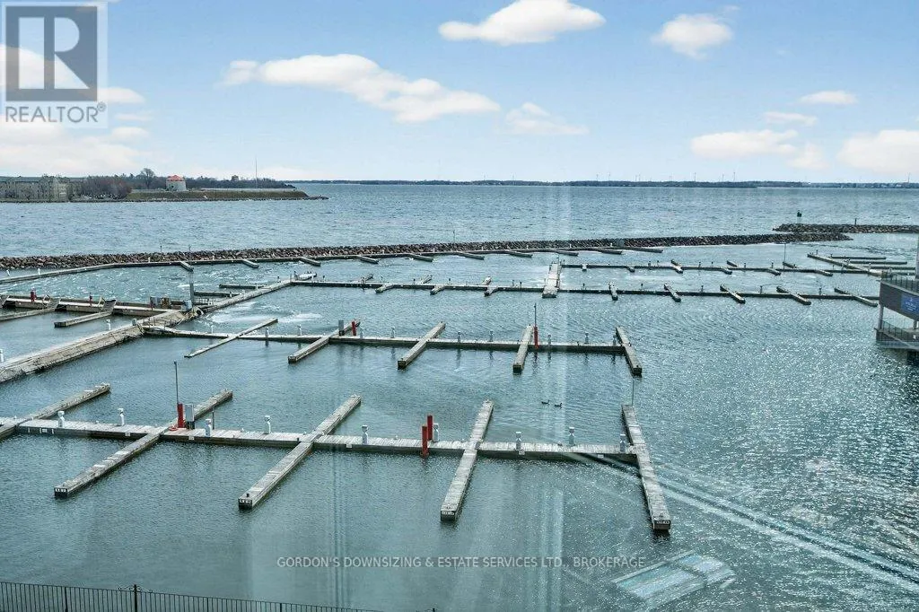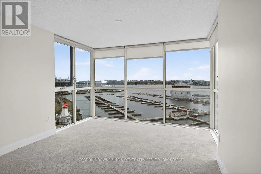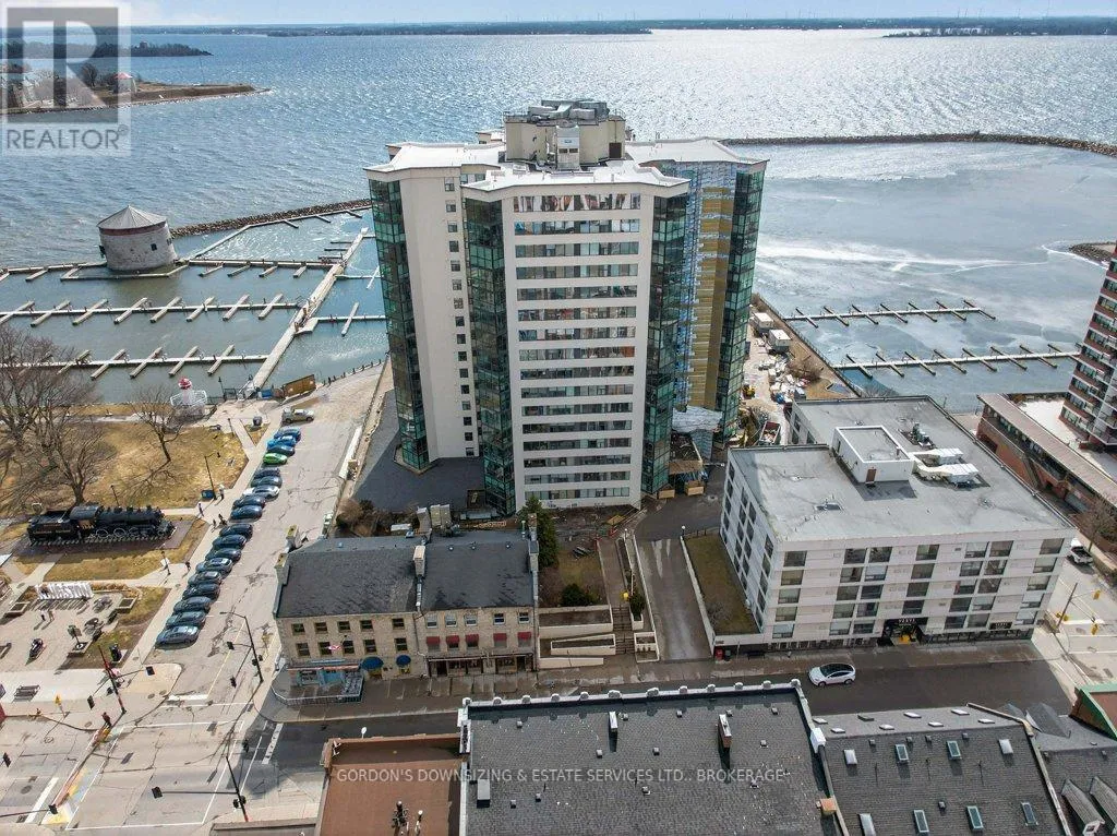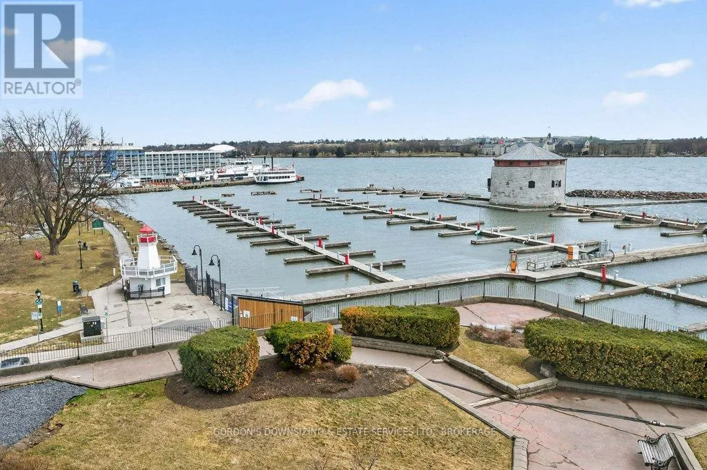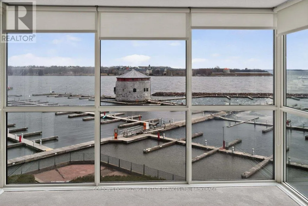 Cross Streets: Johnson St and Clarence Street. ** Directions: Princess to Ontario Street. Welcome to the prestigious Harbour Place in the heart of downtown Kingston. This move-in-ready fourth-floor condominium offers approximately 1,816 sq. ft. of thoughtfully designed living space, enhanced by breathtaking south-east panoramic water views from every room. Enjoy spectacular views of Confederation Basin, RMC, and the iconic Fort Henry. Enjoy the perfect balance of luxury and convenience in this freshly painted spacious two-bedroom plus den/office, two-bathroom suite. The bright, inviting living room with new carpeting, floor-to-ceiling windows and adjoining dining area overlook Kingston's historic waterfront, creating a stunning backdrop for both everyday living and entertaining. The galley kitchen features ample cabinetry, including a pantry and breakfast nook. In-suite laundry, a dedicated storage room, and multiple closets provide exceptional functionality and organization. The spacious primary bedroom features a walk-in closet, new carpeting, and a well-appointed three-piece ensuite. A generous second bedroom offers a double set of closets, hardwood flooring, and access to a full second bathroom-ideal for guests or family. An additional den or office with hardwood flooring provides flexible space perfectly suited for working from home, hobbies, or a quiet reading retreat. Residents of Harbour Place enjoy an impressive array of amenities, including underground and visitor parking, an indoor pool, sauna, fitness room, squash court, car wash, party room, hobby room, and more-delivering a true maintenance-free lifestyle. Step outside and immerse yourself in the energy of Kingston's vibrant downtown-stroll scenic waterfront trails, explore boutique shops, and enjoy dining at some of the city's finest restaurants, all just moments from your door. Also ideally situated with easy access to Queen's University, CFB Kingston. Confederation Basin and Market square. Offers will be presented April 14th at 1:00pm. (id:27476)