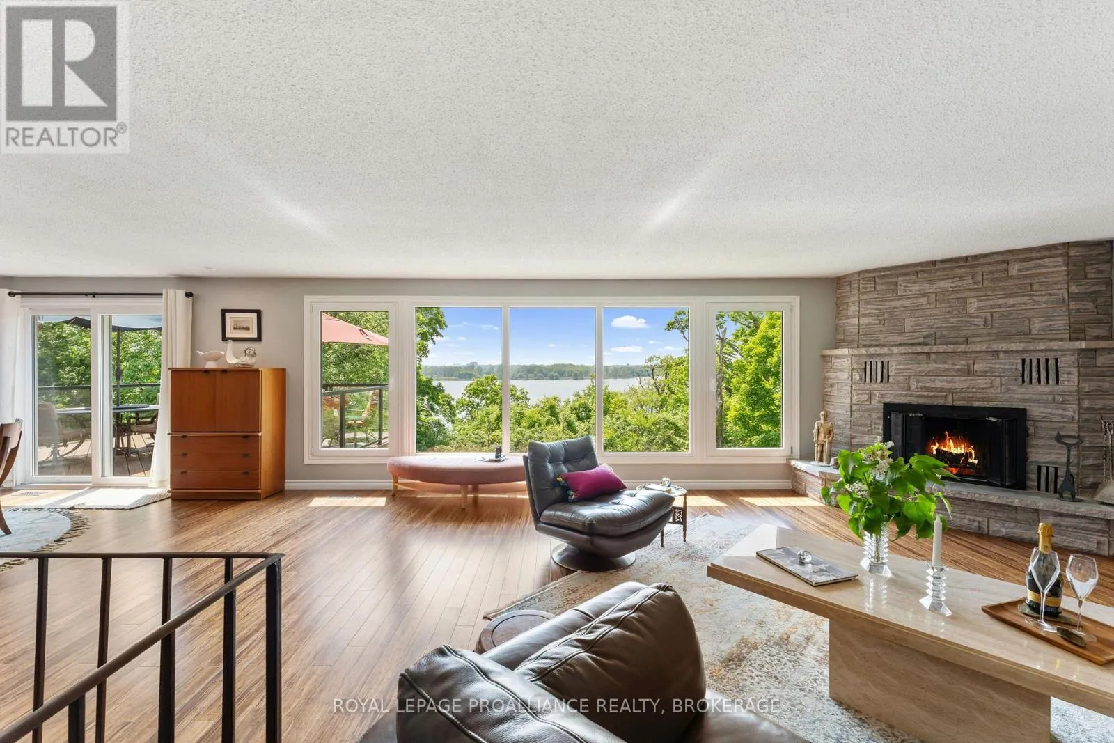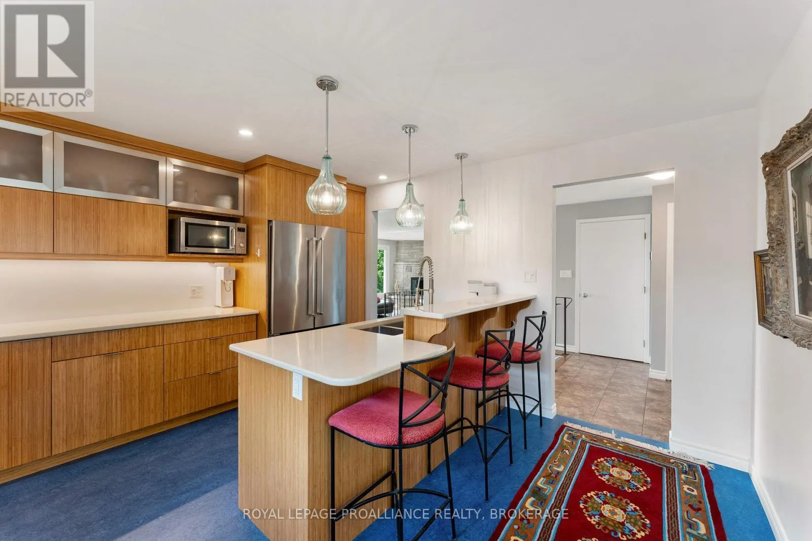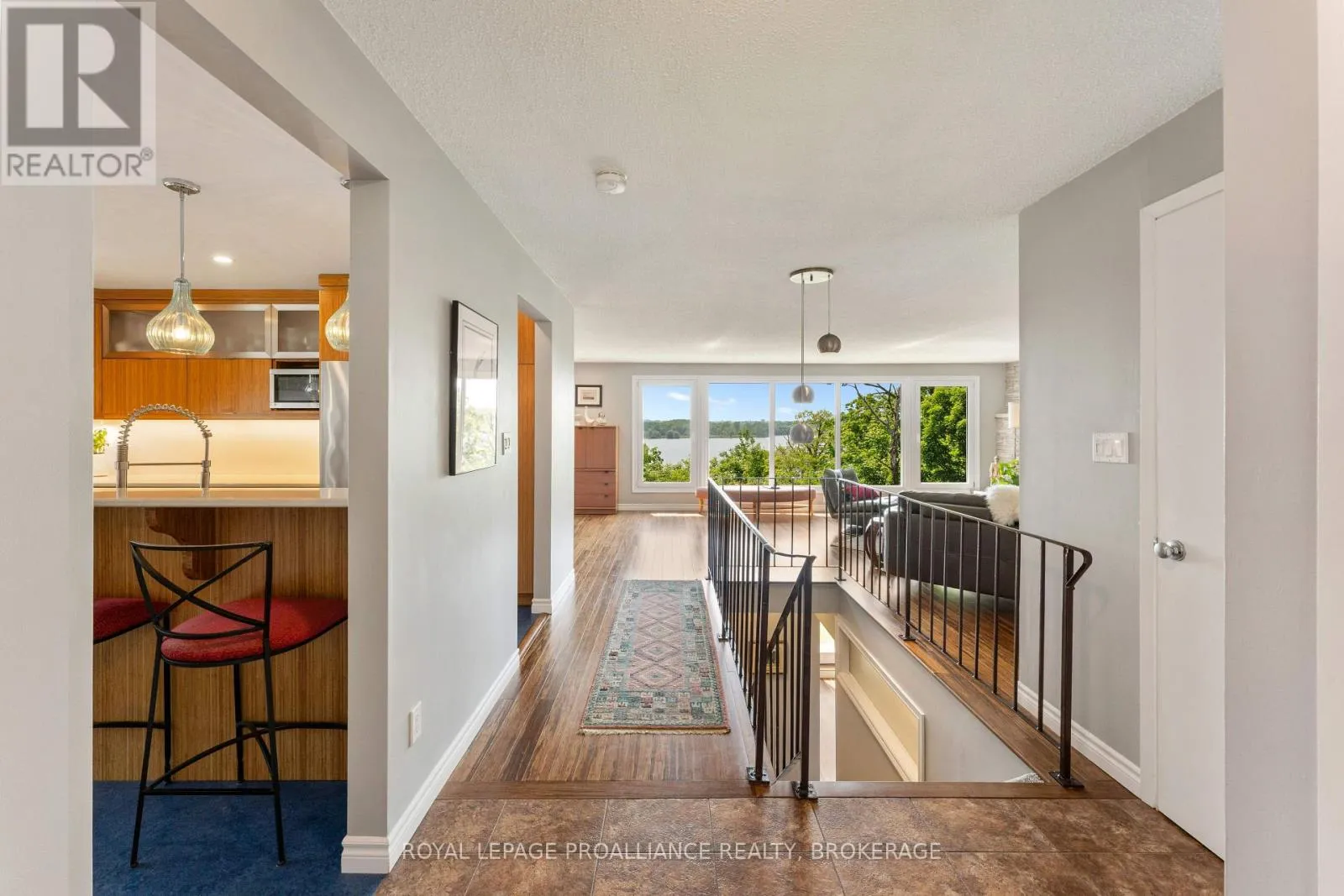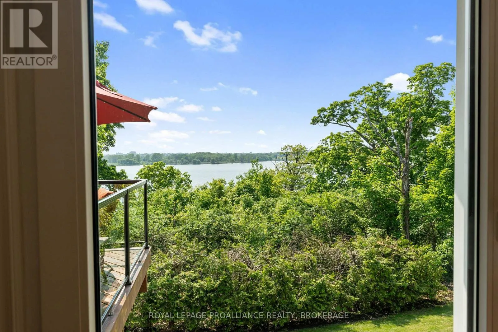 Cross Streets: Point St Mark Drive & Limeridge Drive. ** Directions: Highway 15 to Point St Mark Dr to 80 Limeridge Drive. Introducing 80 Limeridge Drive - a rare & beautifully designed bungalow offering a peaceful setting with captivating water views in one of Kingston's most desirable East End enclaves. This thoughtfully crafted home showcases a bright, open-concept main living space anchored by a stunning wall of windows that frame tranquil vistas of the Rideau Canal, a UNESCO World Heritage Site, beyond. The well-appointed kitchen, complete with an oversized peninsula featuring quartz counter tops & a breakfast bar, as well as modern appliances, seamlessly connects to the inviting living & dining areas perfect for both casual gatherings & elegant entertaining. The spacious primary suite offers inspiring waterside views, a walk-out to the yard, & a massive walk-in closet. The lower level also hosts a large bedroom room with versatile potential use, another bonus bedroom, & a gorgeous full 4pc bath. Step outside to the private rear deck to soak in the ever-changing natural scenery of the green space & Rideau Canal waterfront, a 202km long waterway connecting Kingston & Ottawa. With its unique layout, premium finishes, & prime location near CFB Kingston & a short drive from Kingston's historic downtown, along with the 401, this exceptional home offers the perfect blend of comfort, elegance, & natural beauty. (id:27476)