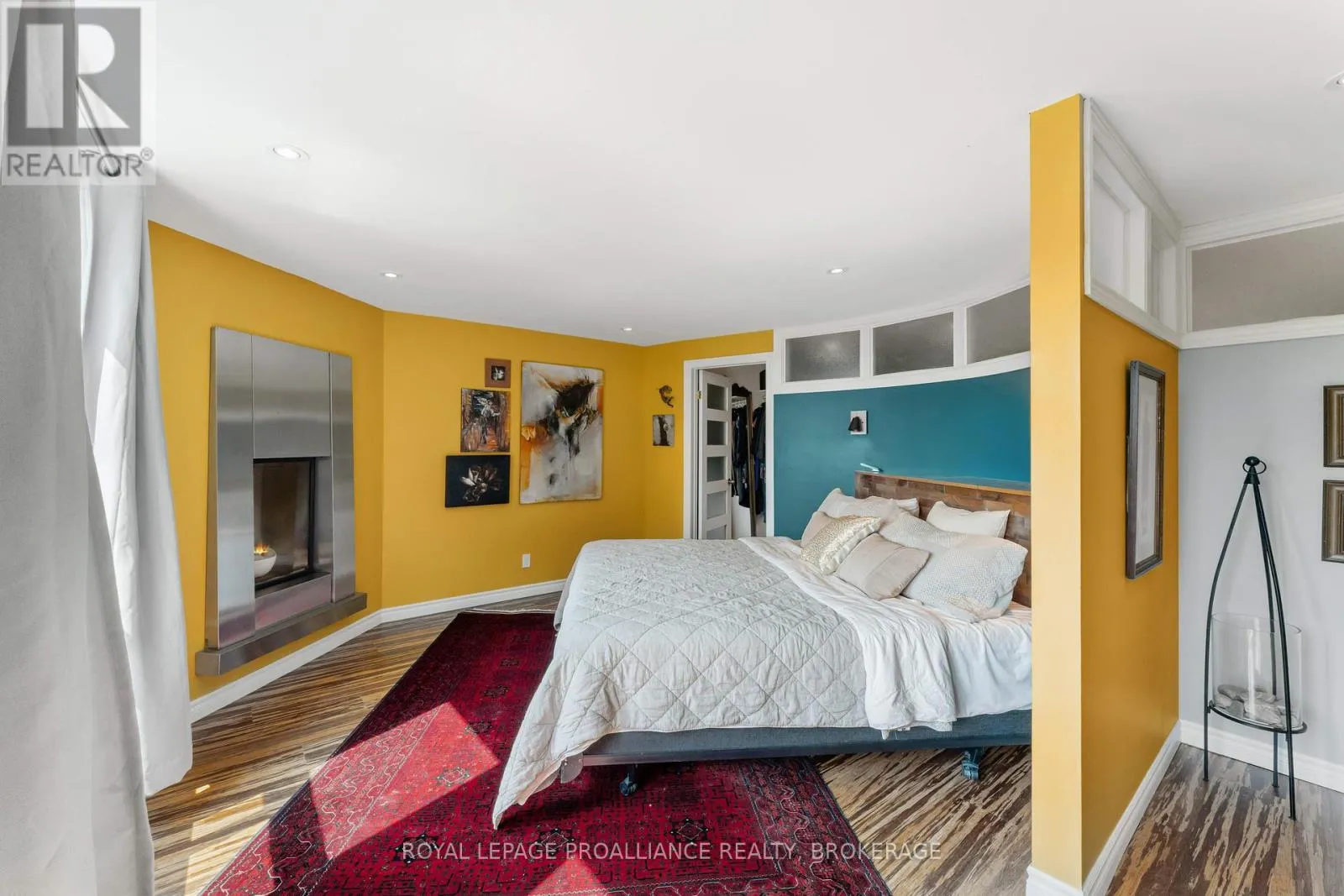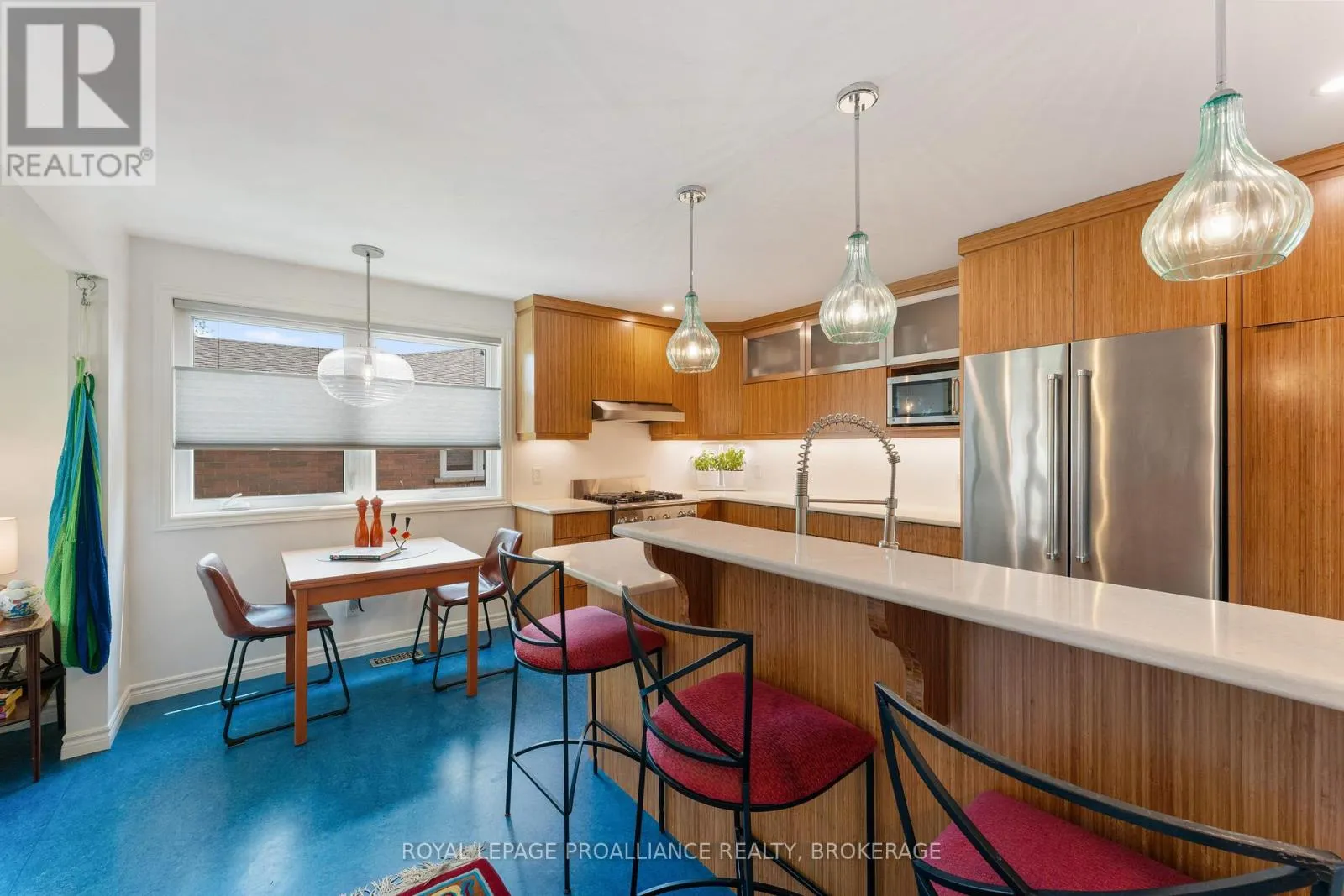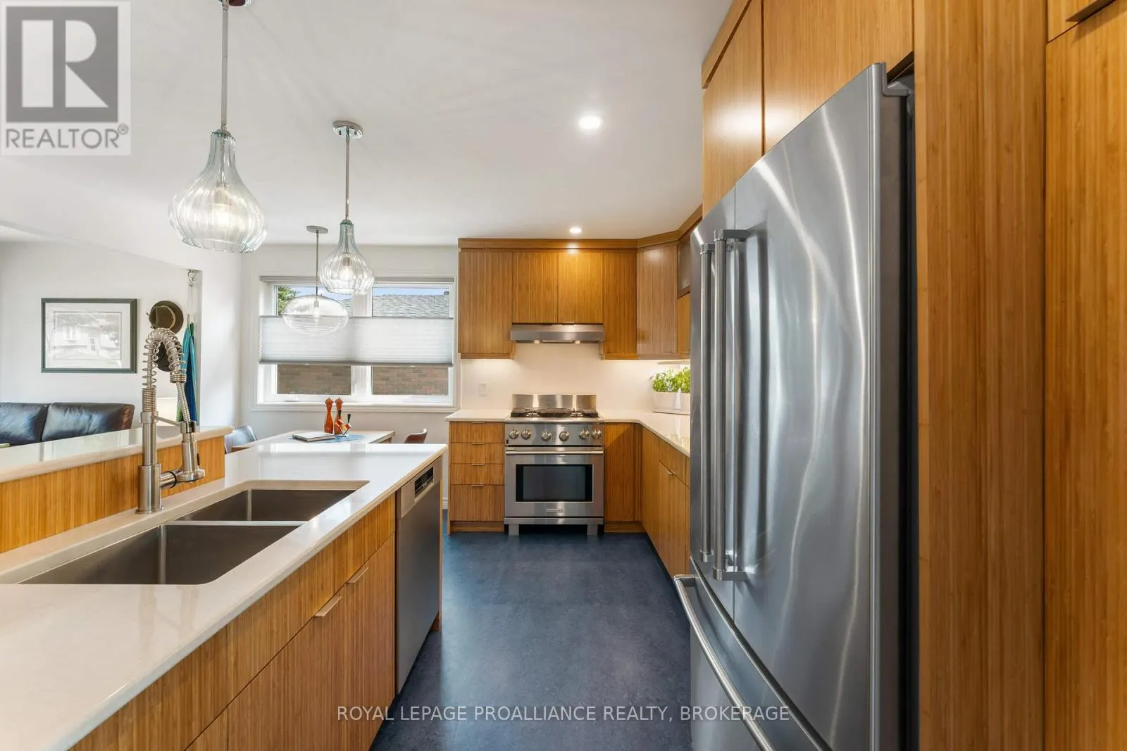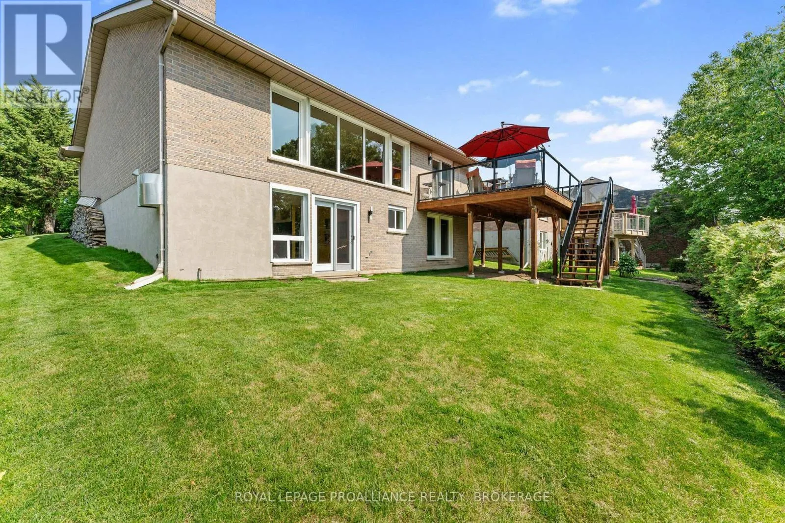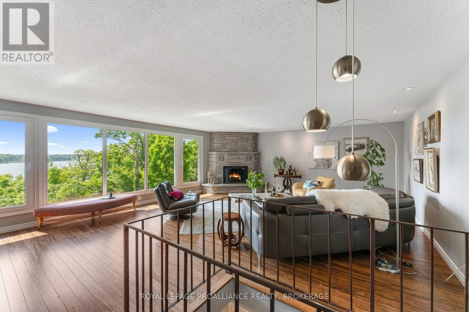 Cross Streets: Point St Mark Drive & Limeridge Drive. ** Directions: Highway 15 to Point St Mark Dr to 80 Limeridge Drive. Introducing 80 Limeridge Drive - a rare & beautifully designed bungalow offering a peaceful setting with captivating water views in one of Kingston's most desirable East End enclaves. This thoughtfully crafted home showcases a bright, open-concept main living space anchored by a stunning wall of windows that frame tranquil vistas of the Rideau Canal, a UNESCO World Heritage Site, beyond. The well-appointed kitchen, complete with an oversized peninsula featuring quartz counter tops & a breakfast bar, as well as modern appliances, seamlessly connects to the inviting living & dining areas perfect for both casual gatherings & elegant entertaining. The spacious primary suite offers inspiring waterside views, a walk-out to the yard, & a massive walk-in closet. The lower level also hosts a large bedroom room with versatile potential use, another bonus bedroom, & a gorgeous full 4pc bath. Step outside to the private rear deck to soak in the ever-changing natural scenery of the green space & Rideau Canal waterfront, a 202km long waterway connecting Kingston & Ottawa. With its unique layout, premium finishes, & prime location near CFB Kingston & a short drive from Kingston's historic downtown, along with the 401, this exceptional home offers the perfect blend of comfort, elegance, & natural beauty. (id:27476)