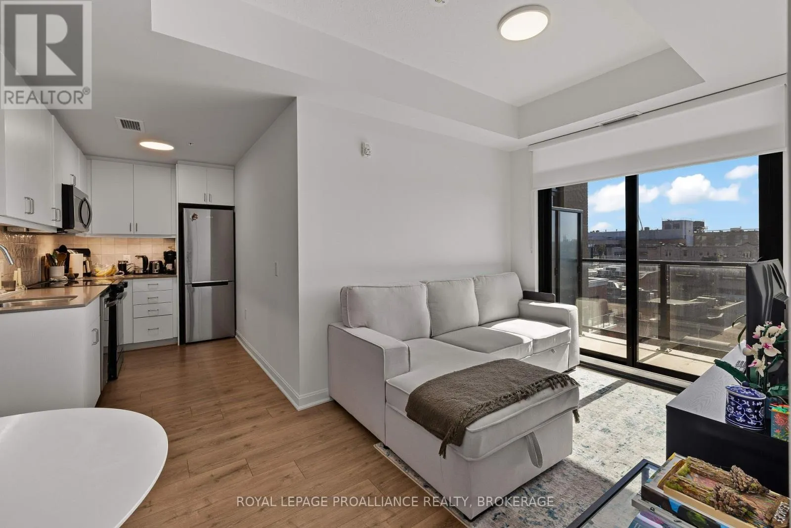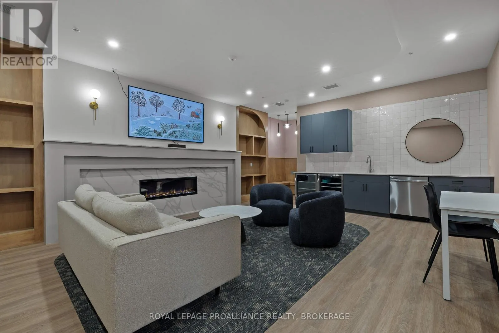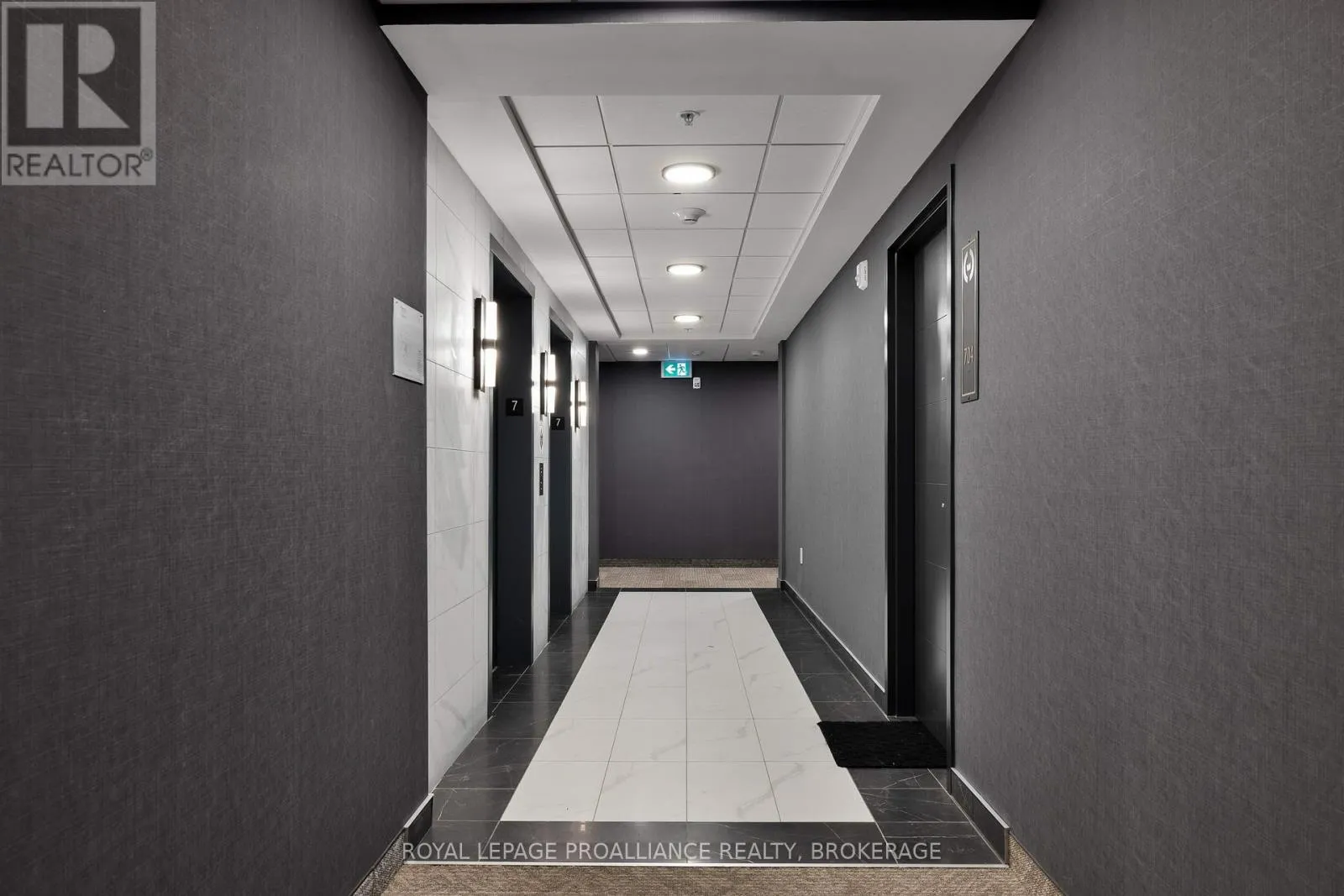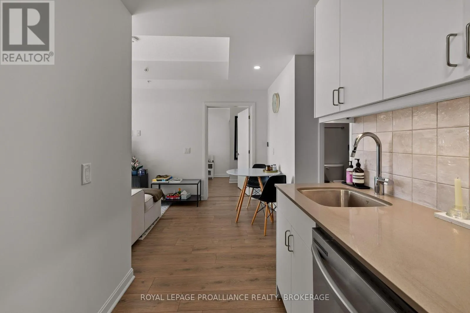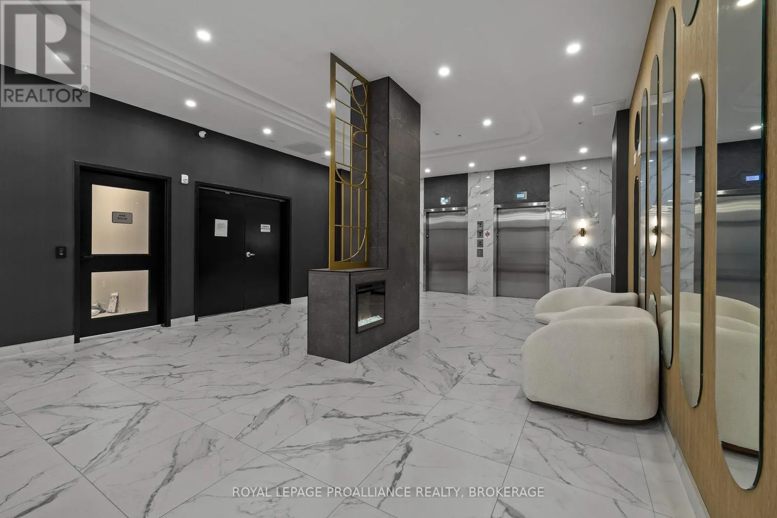 Princess & Sydenham Street Step into modern living with this stunning 600+ sq.ft. unit on the seventh floor of Kingston's newest condo development! Features include a spacious bedroom and dedicated office area, perfect for working from home, two full bathrooms for added convenience, a bright and sunny living area with patio doors leading to a balcony with expansive views of downtown, in-suite laundry for effortless living and a dedicated parking space and secure bike storage. This exceptional building offers a lifestyle like no other with a rooftop patio complete with barbecues, a yoga studio, meeting rooms, and a stylish party lounge for entertaining friends and family. All of this is just steps away from the vibrant Princess Street, where you can explore local shops, eateries, and cultural attractions. Don't miss your change to own a piece of this urban oasis! Whether you're a first-time buyer, looking to downsize, or seek a lucrative investment opportunity, this condo is perfect to you! (id:27476)
