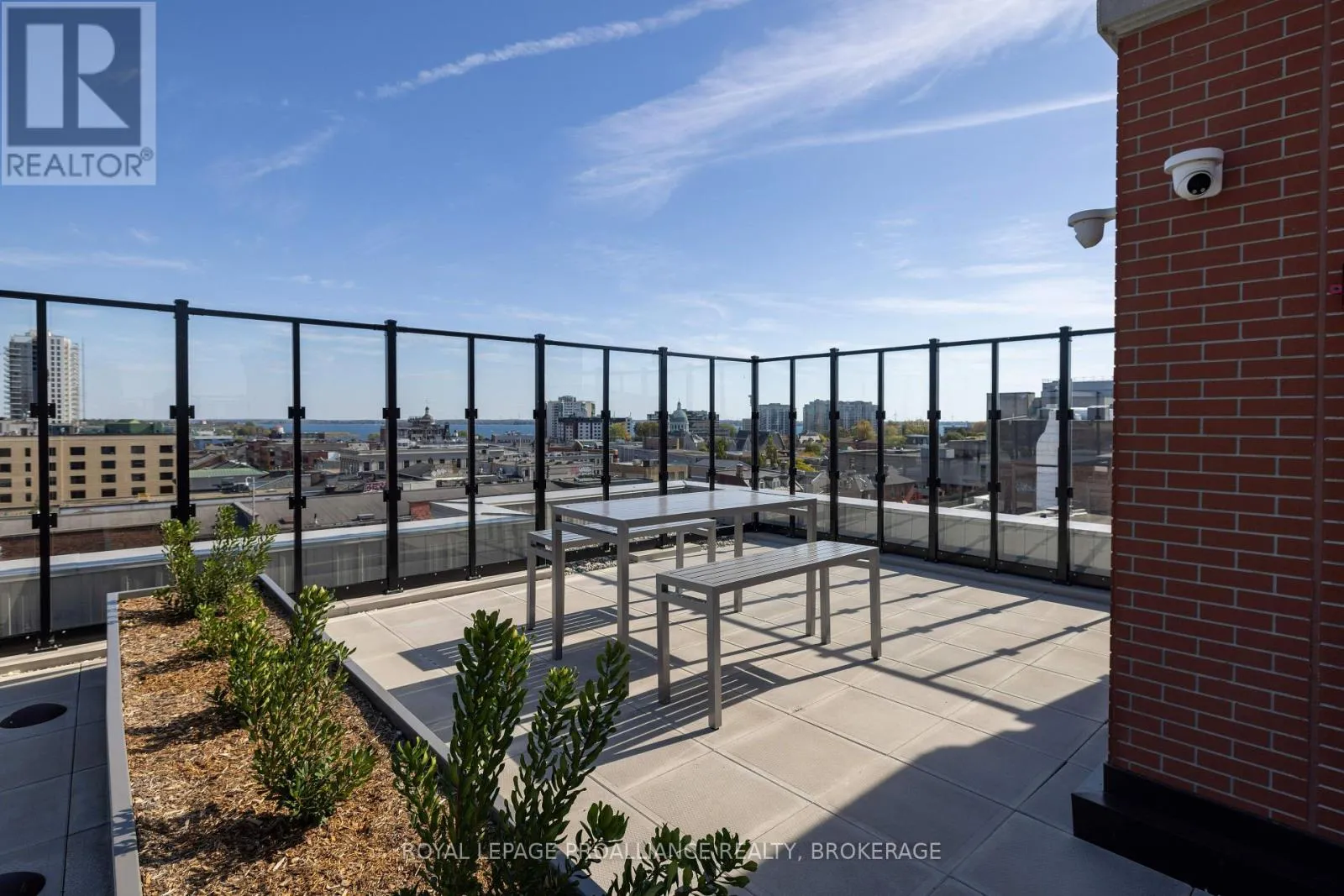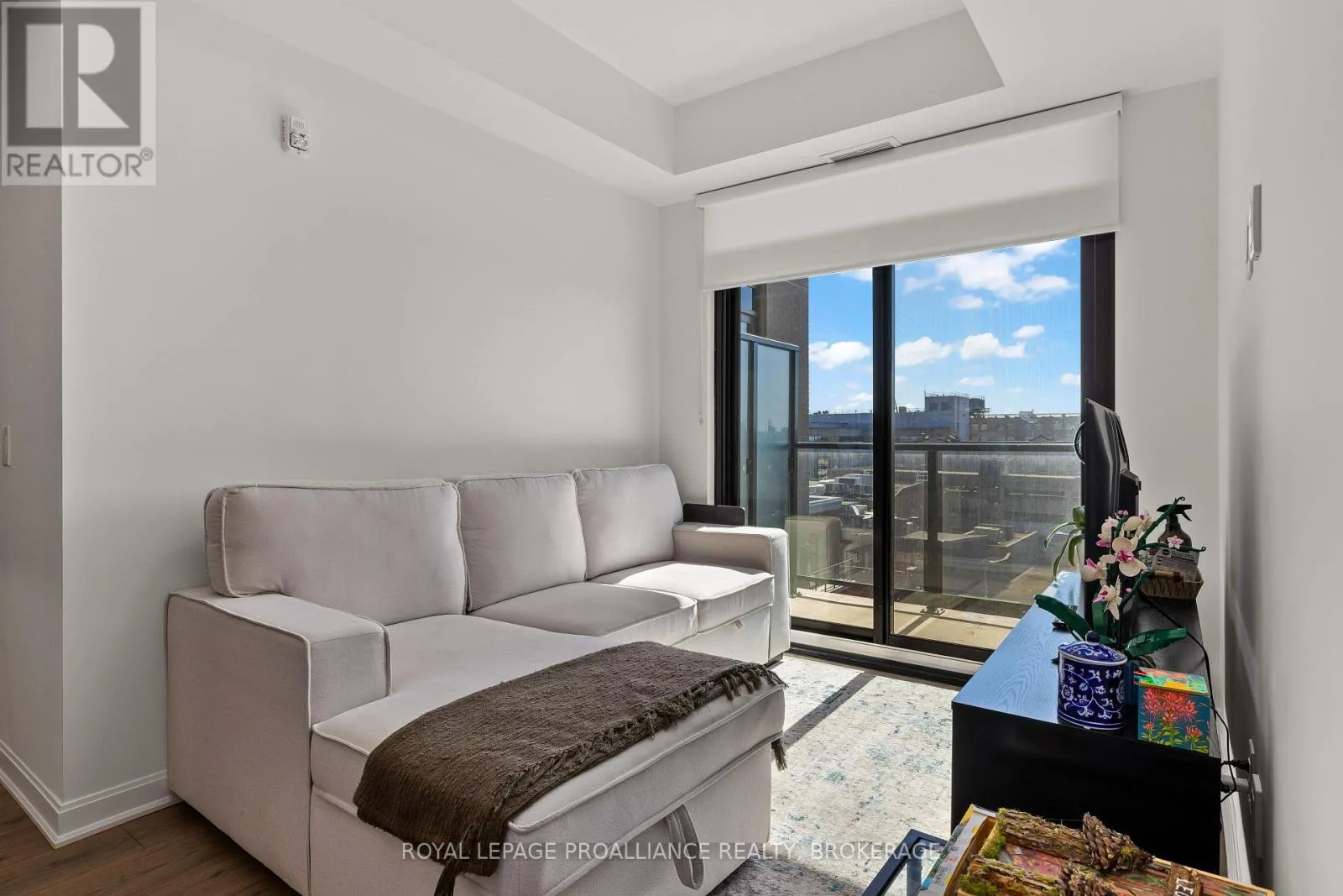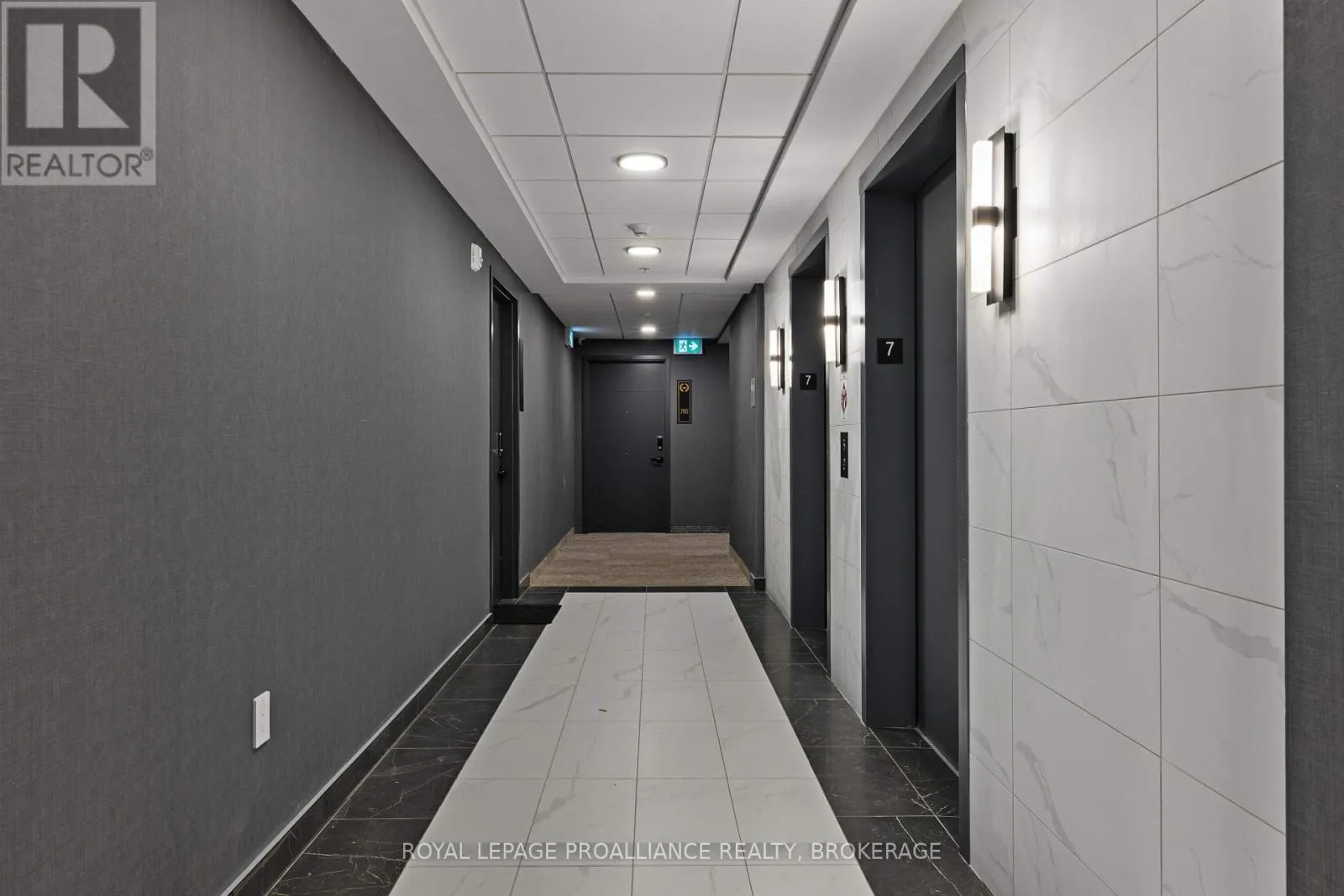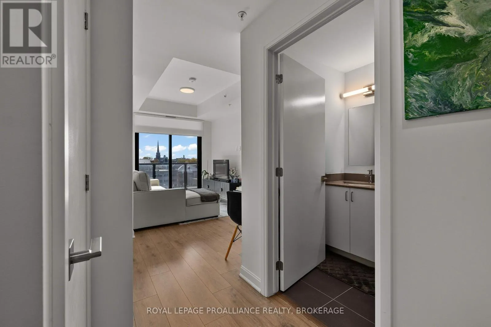 Princess & Sydenham Street Step into modern living with this stunning 600+ sq.ft. unit on the seventh floor of Kingston's newest condo development! Features include a spacious bedroom and dedicated office area, perfect for working from home, two full bathrooms for added convenience, a bright and sunny living area with patio doors leading to a balcony with expansive views of downtown, in-suite laundry for effortless living and a dedicated parking space and secure bike storage. This exceptional building offers a lifestyle like no other with a rooftop patio complete with barbecues, a yoga studio, meeting rooms, and a stylish party lounge for entertaining friends and family. All of this is just steps away from the vibrant Princess Street, where you can explore local shops, eateries, and cultural attractions. Don't miss your change to own a piece of this urban oasis! Whether you're a first-time buyer, looking to downsize, or seek a lucrative investment opportunity, this condo is perfect to you! (id:27476)