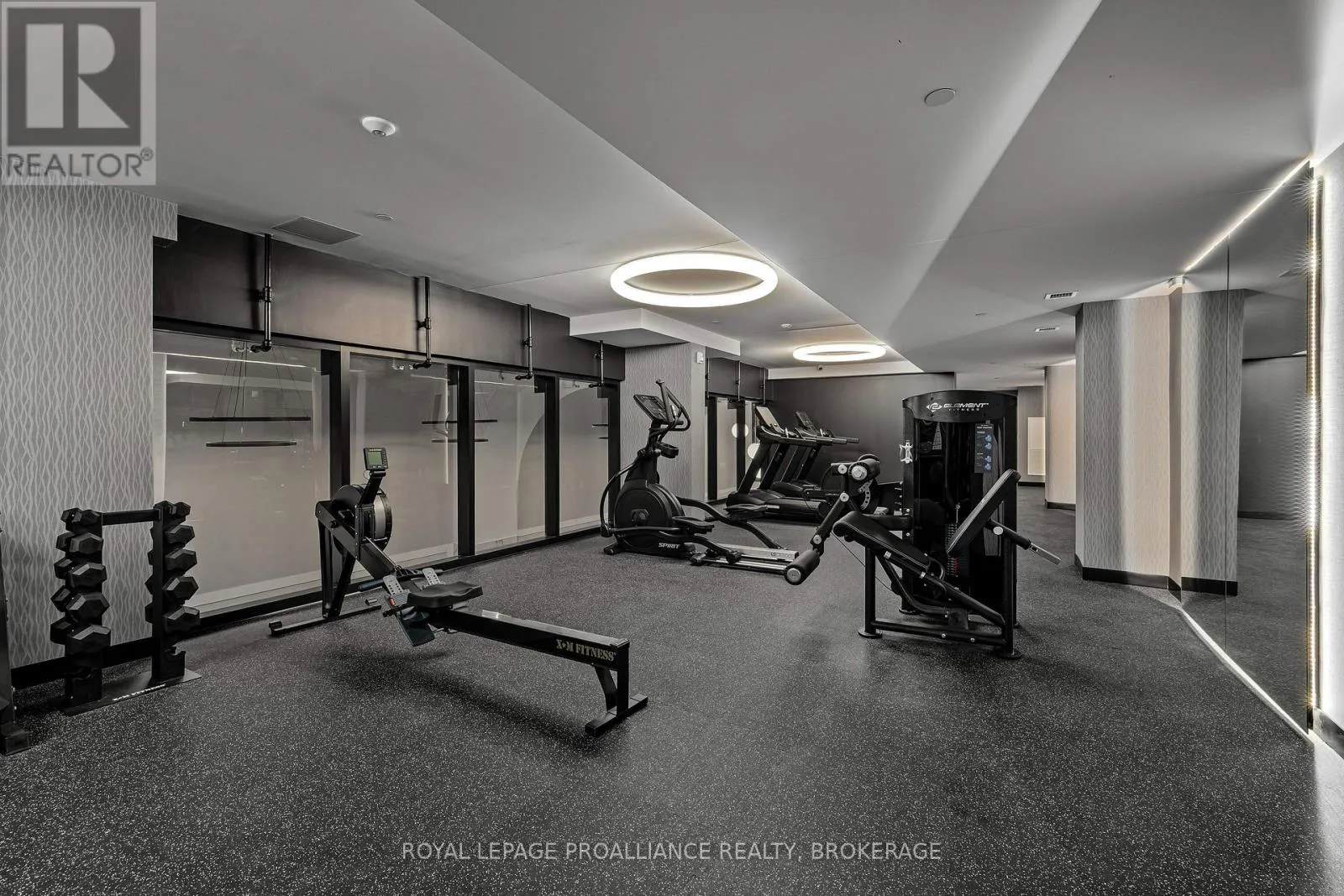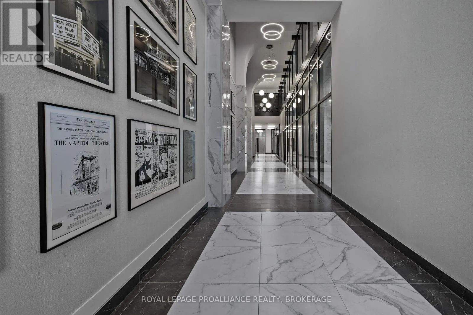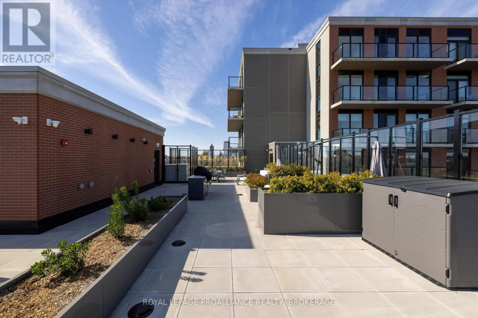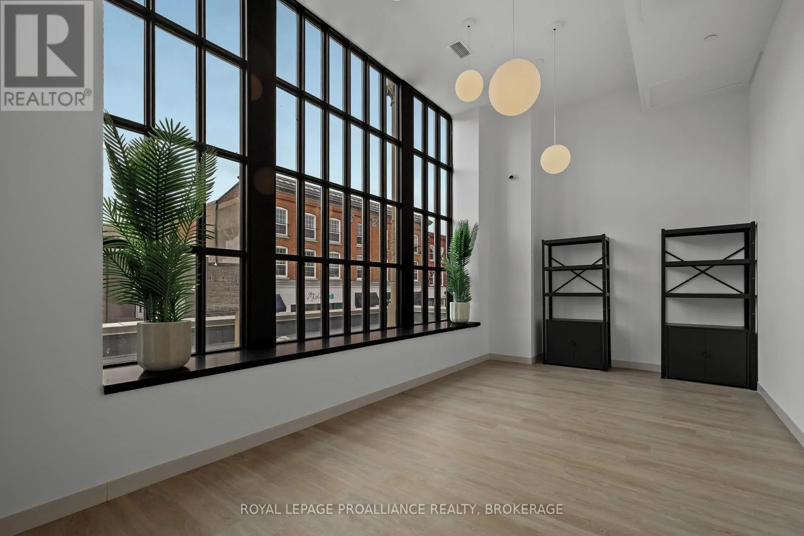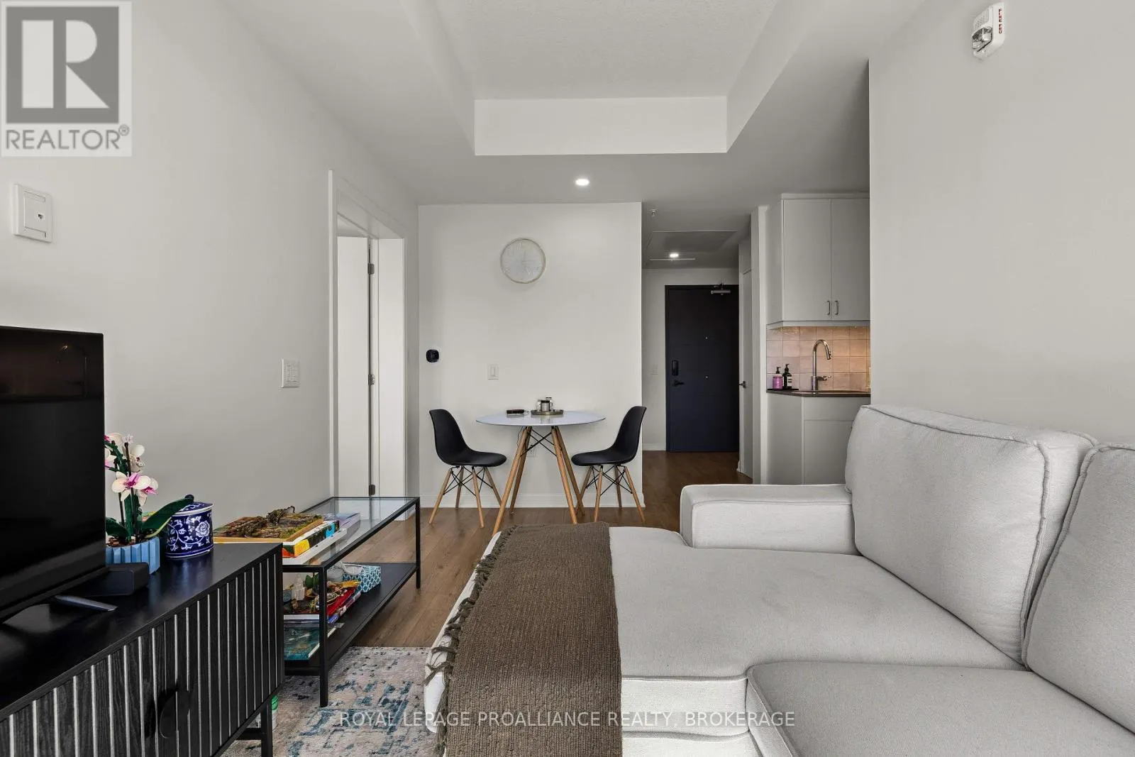 Princess & Sydenham Street Step into modern living with this stunning 600+ sq.ft. unit on the seventh floor of Kingston's newest condo development! Features include a spacious bedroom and dedicated office area, perfect for working from home, two full bathrooms for added convenience, a bright and sunny living area with patio doors leading to a balcony with expansive views of downtown, in-suite laundry for effortless living and a dedicated parking space and secure bike storage. This exceptional building offers a lifestyle like no other with a rooftop patio complete with barbecues, a yoga studio, meeting rooms, and a stylish party lounge for entertaining friends and family. All of this is just steps away from the vibrant Princess Street, where you can explore local shops, eateries, and cultural attractions. Don't miss your change to own a piece of this urban oasis! Whether you're a first-time buyer, looking to downsize, or seek a lucrative investment opportunity, this condo is perfect to you! (id:27476)