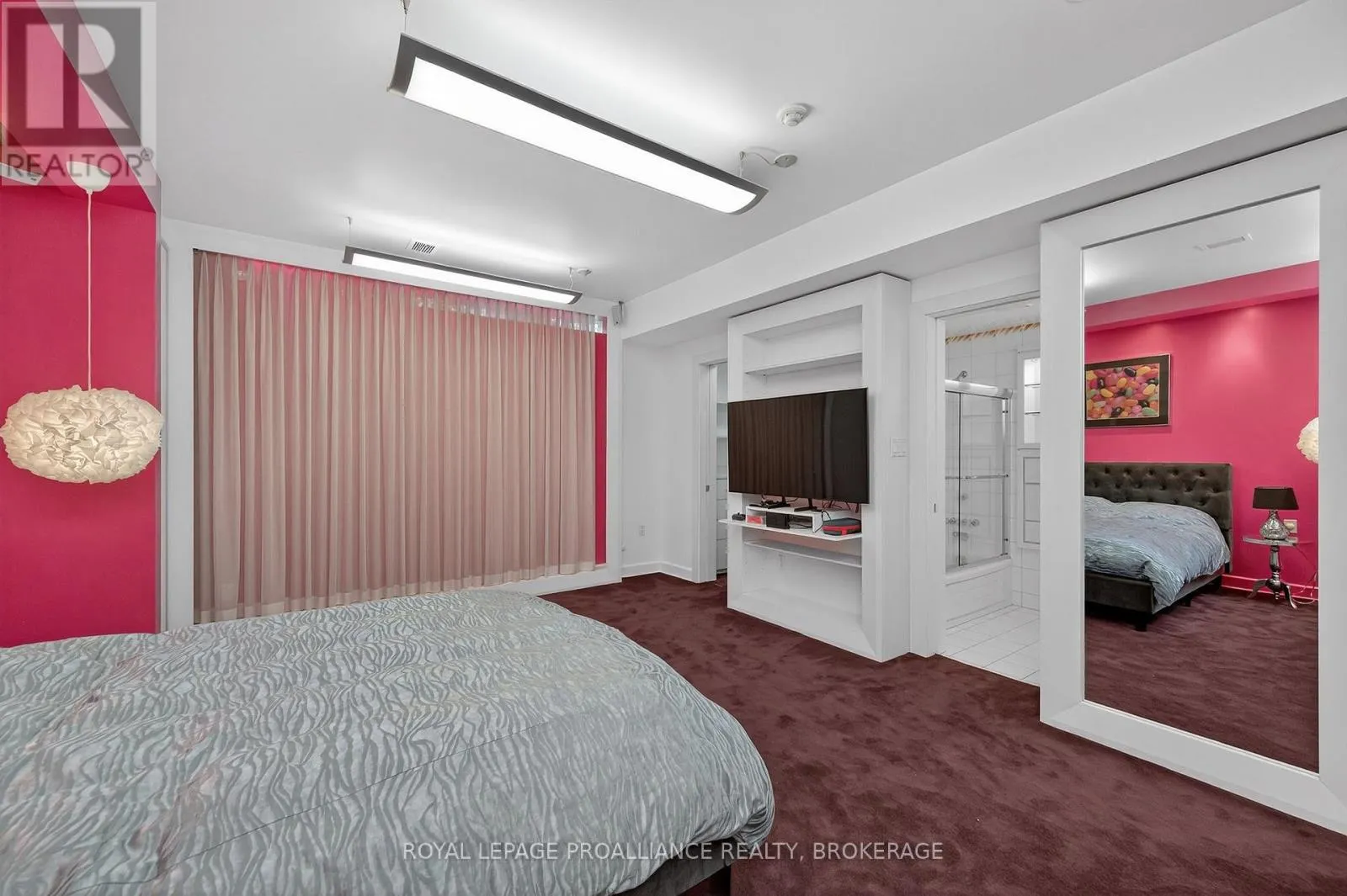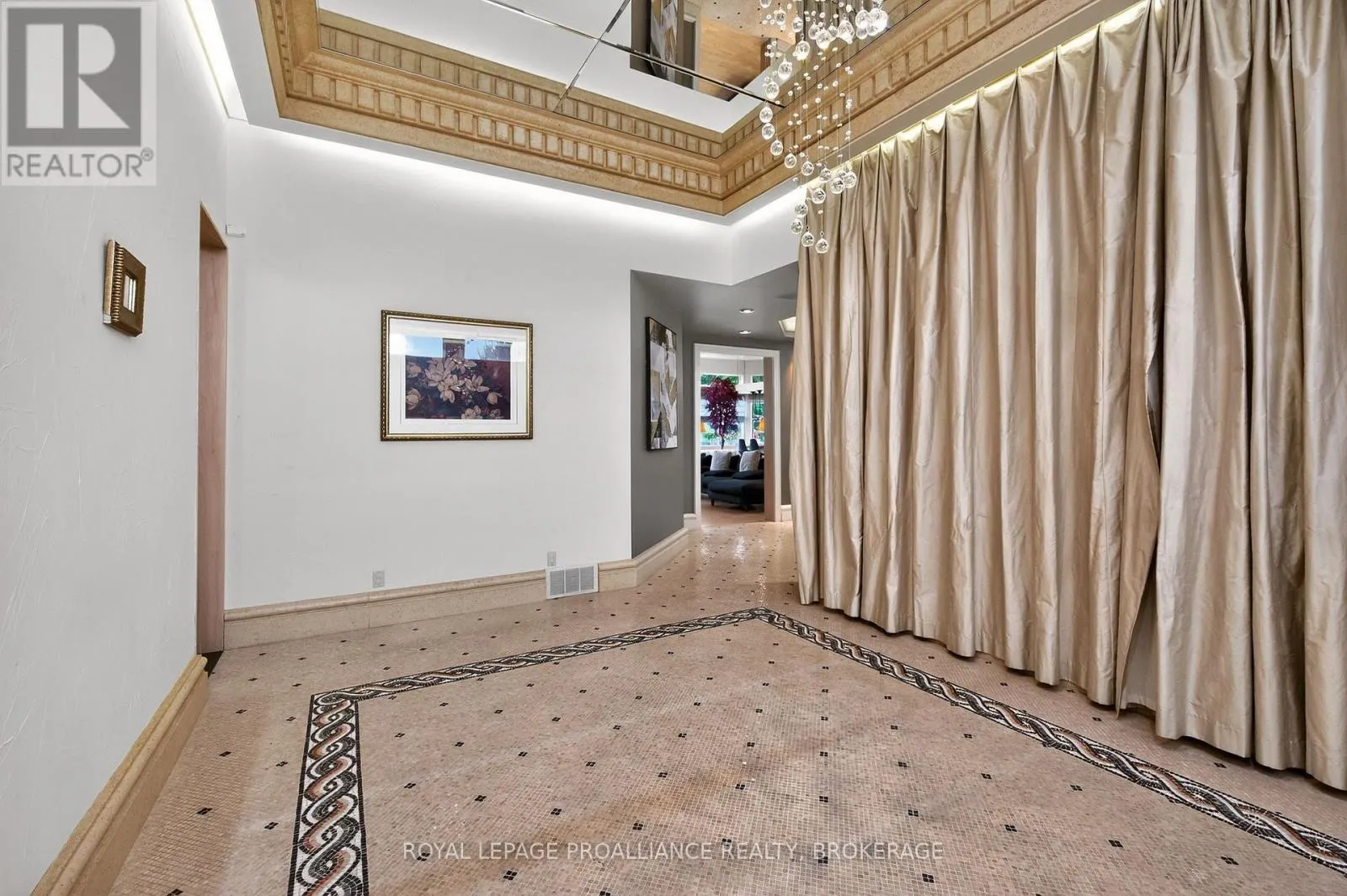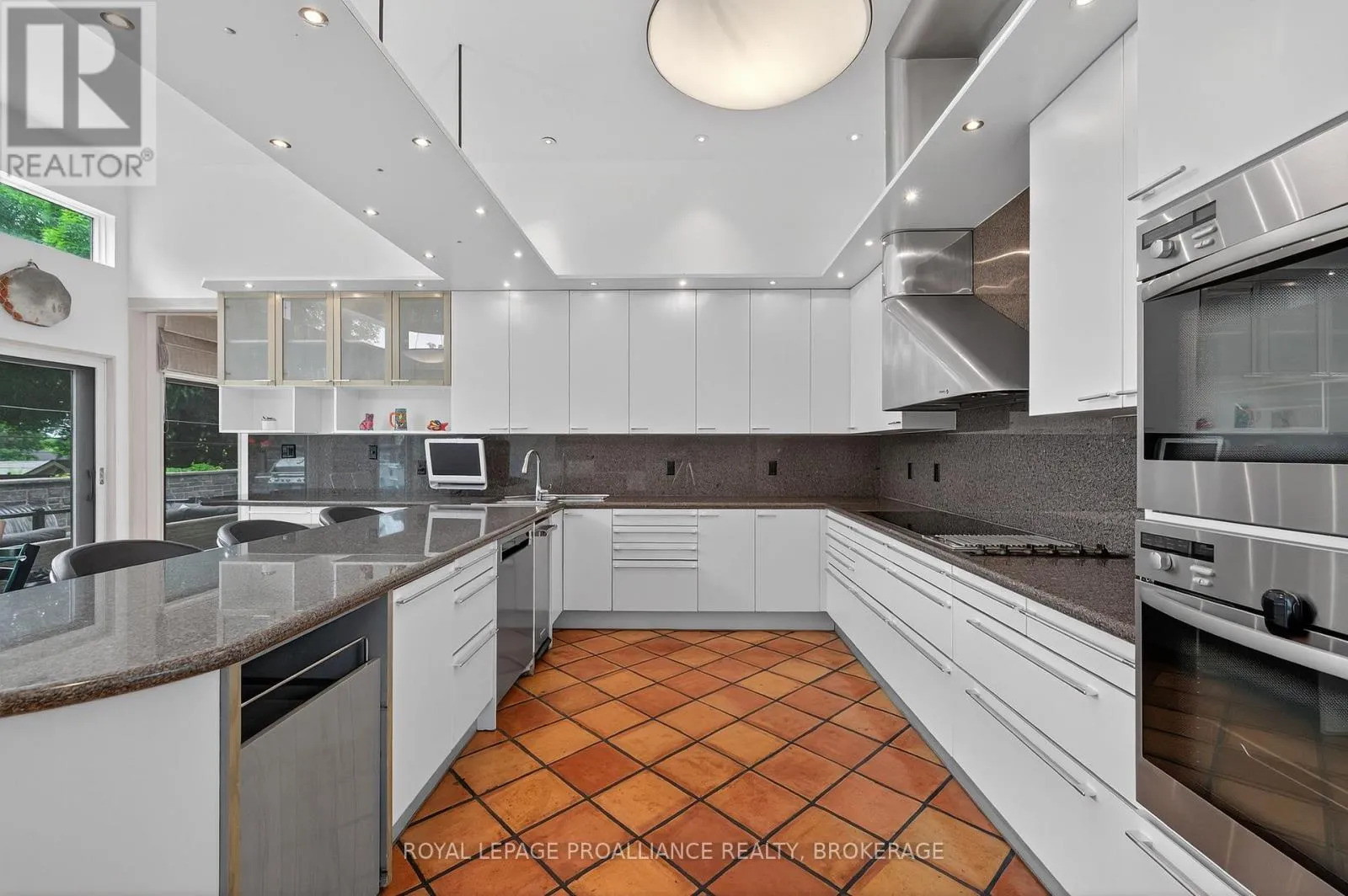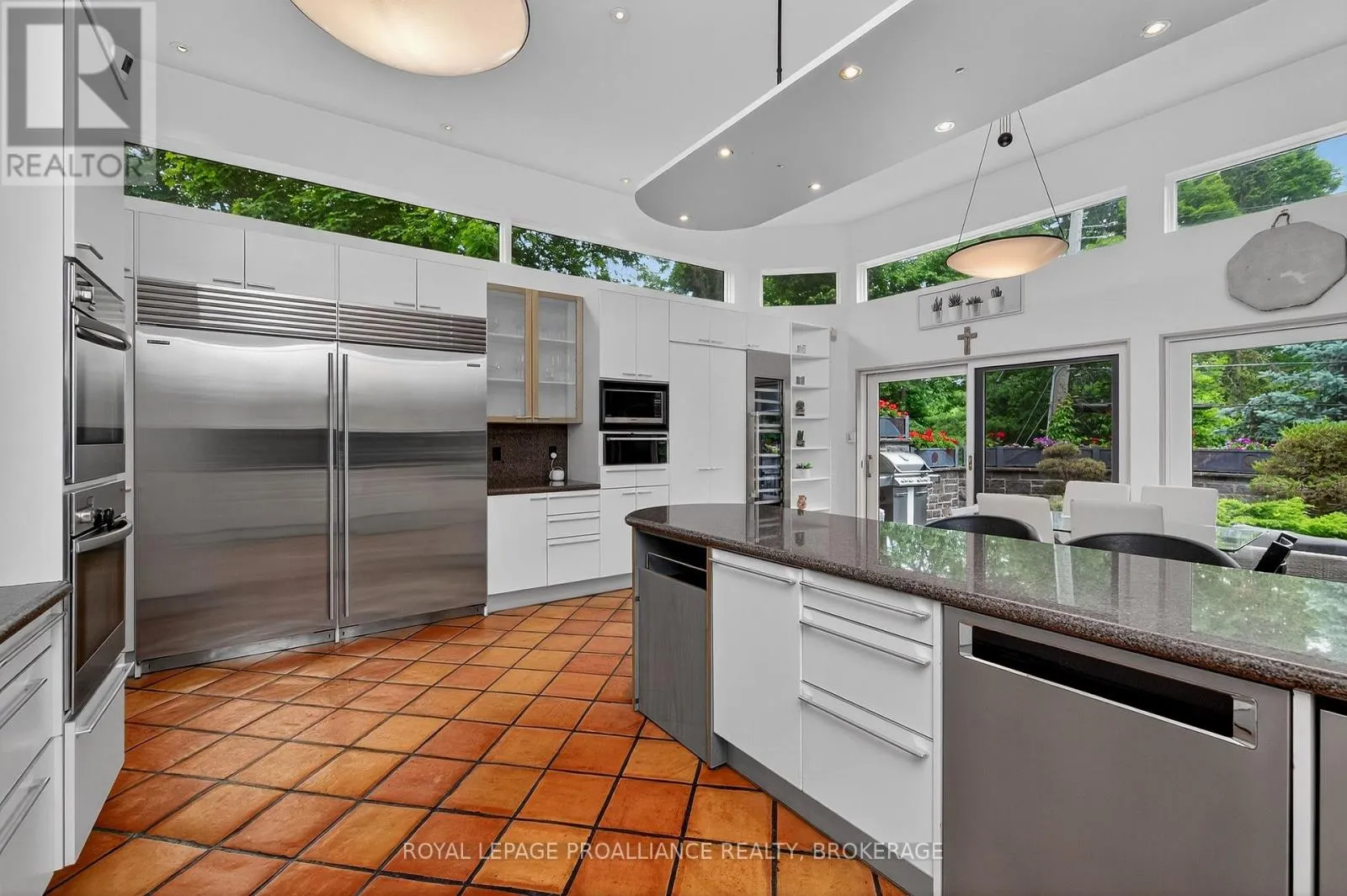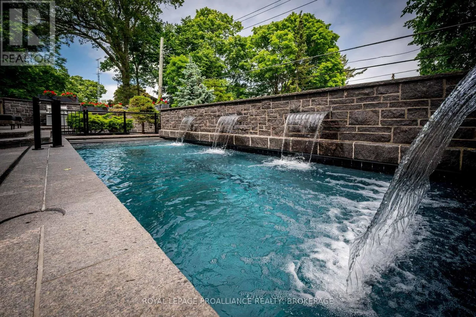 Cross Streets: Authors Lane (#3) off Dickens Drive and before Copperfield Drive. ** Directions: Johnson Street to Dickens Drive to Authors Lane (#3). A rare blend of luxury, comfort, and family-focused design-this custom-built masterpiece in Kingston's Calvin Park has it all. Located on a quiet cul-de-sac just minutes from Lake Ontario's waterfront trails, this 4+1 bedroom, 6-bath home offers over 6,000 square feet of sophisticated living, tailor-made for modern families. The striking two-tone exterior is elevated by newly refreshed stucco (2024), while the interior showcases expert craftsmanship with rich custom mouldings, elegant panel work, and impeccable finishes. The 2-car garage has been fully drywalled and painted for a clean, polished look. On the lower level you will find flexibility meets function: it features a spacious bedroom, full bath, family room, wet bar, and a comfortable area for children to play-ideal for families who need adaptable space that grows with them. Upstairs, the primary suite is a true retreat with a walk-in closet and a luxurious ensuite featuring a professionally restored marble countertop (2024). Step outside into a private backyard oasis where an inground pool with cascading waterfalls is framed by stone walls and a new safety fence. A stone patio and backyard handrail create an ideal setting for outdoor entertaining and relaxed family time. This home has been extensively updated inside and out: new pool pump and irrigation controller (2024), outdoor AC unit (2023, with warranty), dual furnace heat exchanger replacements, and a new hot water tank (2024). Smart Nest thermostats and an upgraded security system add everyday ease and peace of mind. Close to Queen's University, KGH, and vibrant downtown Kingston, this home balances thoughtful luxury with family-first comfort-an exceptional space to grow, gather, and thrive. (id:27476)