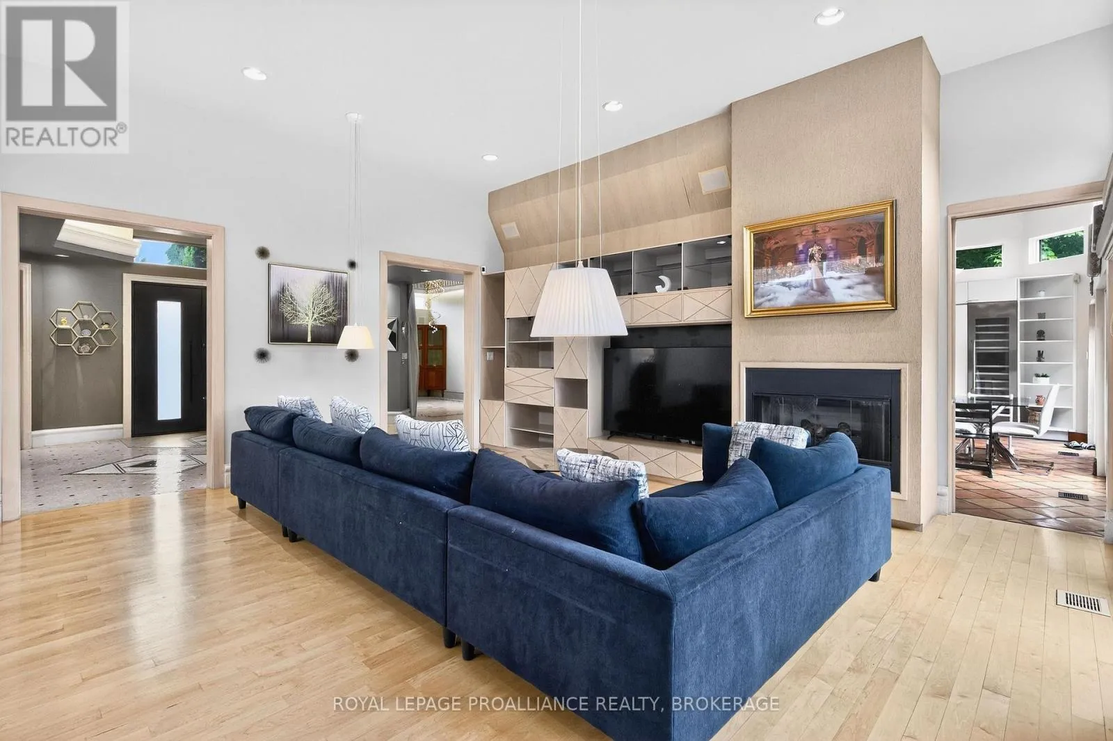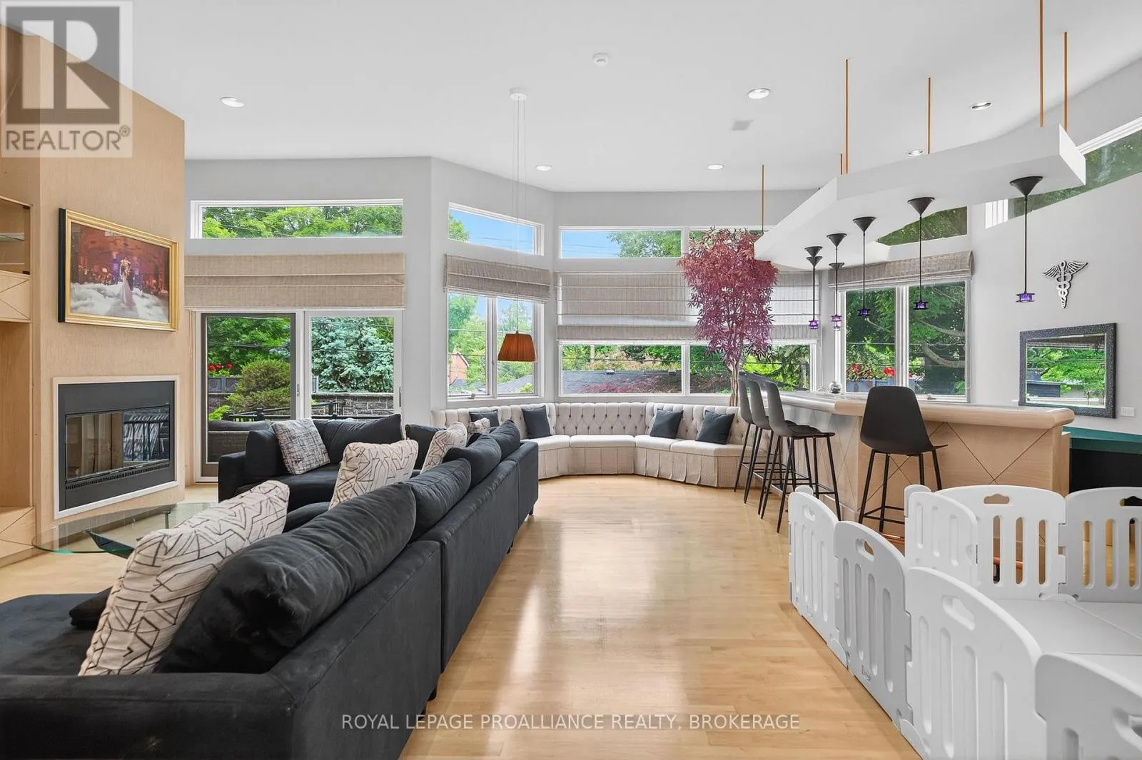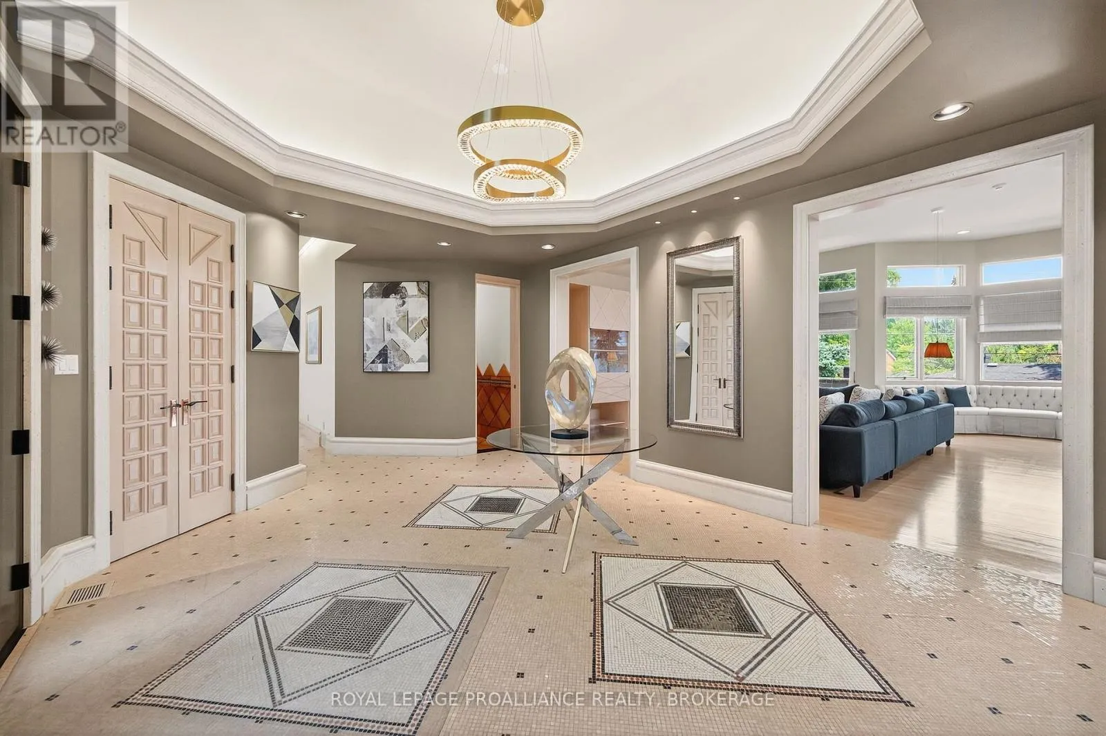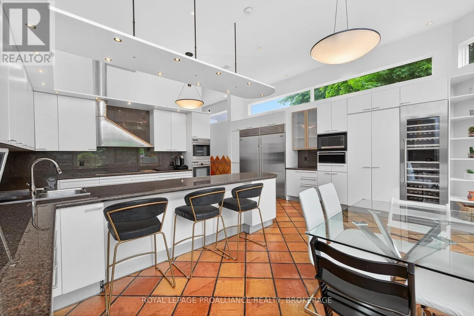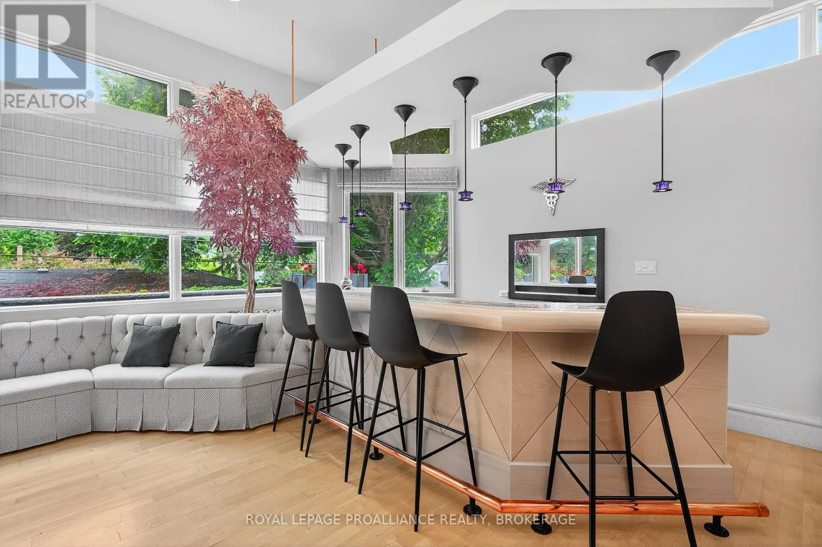 Cross Streets: Authors Lane (#3) off Dickens Drive and before Copperfield Drive. ** Directions: Johnson Street to Dickens Drive to Authors Lane (#3). A rare blend of luxury, comfort, and family-focused design-this custom-built masterpiece in Kingston's Calvin Park has it all. Located on a quiet cul-de-sac just minutes from Lake Ontario's waterfront trails, this 4+1 bedroom, 6-bath home offers over 6,000 square feet of sophisticated living, tailor-made for modern families. The striking two-tone exterior is elevated by newly refreshed stucco (2024), while the interior showcases expert craftsmanship with rich custom mouldings, elegant panel work, and impeccable finishes. The 2-car garage has been fully drywalled and painted for a clean, polished look. On the lower level you will find flexibility meets function: it features a spacious bedroom, full bath, family room, wet bar, and a comfortable area for children to play-ideal for families who need adaptable space that grows with them. Upstairs, the primary suite is a true retreat with a walk-in closet and a luxurious ensuite featuring a professionally restored marble countertop (2024). Step outside into a private backyard oasis where an inground pool with cascading waterfalls is framed by stone walls and a new safety fence. A stone patio and backyard handrail create an ideal setting for outdoor entertaining and relaxed family time. This home has been extensively updated inside and out: new pool pump and irrigation controller (2024), outdoor AC unit (2023, with warranty), dual furnace heat exchanger replacements, and a new hot water tank (2024). Smart Nest thermostats and an upgraded security system add everyday ease and peace of mind. Close to Queen's University, KGH, and vibrant downtown Kingston, this home balances thoughtful luxury with family-first comfort-an exceptional space to grow, gather, and thrive. (id:27476)