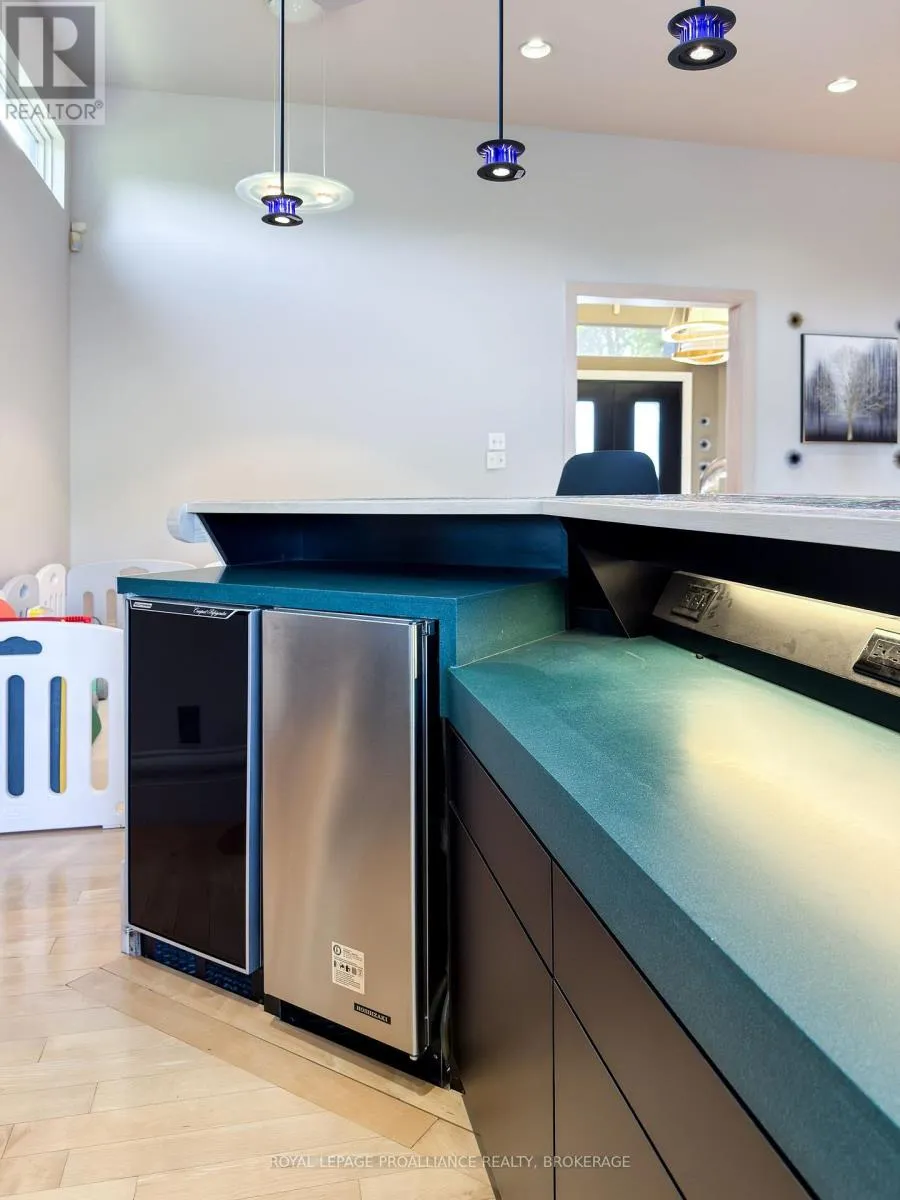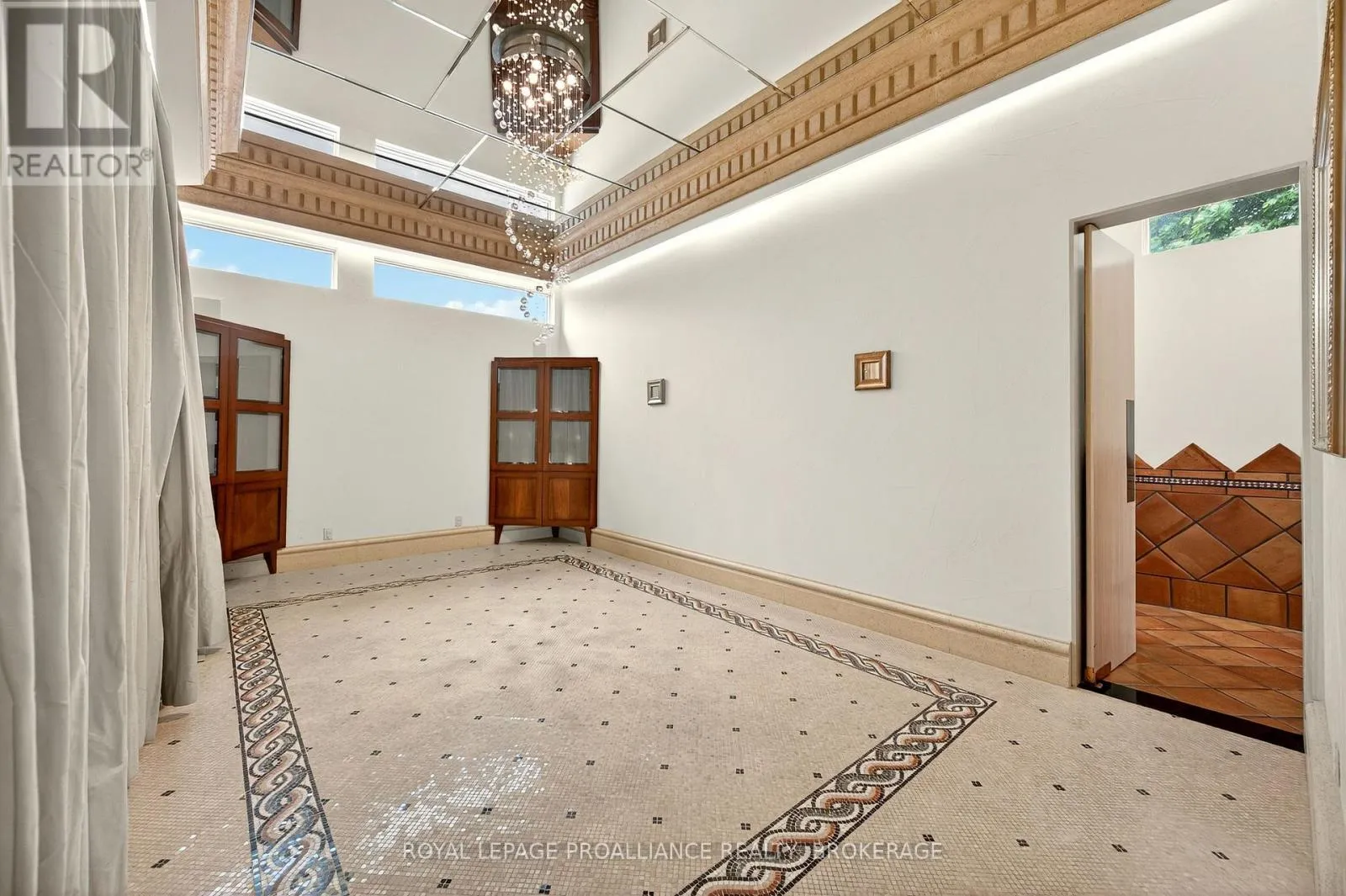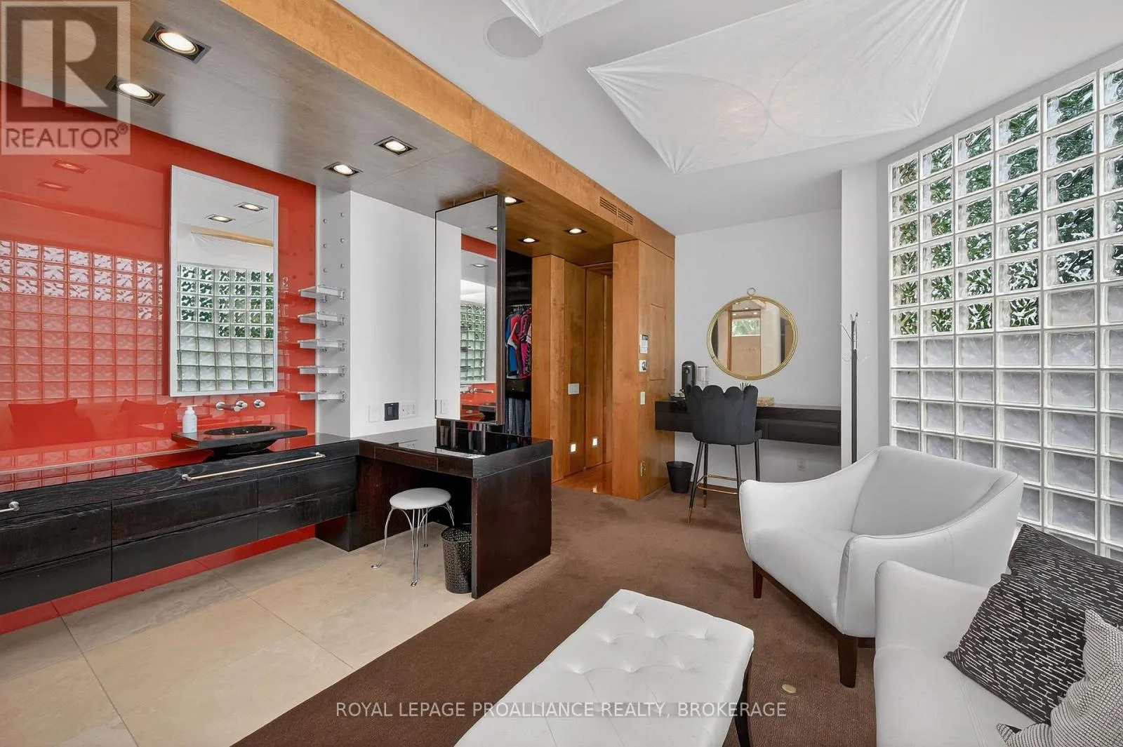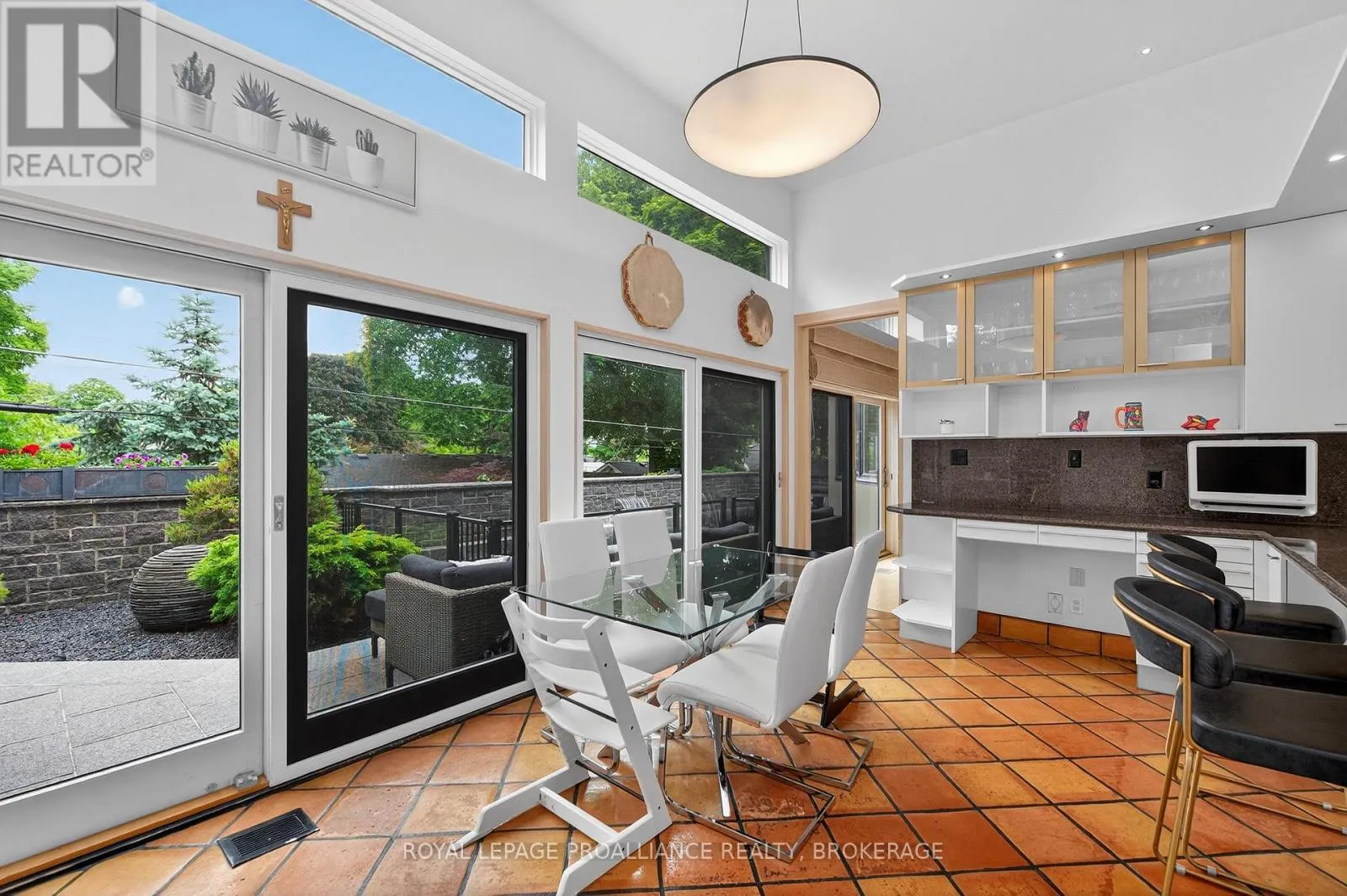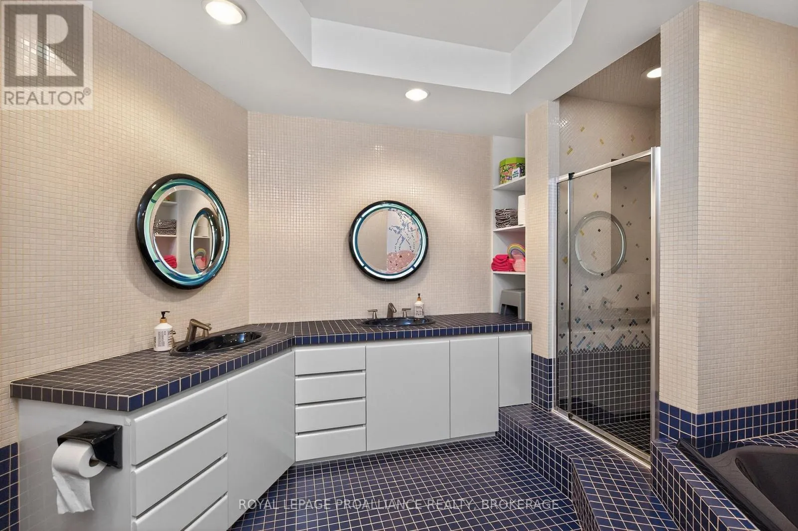Cross Streets: Authors Lane (#3) off Dickens Drive and before Copperfield Drive. ** Directions: Johnson Street to Dickens Drive to Authors Lane (#3). A rare blend of luxury, comfort, and family-focused design-this custom-built masterpiece in Kingston's Calvin Park has it all. Located on a quiet cul-de-sac just minutes from Lake Ontario's waterfront trails, this 4+1 bedroom, 6-bath home offers over 6,000 square feet of sophisticated living, tailor-made for modern families. The striking two-tone exterior is elevated by newly refreshed stucco (2024), while the interior showcases expert craftsmanship with rich custom mouldings, elegant panel work, and impeccable finishes. The 2-car garage has been fully drywalled and painted for a clean, polished look. On the lower level you will find flexibility meets function: it features a spacious bedroom, full bath, family room, wet bar, and a comfortable area for children to play-ideal for families who need adaptable space that grows with them. Upstairs, the primary suite is a true retreat with a walk-in closet and a luxurious ensuite featuring a professionally restored marble countertop (2024). Step outside into a private backyard oasis where an inground pool with cascading waterfalls is framed by stone walls and a new safety fence. A stone patio and backyard handrail create an ideal setting for outdoor entertaining and relaxed family time. This home has been extensively updated inside and out: new pool pump and irrigation controller (2024), outdoor AC unit (2023, with warranty), dual furnace heat exchanger replacements, and a new hot water tank (2024). Smart Nest thermostats and an upgraded security system add everyday ease and peace of mind. Close to Queen's University, KGH, and vibrant downtown Kingston, this home balances thoughtful luxury with family-first comfort-an exceptional space to grow, gather, and thrive. (id:27476)