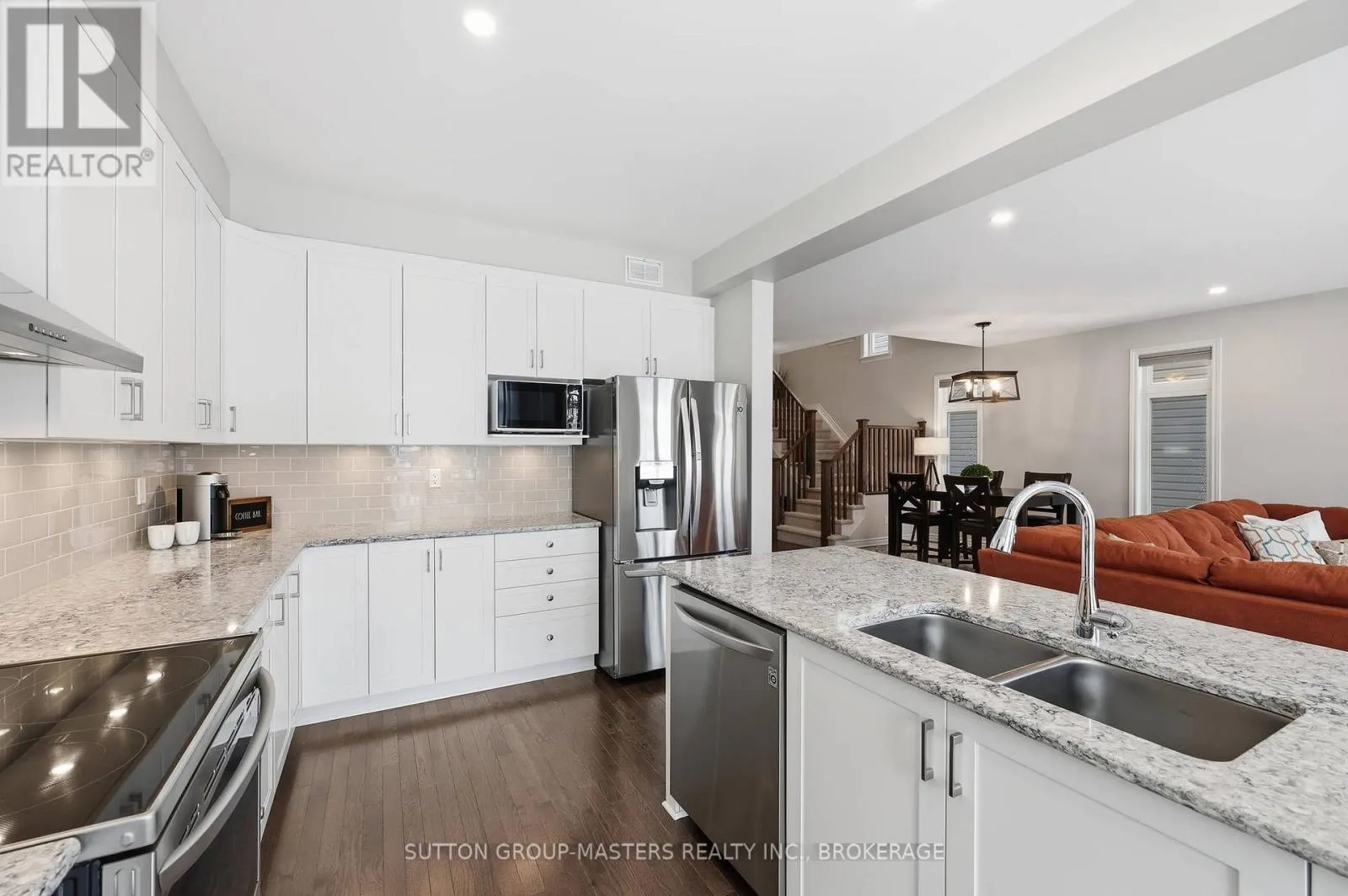 Hwy 15 to Waterside Welcome to this meticulously maintained 5-year-old Sable model by Tamarack Homes, nestled in the sought-after Riverview community on the east side of the Limestone City. From the serene covered front porch to the generous entryway, this home impresses with its desirable open-concept layout, abundant natural light, and soaring 9-foot ceilings. The chef-inspired kitchen is a true highlight, featuring an oversized island with stone countertops, upgraded cabinetry with soft-close drawers, and a timeless subway tile backsplash. The inviting living room is anchored by a custom gas fireplace and flows seamlessly into the adjacent formal dining area - perfect for both everyday living and entertaining. Thoughtfully designed, the main level also offers a spacious mudroom with inside access to the attached double-car garage, along with a dedicated office tucked just beyond, complete with charming windows. Upstairs, the expansive primary suite boasts a walk-in closet and a stunning 5-piece ensuite with a soaker tub and separate shower. Three additional well-appointed bedrooms and a conveniently located laundry room with sink complete this level. The lower level is ready for your personal touch, offering elevated ceilings, large windows, and a bathroom rough-in. Recently painted throughout, the home continues to impress outdoors with a fully landscaped and fenced backyard, featuring a concrete patio and walkway-ideal for relaxing or entertaining. Perfectly situated with easy access to Hwy 401, CFB Kingston, schools, downtown, and a wide range of amenities, this exceptional home is ready to welcome its next owners. Come see it for yourself! (id:27476)