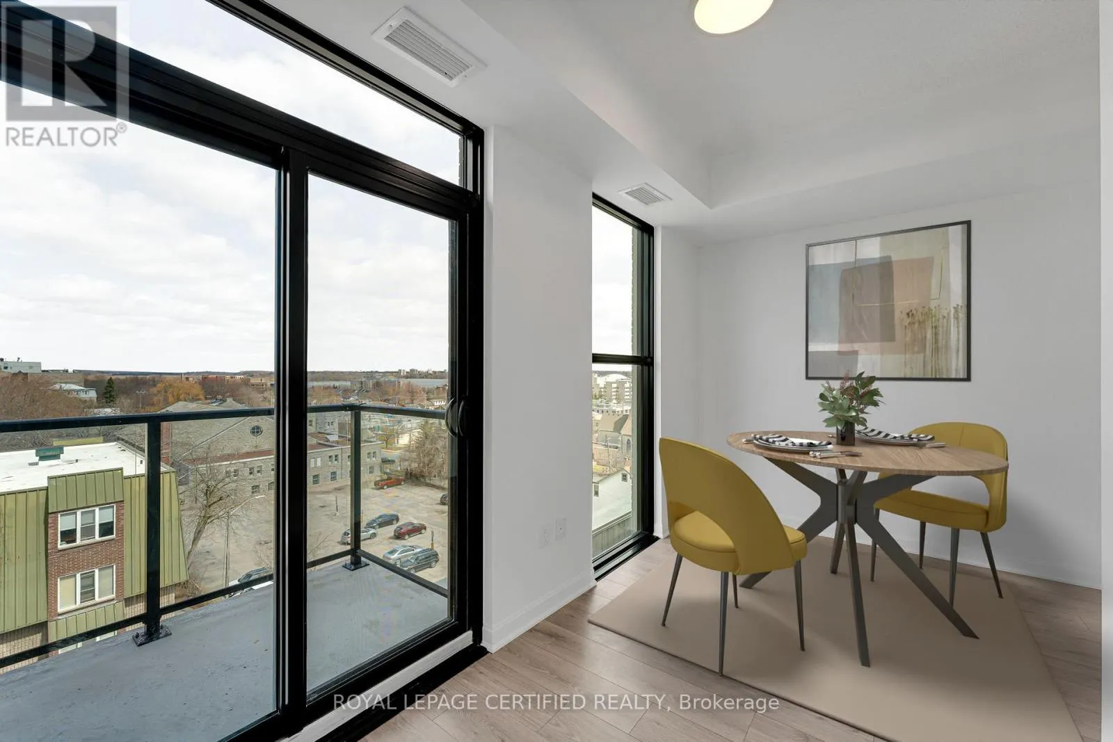 Cross Streets: Montreal Street and Princess Street. ** Directions: GOOGLE MAP. Welcome to this brand new, never-lived-in boutique condo in the heart of Kingston. This thoughtfully designed one bedroom plus den suite offers a perfect blend of style and functionality, ideal for modern urban living. The spacious bedroom and generously sized den provide exceptional flexibility-perfect for a home office, guest space, or additional living area. Enjoy stunning views of the bay from your private balcony, creating a serene backdrop for your morning coffee or evening unwind. This unit also includes a highly sought-after owned parking space and locker - an incredibly rare and valuable feature in this building, adding both convenience and long-term appeal. Located in a prime central location, you'll be just steps from Kingston's vibrant downtown, waterfront, shops, and dining. This is a unique opportunity to own a pristine condo with premium features in one of the city's most desirable boutique residences! (id:27476)