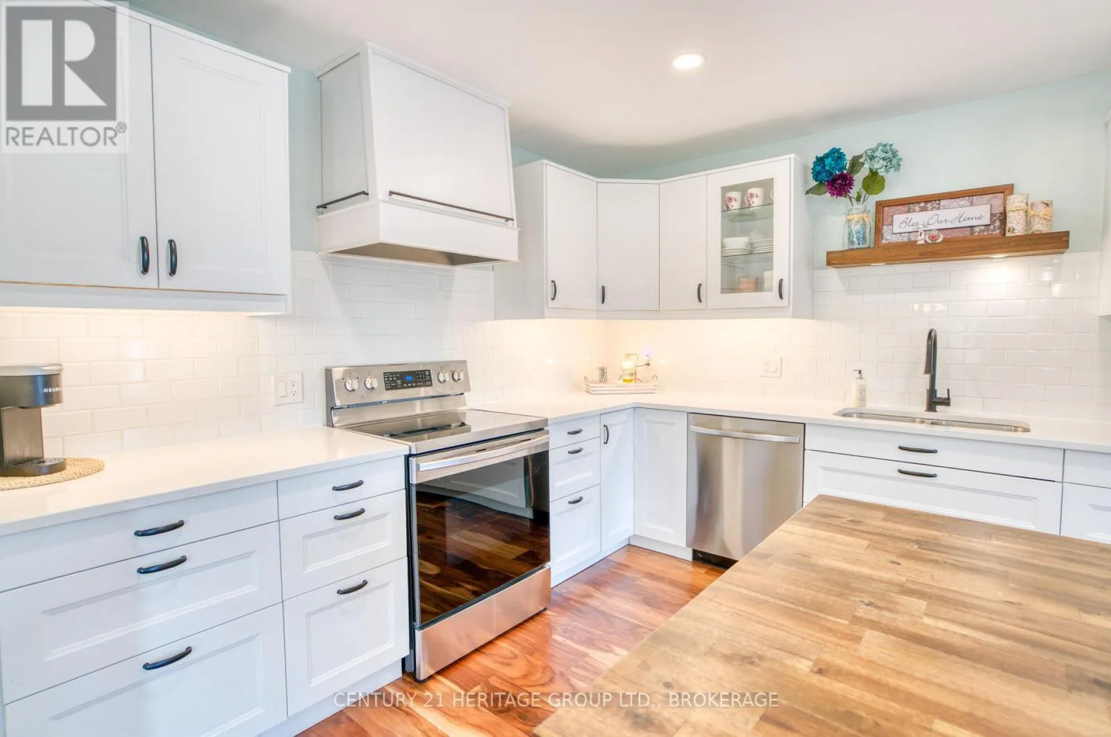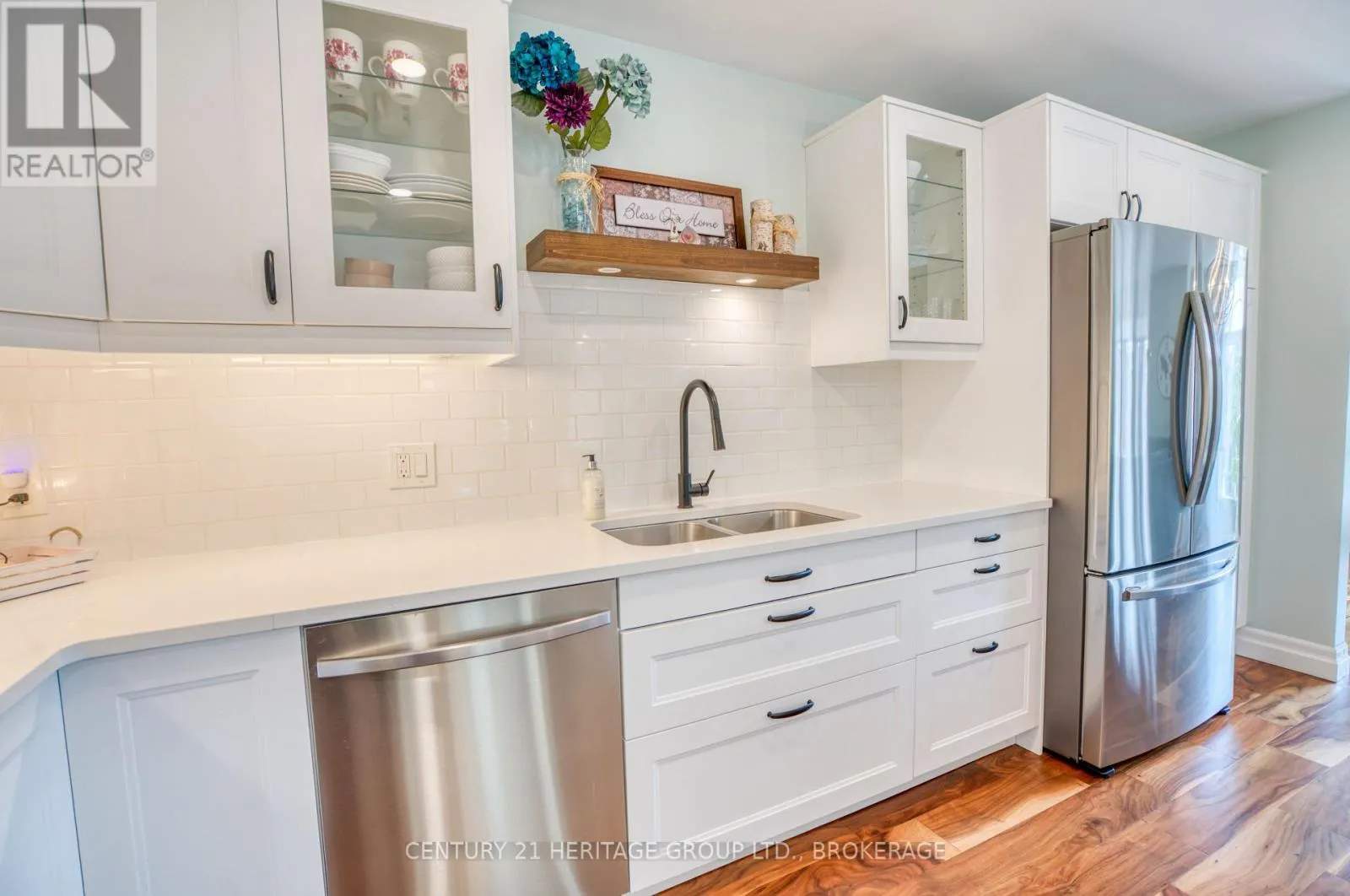 Cross Streets: Acadia Drive. ** Directions: Bayridge Drive, to Acadia Drive, to Barnsley Cr. Located in one of Kingston's most sought-after neighbourhoods, this beautifully updated semi-detached home offers exceptional style, space, and versatility. Step into the split-level entry and head up to discover a stunning, fully renovated main living area that is sure to impress. The kitchen is a true showstopper, featuring gleaming quartz countertops, a large island, and stainless steel appliances. It flows seamlessly into the expansive dining and living areas, highlighted by gorgeous engineered hardwood flooring-perfect for entertaining or enjoying everyday family life. Down the hall, you'll find a tastefully updated 4-piece bathroom, a spacious primary bedroom complete with a brand new 3-piece ensuite, and two additional well-sized bedrooms. The lower level offers incredible flexibility, with a separate walkout entrance, brand new kitchenette, full bathroom, large recreation room, and laundry area-ideal for extended family, guests, or multi-generational living. Step outside to a private, fully fenced backyard backing onto peaceful greenspace. Completing the package is a double-car attached garage with inside entry and workshop potential, along with a fully paved driveway offering ample parking. Conveniently located close to parks, the marina, Lemoine's Point, and all west-end amenities, with an easy commute to downtown Kingston, this is a home you won't want to miss. (id:27476)