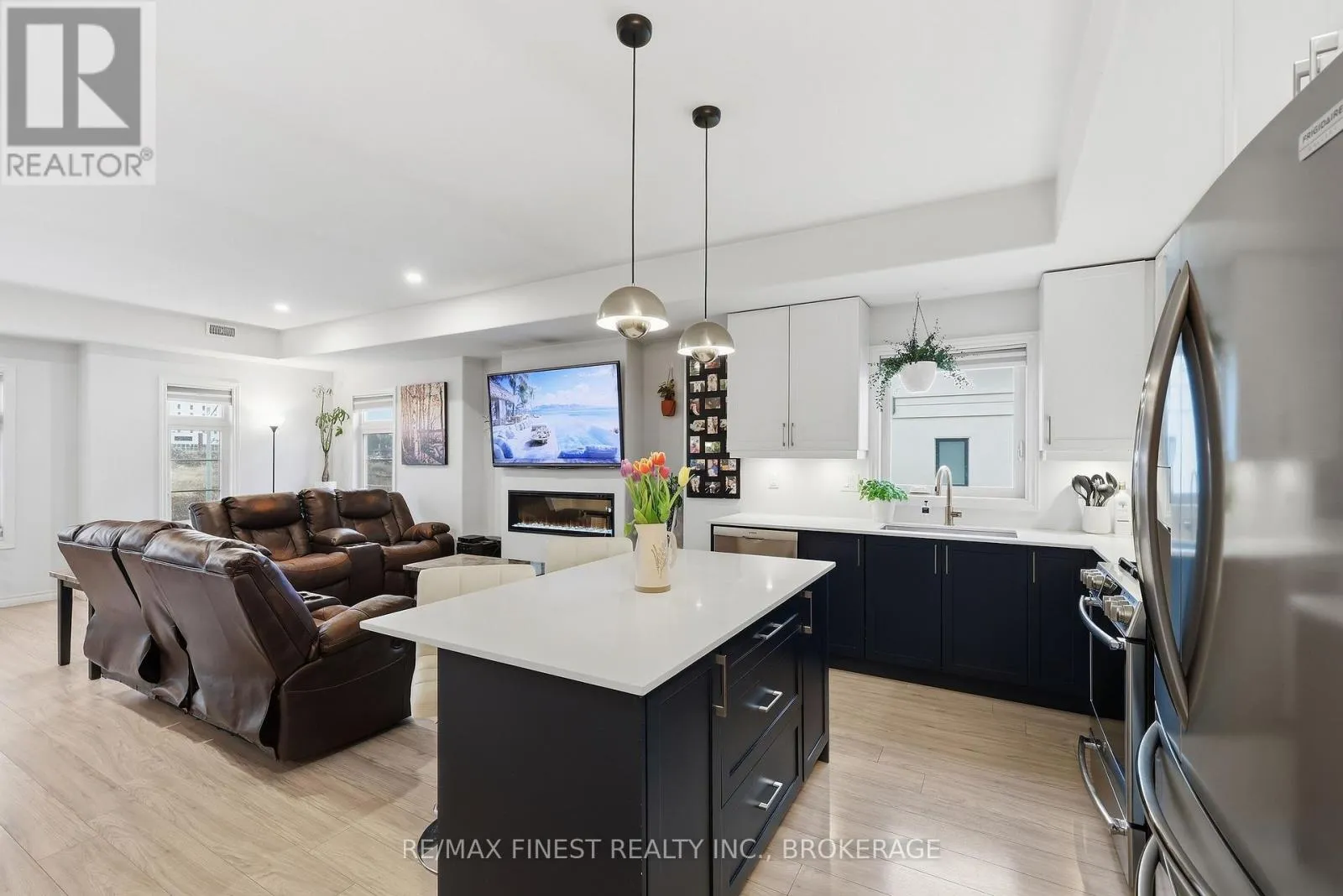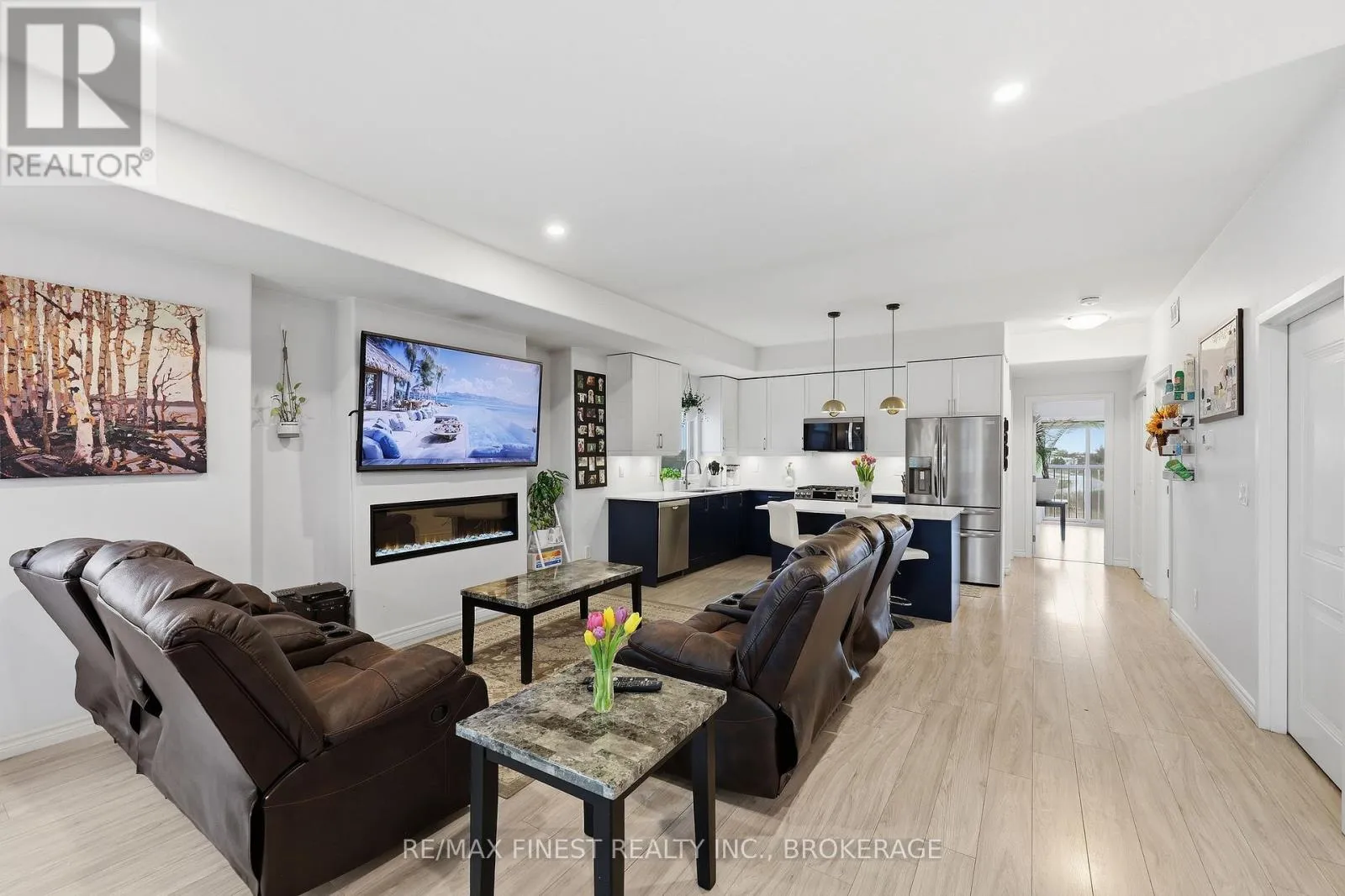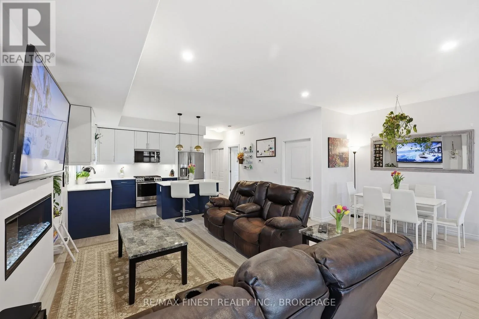 Cross Streets: CENTENNIAL DRIVE AND TERRA VERDE. ** Directions: CENTENNIAL DRIVE TO TERRA VERDE. Welcome to 1015 Terra Verde Way, Unit 201. A rare opportunity to own in the sought-after Terra Verde community. This spacious 3-bedroom, 2-bath end unit stacked townhouse offers a generous 1,825 sqft. of living space. The open-concept main level features a modern kitchen with stainless steel appliances, gas range, and a large island, flowing seamlessly into the bright living and dining areas complete with an electric fireplace and is perfect for entertaining. The main level also includes two bedrooms, a full 4-piece bathroom, and convenient in-unit laundry, offering flexible space for guests, family, or a home office. The upper level is dedicated to the primary bedroom, featuring a walk-in closet, a 5-piece ensuite, and access to a private balcony. Additional highlights include carpet-free flooring throughout, a heated garage with space for two vehicles plus storage, and a dedicated additional outdoor parking space. Ideally located with direct access to the K&P Trail, nearby parks, shared pathways, and within walking distance to restaurants, cafés, and a daycare, this home offers the perfect balance of lifestyle, convenience, and low-maintenance living. (id:27476)