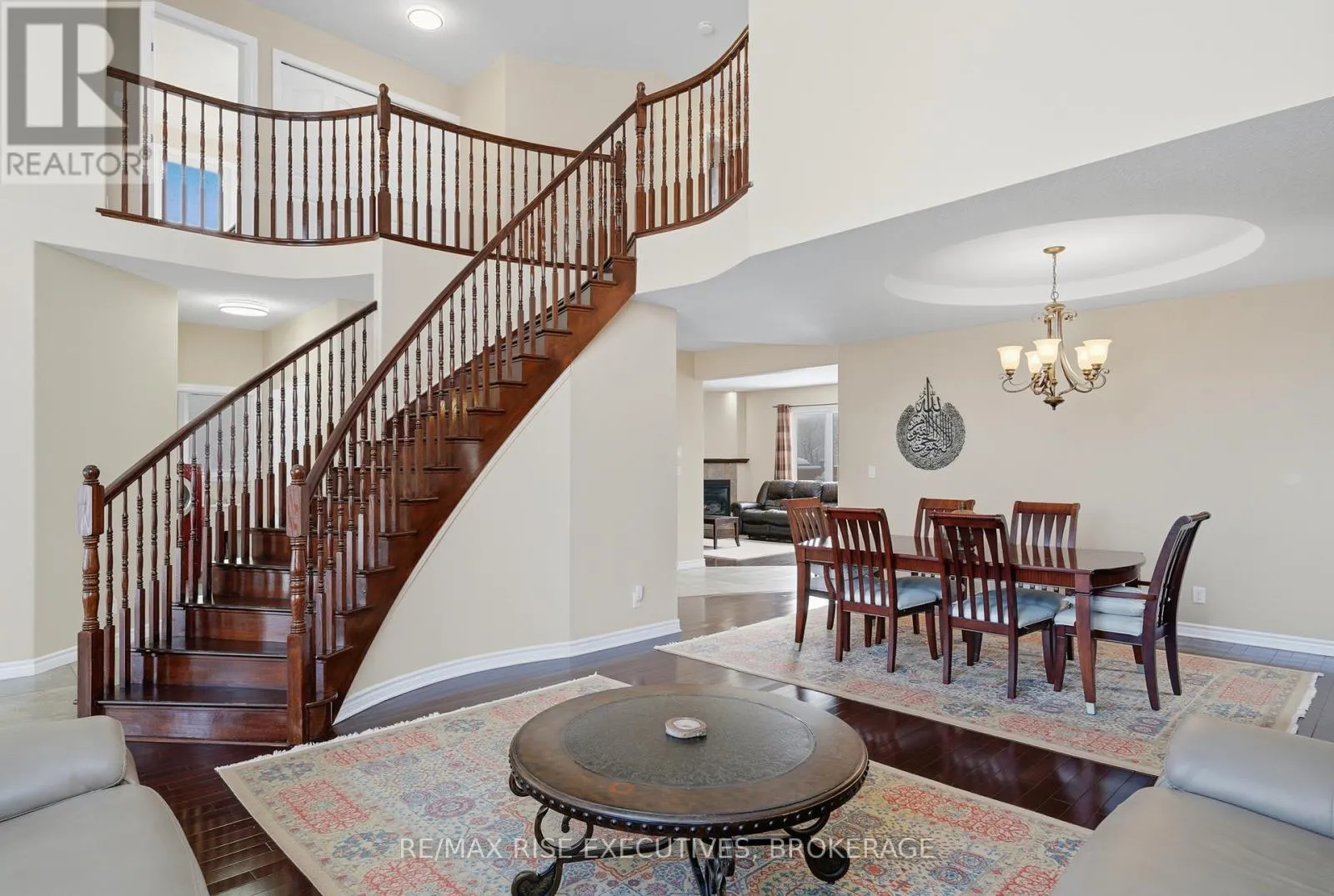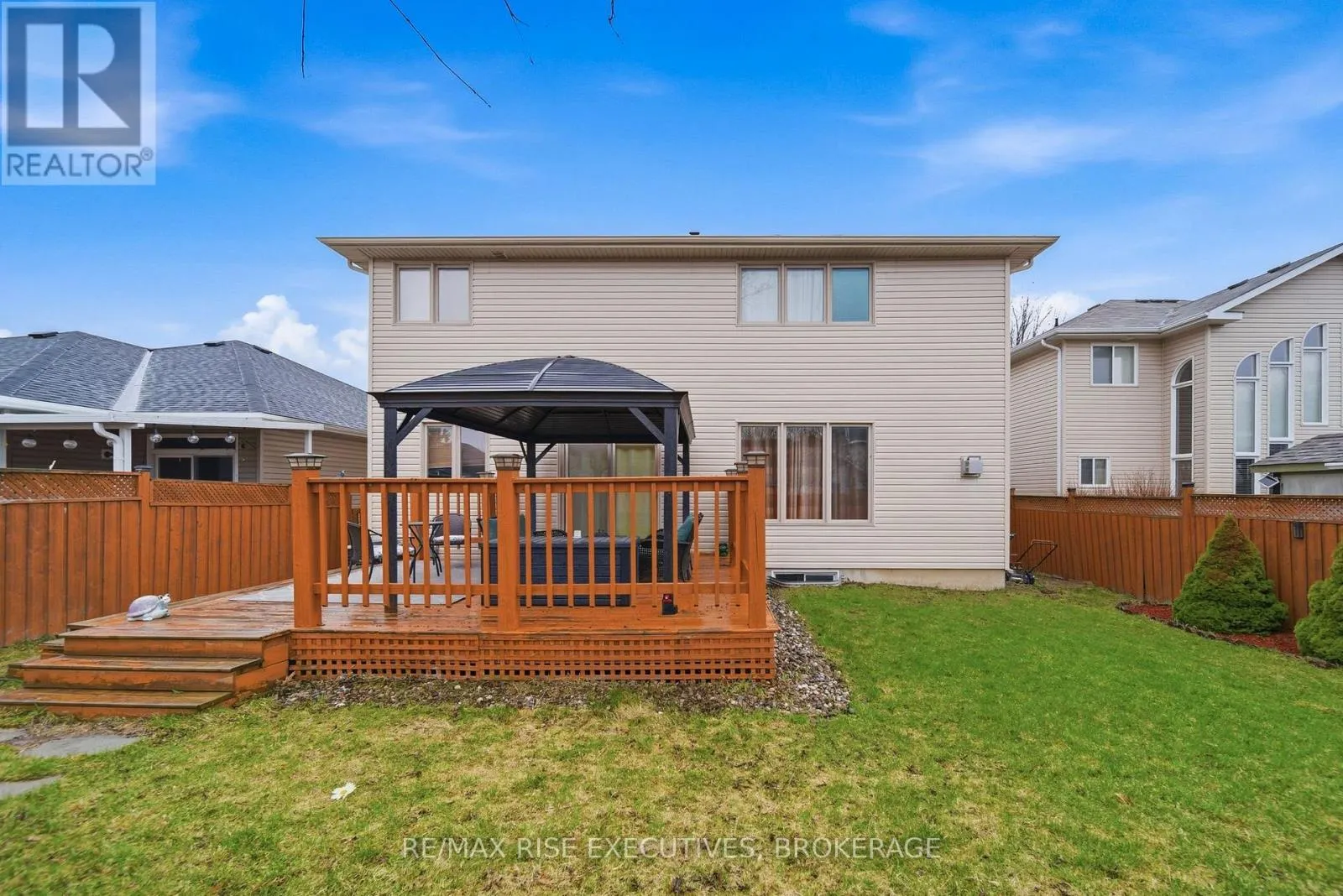 Cross Streets: Crossfield Avenue and Centennial Drive. ** Directions: Crossfield Drive to Emerald Street to Cavendish Crescent. If space, functionality, and a family-friendly neighbourhood are at the top of your list, 402 Cavendish Crescent delivers. Offering over 4,000 sq/ft of living space, this impressive, carpet-free home provides exceptional room to grow. Step inside to a show-stopping two-storey foyer and living room, highlighted by a dramatic curved staircase and expansive windows that flood the space with natural light. Designed for everyday living, the ultra-functional kitchen features a U-shaped layout with abundant cabinetry, granite countertops, and a sizeable island with seating. The main level also offers a warm and inviting family room with a natural gas fireplace, a versatile office or playroom, a formal dining room ideal for hosting, and a practical laundry room with convenient access to the double-car garage. Upstairs, you'll find four generously sized bedrooms with ample storage. The primary suite spans the entire rear of the home, complete with a spacious walk-in closet and a five-piece ensuite-creating a true retreat. The fully finished lower level adds even more flexibility, featuring a large rec room, additional storage, and a two/three-bedroom in-law suite with its own separate entrance - ideal for family and guests. Outside, enjoy a fully fenced backyard complete with a deck and gazebo, perfect for relaxing or entertaining. Ideally located near parks, a splash pad, amenities, transit routes, and with quick access to Highway 401, this home offers both convenience and community. Exceptional space, incredible versatility, and great value. Schedule your viewing today! (id:27476)