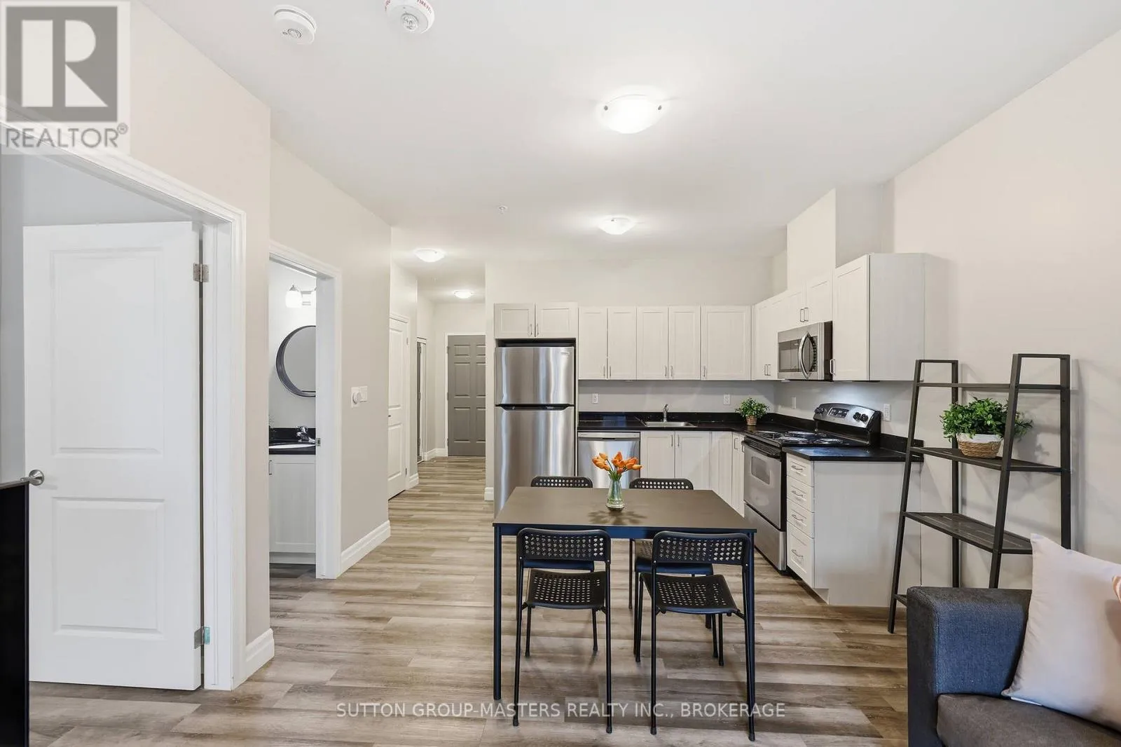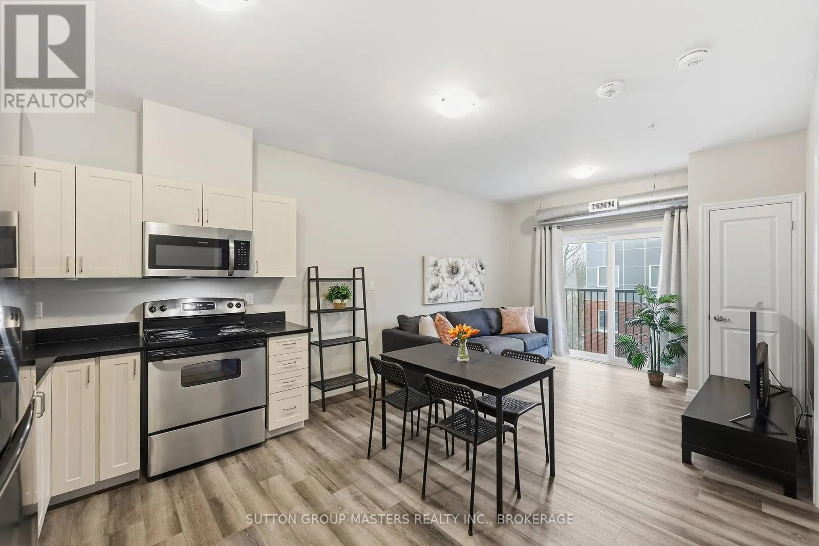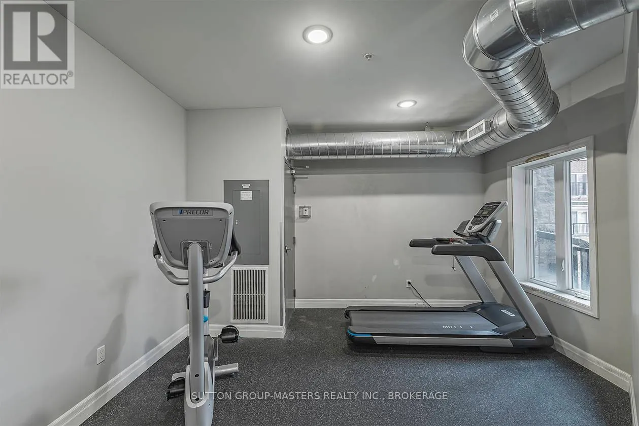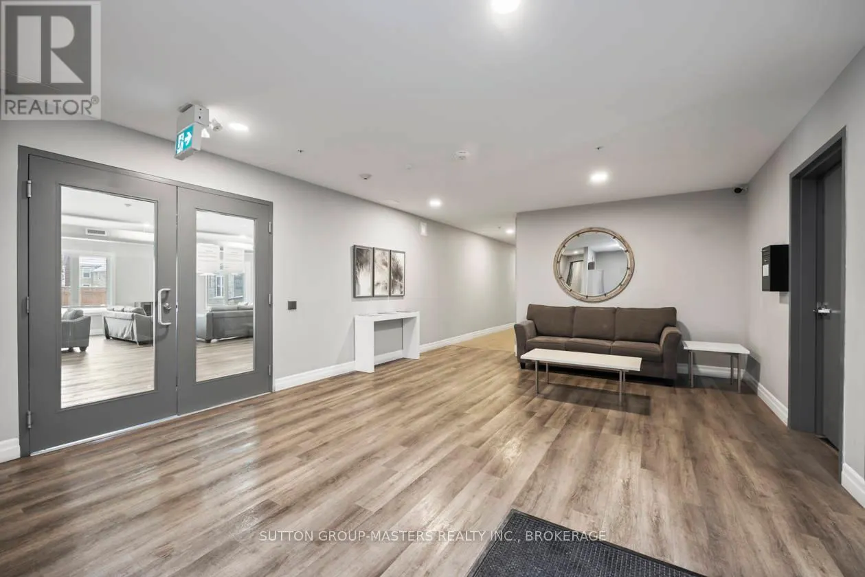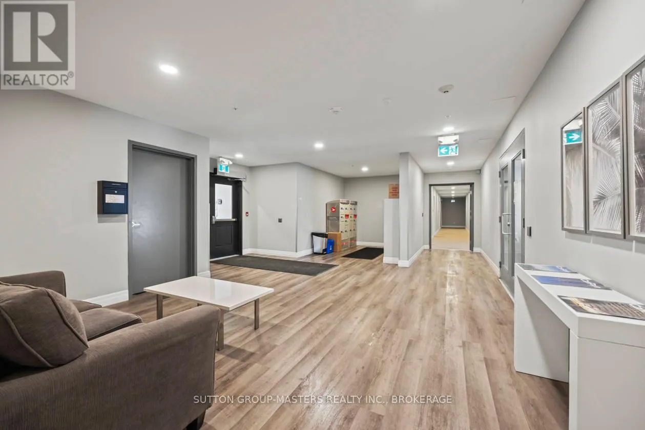 Cross Streets: Princess and Frontenac. ** Directions: Princess to Frontenac St. Prime location in one of Kingston's newer, meticulously managed condominium buildings, just a short walk to Queen's University and all the amenities of the Limestone City's vibrant downtown core. Situated on the desirable 4th floor, this bright and inviting unit offers a fantastic open-concept layout with soaring ceilings, durable laminate flooring, and the convenience of in-suite laundry. Well maintained throughout, the space features neutral décor, stainless steel kitchen appliances, and gleaming quartz countertops in both the kitchen and bathroom. Natural light pours in through the Juliette balcony, offering a pleasant view overlooking the courtyard. This unit also includes exclusive deeded parking in the secure underground garage, conveniently located just steps from the elevator. The building is well equipped with secure front entry, a fitness room, a bookable party room, and an expansive rooftop terrace complete with BBQs - perfect for enjoying time with friends during the warmer months. With easy access to public transit, restaurants, shops, and parks, this is an ideal opportunity for busy professionals or students seeking a low-maintenance lifestyle. All furniture and kitchenware are negotiable, making this a truly move-in-ready option. Come see it for yourself! (id:27476)