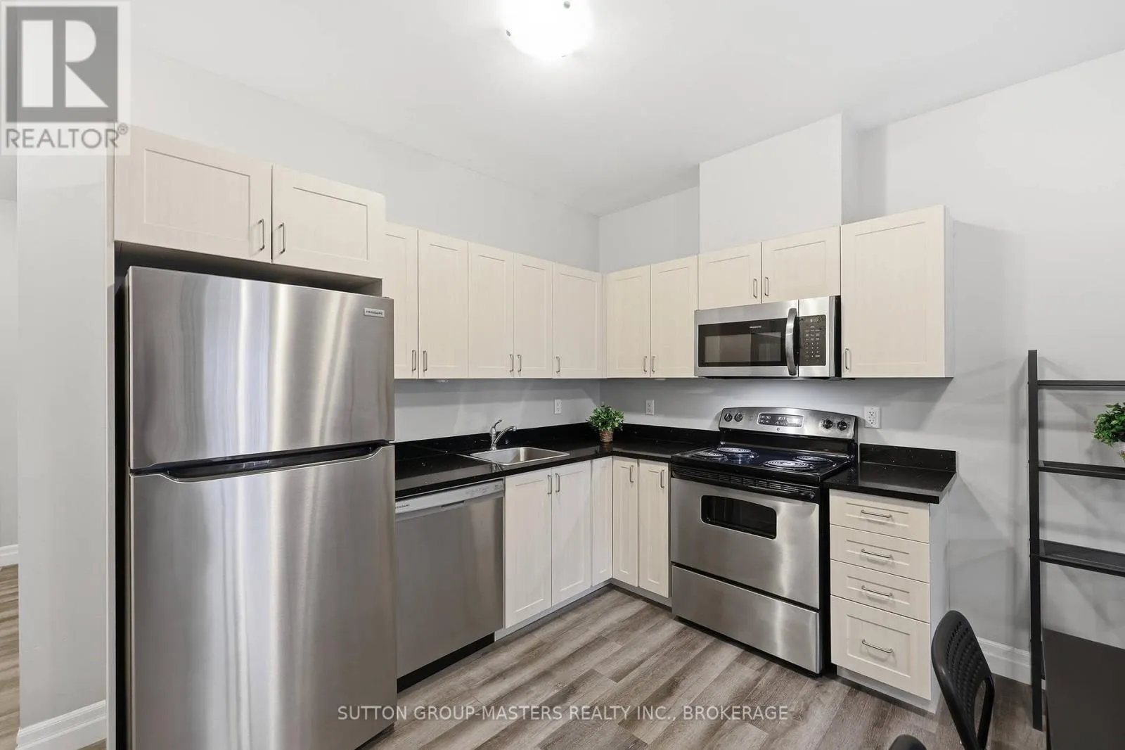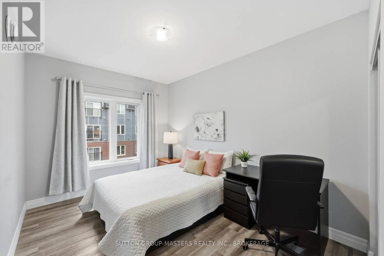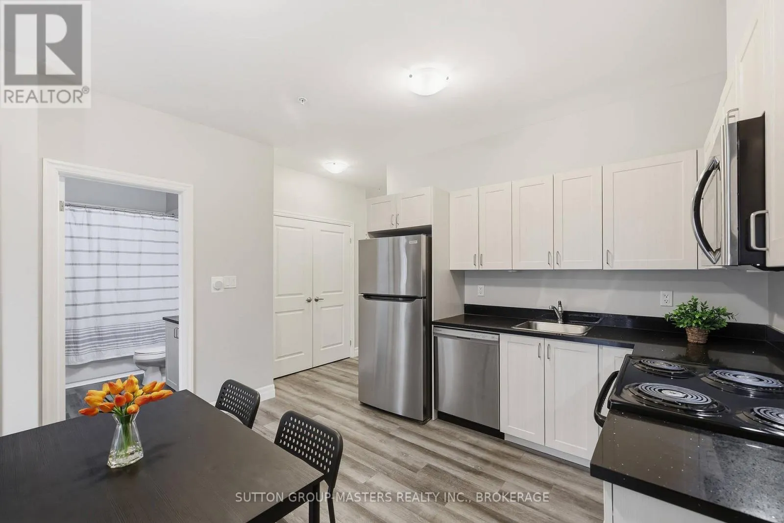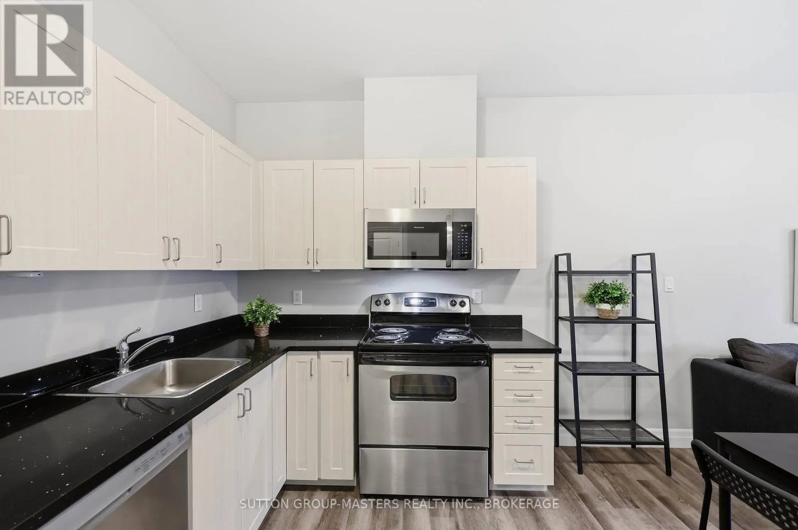 Cross Streets: Princess and Frontenac. ** Directions: Princess to Frontenac St. Prime location in one of Kingston's newer, meticulously managed condominium buildings, just a short walk to Queen's University and all the amenities of the Limestone City's vibrant downtown core. Situated on the desirable 4th floor, this bright and inviting unit offers a fantastic open-concept layout with soaring ceilings, durable laminate flooring, and the convenience of in-suite laundry. Well maintained throughout, the space features neutral décor, stainless steel kitchen appliances, and gleaming quartz countertops in both the kitchen and bathroom. Natural light pours in through the Juliette balcony, offering a pleasant view overlooking the courtyard. This unit also includes exclusive deeded parking in the secure underground garage, conveniently located just steps from the elevator. The building is well equipped with secure front entry, a fitness room, a bookable party room, and an expansive rooftop terrace complete with BBQs - perfect for enjoying time with friends during the warmer months. With easy access to public transit, restaurants, shops, and parks, this is an ideal opportunity for busy professionals or students seeking a low-maintenance lifestyle. All furniture and kitchenware are negotiable, making this a truly move-in-ready option. Come see it for yourself! (id:27476)