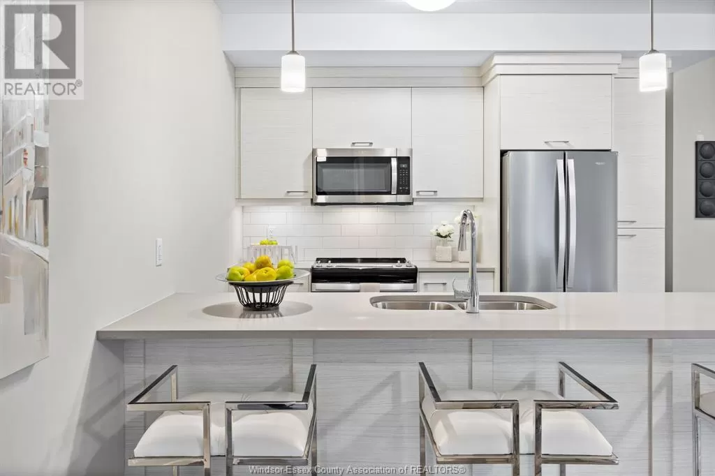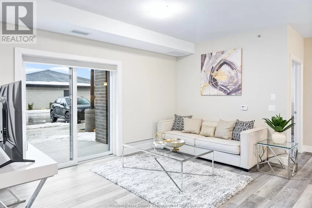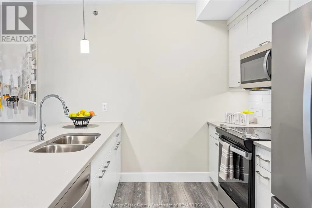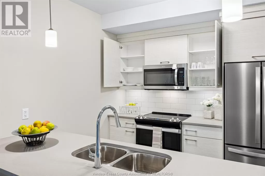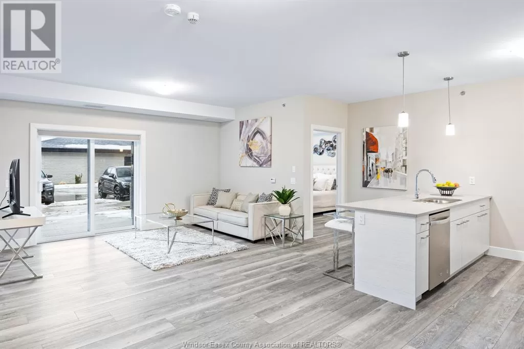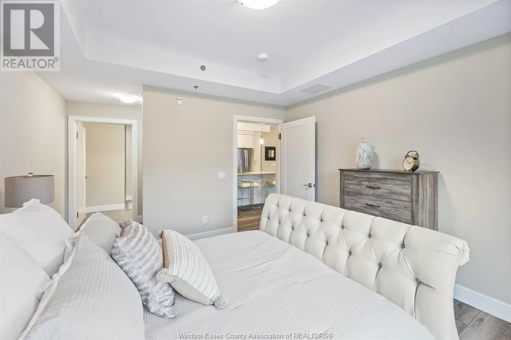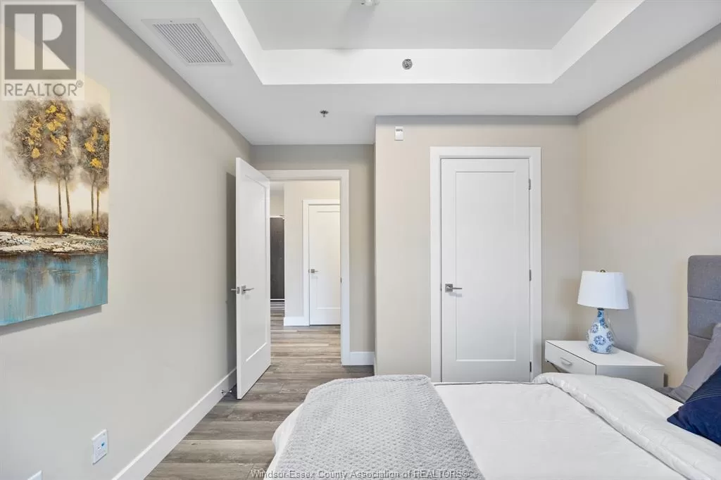 Luxury living in the heart of Kingsville! This beautiful Valente Development built 1 bedroom unit is located in Kingsville's newest condominium building, just steps from Main St. This unit has never been occupied, and is walking distance to shops, restaurants, grocery stores, gyms, parks, schools & much much more. Take a quick drive down to the lakefront, wineries, or take a walk around the beautiful town located only 15 minutes to Essex or Leamington, and 25 minutes to Windsor. 1 large bedroom with ensuite & walk-in closet, storage closets, bright open kitchen w/ quartz countertop, & under cabinet lighting. Additional main bath, laundry room, & private balcony. Secure entrance, dual elevator & common room. Garage available for purchase. (id:27476)