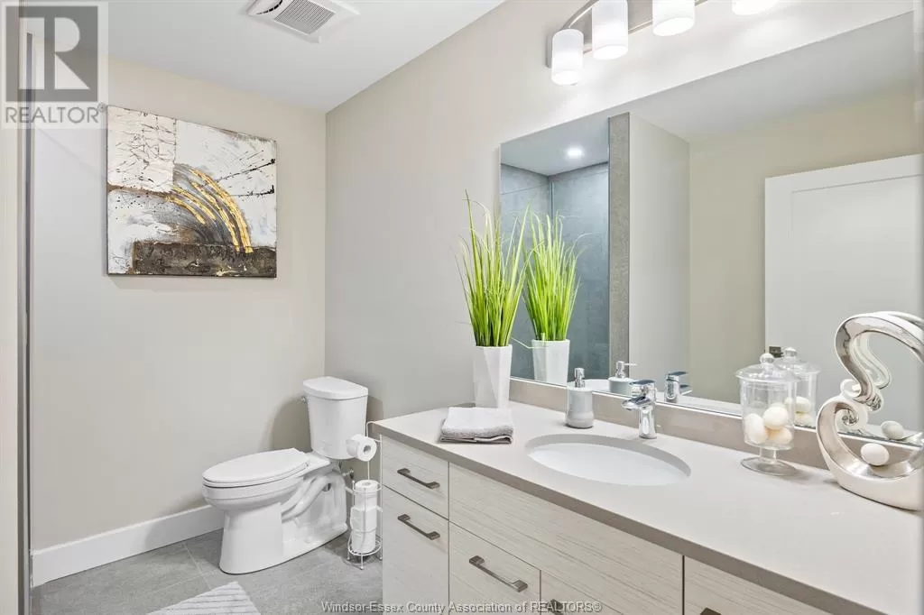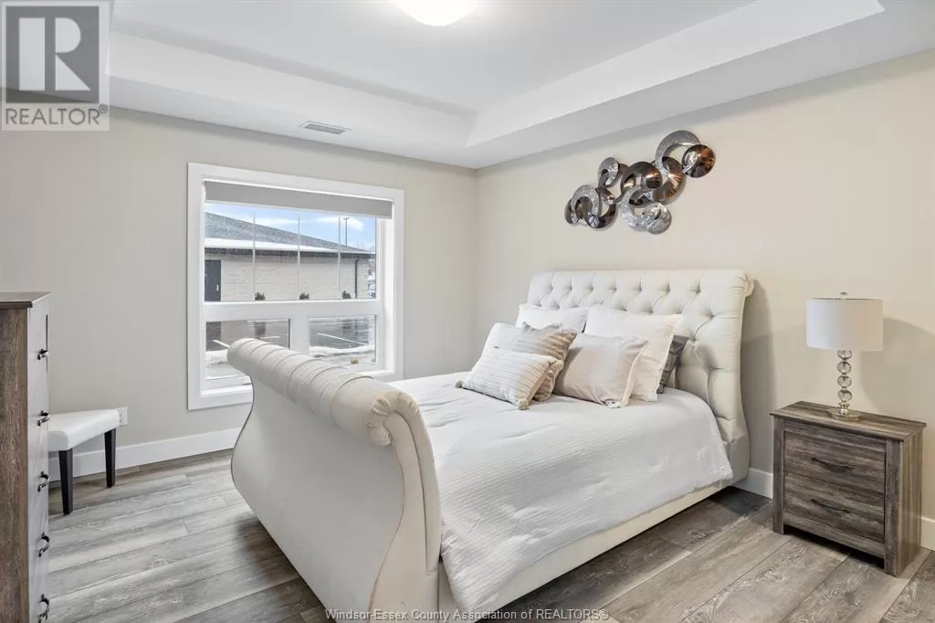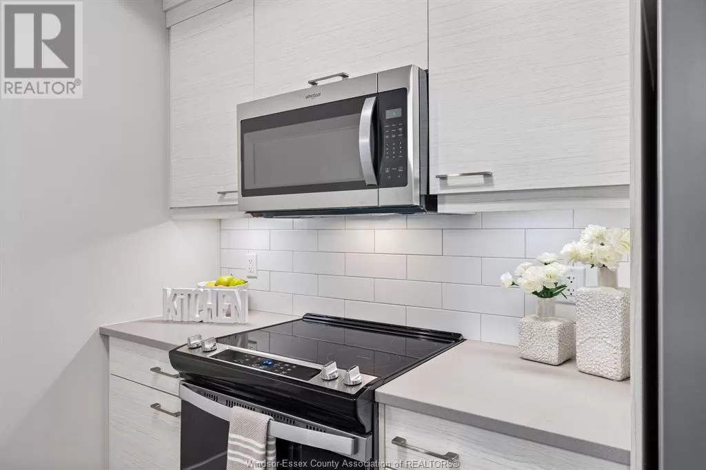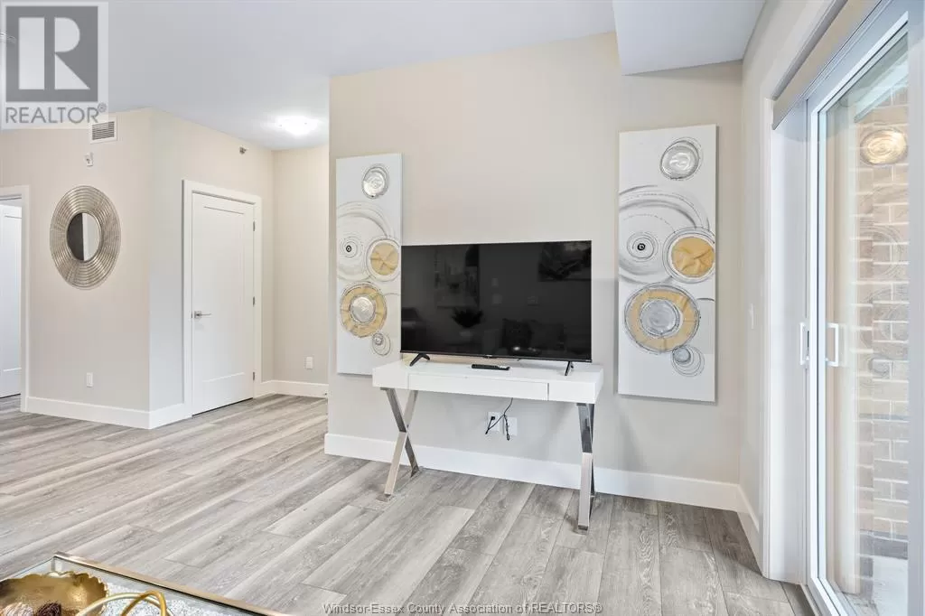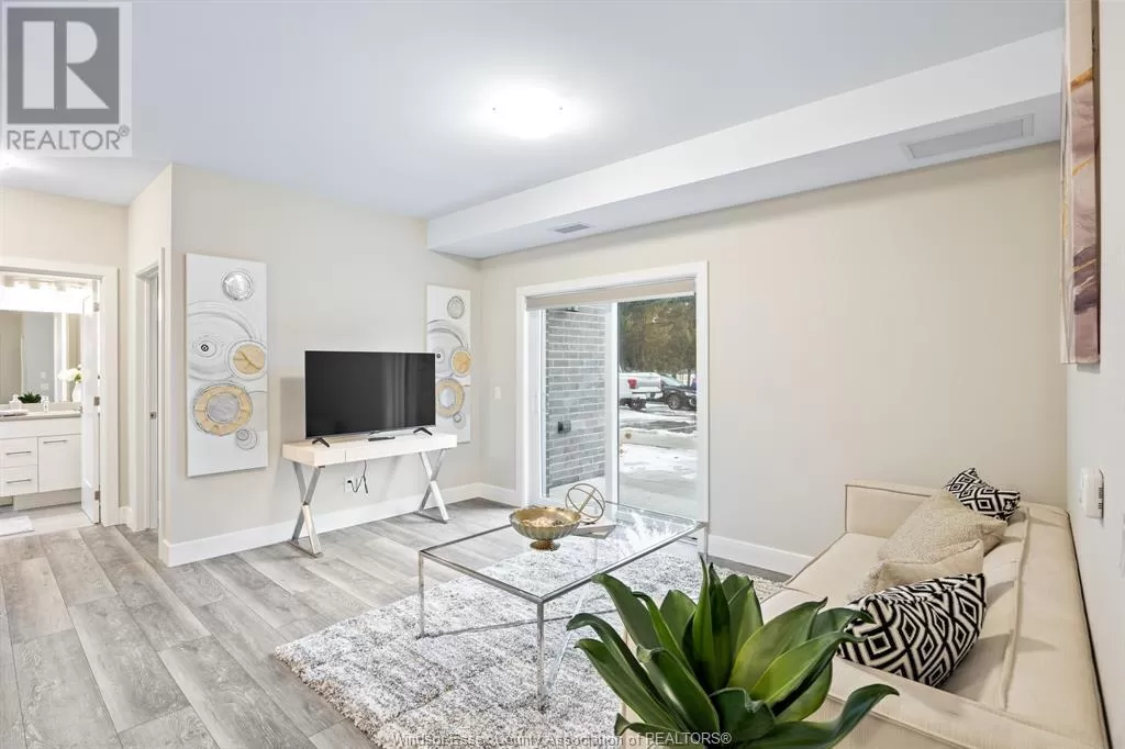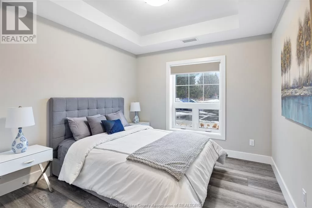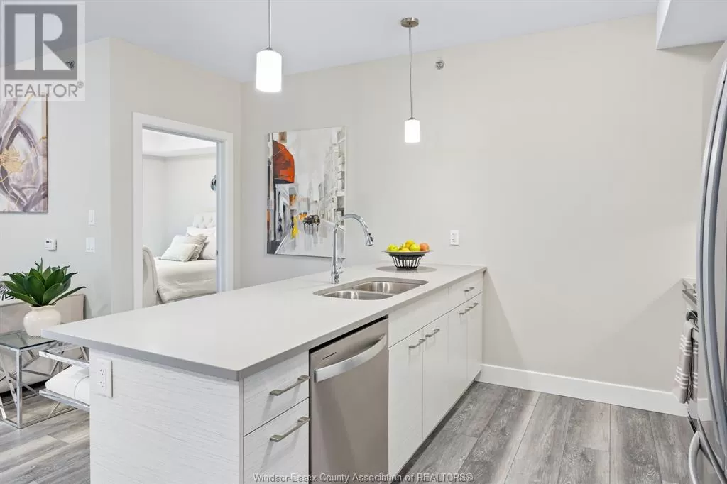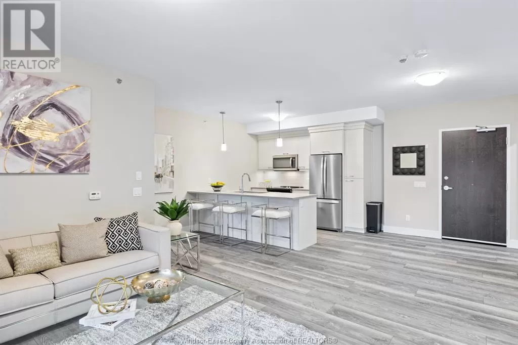 Luxury living in the heart of Kingsville! This beautiful Valente Development built 1 bedroom unit is located in Kingsville's newest condominium building, just steps from Main St. This unit has never been occupied, and is walking distance to shops, restaurants, grocery stores, gyms, parks, schools & much much more. Take a quick drive down to the lakefront, wineries, or take a walk around the beautiful town located only 15 minutes to Essex or Leamington, and 25 minutes to Windsor. 1 large bedroom with ensuite & walk-in closet, storage closets, bright open kitchen w/ quartz countertop, & under cabinet lighting. Additional main bath, laundry room, & private balcony. Secure entrance, dual elevator & common room. Garage available for purchase. (id:27476)