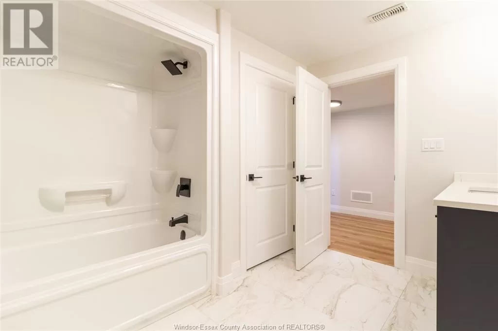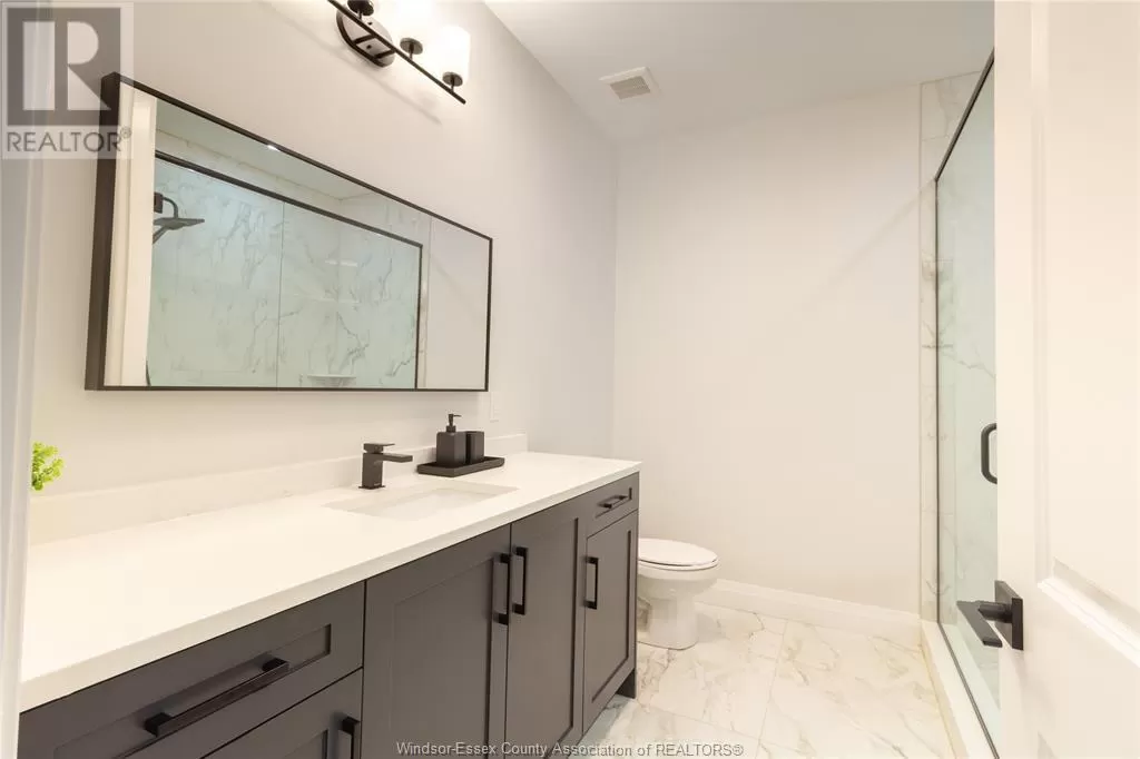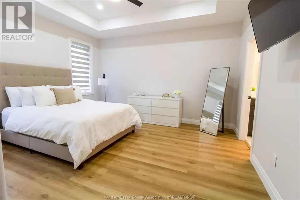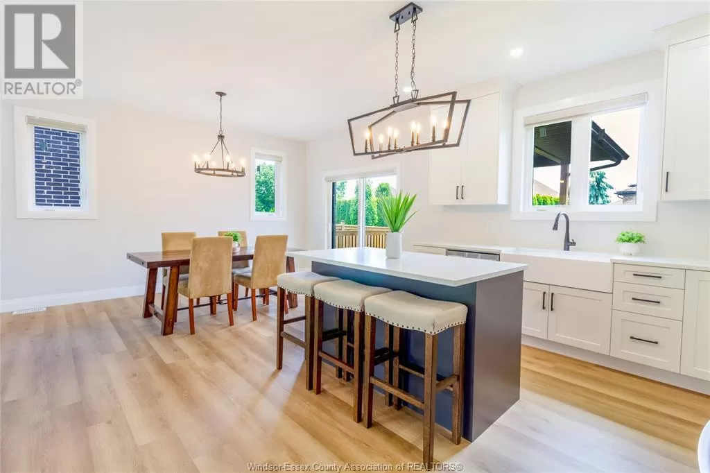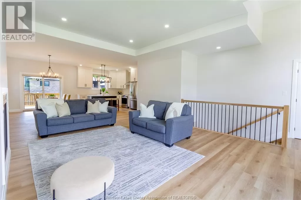 This stunning custom-built ranch offers approximately 1,659 sq. ft. on the main level, plus a beautifully finished lower level, in a sought-after Kingsville location. Featuring 5 bedrooms and 3 full baths, the open-concept main level showcases a modern kitchen with custom cabinetry with crown moulding, quartz countertops, and premium finishes. The spacious primary suite includes a walk-in closet and a luxurious 4-piece ensuite with a large vanity and waterfall walk-in shower. A 4-piece main bath and convenient main-floor laundry. The fully finished basement features 2 oversized bedrooms, a spacious family room, an additional 4-piece bath, and a large utility room that offers plenty of space to add a second laundry area â perfect for multi-generational living. Additional features include tray ceilings, pot lights throughout the interior and exterior, a covered front porch, a covered rear patio, and a 2.5-car garage. Located just minutes from downtown Kingsville, JKâ12 Erie Migration District School, golf courses, and the arena â this move-in ready home truly has it all! (id:27476)