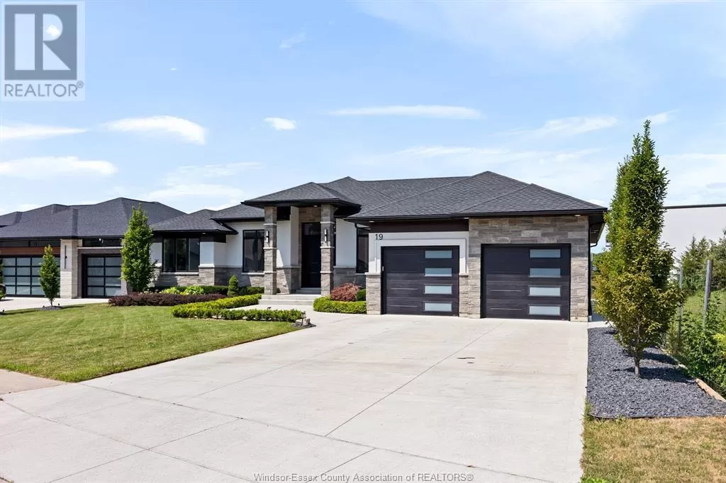 Welcome to 19 Emily Ave, located in the highly sought-after Timbercreek Estates in Kingsville. This stunning ranch home, built in 2021, offers approximately 4,200 sq ft of beautifully finished living space designed for comfort and elegance. Featuring 5 bedrooms and 4 bathrooms, this home provides ample space for families and entertaining. Enjoy the modern touches of ceramic and hardwood flooring throughout, complemented by high ceilings. The large main kitchen is a chefâs delight, complete with a hidden pantry, while the lower level features a fully equipped second kitchen, perfect for hosting guests or creating an in-law suite. A convenient grade entrance leads you directly to an inviting living space with a cozy gas fireplace. Outside, relax on the spacious covered porch, ideal for gatherings or peaceful evenings. Donât miss this exceptional opportunityâcall our team today! (id:27476)