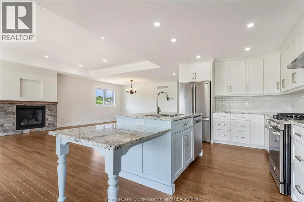 Discover this stunning brand-new custom-built ranch with LP engineered wood siding and brick exterior, offering approx. 1,950 sq.ft. of thoughtfully designed living space. A large entry foyer welcomes you into an open-concept home - perfect for modern living. The chef-inspired gourmet white kitchen impresses with crown moulding, custom cabinetry, stylish backsplash, high-end appliances , and a large granite island. Elegant hardwood flooring flows seamlessly through the main living room, which features a gas fireplace , tray ceiling, and pot lights. This home offers 3 spacious bedrooms and 2 luxurious baths, including a primary suite with a tray ceiling, walk- in closet, and a spa-like 4-piece ensuite featuring double vanities and a ceramic tile shower. Additional highlights include bathrooms and a laundry room finished with quartz countertops. The main floor laundry and mudroom are designed for convenience, with plenty of custom cabinetry and open storage space . A must-see brand-new build that blends style , quality, and comfort! (id:27476)