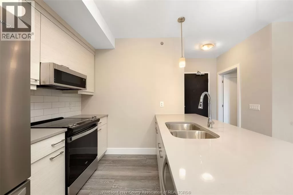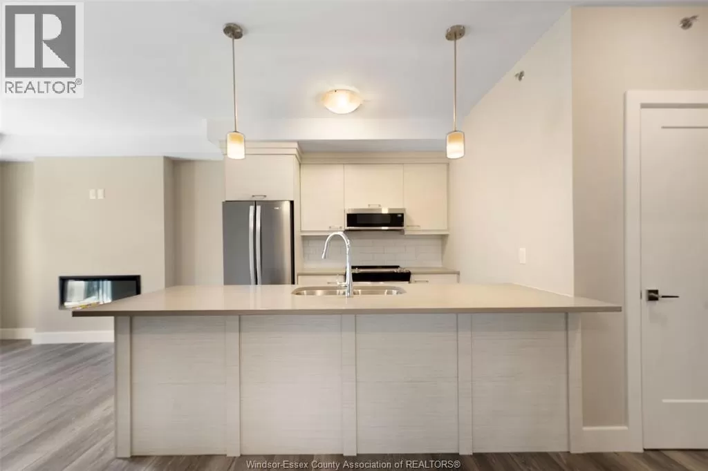 Welcome to this centrally located luxurious condo in the Town of Kingsville, Canada's most southern town! Brand new, never occupied 2 bedroom unit featuring open concept kitchen, dining, and living rooms. Primary bedroom has walk-in closet and ensuite bath, in-suite laundry room, additional 4 piece bath, kitchen with quartz counters and private balcony with eastern views. Location is fantastic with so many amenities within walking distance. (id:27476)