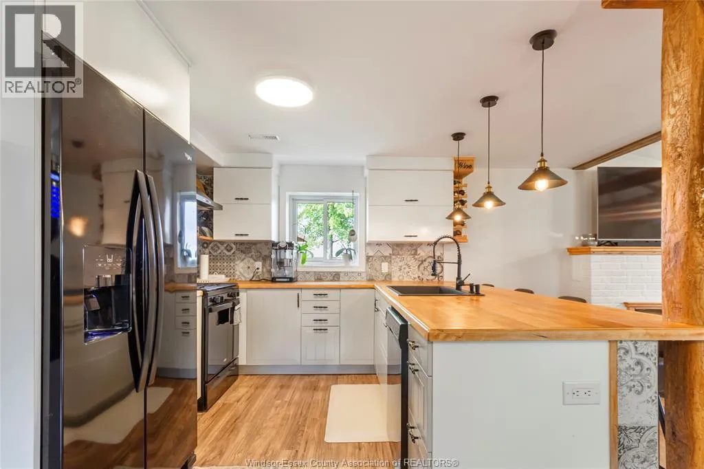 Welcome to 1022 Oak in Kingsville! This beautifully renovated 2-storey home offers 3+1 bedrooms, 2 baths, and modern updates throughout. The main floor features custom maple epoxy countertops, a spacious living area with new electric fireplace, 4-pc bath with jacuzzi tub, and a versatile bonus room ideal as an office, bedroom, or playroom. The second level boasts 3 bedrooms, a renovated bath, and laundry. Bathrooms were renovated in 2021 with updated plumbing, tub, and faucets, plus 2025 upgrades of tile, humidity-sensing fans & dimmers. Other updates include ceiling fans in all bedrooms, solid wood baseboards, new entry doors, furnace/AC & appliances (2021), and owned water heater (2023) . Outdoors enjoy a fenced yard (2024/25), playground, new 12x20 aluminum pergola with adjustable roof, and Old Castle patio. Detached 2.5-car garage with gas line and 60-amp panel. Spacious 32x60 ft driveway. Fully renovated in 2021 with 2025 upgrades, this move-in ready home is perfect for families! (id:27476)