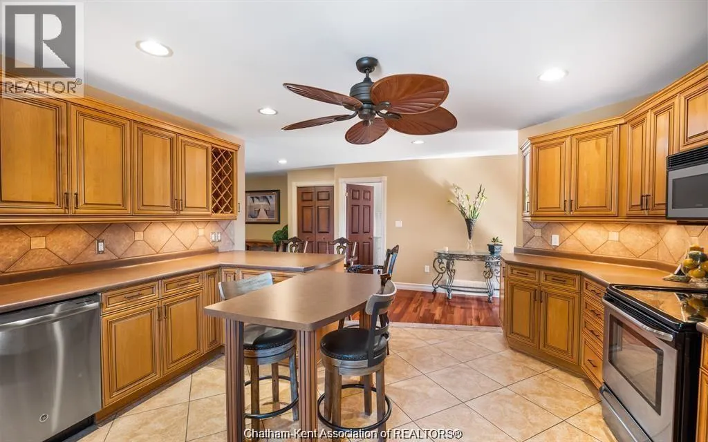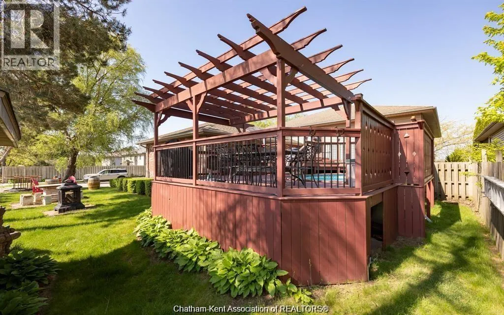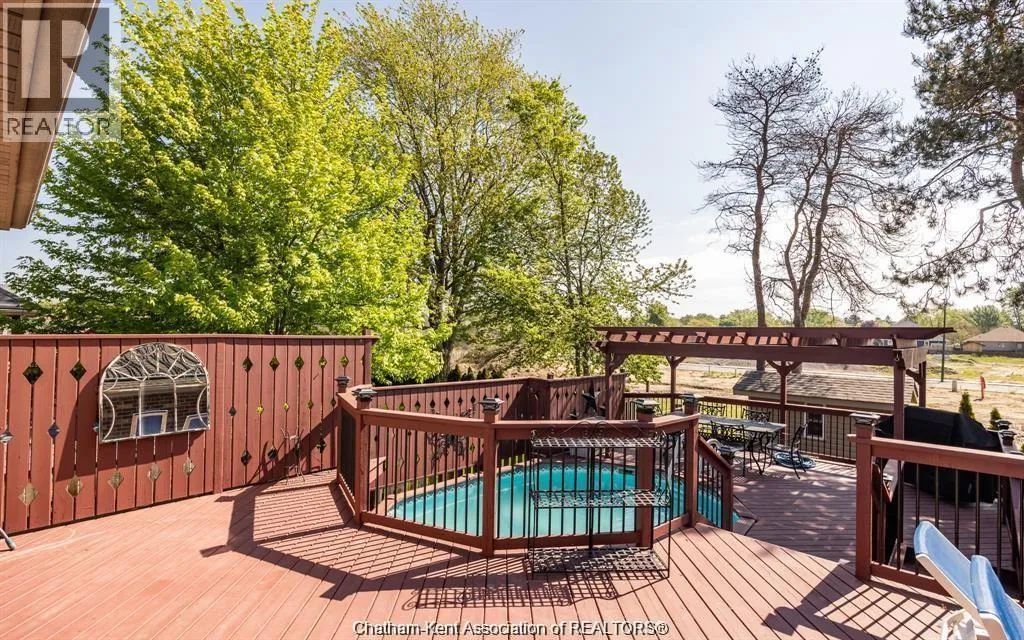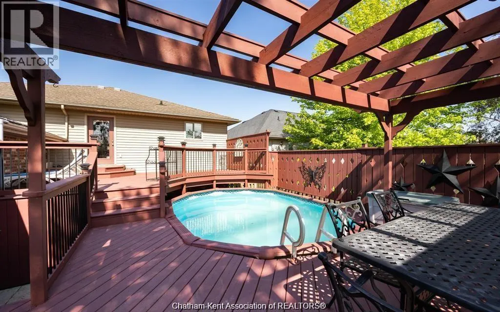 Step into a spacious main floor featuring a large chefâs kitchen with a breakfast bar, perfect for everyday meals or entertaining. The kitchen opens to a separate dining area that overlooks the bright entry-level living room. Patio doors from the main level lead to a massive deck and above-ground poolâideal for summer BBQs and outdoor fun. The main level also offers a primary bedroom with a private 4-piece ensuite and a second bedroom with a cheater door to the main 4-piece bath, providing both comfort and convenience. The fully finished lower level is designed for entertaining, complete with a cozy gas fireplace, wet bar, third bedroom, and a third full bathroomâan excellent space for guests or family movie nights. (id:27476)