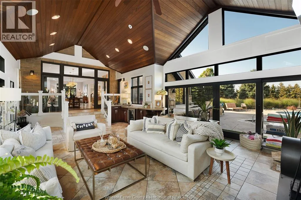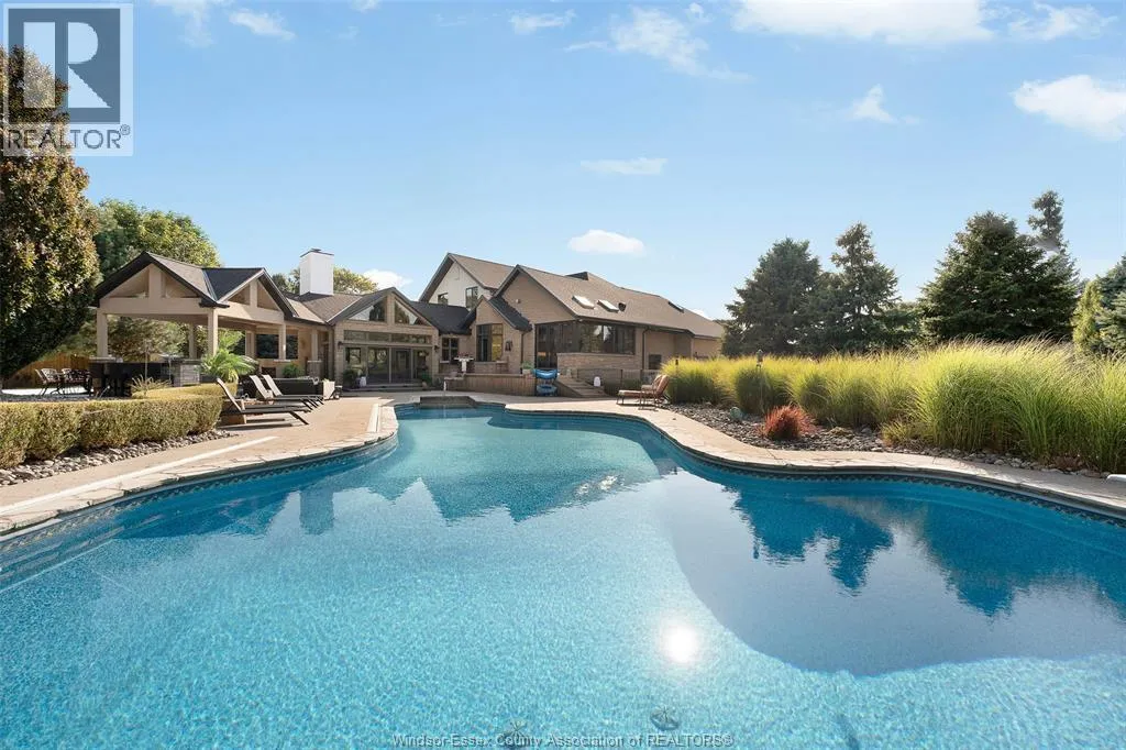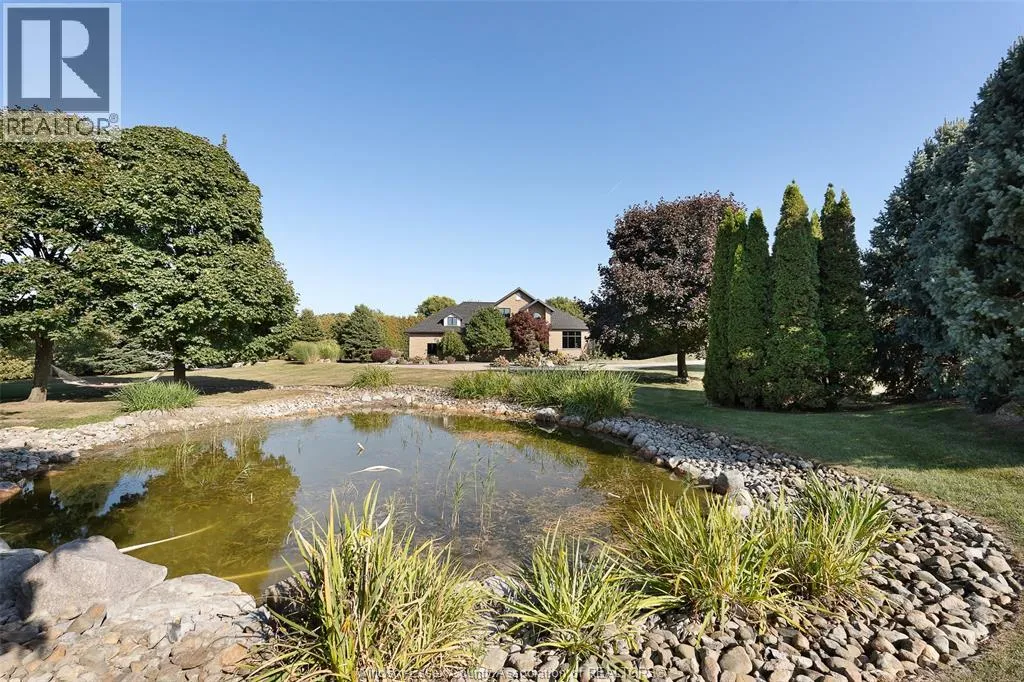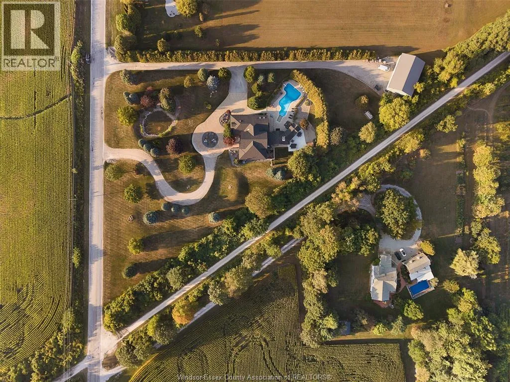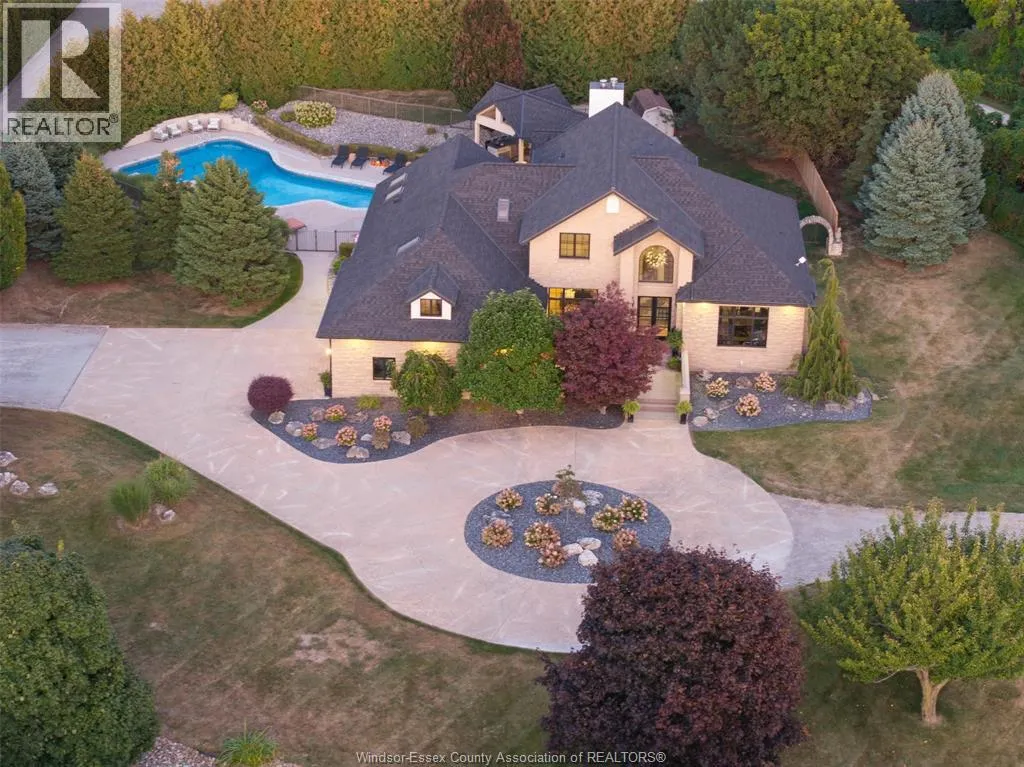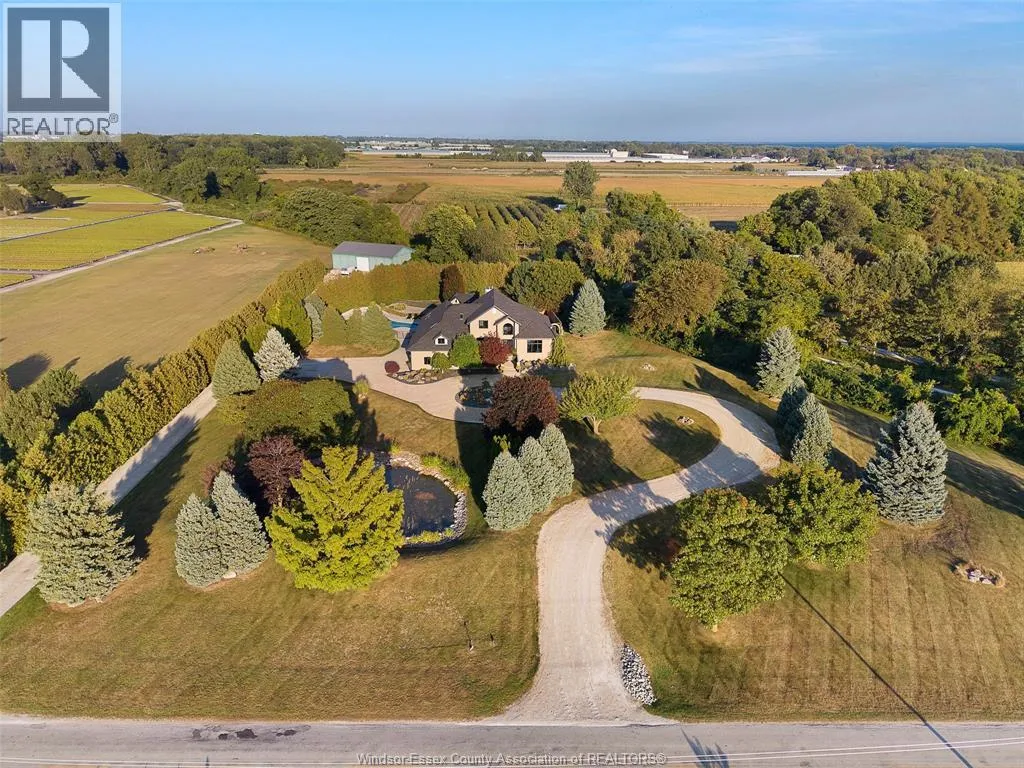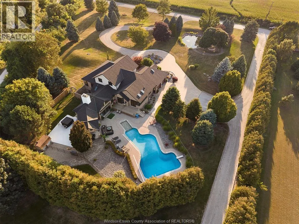 A rare offering â this exquisite custom-built estate with approx 7,500 sq ft is perfectly set on 3+acres of manicured grounds just minutes from charming downtown Kingsville. Every detail is designed for elevated living and effortless entertaining. It features 5 bedrooms, 4.5 baths, 7 fireplaces, soaring 10 ft ceilings, and a stunning full walkout lower level opening to an English sunken garden. This home is complemented with an in-law suite and premium finishes throughout. This smart home has an integrated sound system, automated blinds, and heated floors. Relax in your private retreat with the inground pool, hot tub, and covered lanai, cozy up by the natural fireplace. The tranquil pond and private island offers hammock time or camping for the kids. Chefâs dream kitchen with 14ft Cambria island, walk- in pantry, professional appliances and a dumb-waiter for serving in the lower level. It is flooded with natural light and anchors the home. Primary bedroom features a walk-in closet and a bank of custom cabinetry, en-suite bath and Juliette balcony overlooking mature trees. 3 bedrooms grace the upper floor and lead to the separate in-law suite with lounge and kitchenette area with dedicated entrance. The heated pole barn with separate drive completes this truly exceptional property â a rare fusion of luxury, lifestyle, and location. (id:27476)