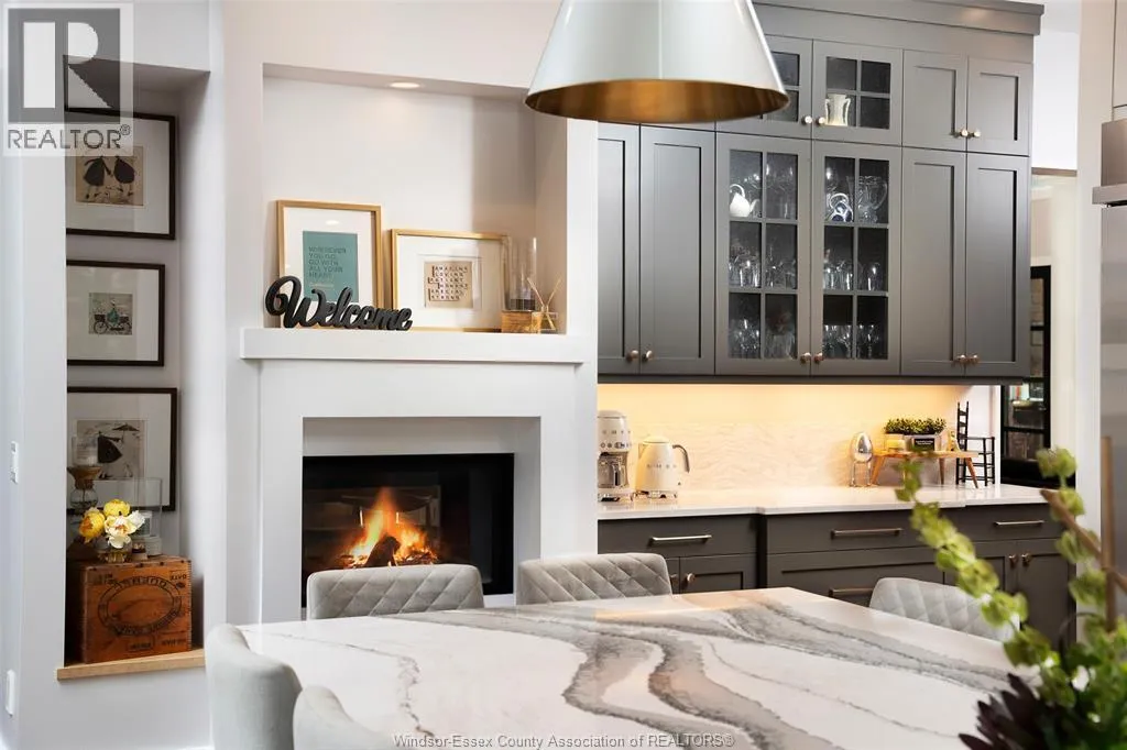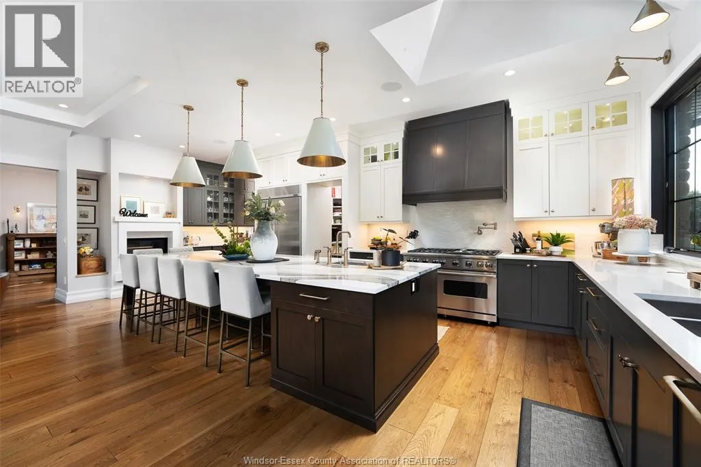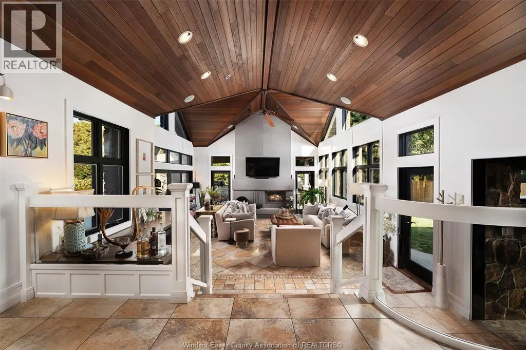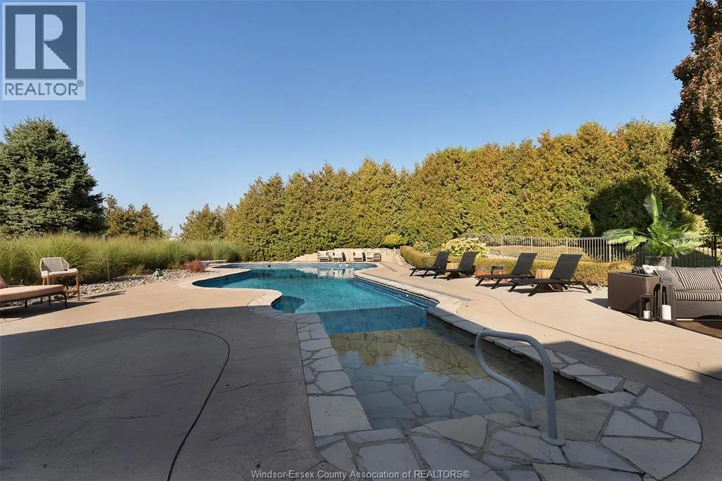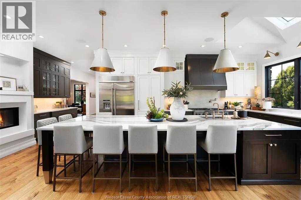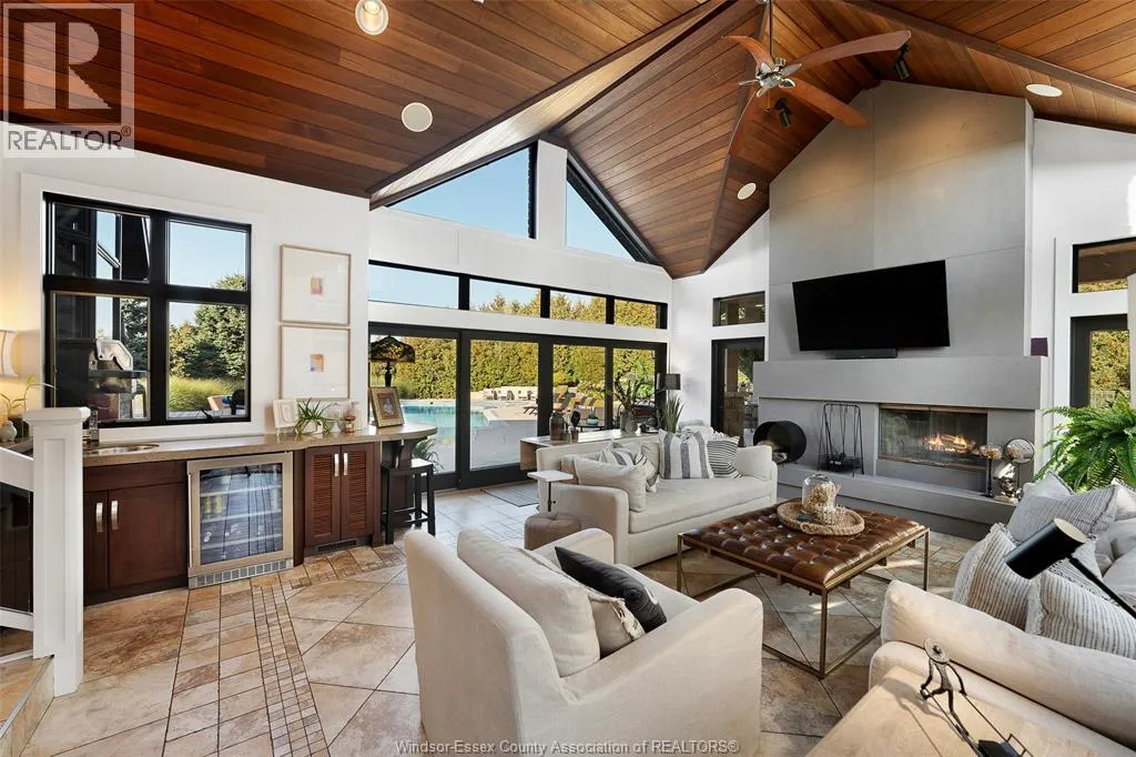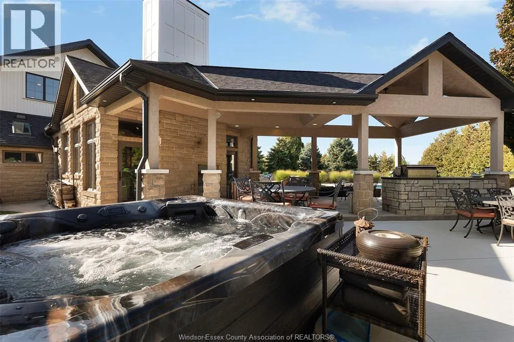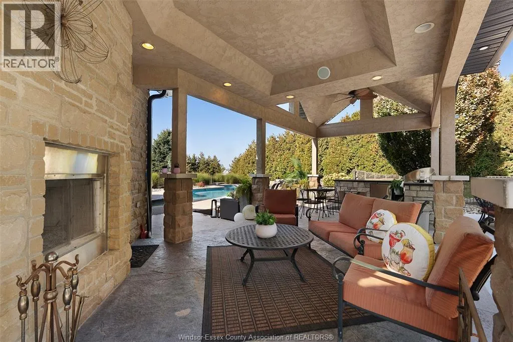 A rare offering â this exquisite custom-built estate with approx 7,500 sq ft is perfectly set on 3+acres of manicured grounds just minutes from charming downtown Kingsville. Every detail is designed for elevated living and effortless entertaining. It features 5 bedrooms, 4.5 baths, 7 fireplaces, soaring 10 ft ceilings, and a stunning full walkout lower level opening to an English sunken garden. This home is complemented with an in-law suite and premium finishes throughout. This smart home has an integrated sound system, automated blinds, and heated floors. Relax in your private retreat with the inground pool, hot tub, and covered lanai, cozy up by the natural fireplace. The tranquil pond and private island offers hammock time or camping for the kids. Chefâs dream kitchen with 14ft Cambria island, walk- in pantry, professional appliances and a dumb-waiter for serving in the lower level. It is flooded with natural light and anchors the home. Primary bedroom features a walk-in closet and a bank of custom cabinetry, en-suite bath and Juliette balcony overlooking mature trees. 3 bedrooms grace the upper floor and lead to the separate in-law suite with lounge and kitchenette area with dedicated entrance. The heated pole barn with separate drive completes this truly exceptional property â a rare fusion of luxury, lifestyle, and location. (id:27476)